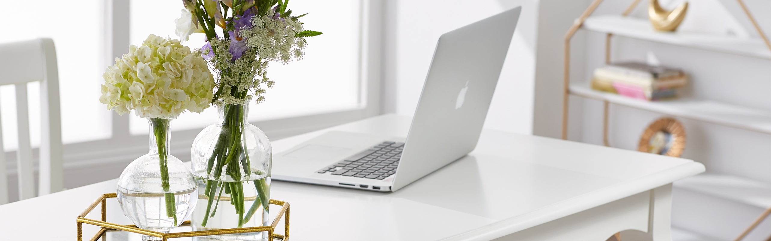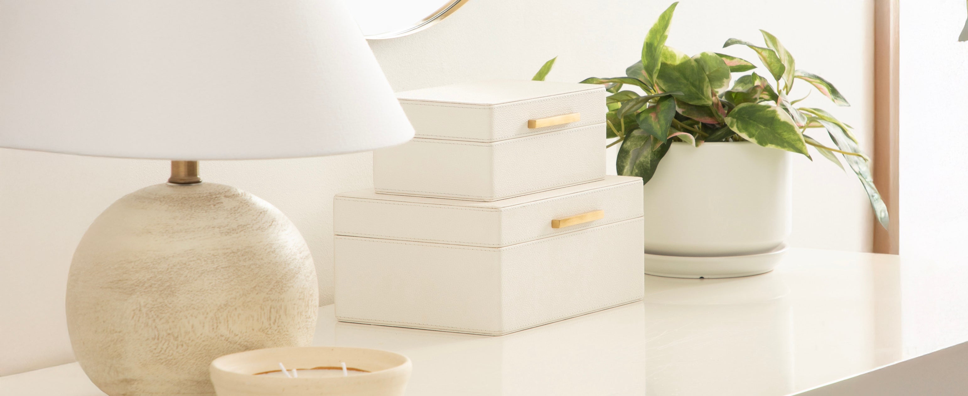 Gold accents, mirrored surfaces and pops of color complement graceful curves and functional design for the classic sophisticate