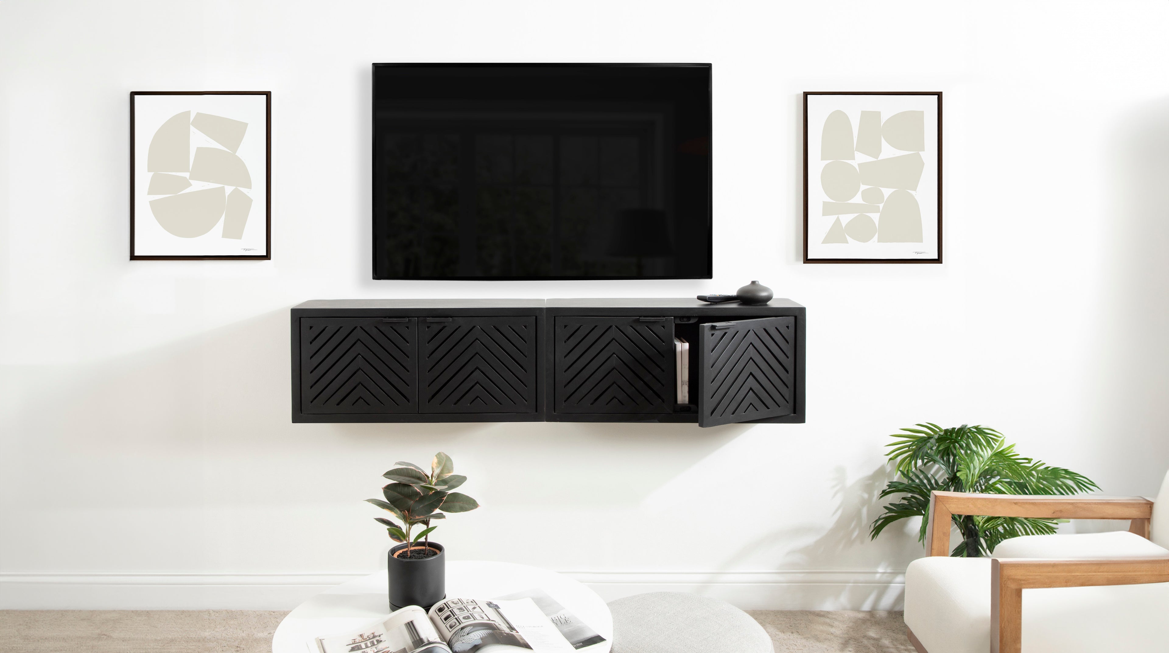 Modern design featuring clean lines, geometric shapes with wood and metal accents for the minimalist aesthetic