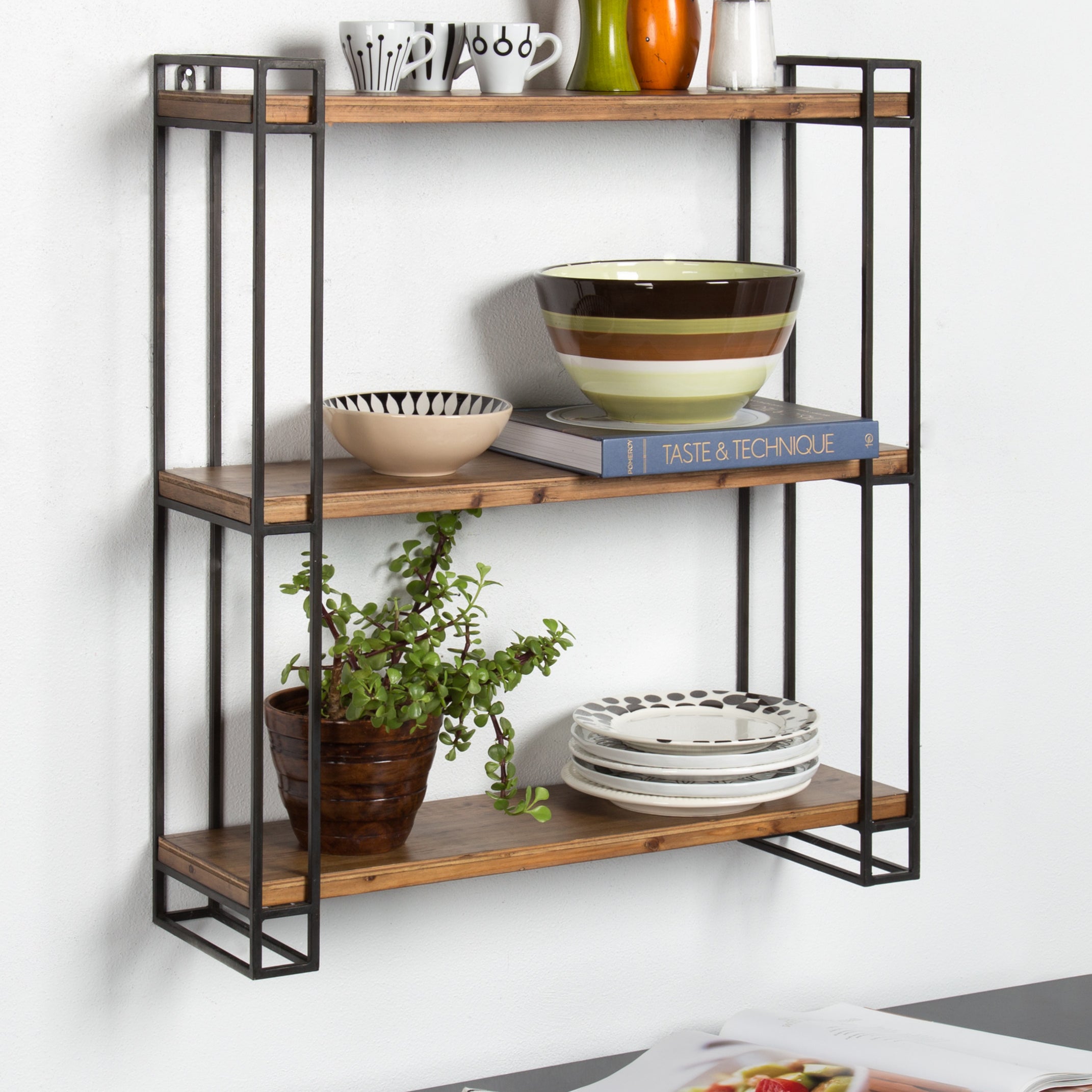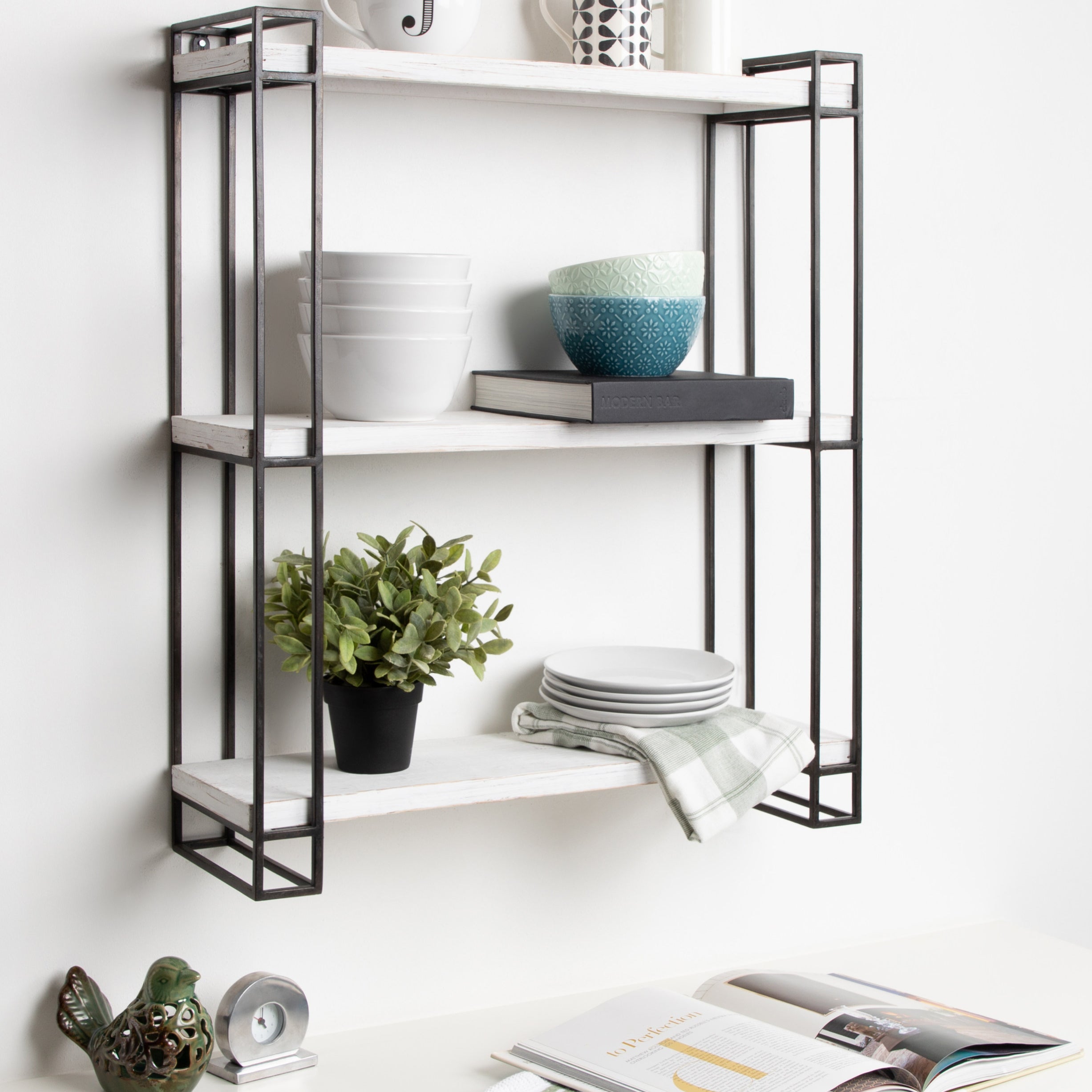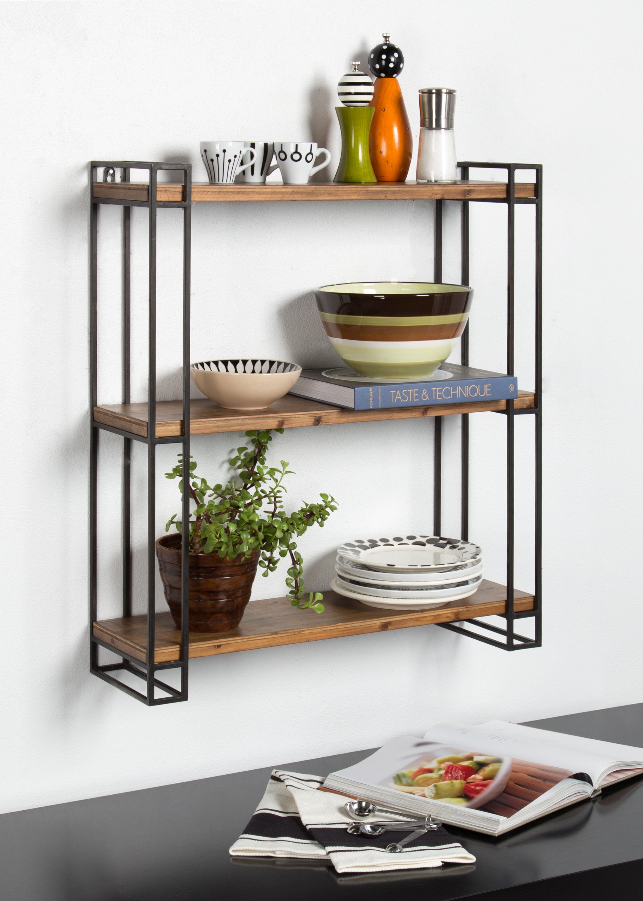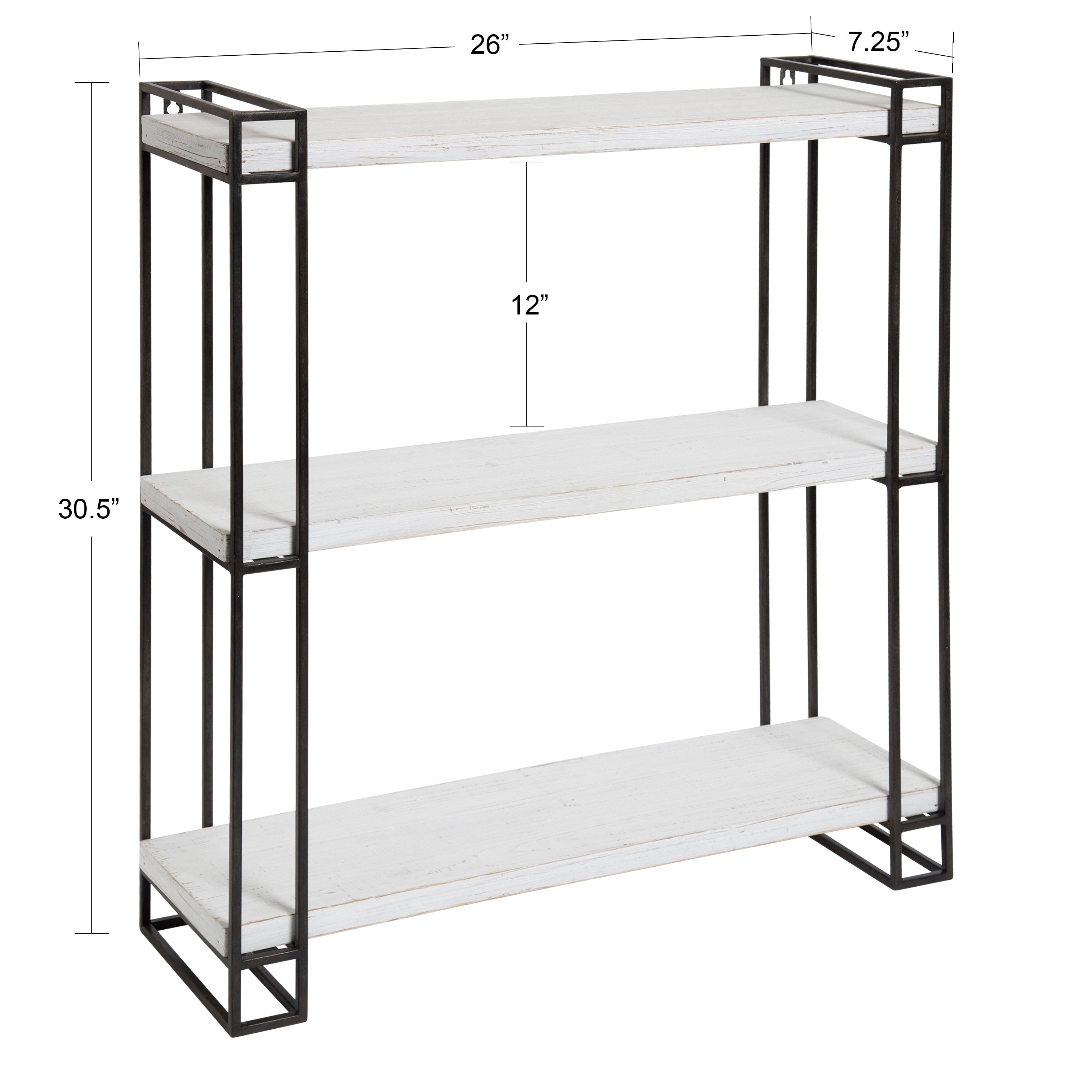 Modern design with function in mind embraces the style of the Lintz floating shelves. Versatile, practical, and beautiful they will complement any room of your home. The sturdy metal base holds three wooden shelf boards that are long and deep enough to hold an array of items including books, photo frames, or other home decorations.