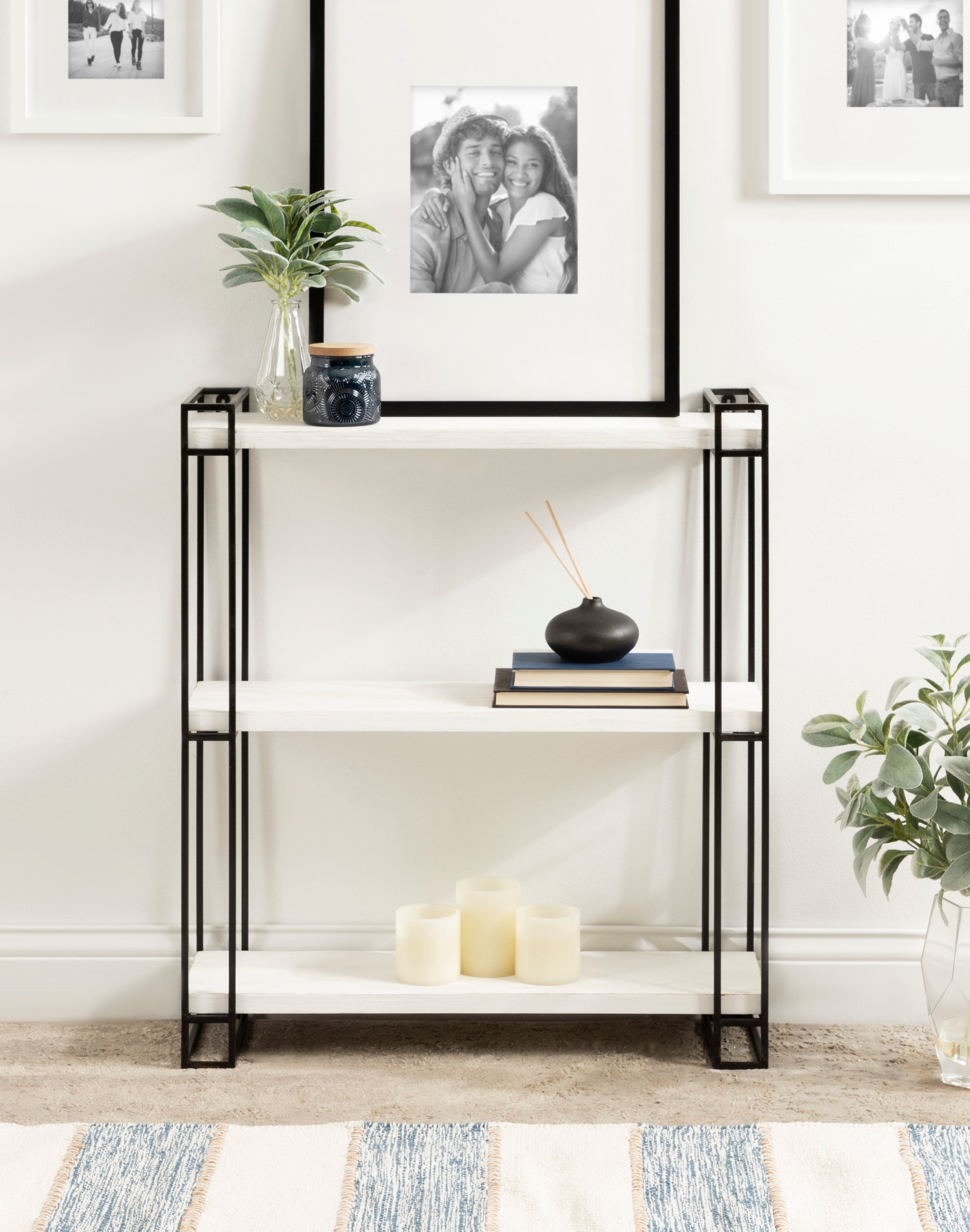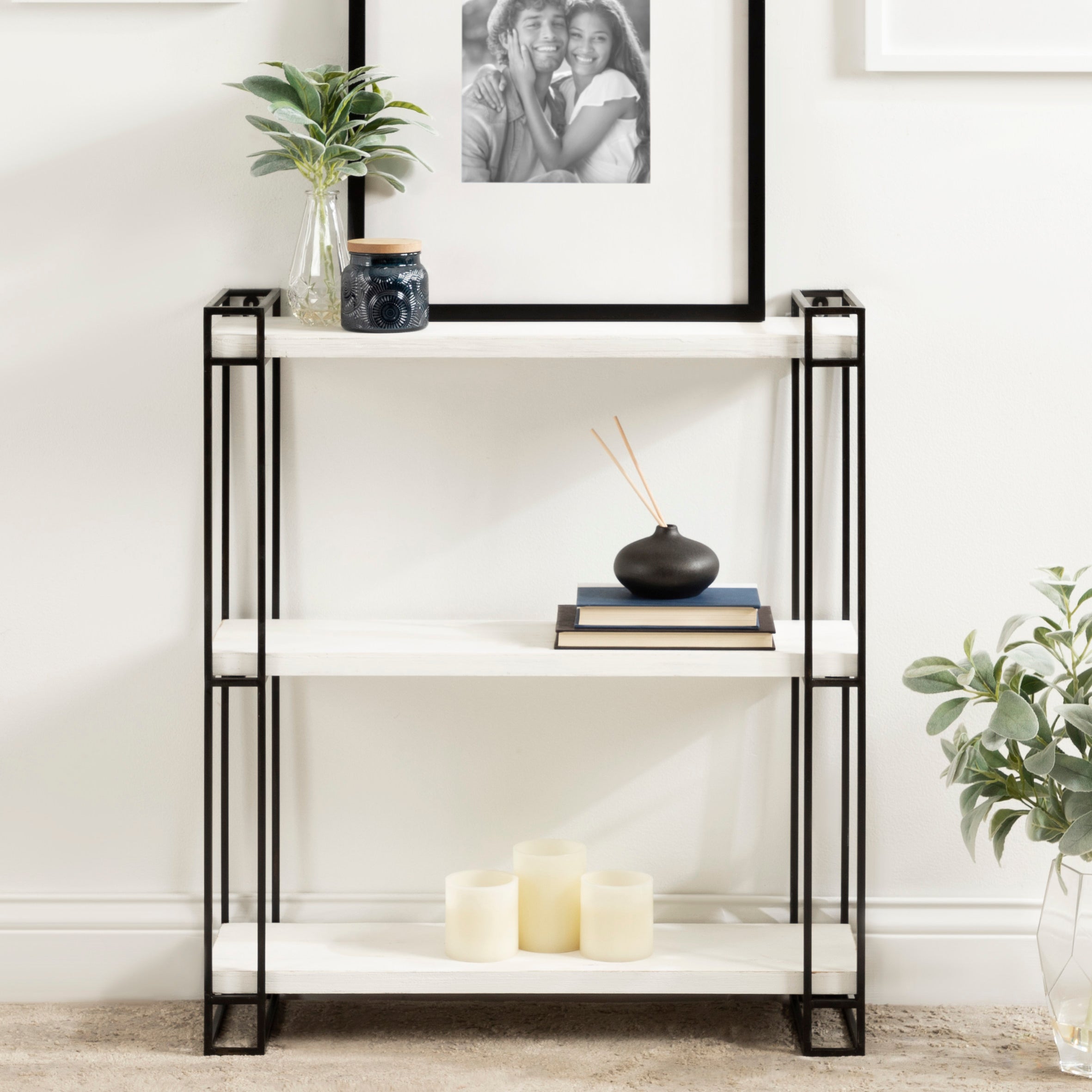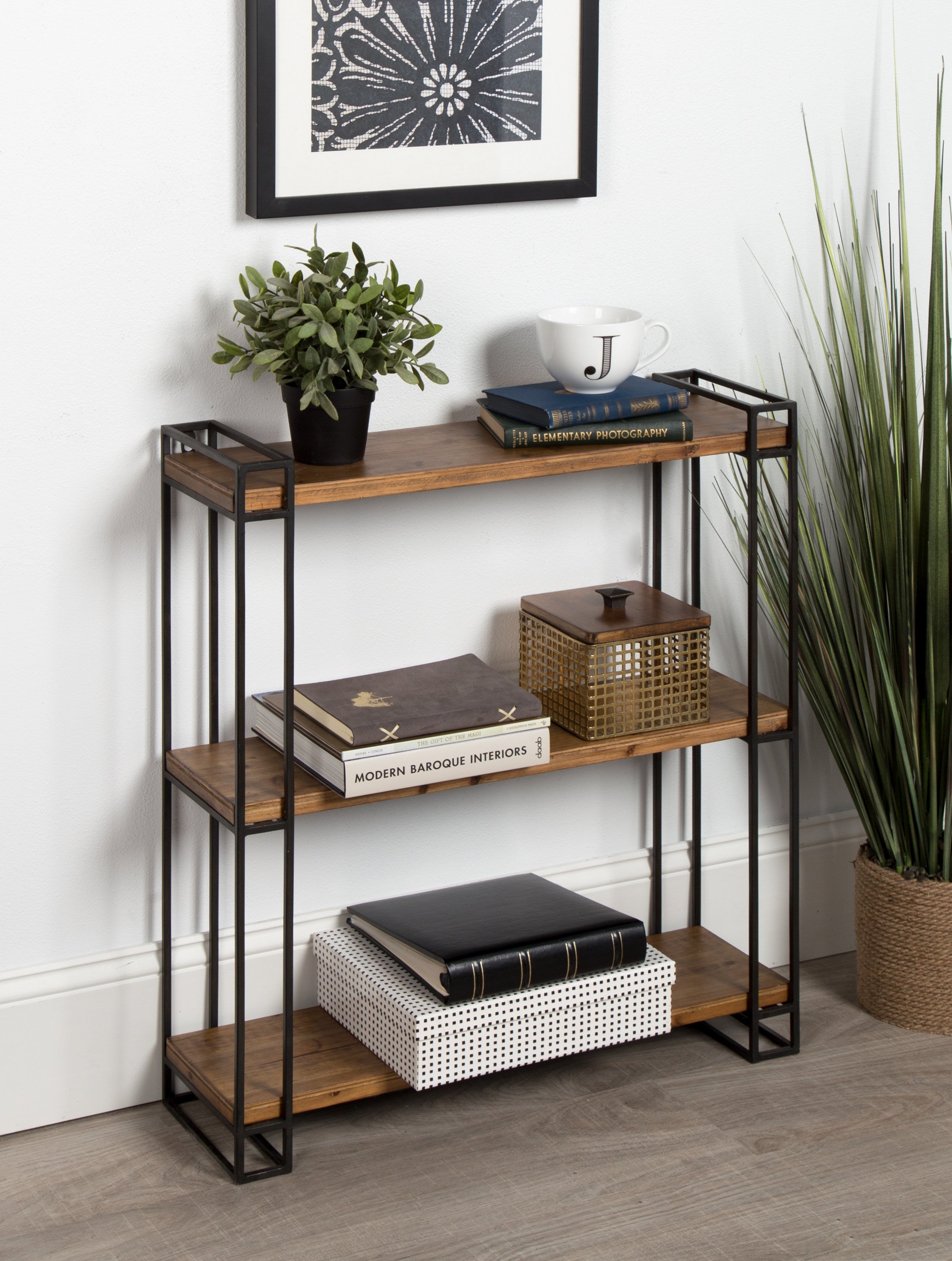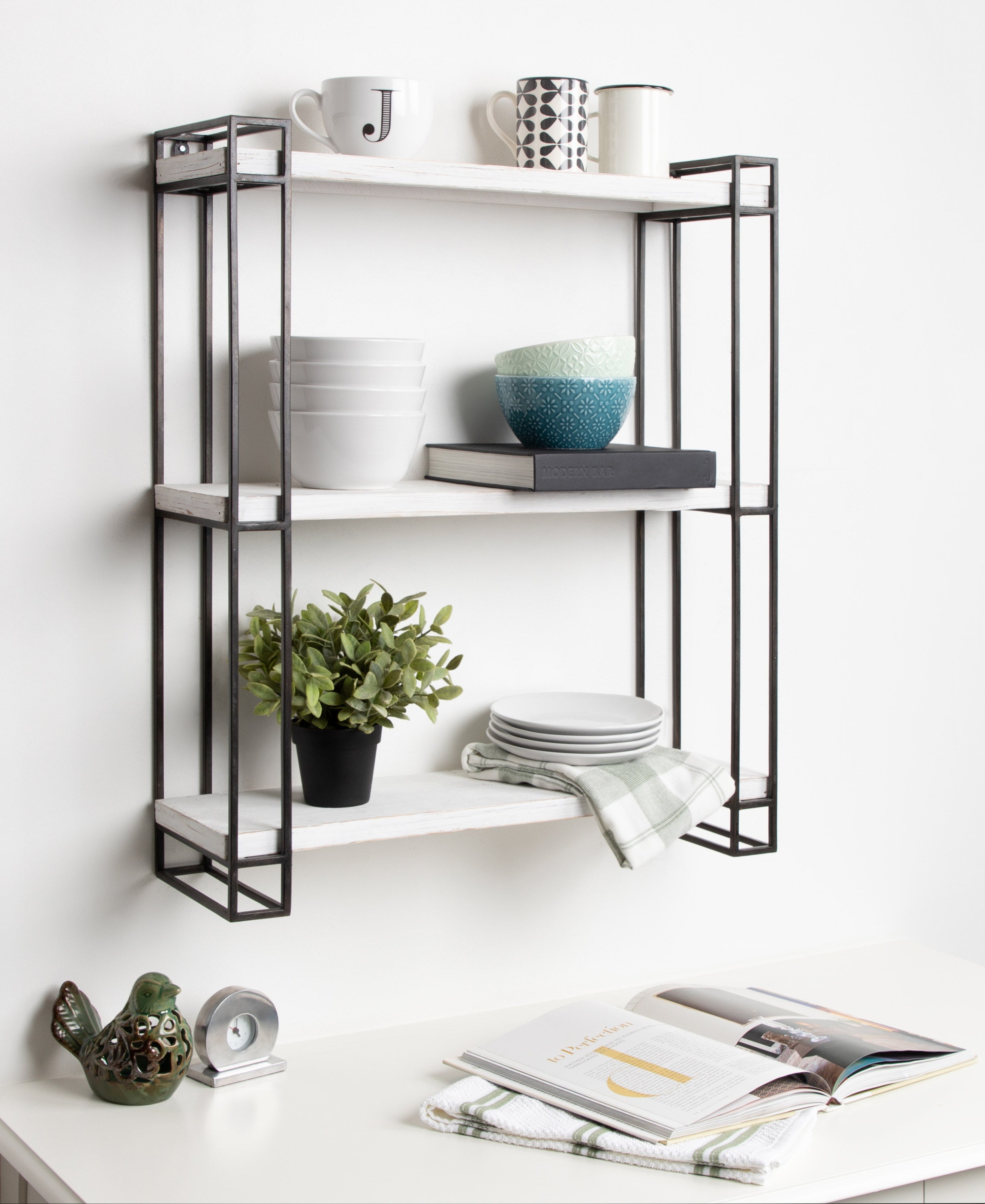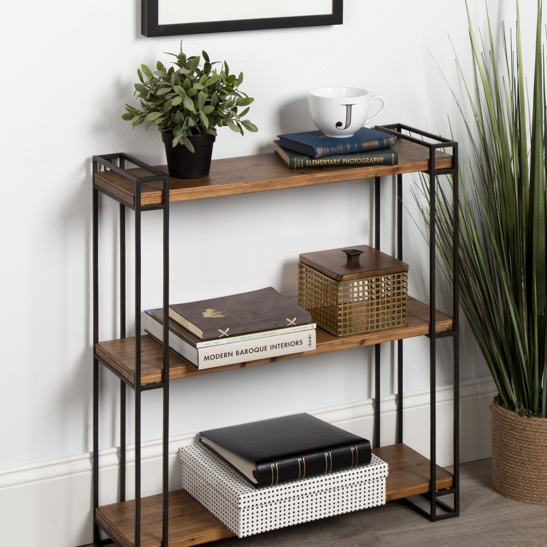 Modern design with function in mind embraces the style of the Lintz floating shelves. Versatile, practical, and beautiful they will complement any room of your home. The sturdy metal base holds three wooden shelf boards that are long and deep enough to hold an array of items including books, photo frames, or other home decorations.