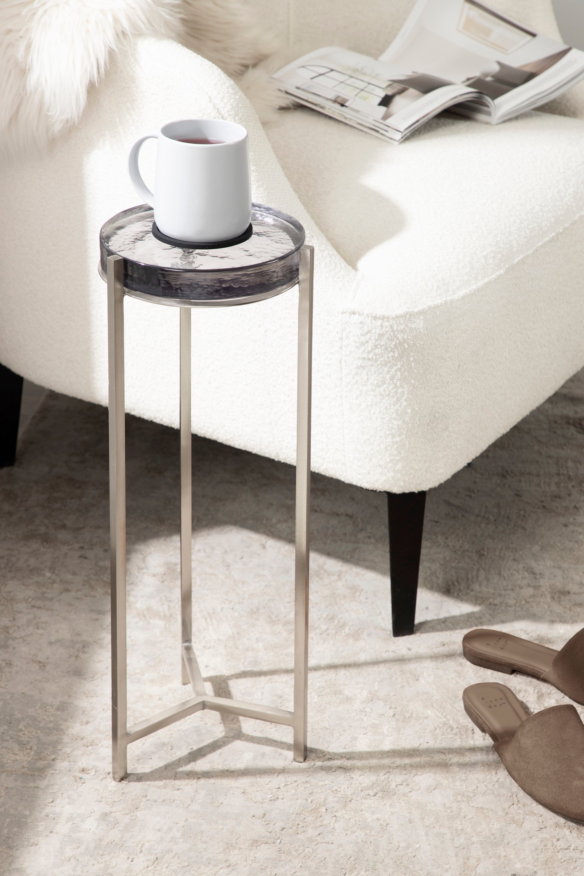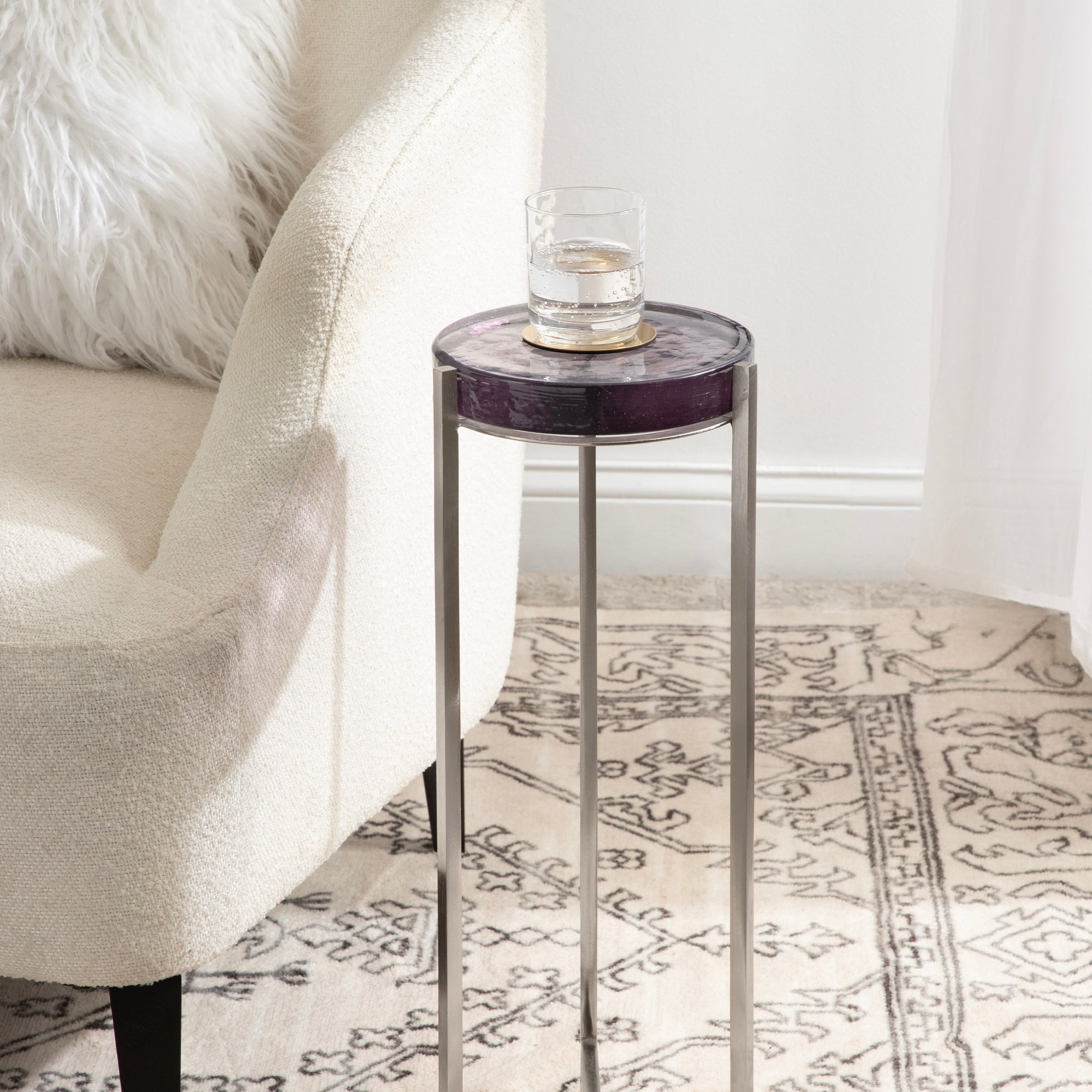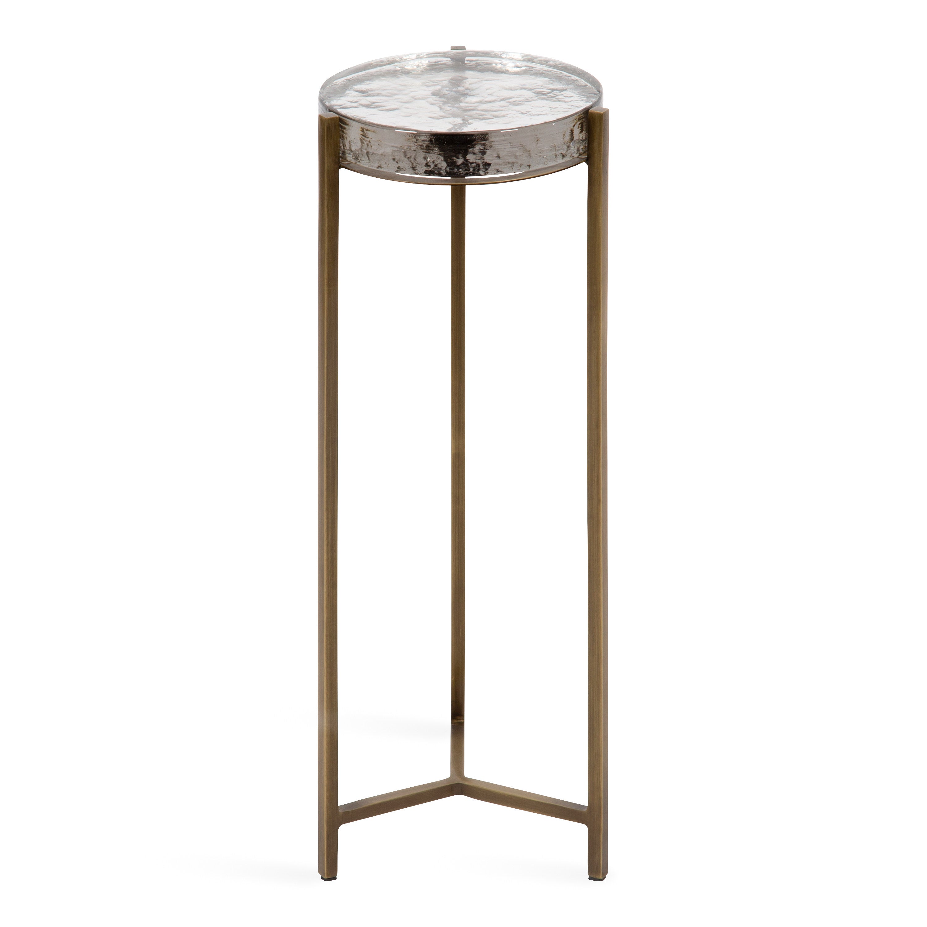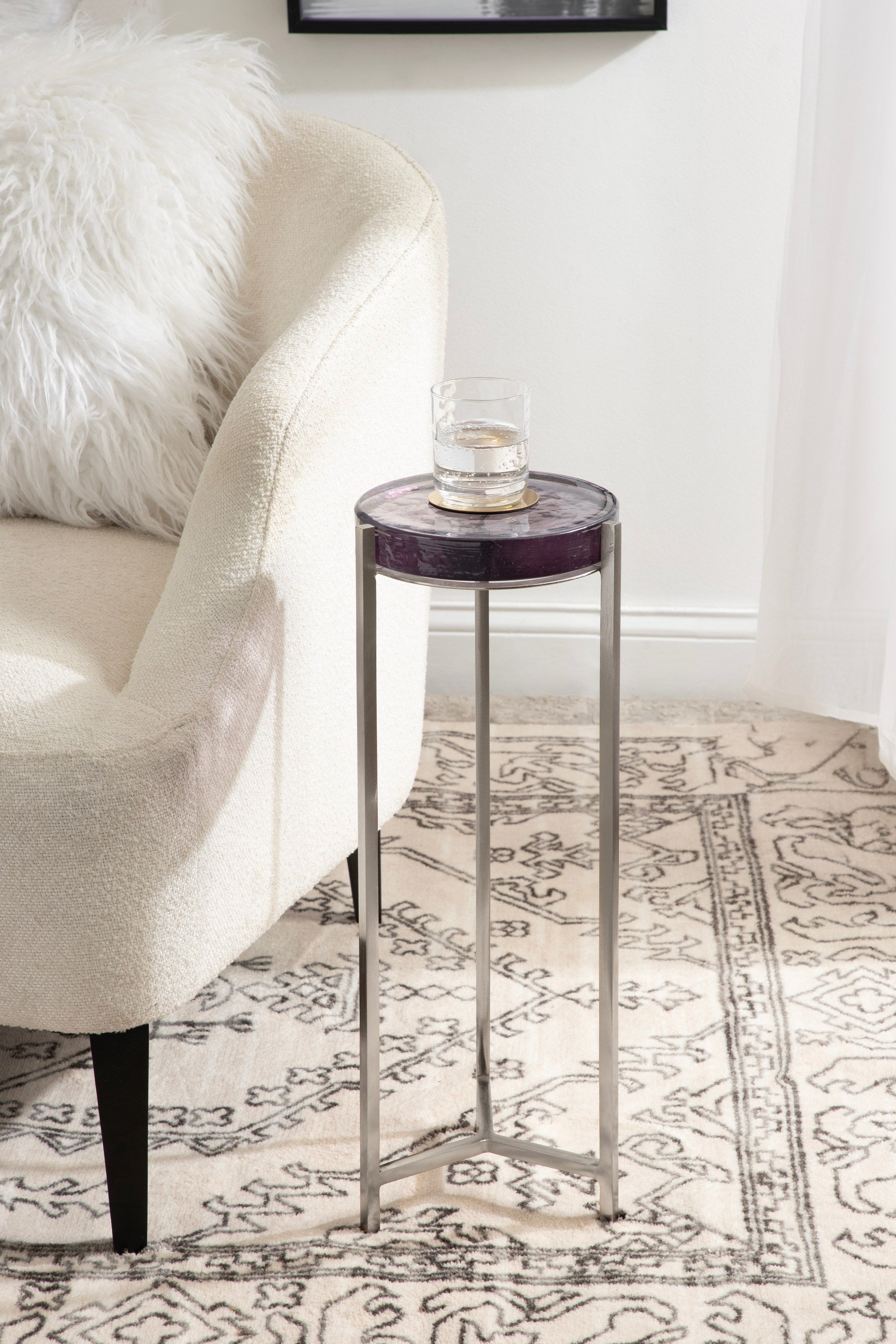 The Aguilar table is a sophisticated accent piece that brings elevated style and glamour to any space in your home. This tabletop is supported by a beautiful, metal frame with a sleek finish, giving it a glamorous look that stands out. This table is fabulous for getting the conversation going at your next get-together while holding a cosmopolitan or a charming statement piece.