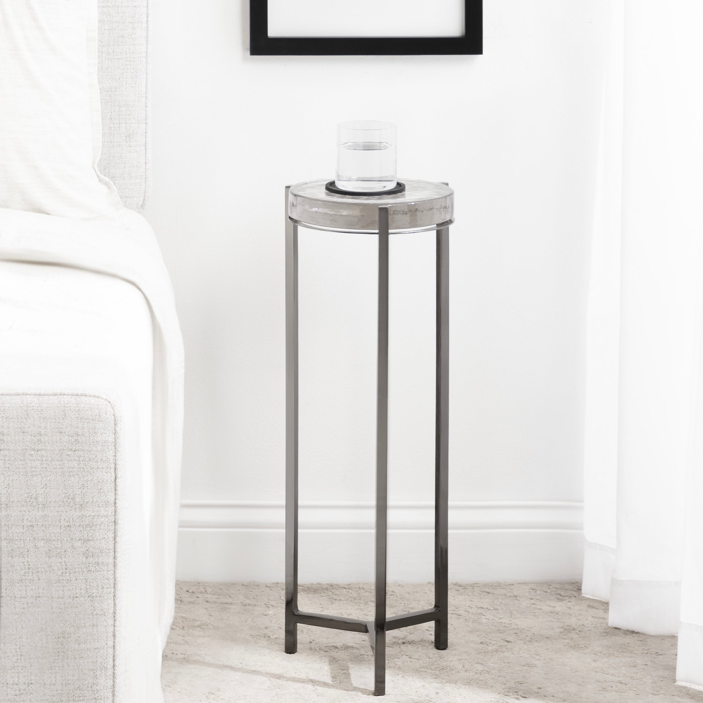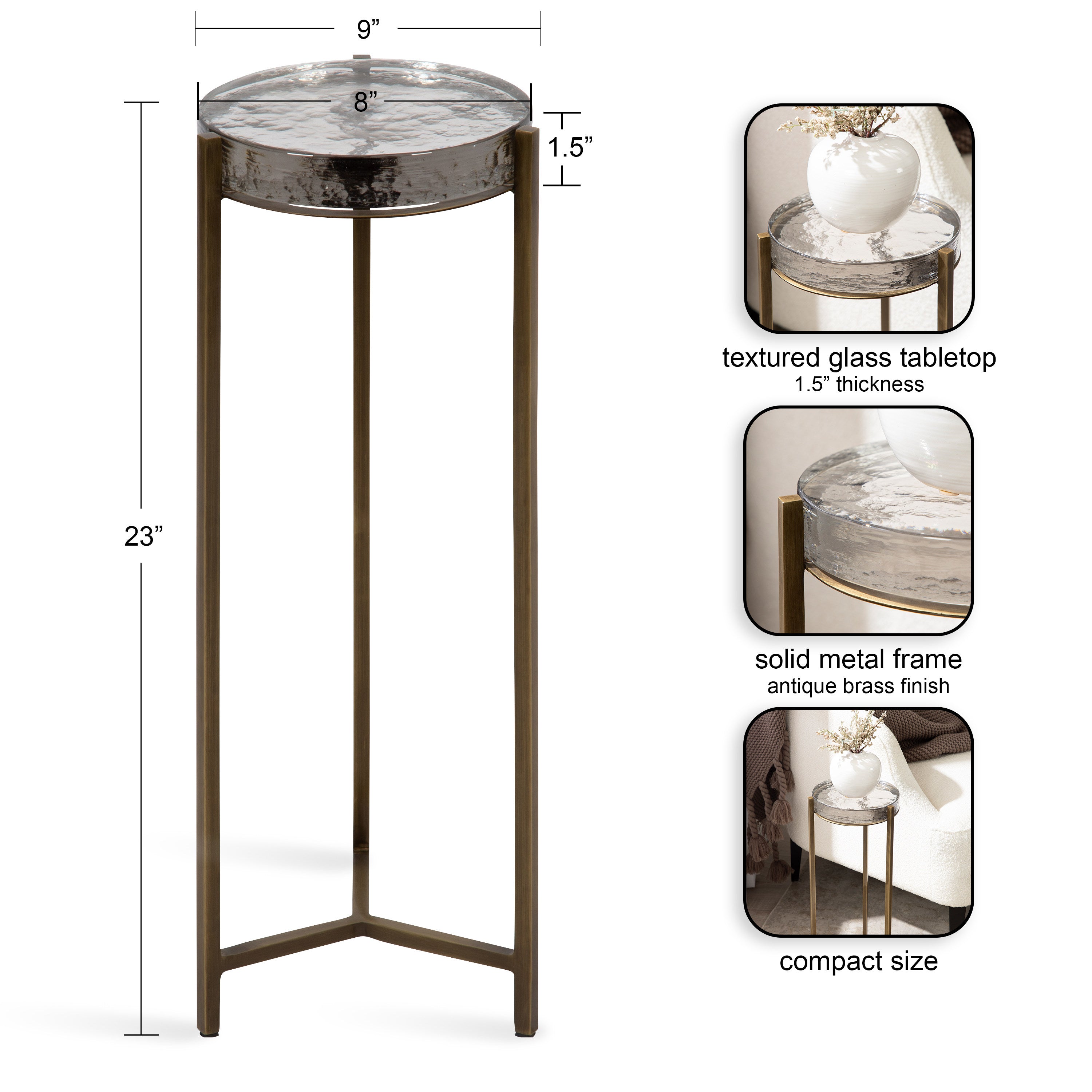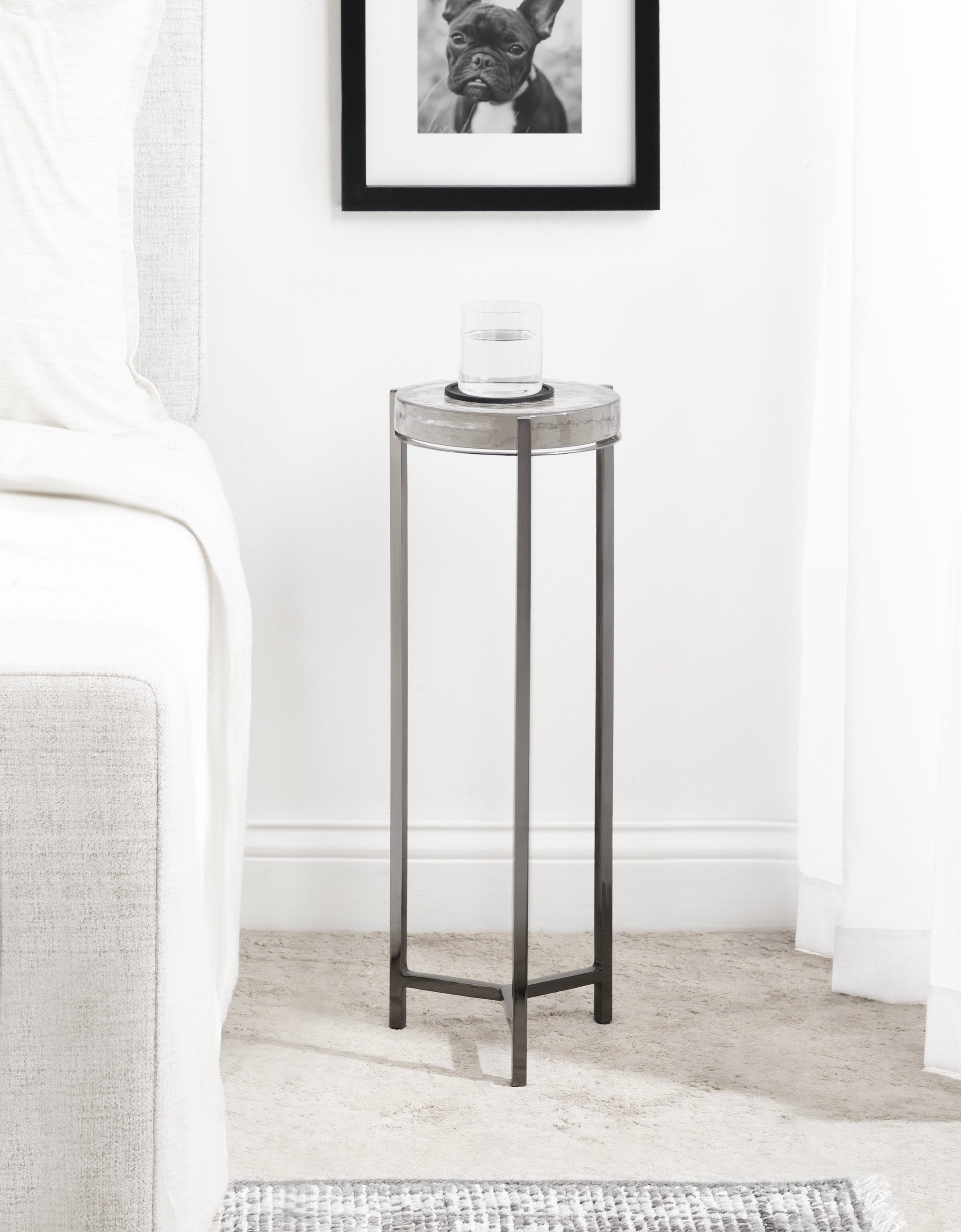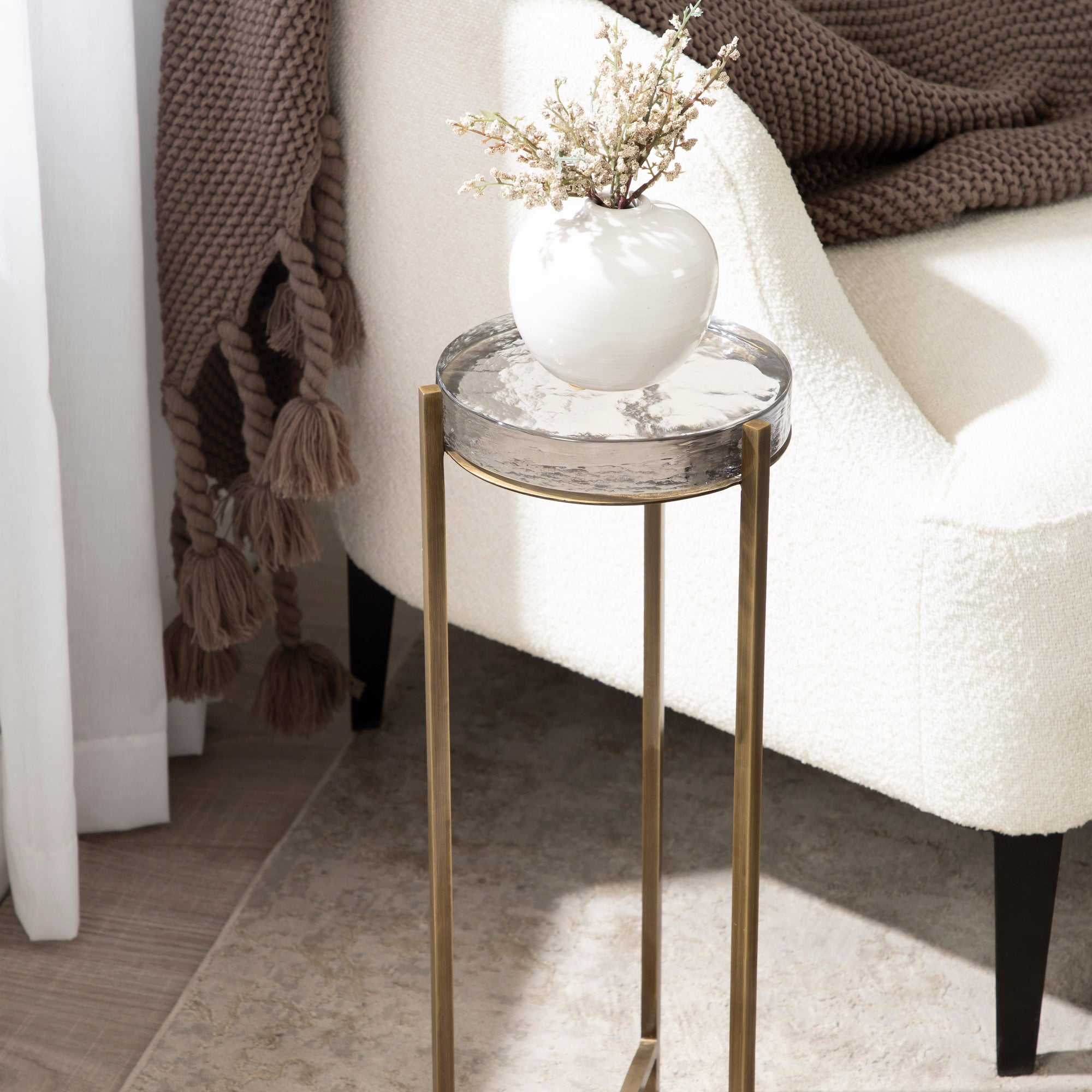 The Aguilar table is a sophisticated accent piece that brings elevated style and glamour to any space in your home. This tabletop is supported by a beautiful, metal frame with a sleek finish, giving it a glamorous look that stands out. This table is fabulous for getting the conversation going at your next get-together while holding a cosmopolitan or a charming statement piece.