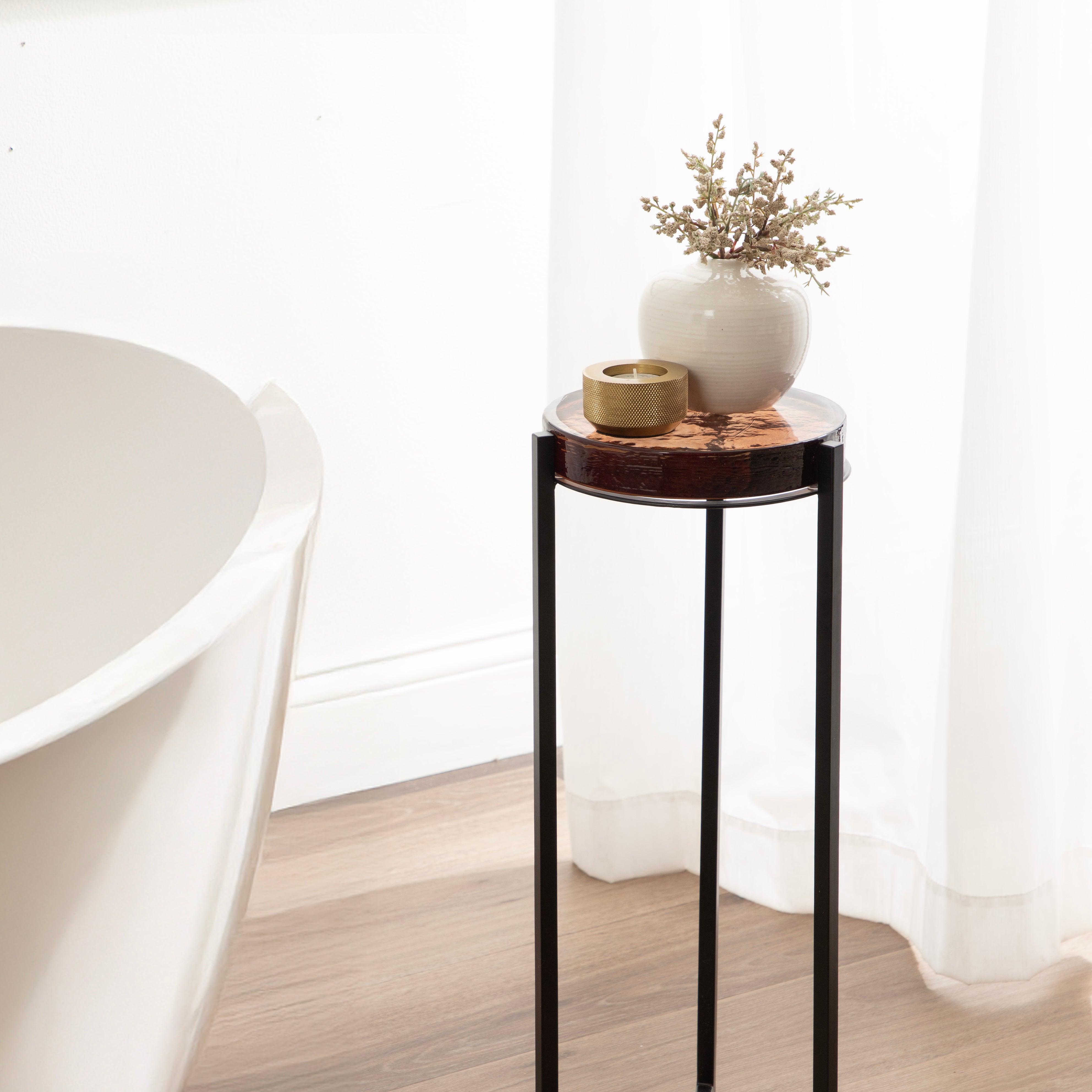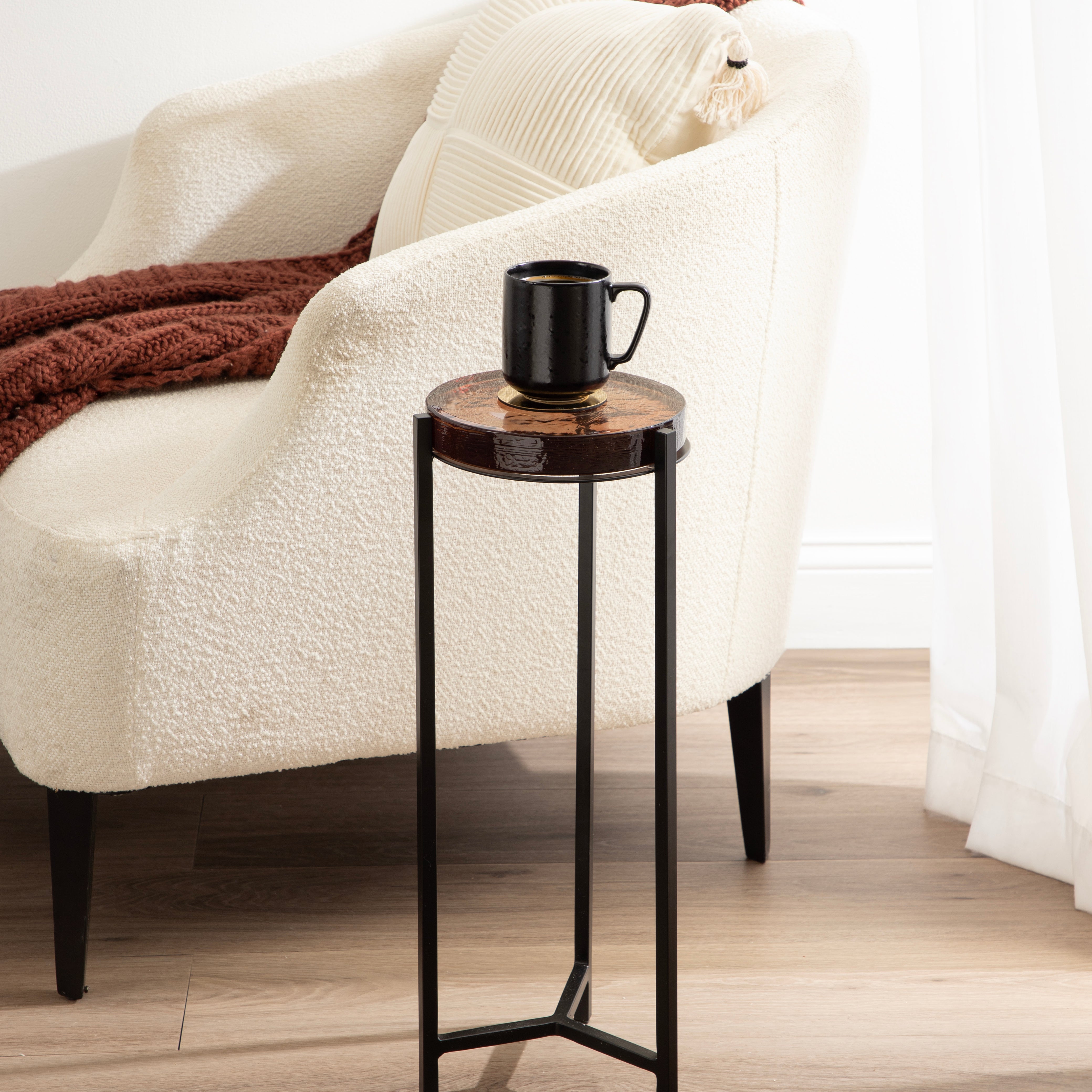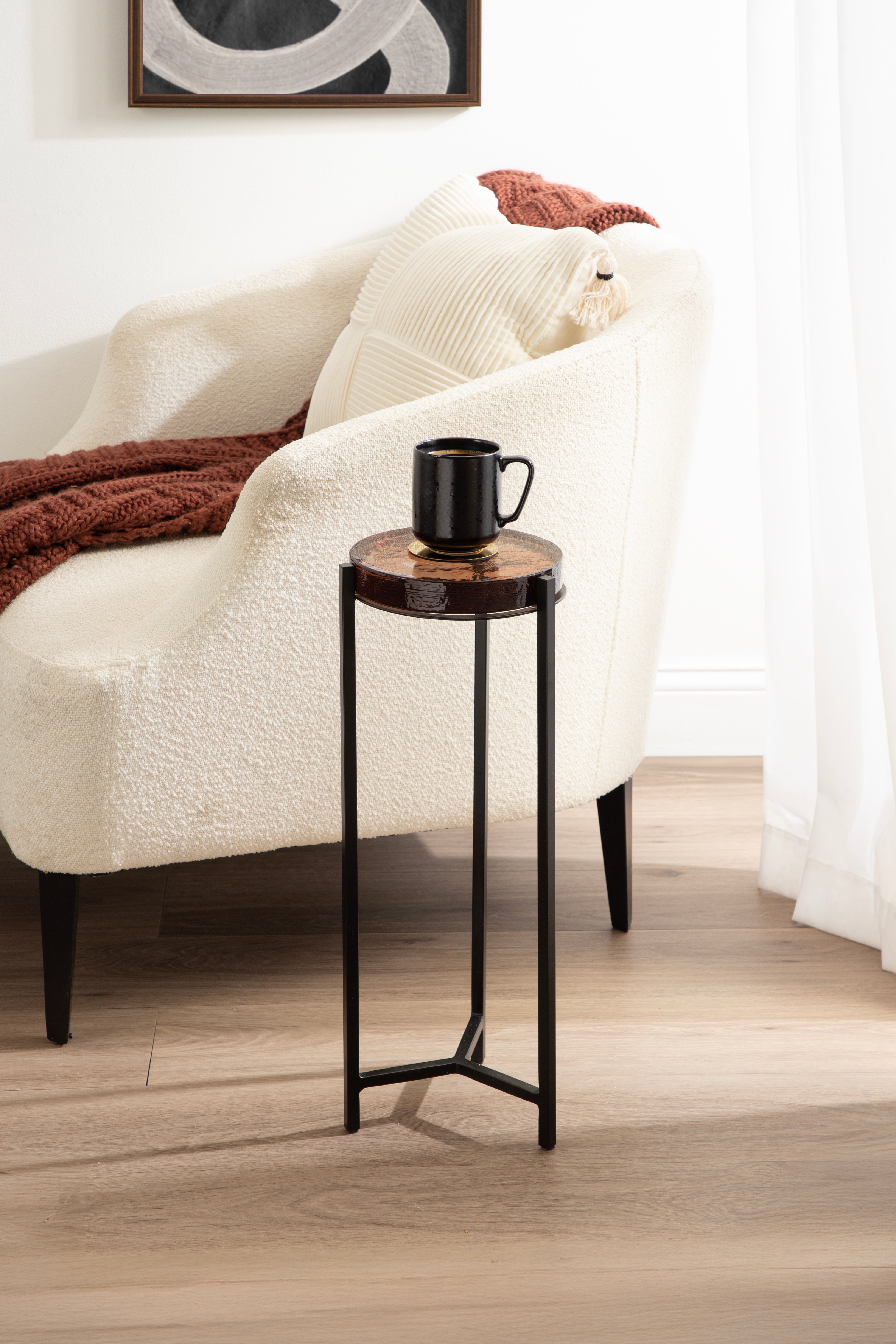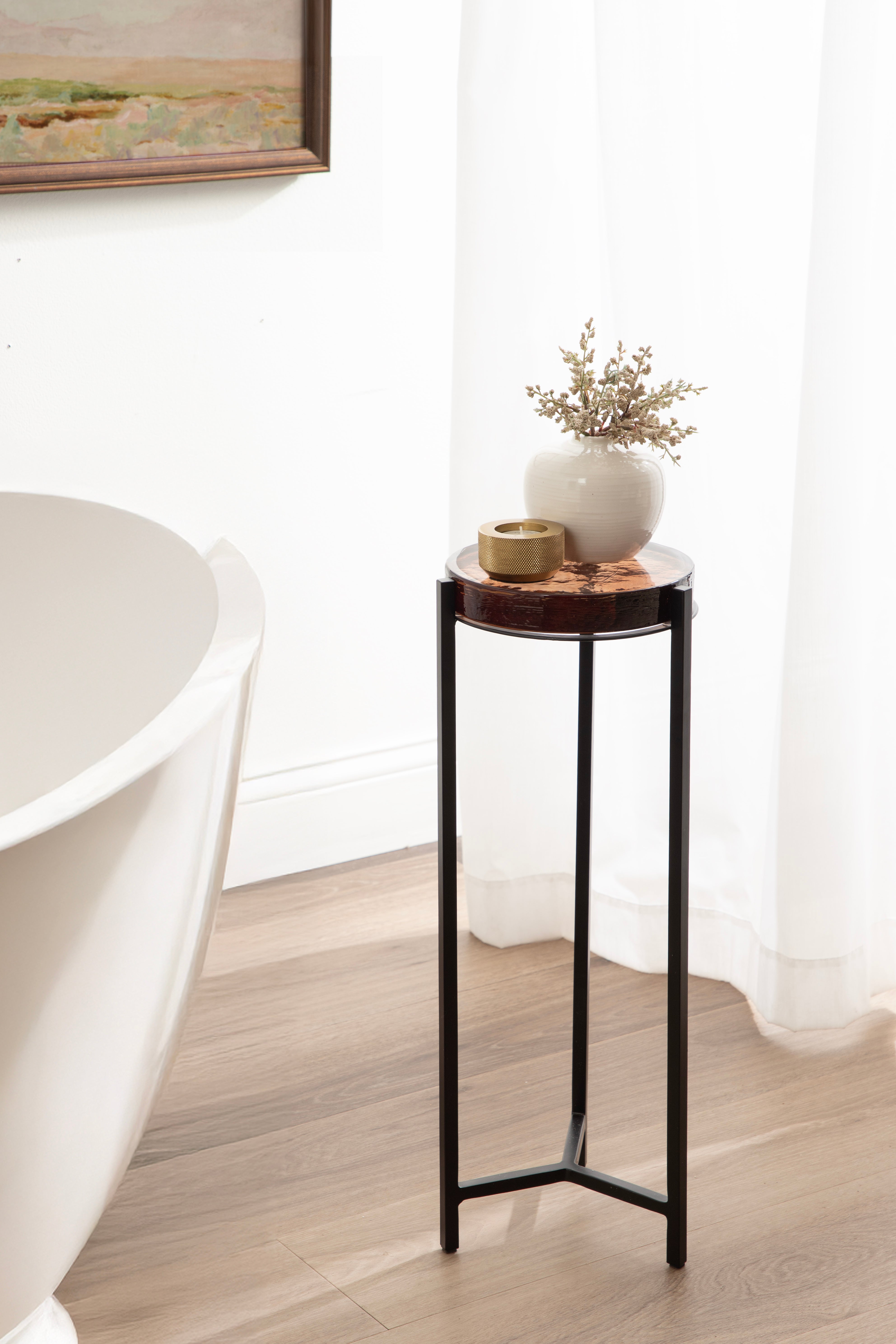The Aguilar table is a sophisticated accent piece that brings elevated style and glamour to any space in your home. This tabletop is supported by a beautiful, metal frame with a sleek finish, giving it a glamorous look that stands out. This table is fabulous for getting the conversation going at your next get-together while holding a cosmopolitan or a charming statement piece.
