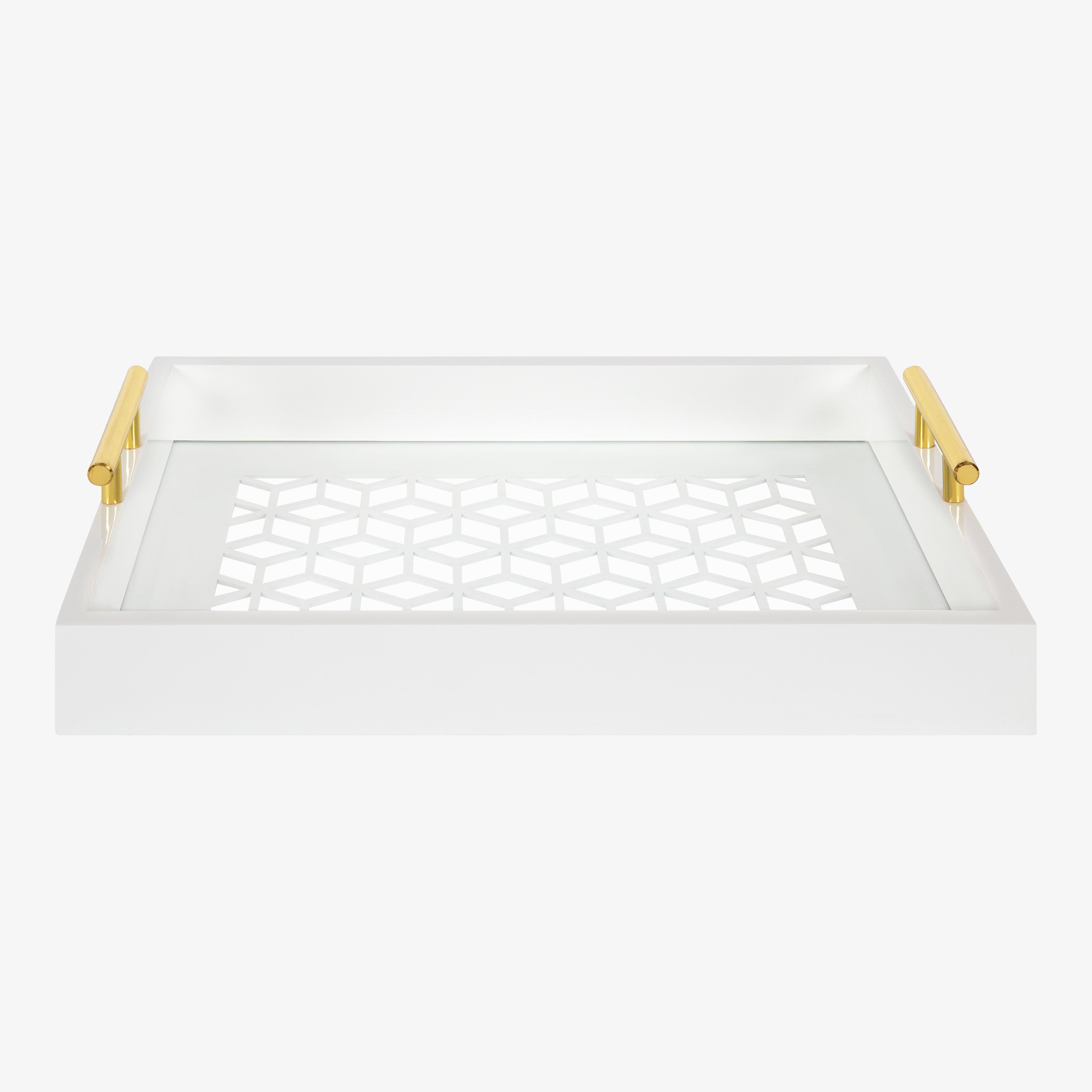 A decorative wooden tray is one of those accent pieces that is not only handy to use but also can look so great styled on your coffee table or ottoman. The elegant look of the Caspen rectangle tray creates fashionable function in an ingenious design. The subtle geometric cut of the wooden base adds a bit of ornate interest while the glass that covers it ensures a smooth surface for placing everything from drinks to perfumes.