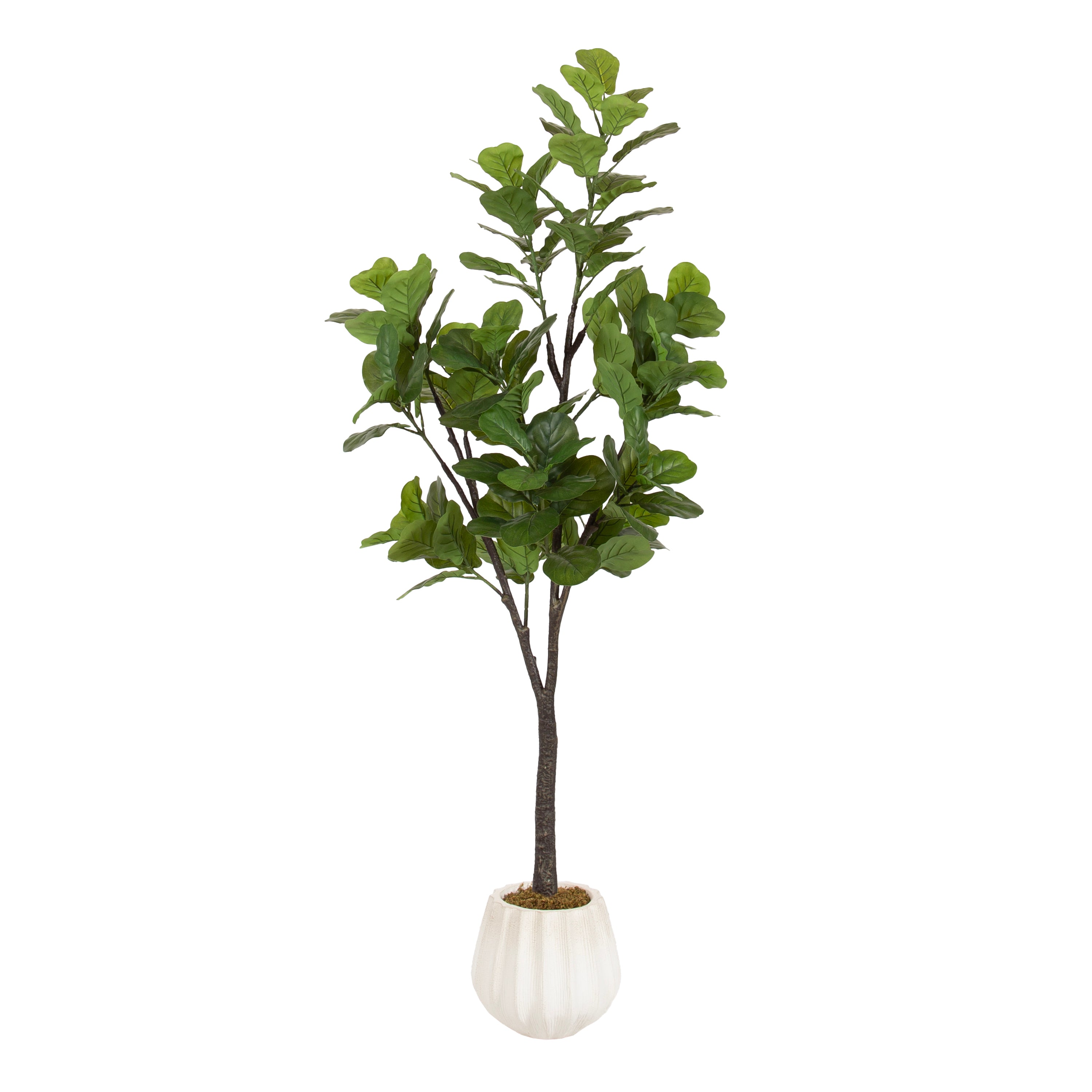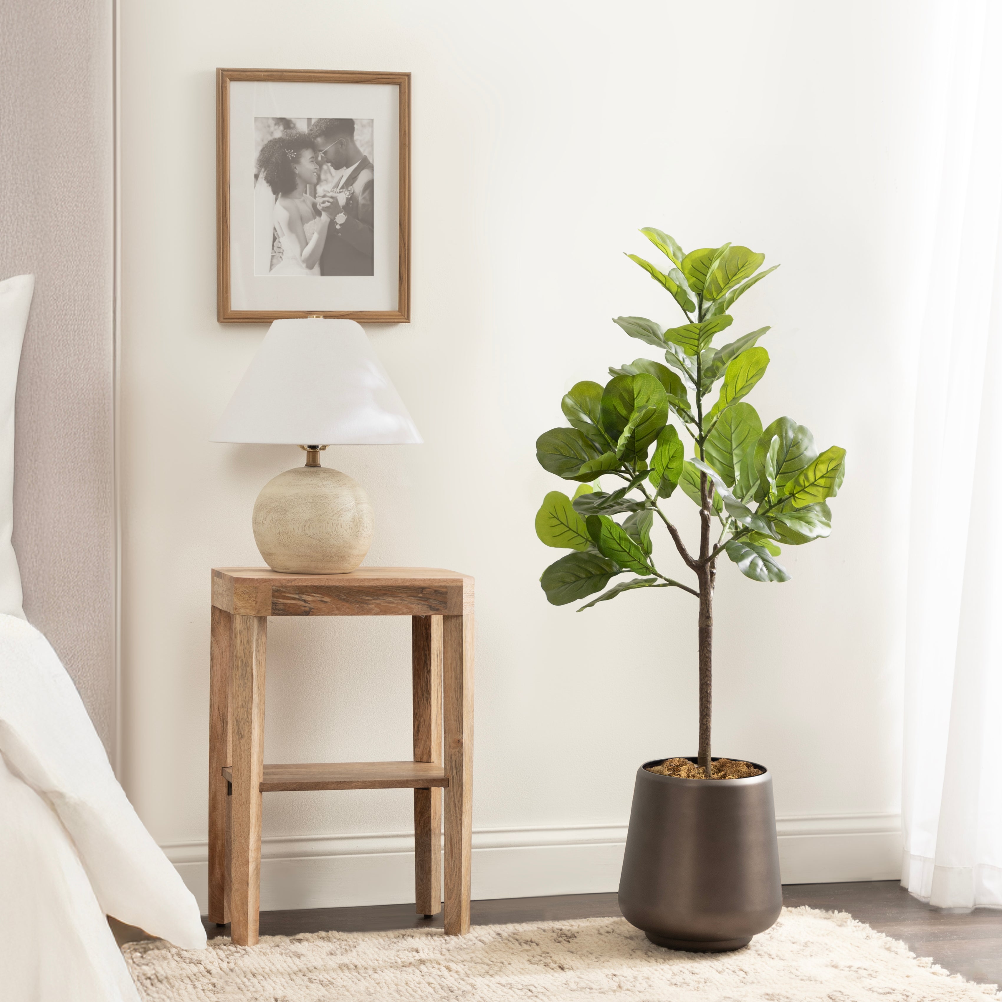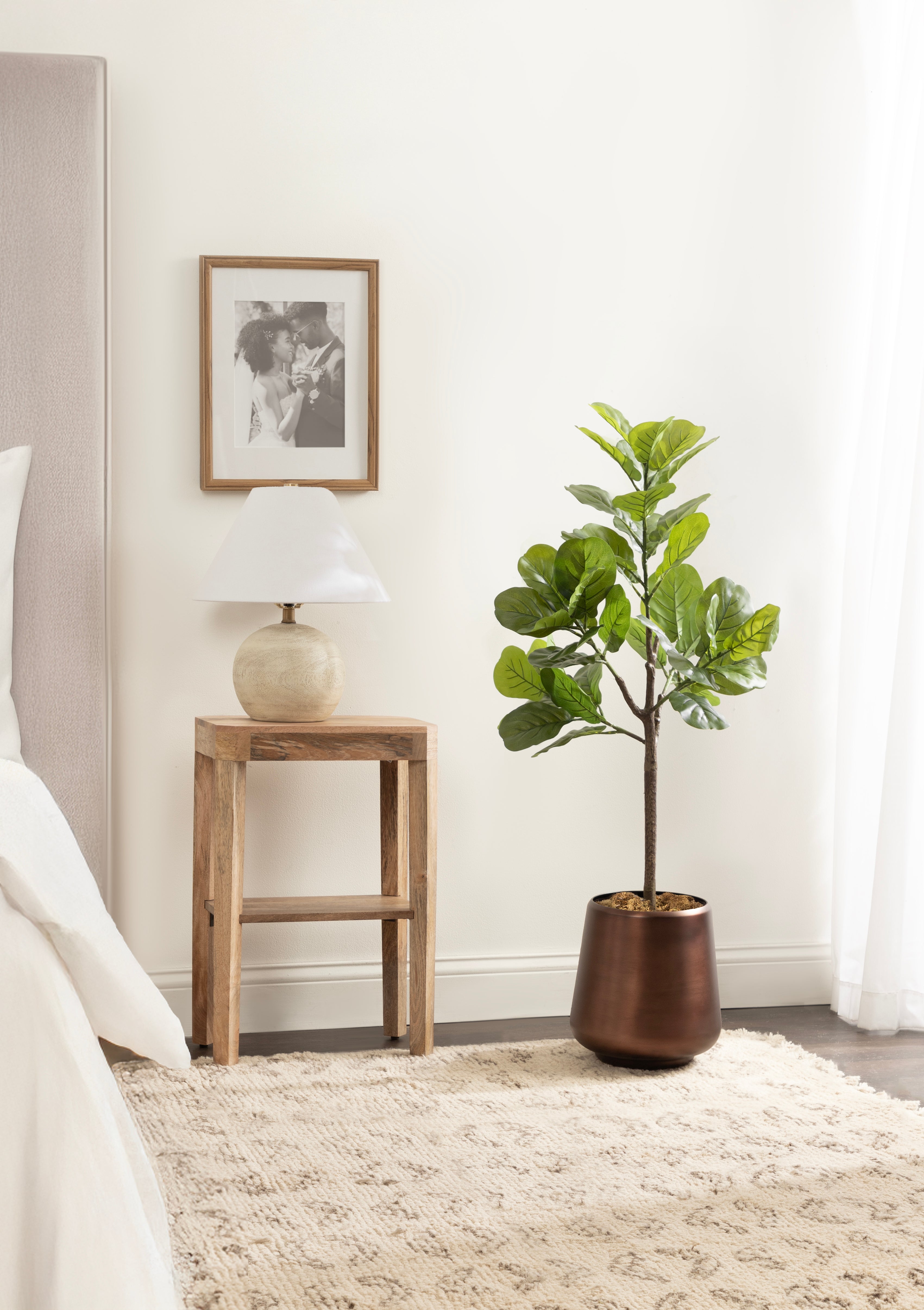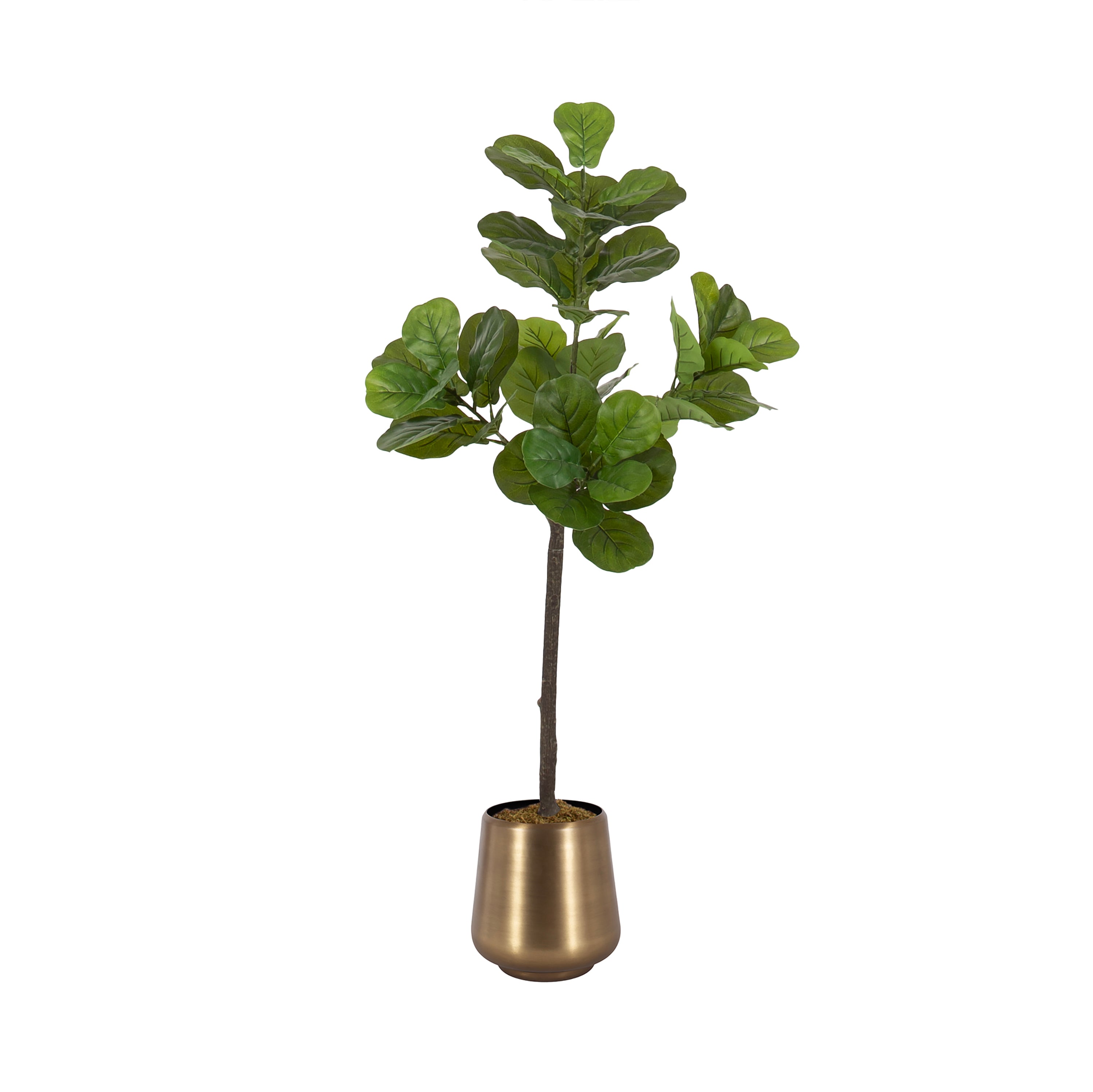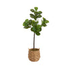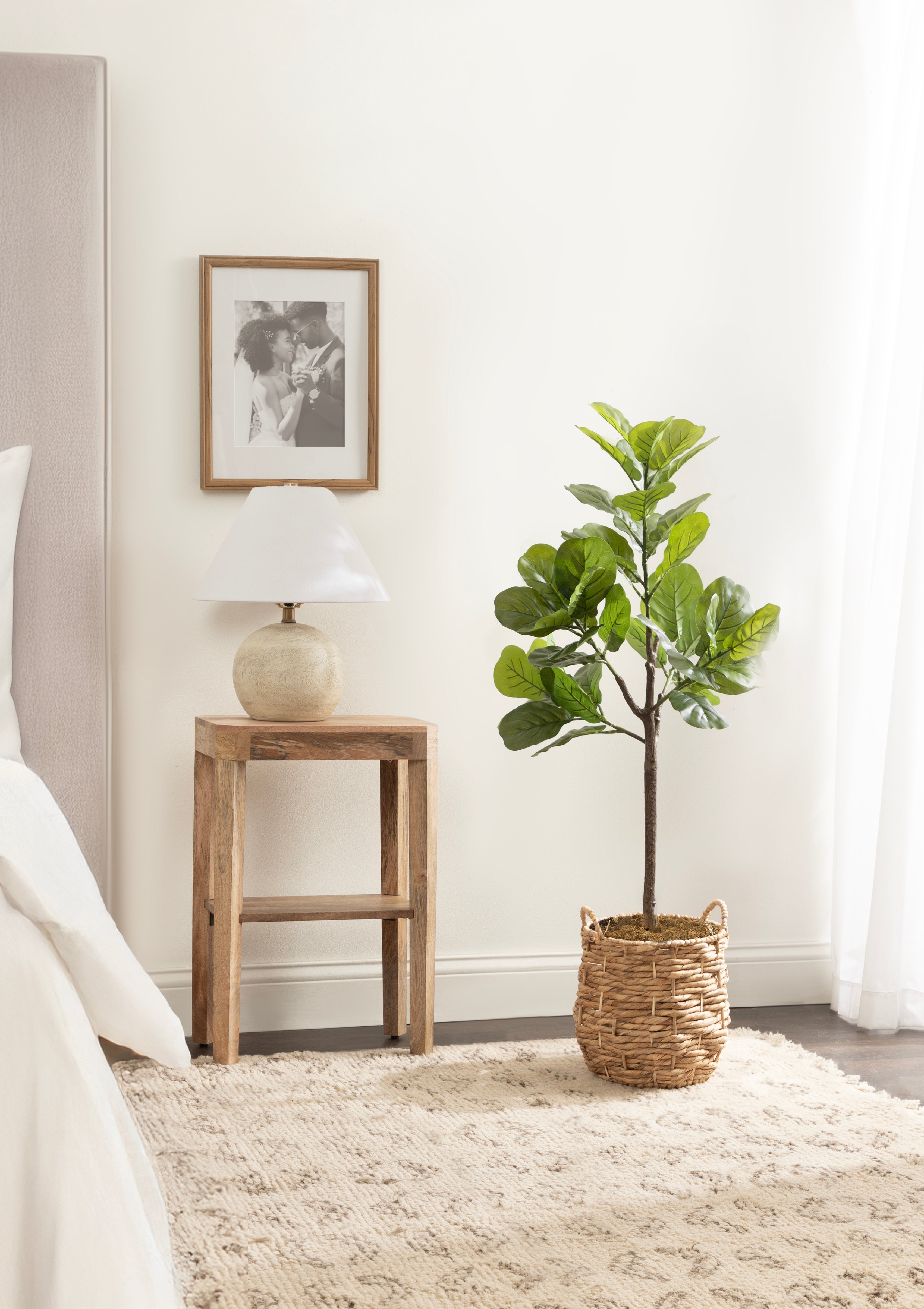 Bring natural beauty into your home—without the upkeep—with the Kate and Laurel Fidmont faux fiddle fig tree. Its broad, leathery green fiddle fig leaves are carefully crafted for a detailed, realistic tree appearance, arranged along slender, flexible branches to mimic the real thing. Whether you're looking to add texture to your living room, brighten up an office corner, or introduce a calming touch to your bedroom, this faux tree delivers elevated style without demanding sunlight or watering. Housed in a black nursery pot, the Fidmont faux tree comes pre-potted and ready to display after easily and quickly inserting the branches into the base. The sturdy nursery pot ensures stability while offering the flexibility to place it in a decorative basket or planter of your choice for a personalized touch. To enhance its realistic look, the tree comes with a bag of decorative moss to help fill your planter pot of choice. Unlike live plants, the Fidmont requires zero maintenance. Perfect for plant lovers who lack a green thumb or anyone who appreciates the serene beauty of indoor foliage.
