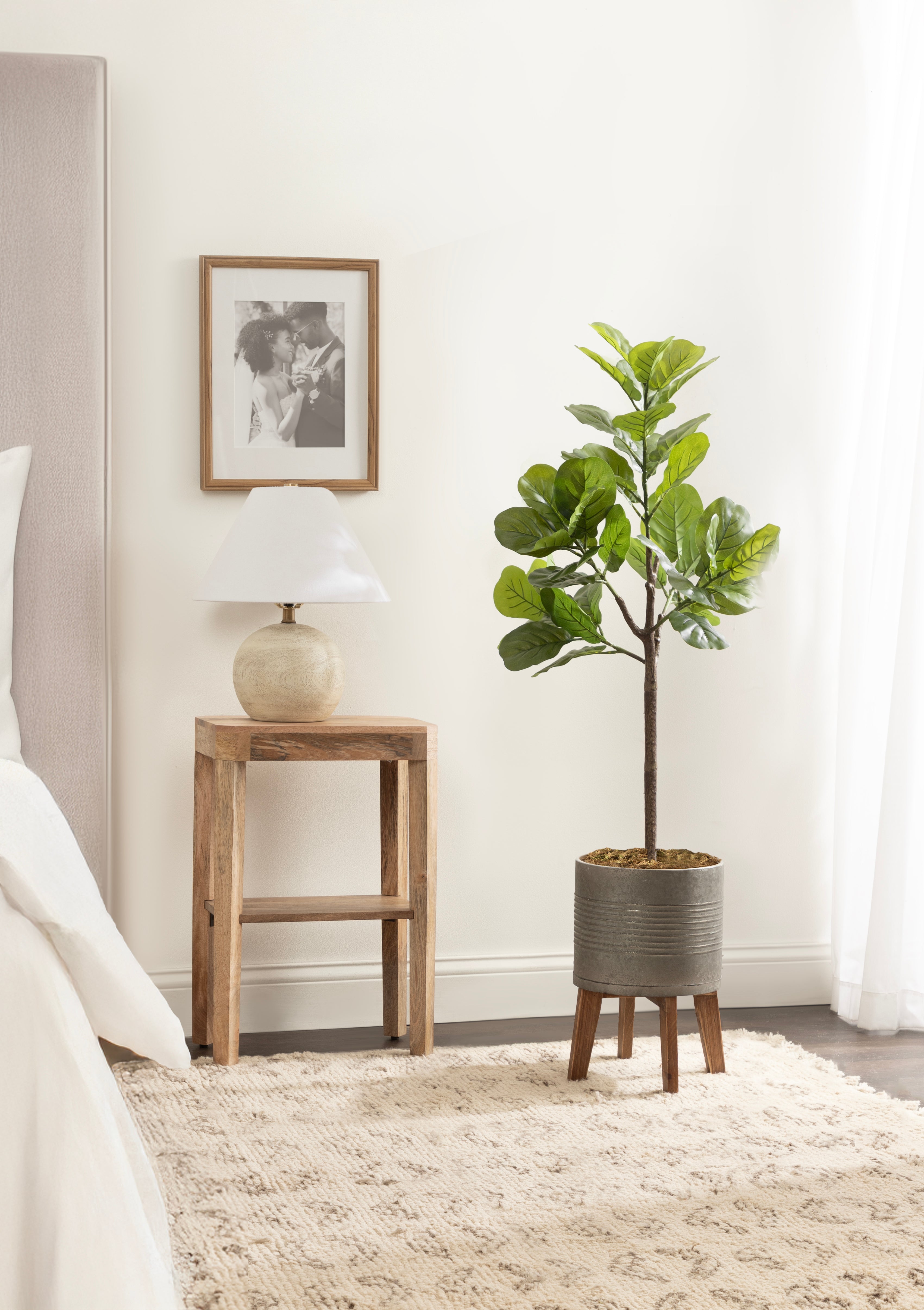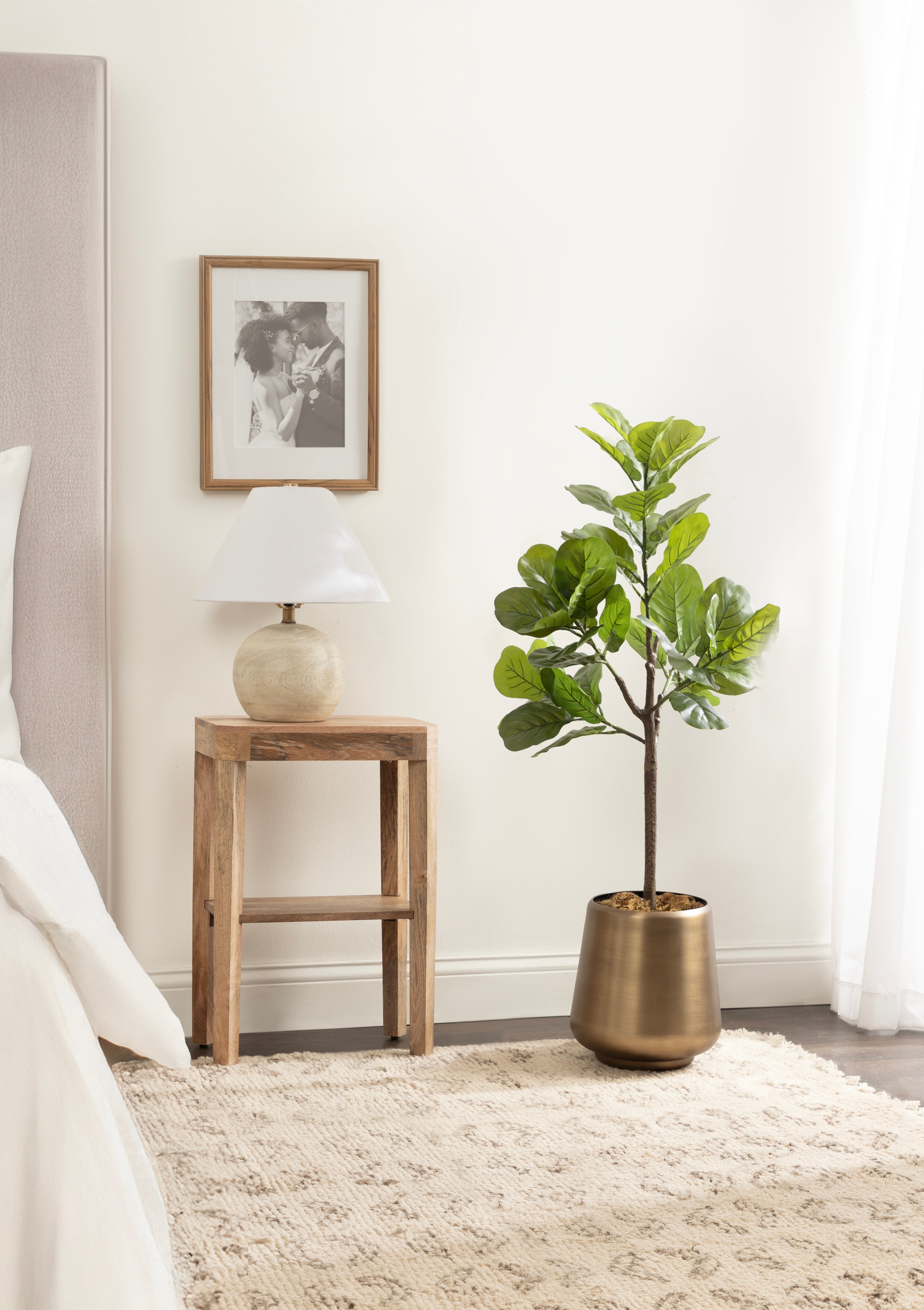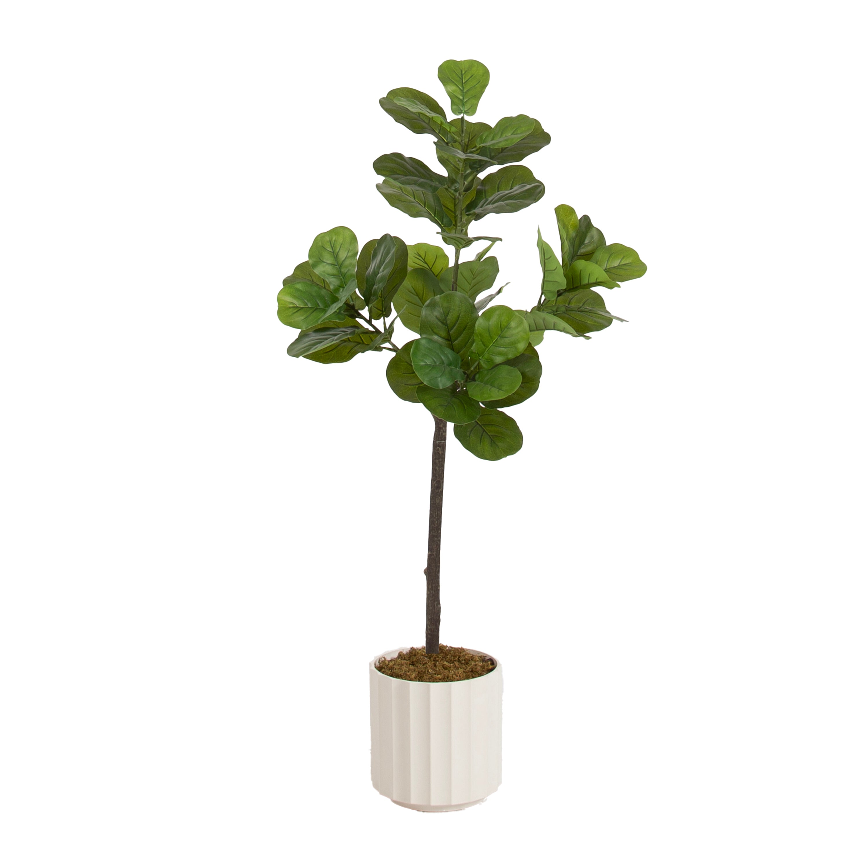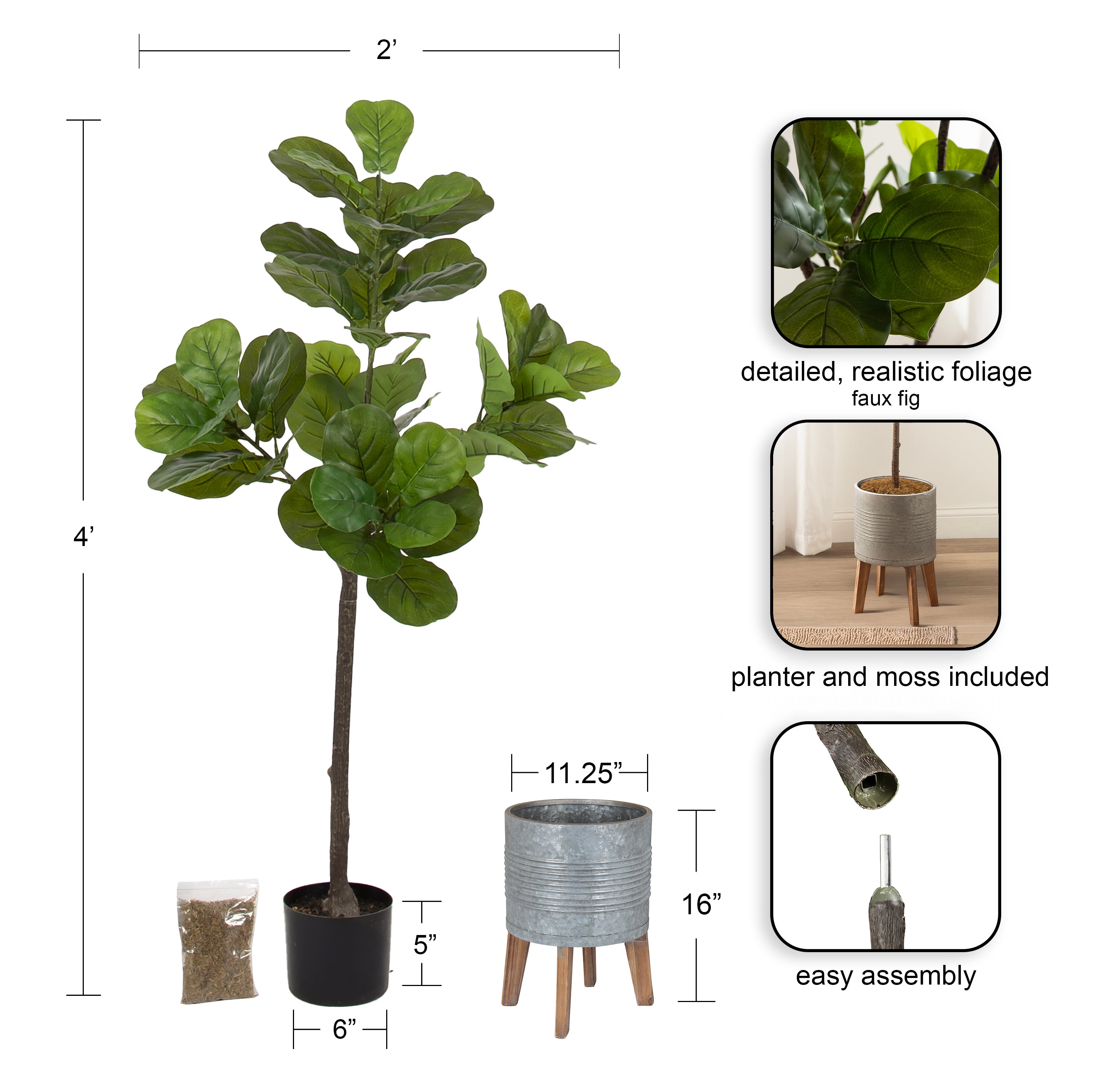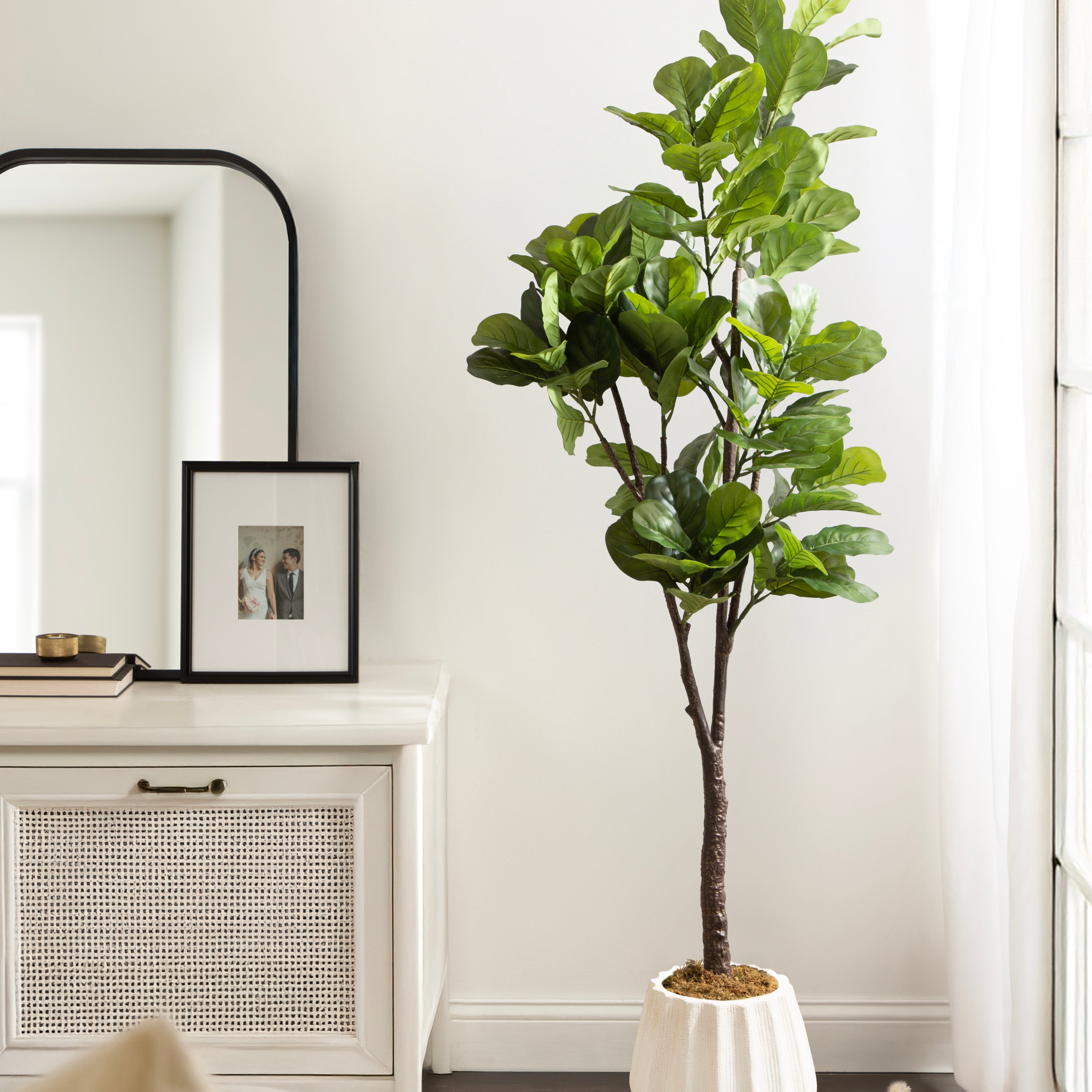 Bring natural beauty into your home—without the upkeep—with the Kate and Laurel Fidmont faux fiddle fig tree. Its broad, leathery green fiddle fig leaves are carefully crafted for a detailed, realistic tree appearance, arranged along slender, flexible branches to mimic the real thing. Whether you're looking to add texture to your living room, brighten up an office corner, or introduce a calming touch to your bedroom, this faux tree delivers elevated style without demanding sunlight or watering. Housed in a black nursery pot, the Fidmont faux tree comes pre-potted and ready to display after easily and quickly inserting the branches into the base. The sturdy nursery pot ensures stability while offering the flexibility to place it in a decorative basket or planter of your choice for a personalized touch. To enhance its realistic look, the tree comes with a bag of decorative moss to help fill your planter pot of choice. Unlike live plants, the Fidmont requires zero maintenance. Perfect for plant lovers who lack a green thumb or anyone who appreciates the serene beauty of indoor foliage.