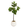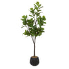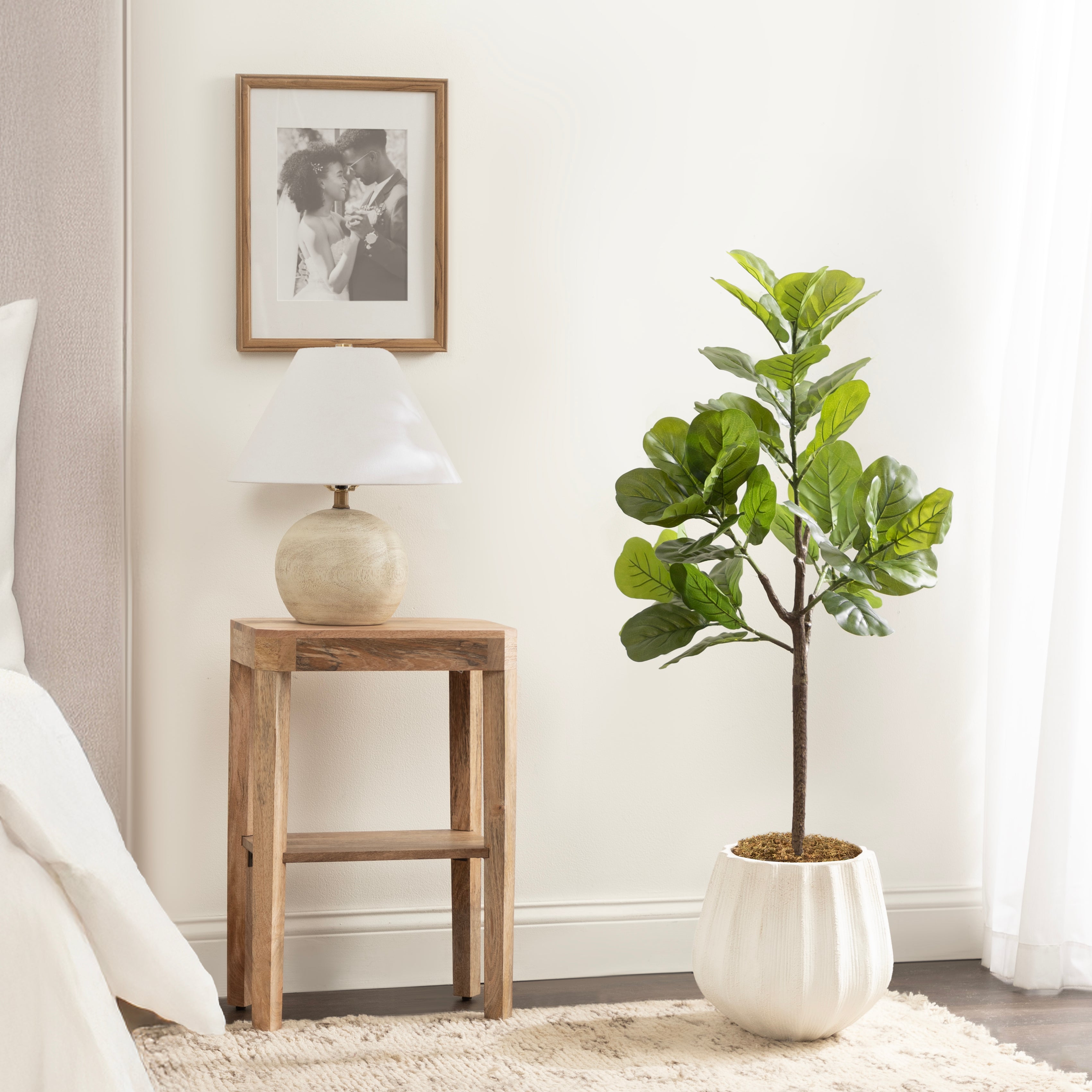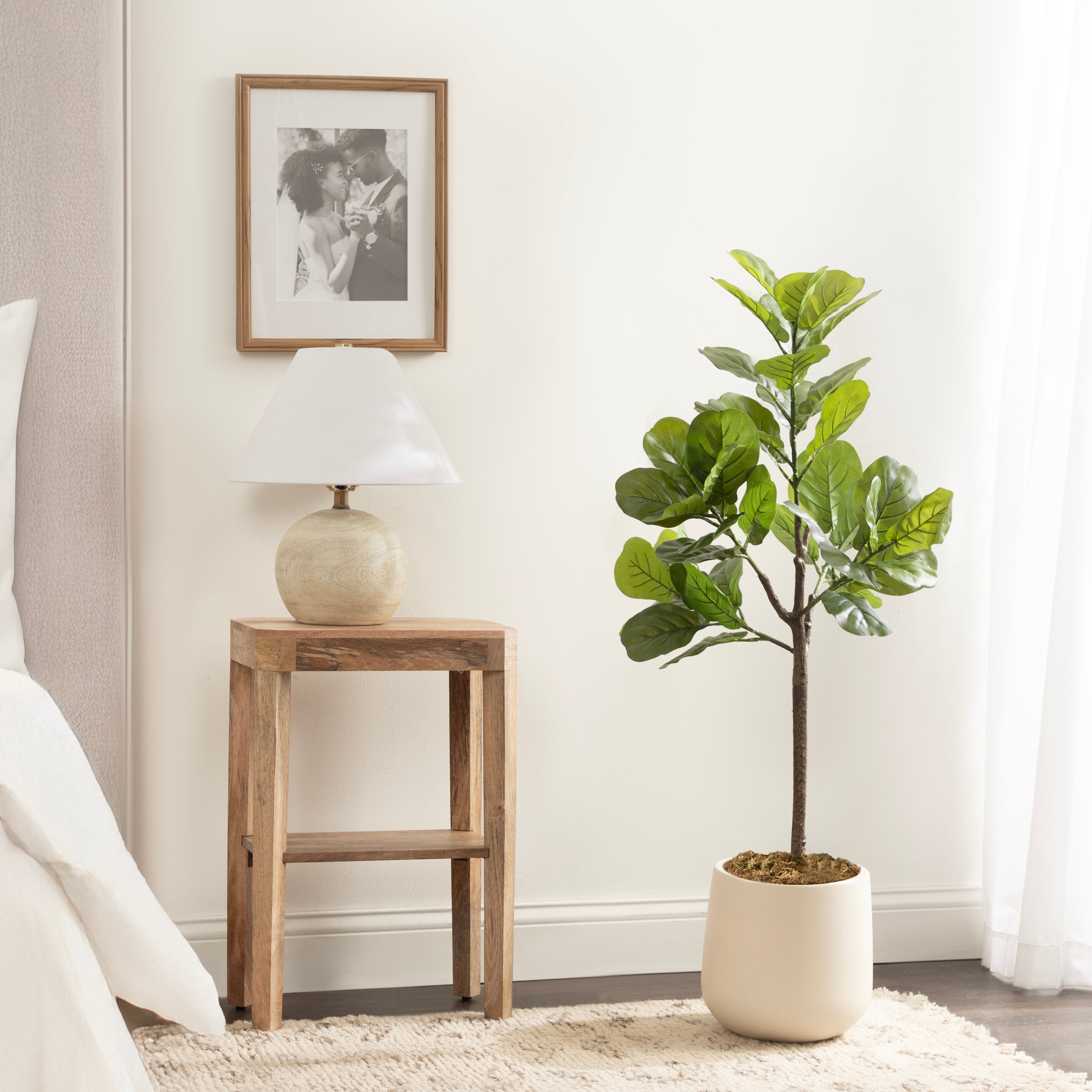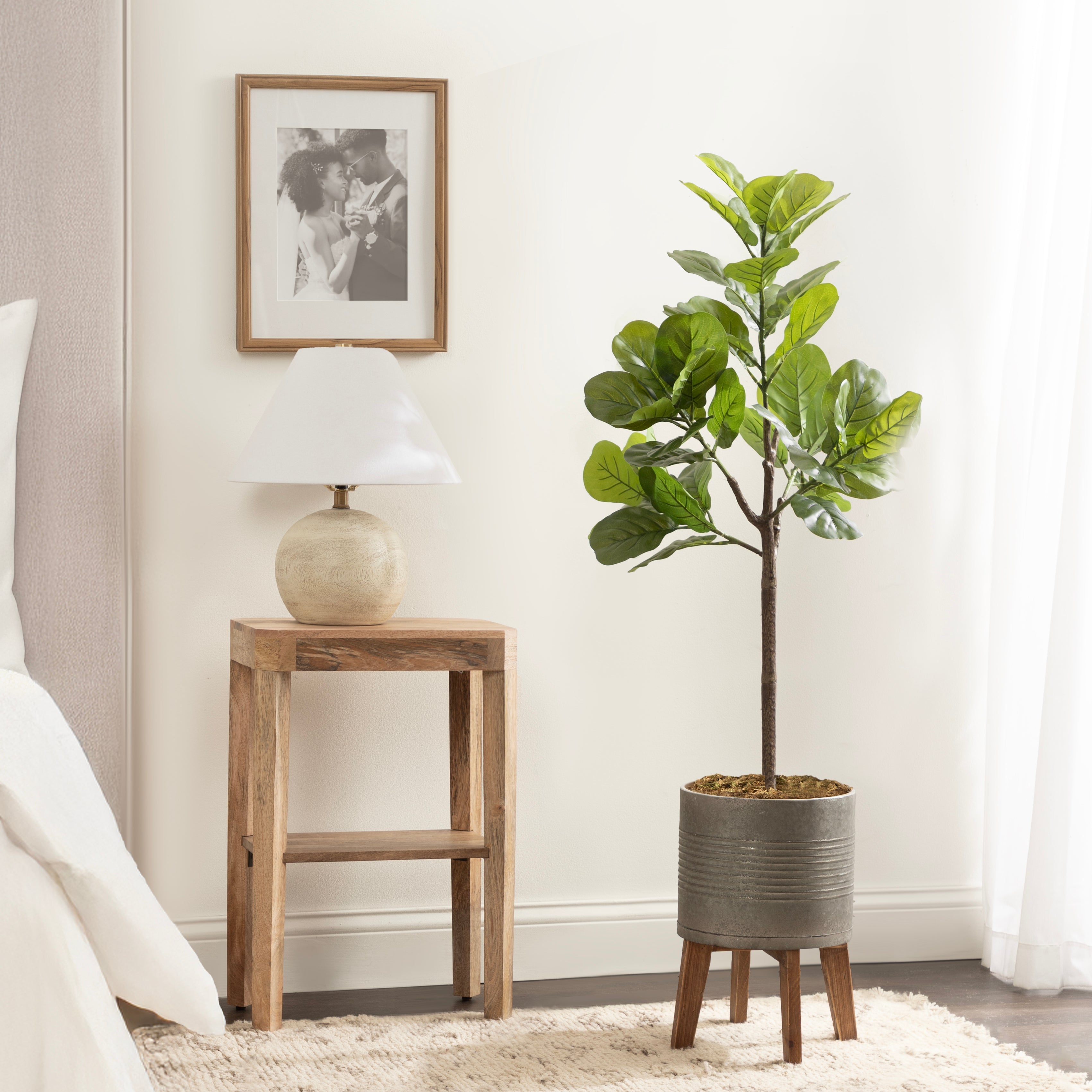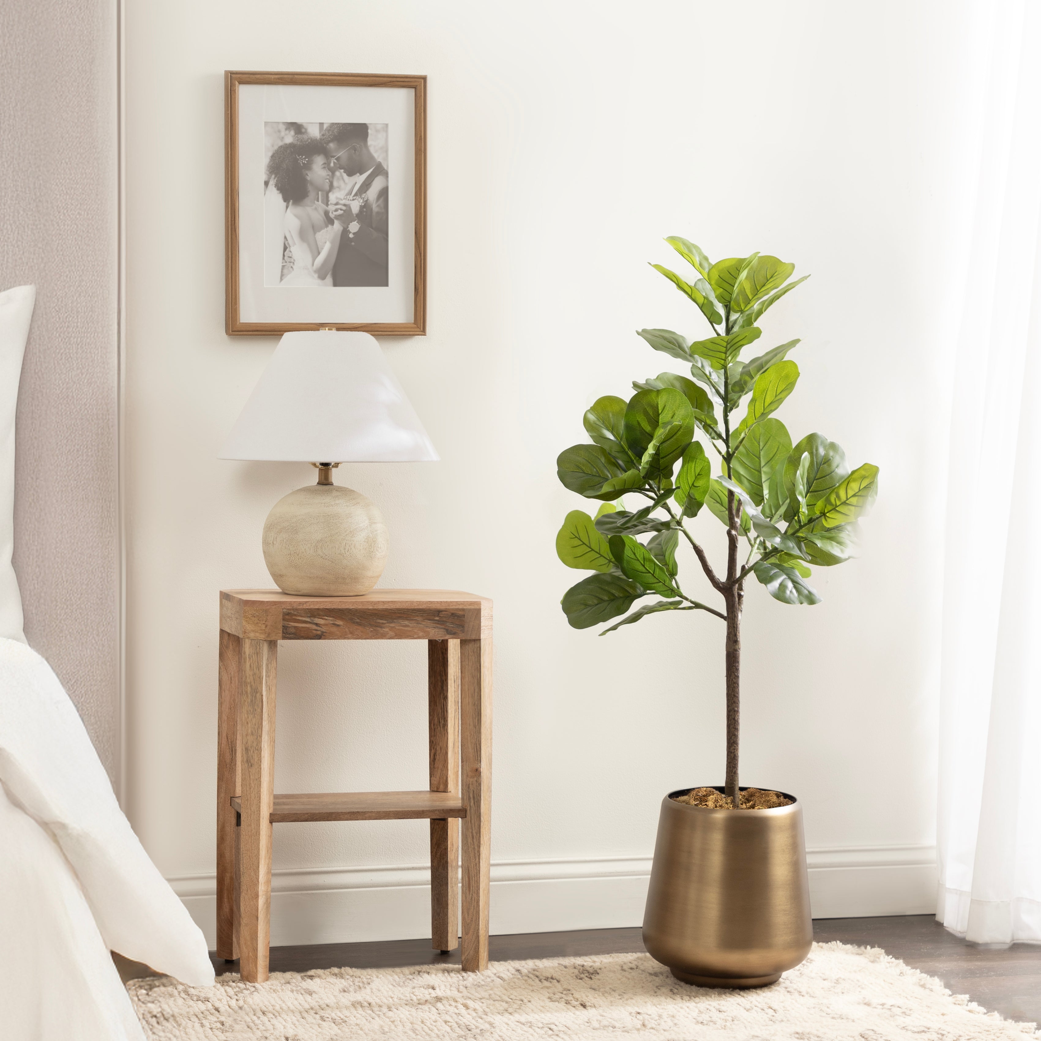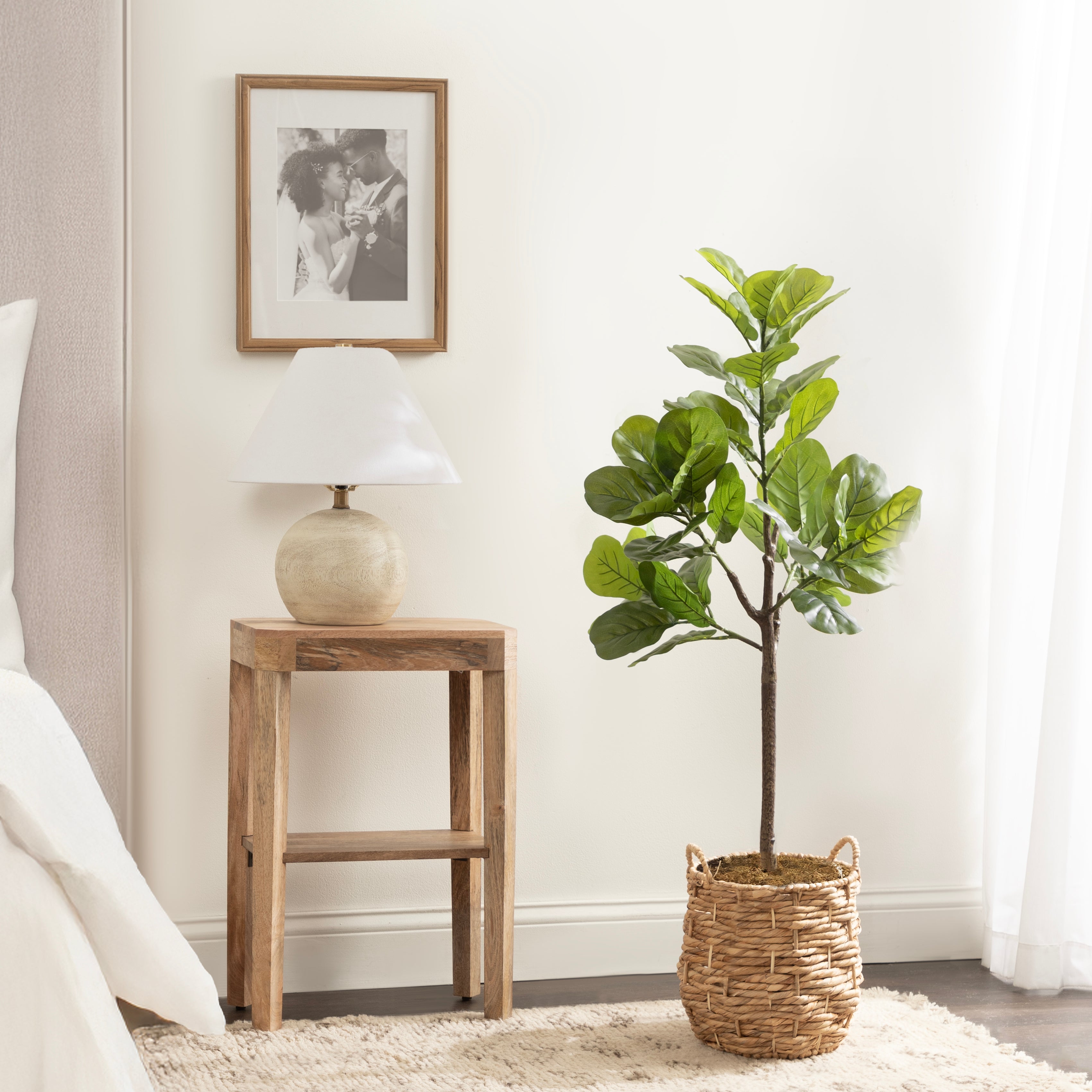 Bring natural beauty into your home—without the upkeep—with the Kate and Laurel Fidmont faux fiddle fig tree. Its broad, leathery green fiddle fig leaves are carefully crafted for a detailed, realistic tree appearance, arranged along slender, flexible branches to mimic the real thing. Whether you're looking to add texture to your living room, brighten up an office corner, or introduce a calming touch to your bedroom, this faux tree delivers elevated style without demanding sunlight or watering. Housed in a black nursery pot, the Fidmont faux tree comes pre-potted and ready to display after easily and quickly inserting the branches into the base. The sturdy nursery pot ensures stability while offering the flexibility to place it in a decorative basket or planter of your choice for a personalized touch. To enhance its realistic look, the tree comes with a bag of decorative moss to help fill your planter pot of choice. Unlike live plants, the Fidmont requires zero maintenance. Perfect for plant lovers who lack a green thumb or anyone who appreciates the serene beauty of indoor foliage.