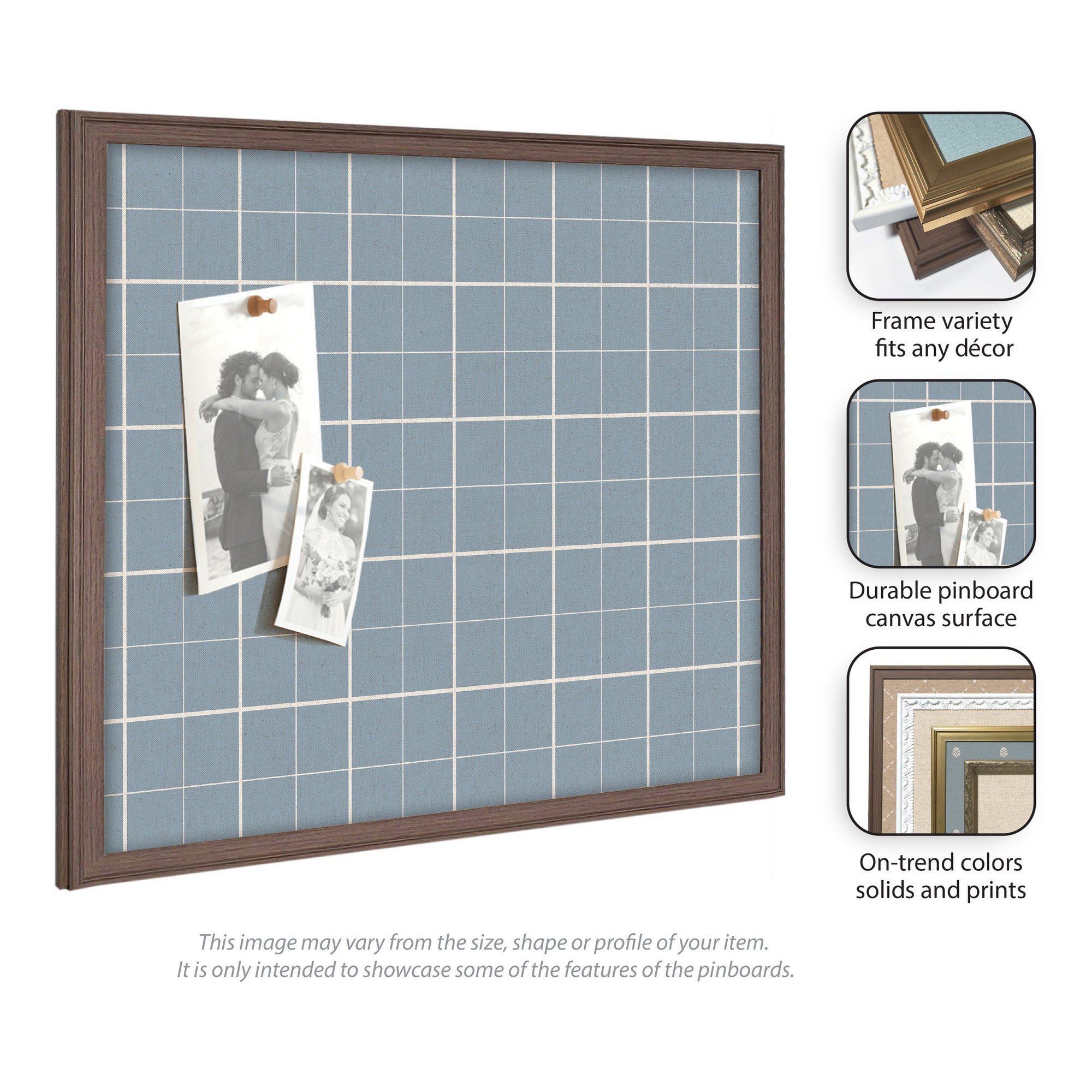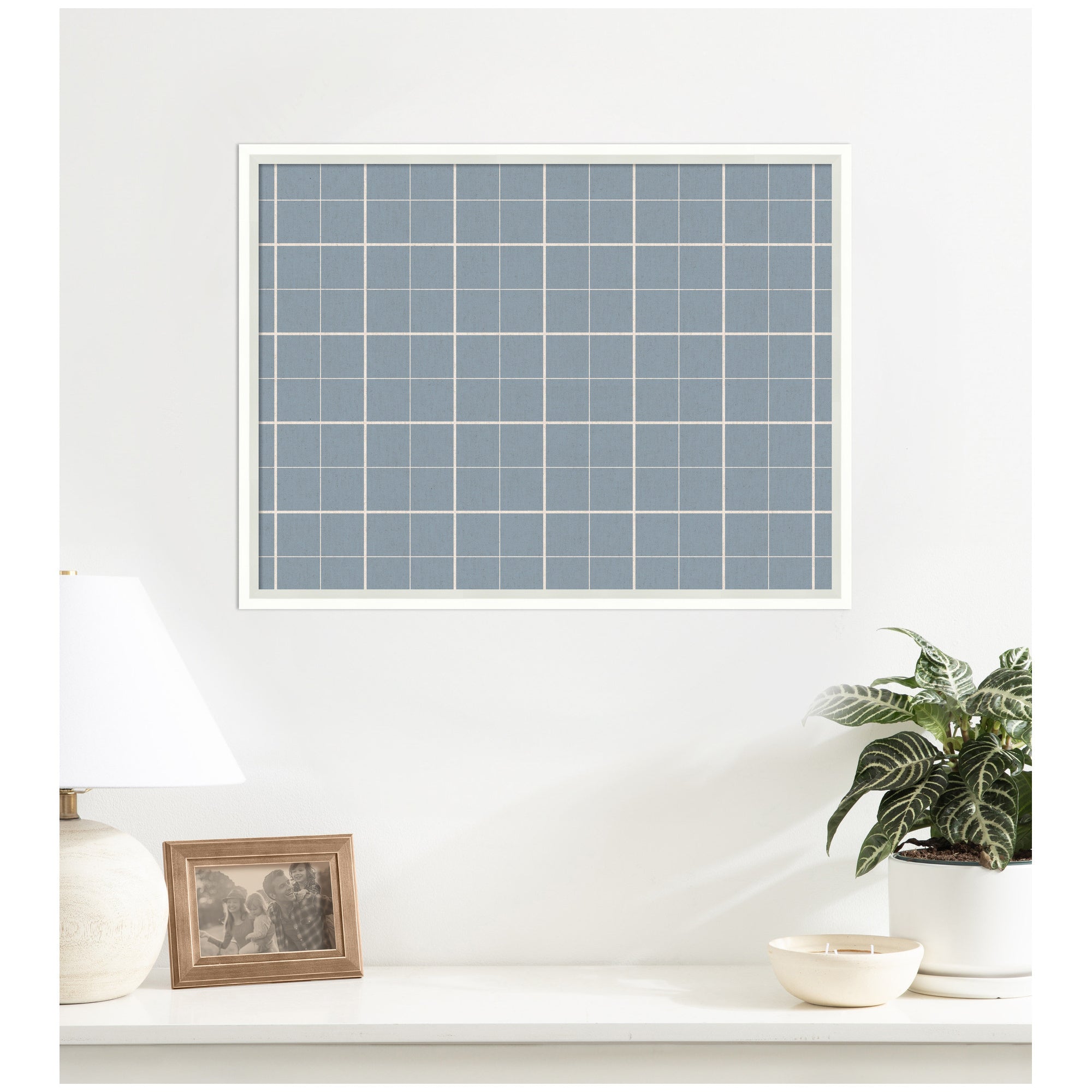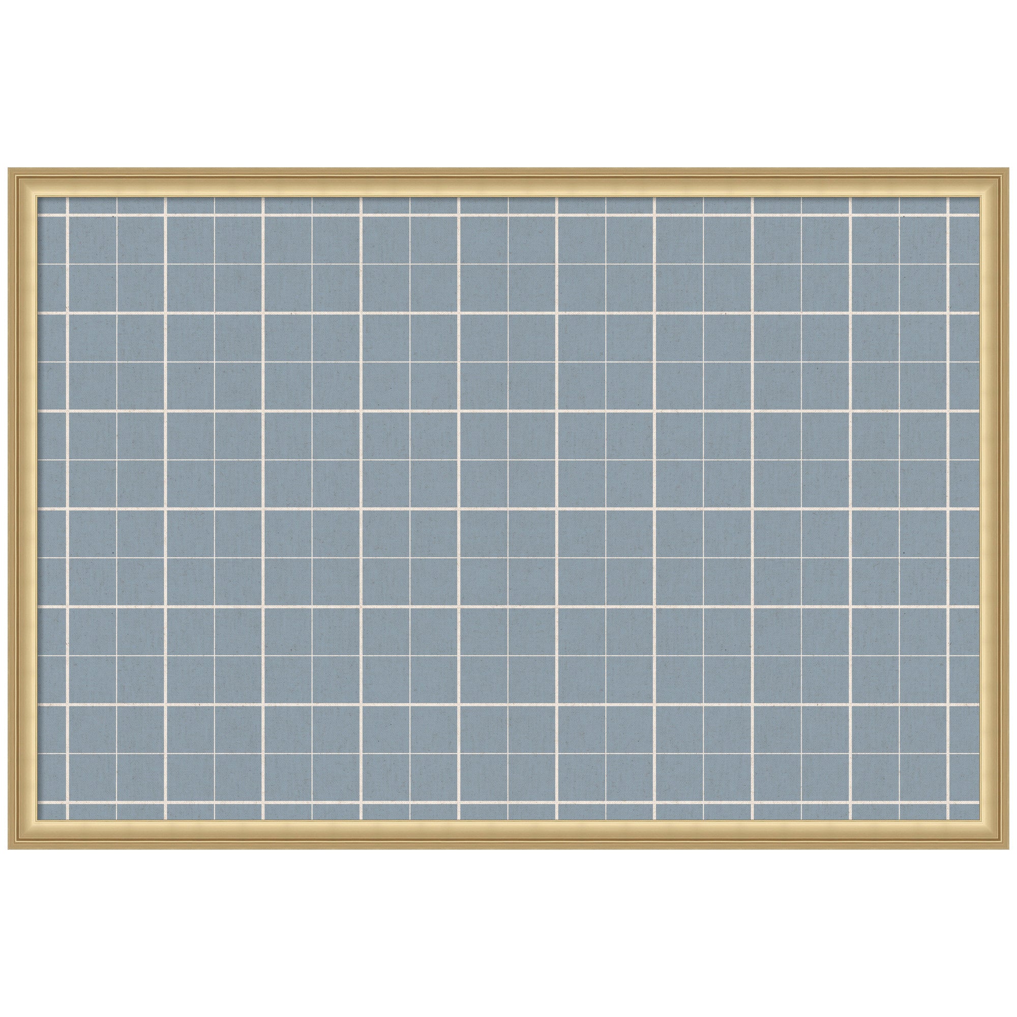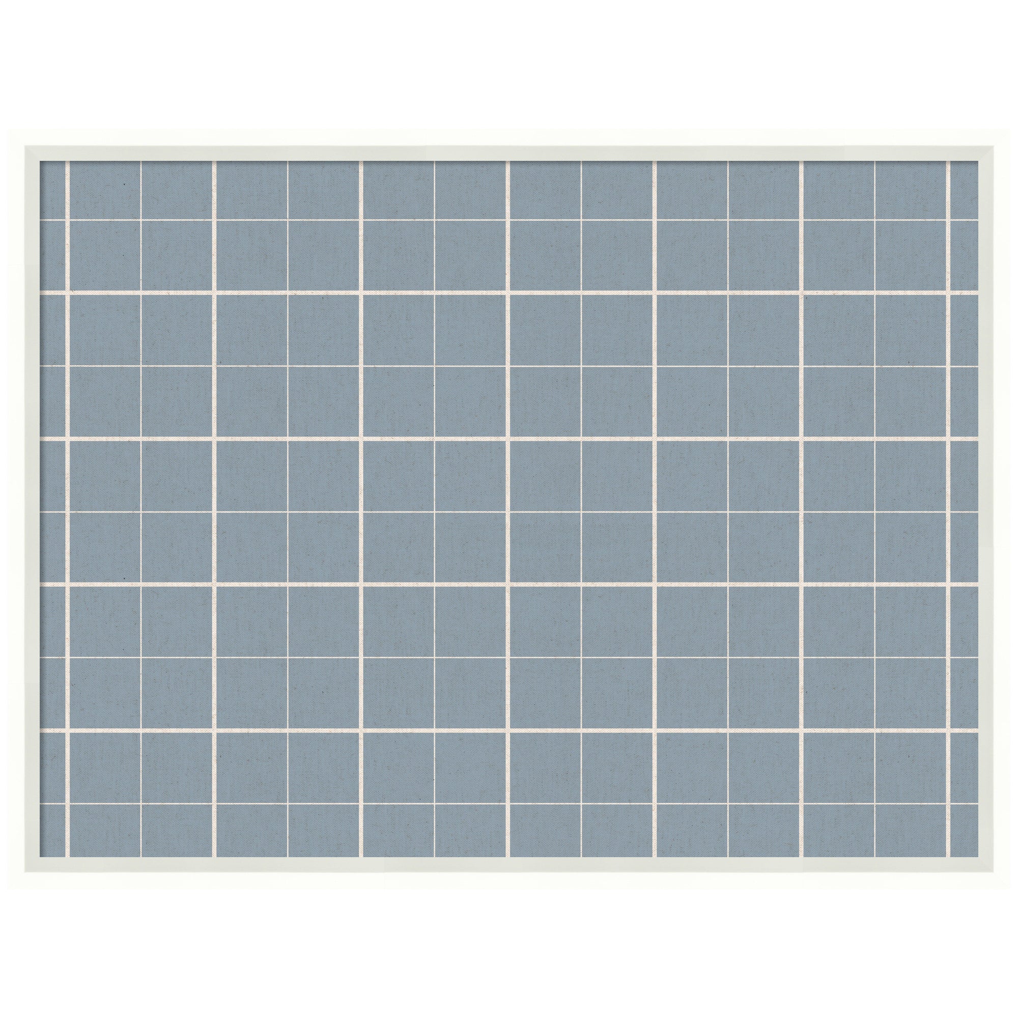 Organize your home in style with a fabric pinboard that has a sophisticated appeal. The muted blue geometric grid pattern accented with crisp white intersecting lines for a clean, minimalist look is inspired by the belief that organization doesn't have to be boring. The decorative pinboard has a lightweight construction with a high-quality, fabric pinning surface that allows pin to push fully in to showcase all your meaningful keepsakes. Use this functional, designer pinboard for hanging photos, wedding invitations, holiday cards, or even stellar report cards. As an stylish accent, the beautiful framed bulletin board looks excellent in any entryway, living room, bedroom, mudroom, or kitchen. It looks fantastic as a critical focal point in a family command center to post reminders, daily chores, or dinner schedules, too. Kick start your creativity in a craft room or creative space by using this accent as a memory or vision board. The pinboard hangs in a matter of seconds with convenient metal D-ring hangers attached to the back of the frame.
