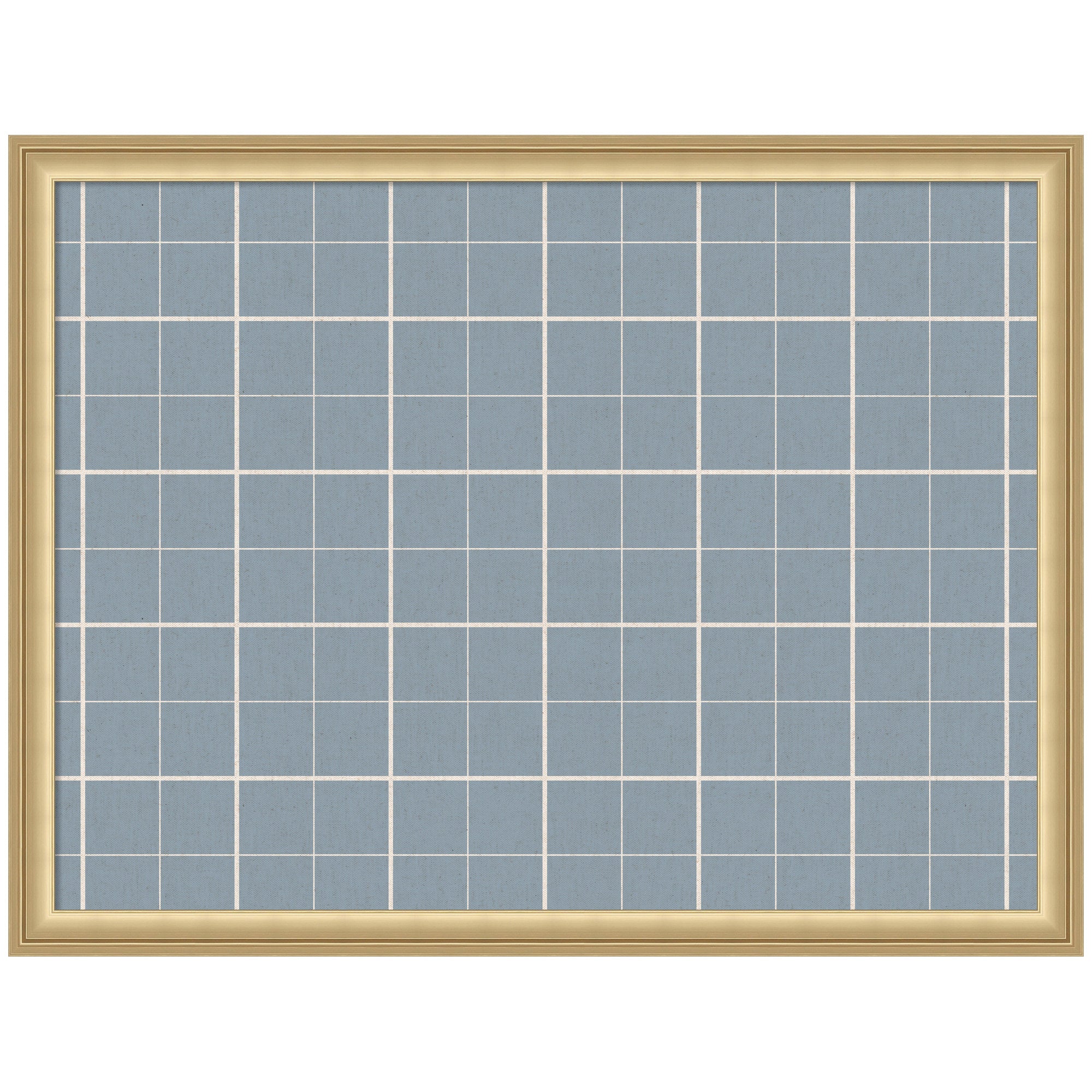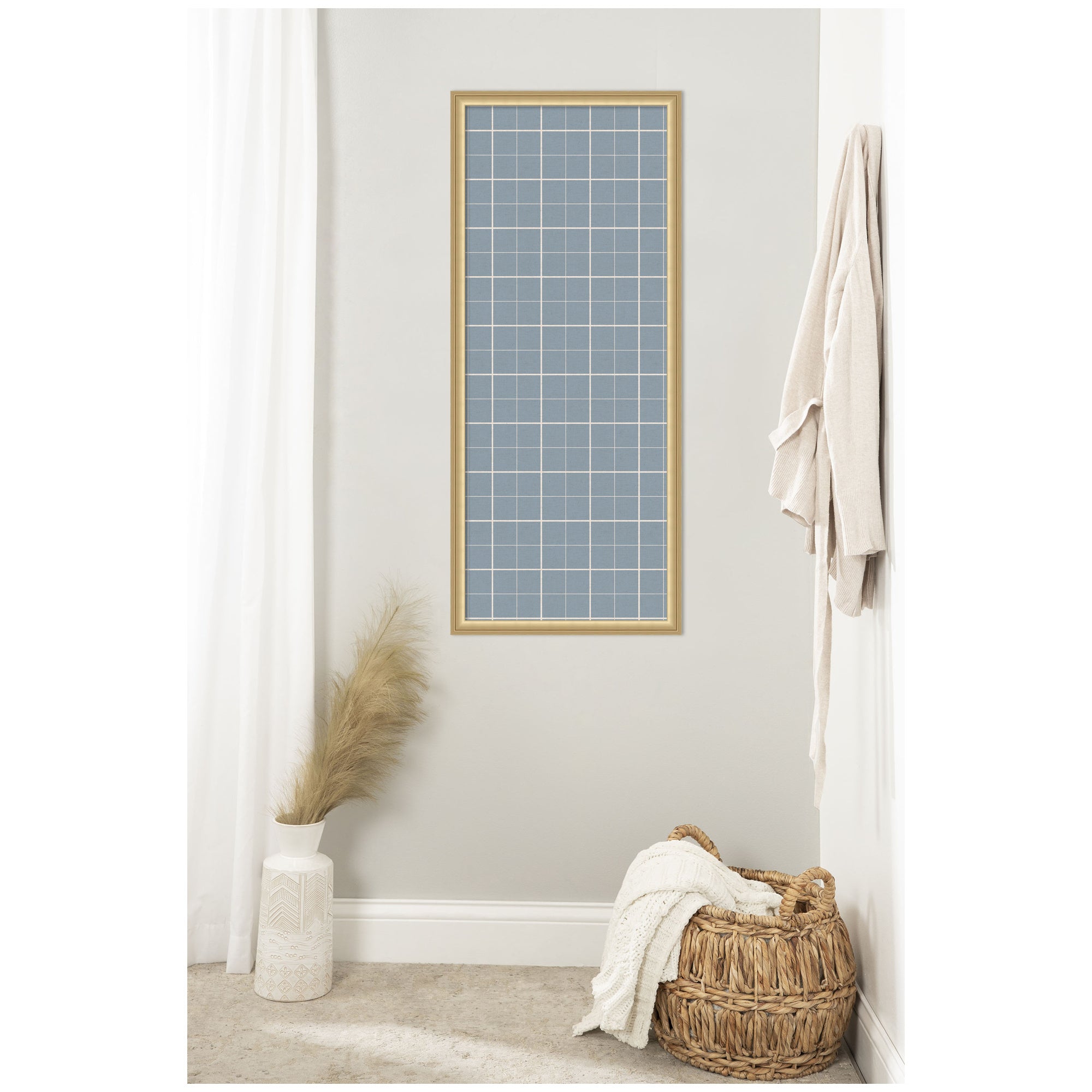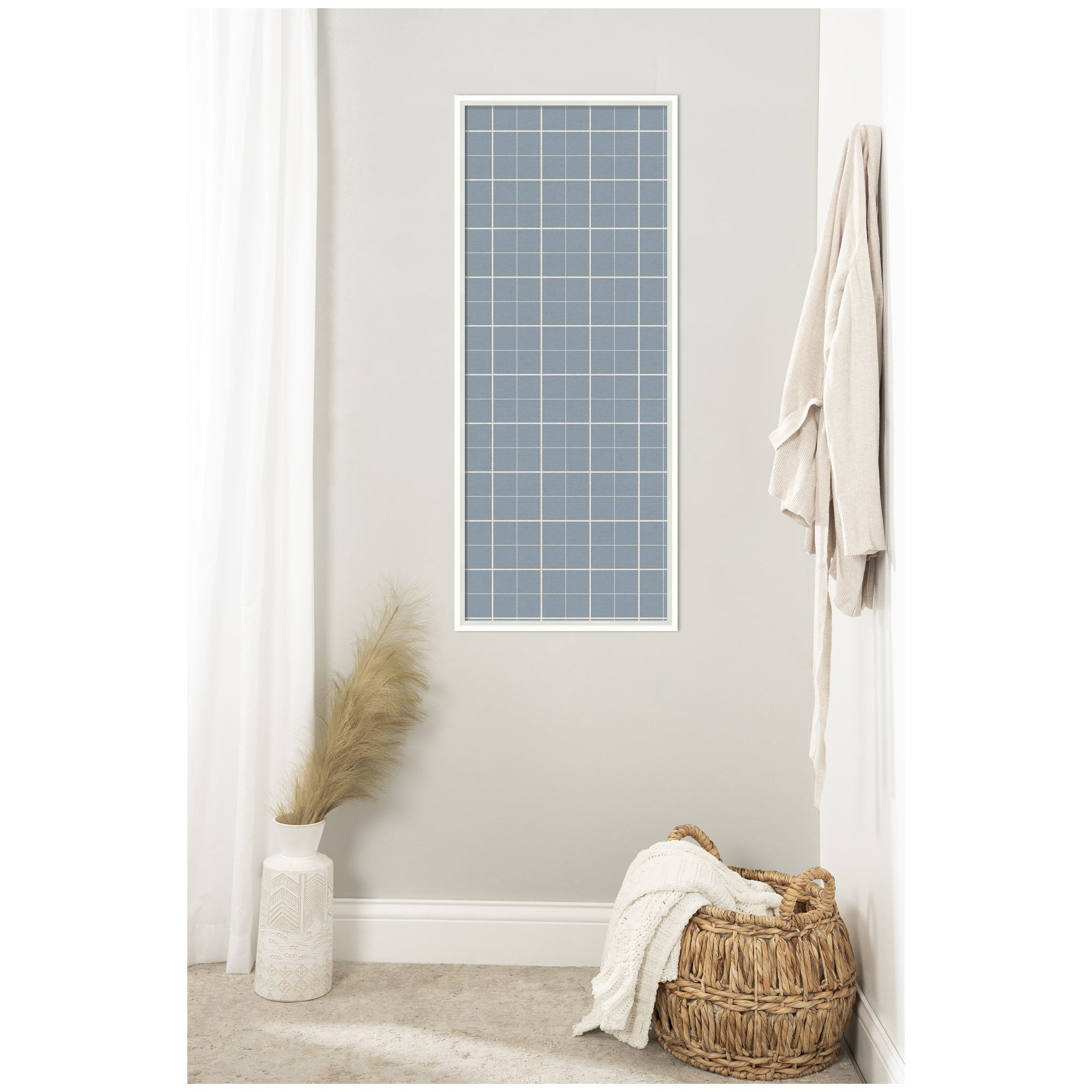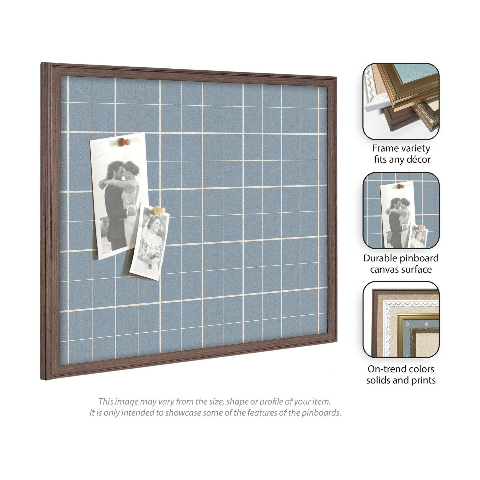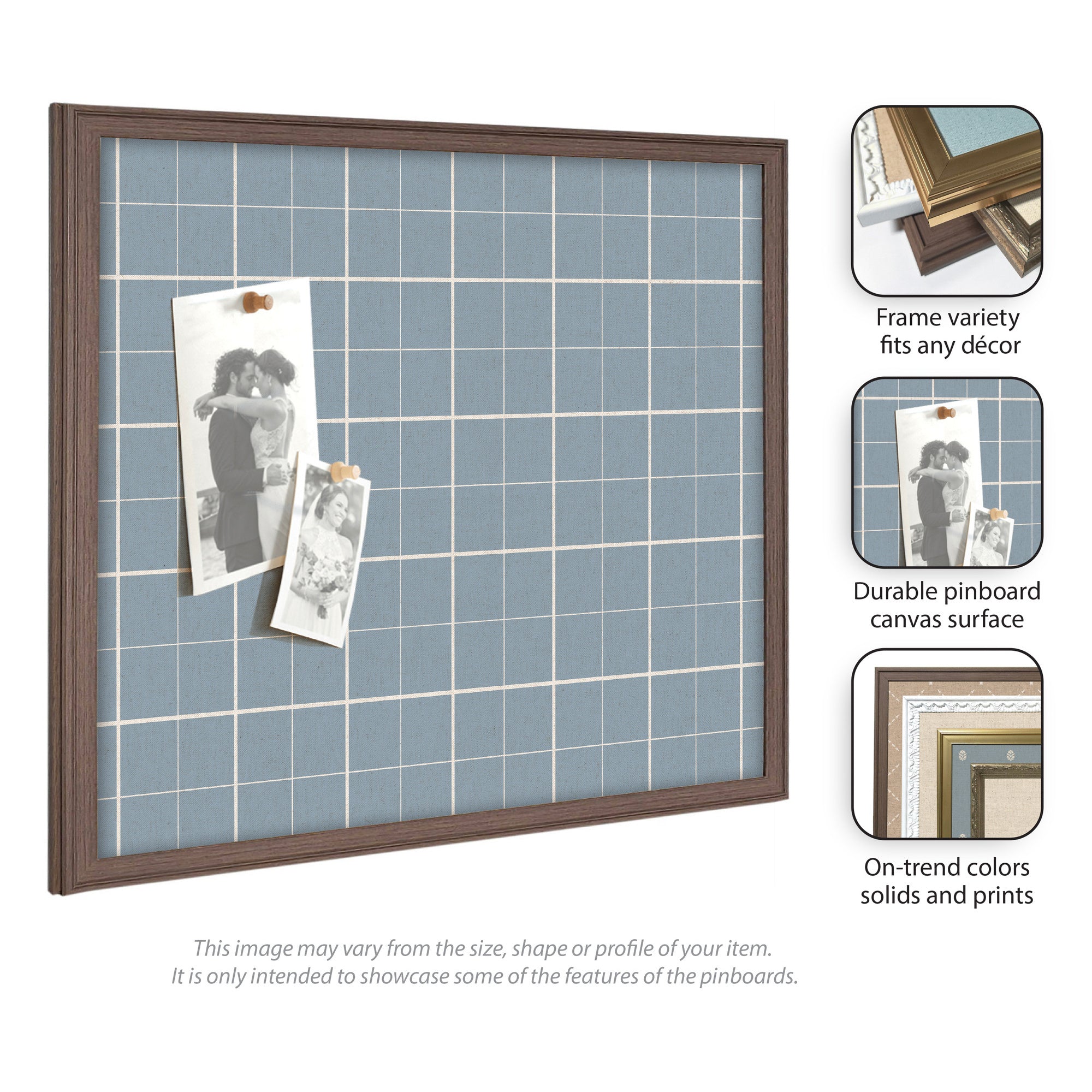 Organize your home in style with a fabric pinboard that has a sophisticated appeal. The muted blue geometric grid pattern accented with crisp white intersecting lines for a clean, minimalist look is inspired by the belief that organization doesn't have to be boring. The decorative pinboard has a lightweight construction with a high-quality, fabric pinning surface that allows pin to push fully in to showcase all your meaningful keepsakes. Use this functional, designer pinboard for hanging photos, wedding invitations, holiday cards, or even stellar report cards. As an stylish accent, the beautiful framed bulletin board looks excellent in any entryway, living room, bedroom, mudroom, or kitchen. It looks fantastic as a critical focal point in a family command center to post reminders, daily chores, or dinner schedules, too. Kick start your creativity in a craft room or creative space by using this accent as a memory or vision board. The pinboard hangs in a matter of seconds with convenient metal D-ring hangers attached to the back of the frame.