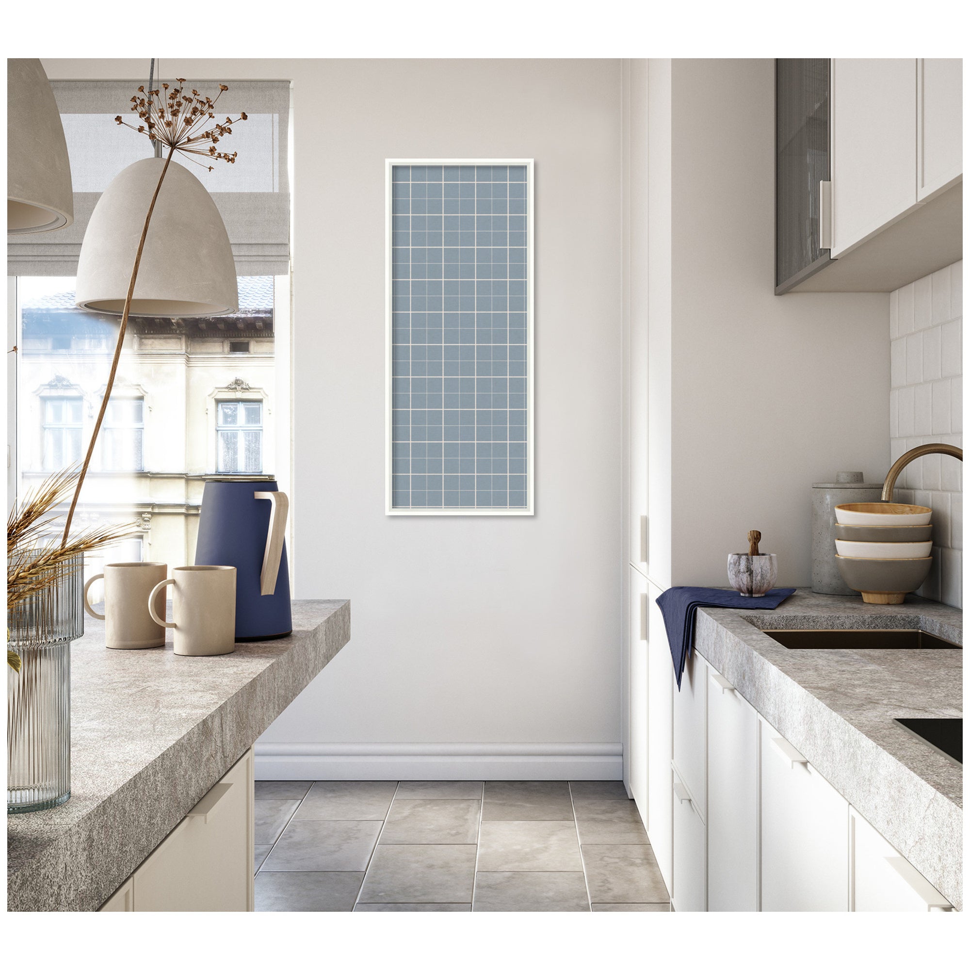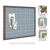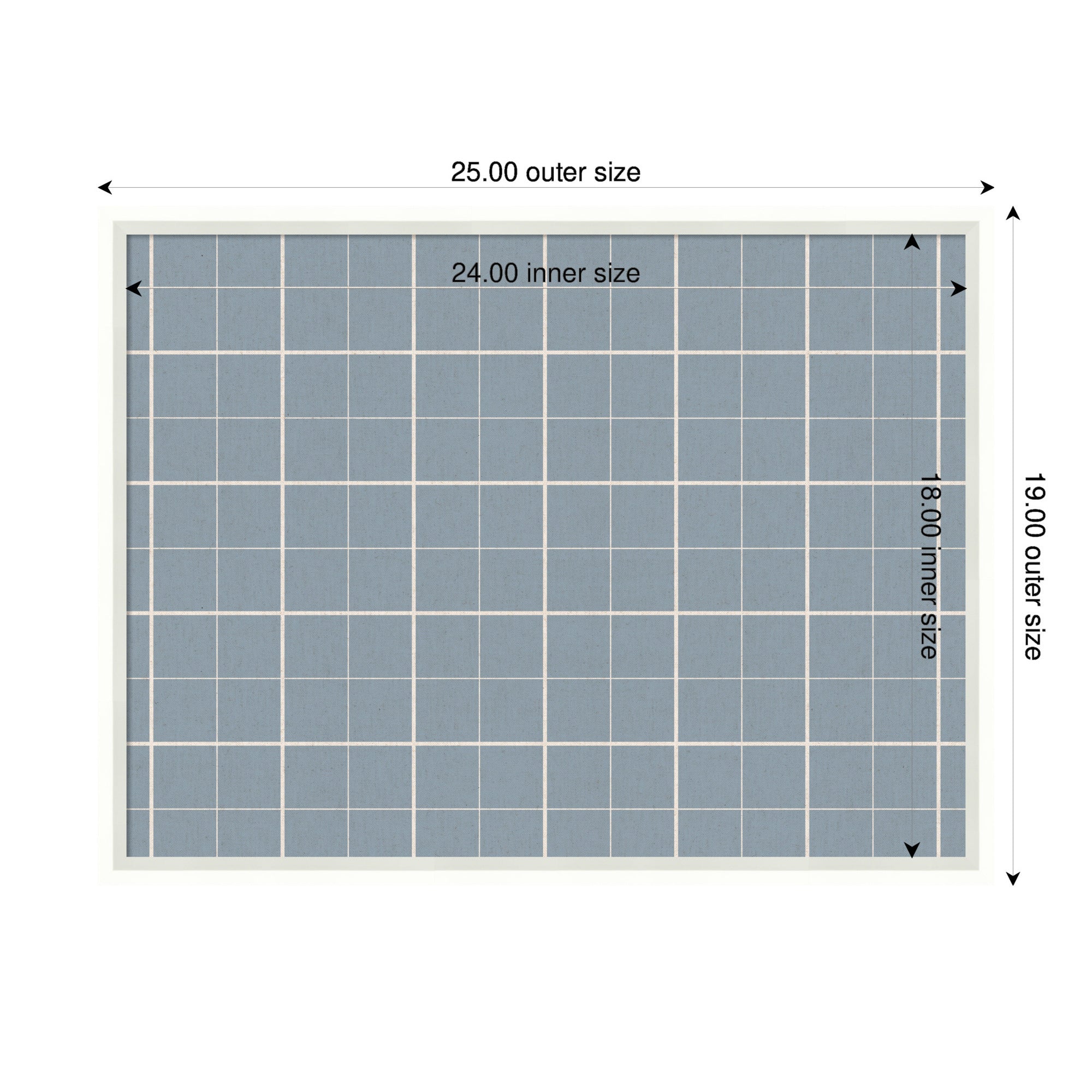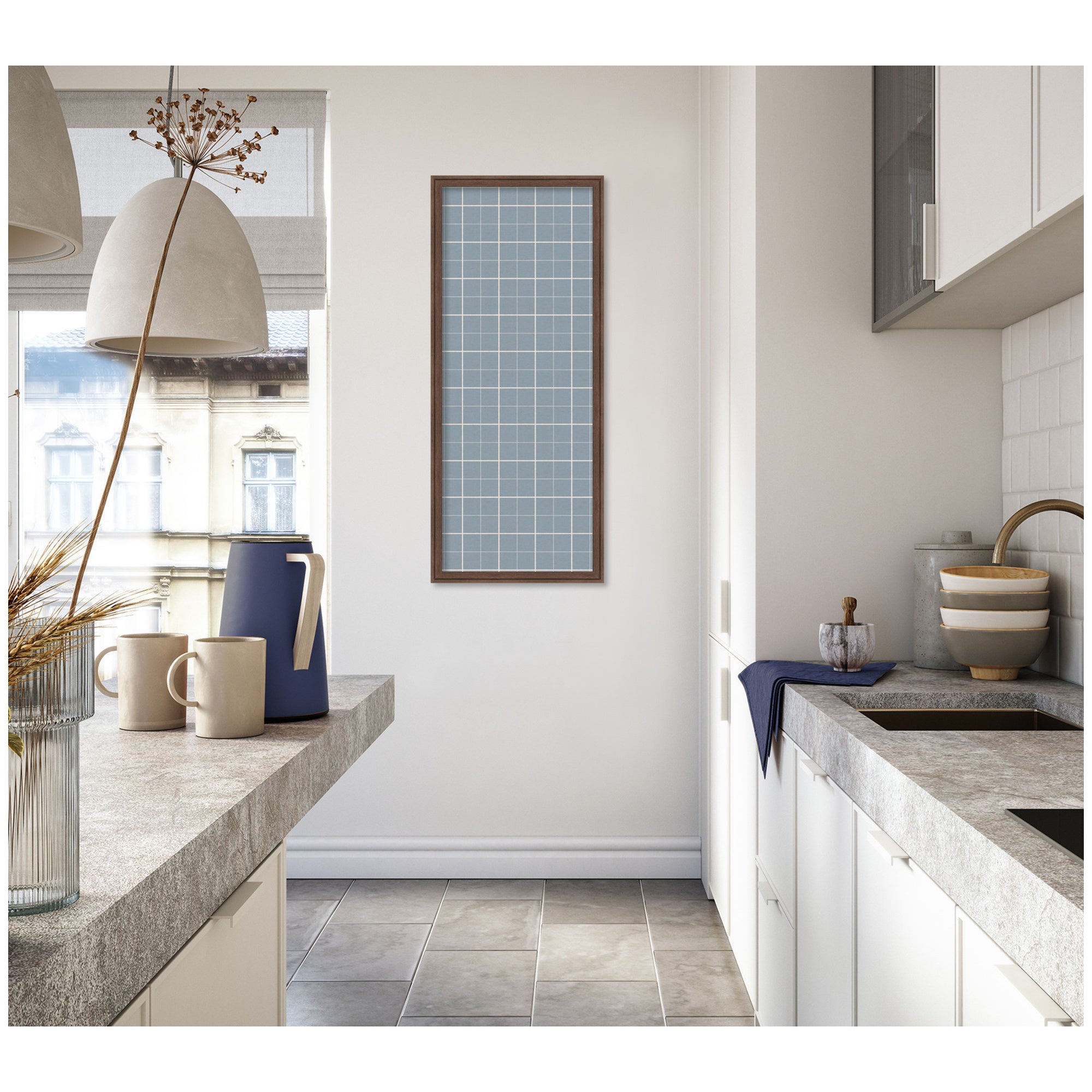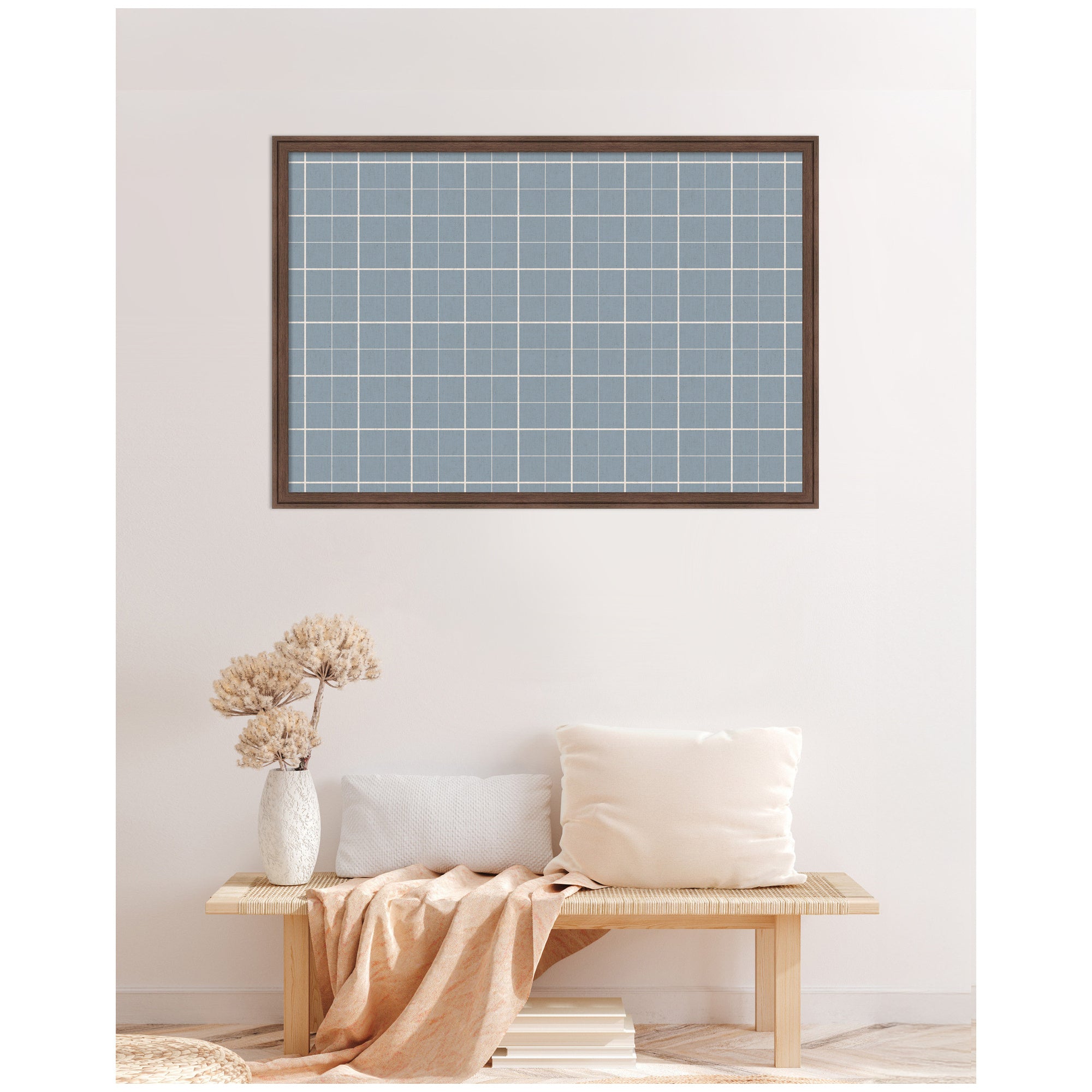 Organize your home in style with a fabric pinboard that has a sophisticated appeal. The muted blue geometric grid pattern accented with crisp white intersecting lines for a clean, minimalist look is inspired by the belief that organization doesn't have to be boring. The decorative pinboard has a lightweight construction with a high-quality, fabric pinning surface that allows pin to push fully in to showcase all your meaningful keepsakes. Use this functional, designer pinboard for hanging photos, wedding invitations, holiday cards, or even stellar report cards. As an stylish accent, the beautiful framed bulletin board looks excellent in any entryway, living room, bedroom, mudroom, or kitchen. It looks fantastic as a critical focal point in a family command center to post reminders, daily chores, or dinner schedules, too. Kick start your creativity in a craft room or creative space by using this accent as a memory or vision board. The pinboard hangs in a matter of seconds with convenient metal D-ring hangers attached to the back of the frame.