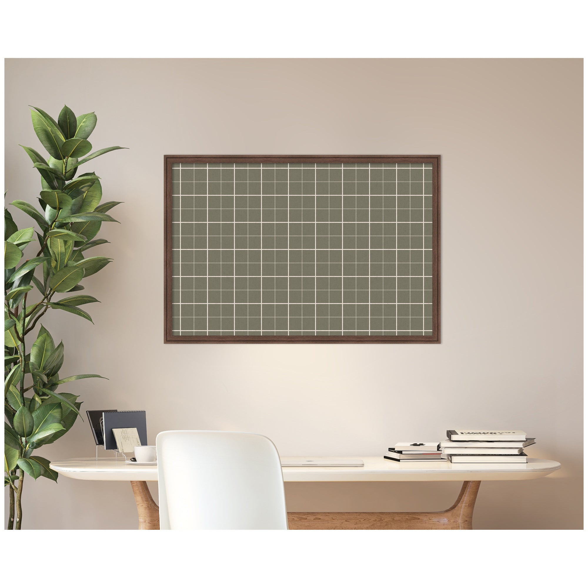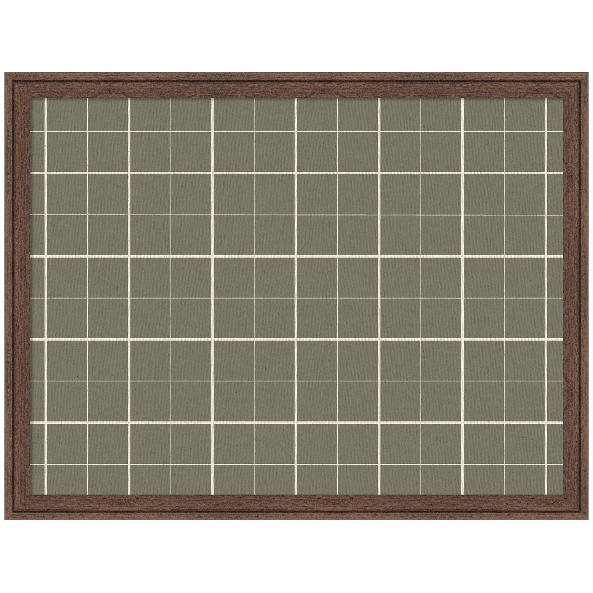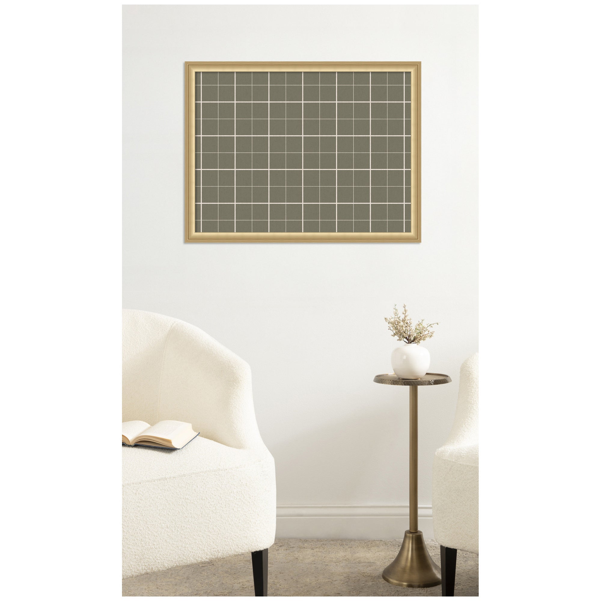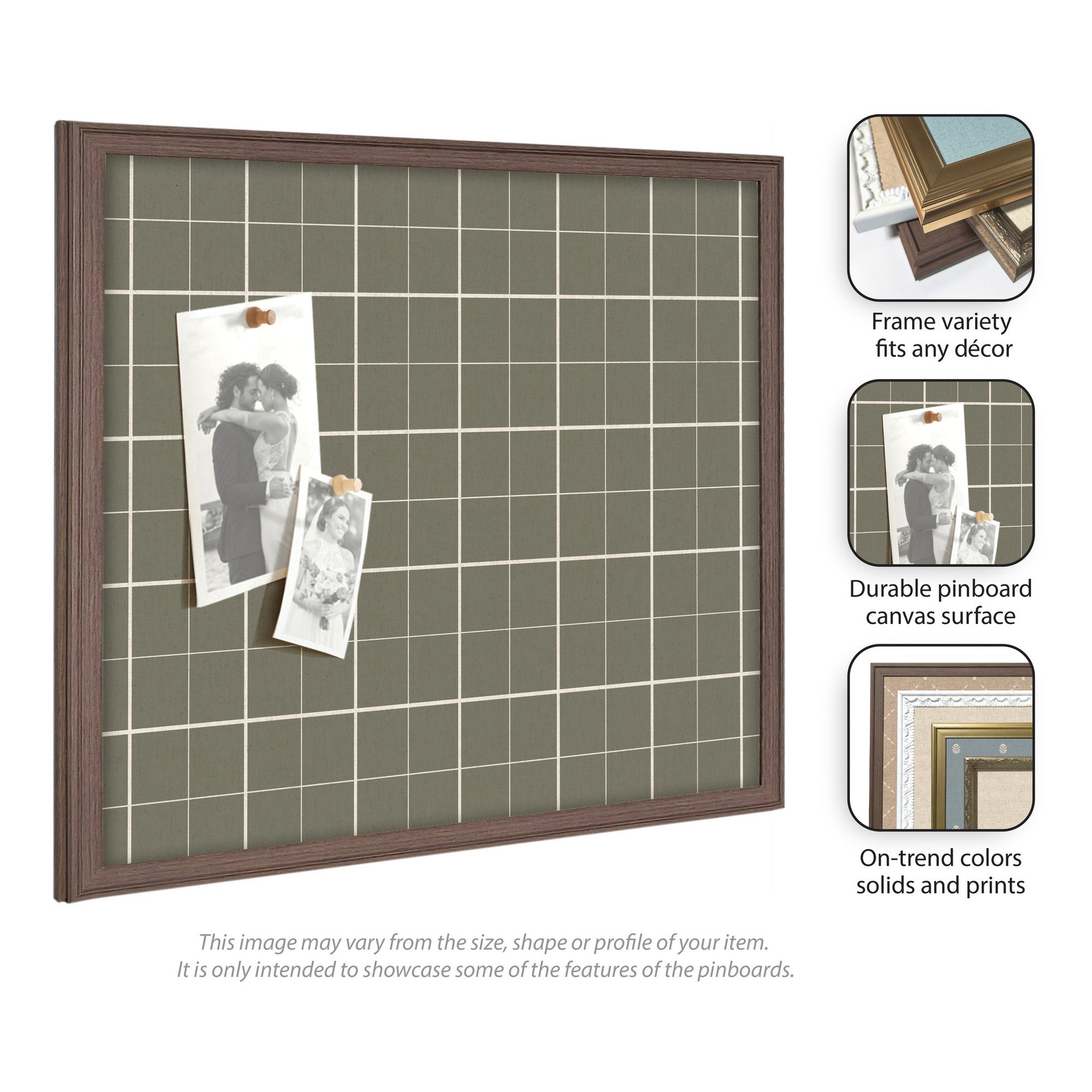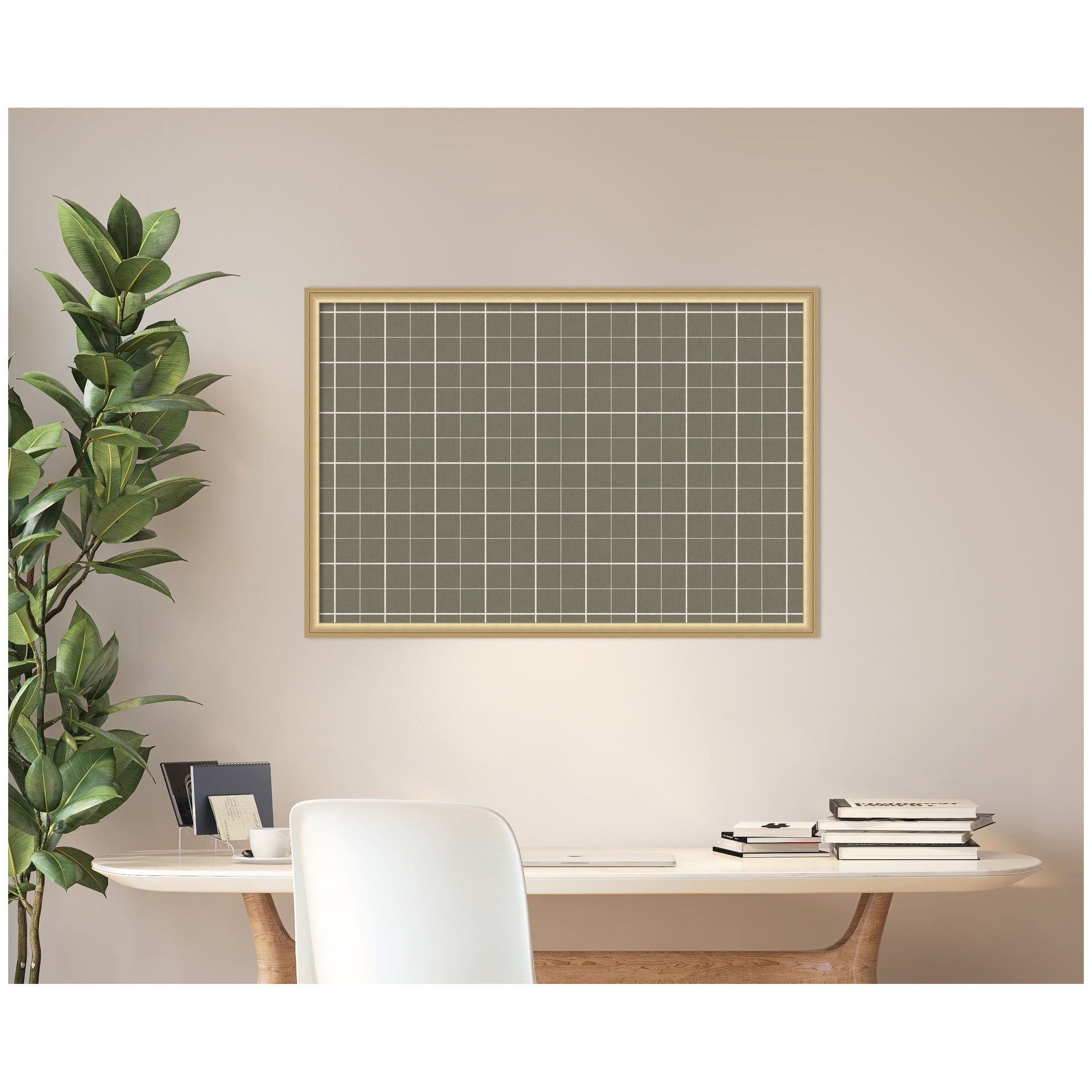 Organize your home in style with a fabric pinboard that has a sophisticated appeal. The muted sage geometric grid pattern accented with textured vertical and horizontal lines for a balanced, minimalist look is inspired by the belief that organization doesn't have to be boring. The decorative pinboard has a lightweight construction with a high-quality, fabric pinning surface that allows pin to push fully in to showcase all your meaningful keepsakes. Use this functional, designer pinboard for hanging photos, wedding invitations, holiday cards, or even stellar report cards. As an stylish accent, the beautiful framed bulletin board looks excellent in any entryway, living room, bedroom, mudroom, or kitchen. It looks fantastic as a critical focal point in a family command center to post reminders, daily chores, or dinner schedules, too. Kick start your creativity in a craft room or creative space by using this accent as a memory or vision board. The pinboard hangs in a matter of seconds with convenient metal D-ring hangers attached to the back of the frame.