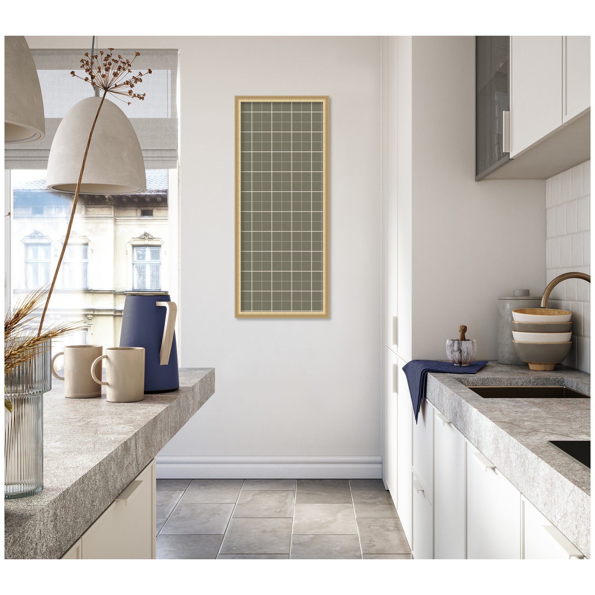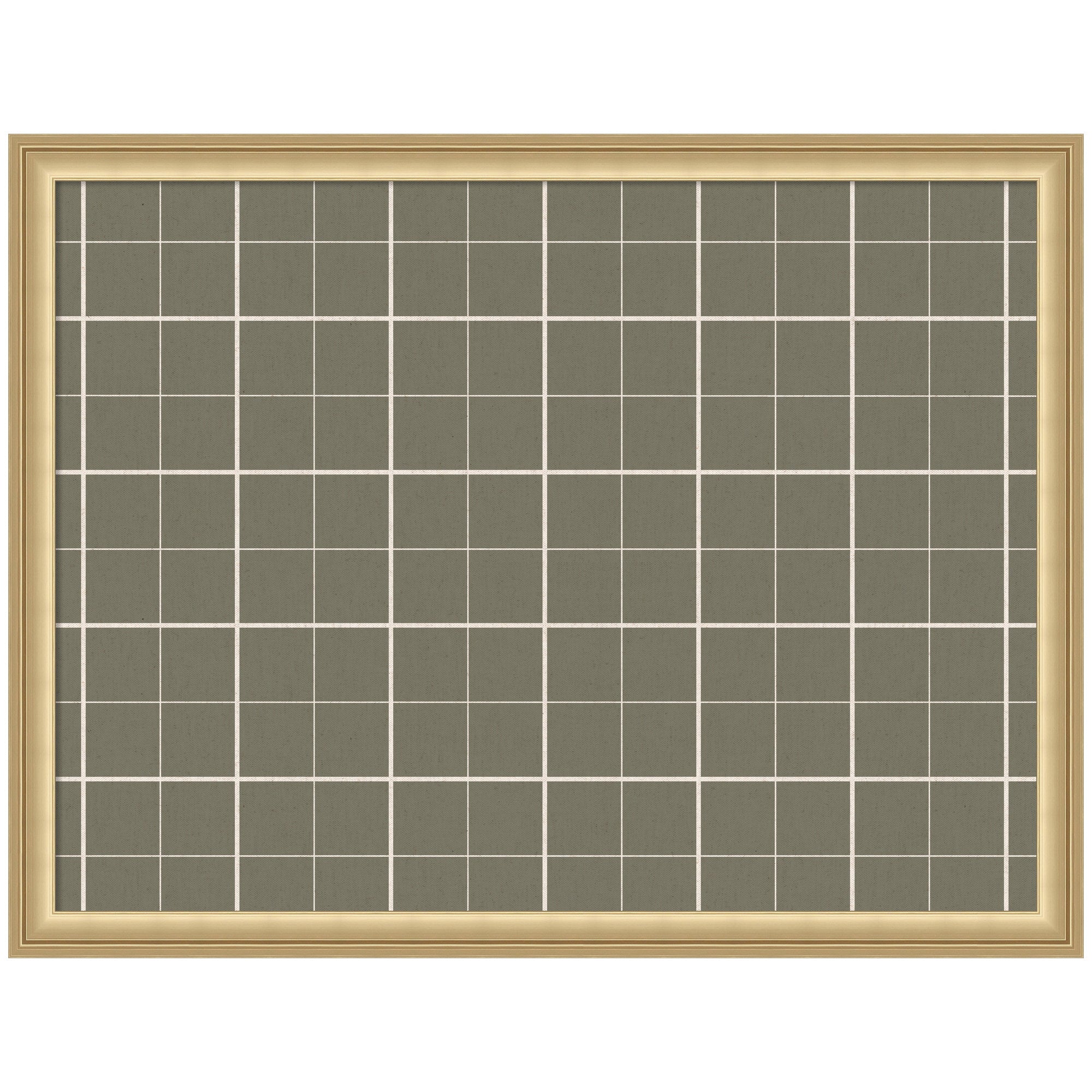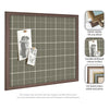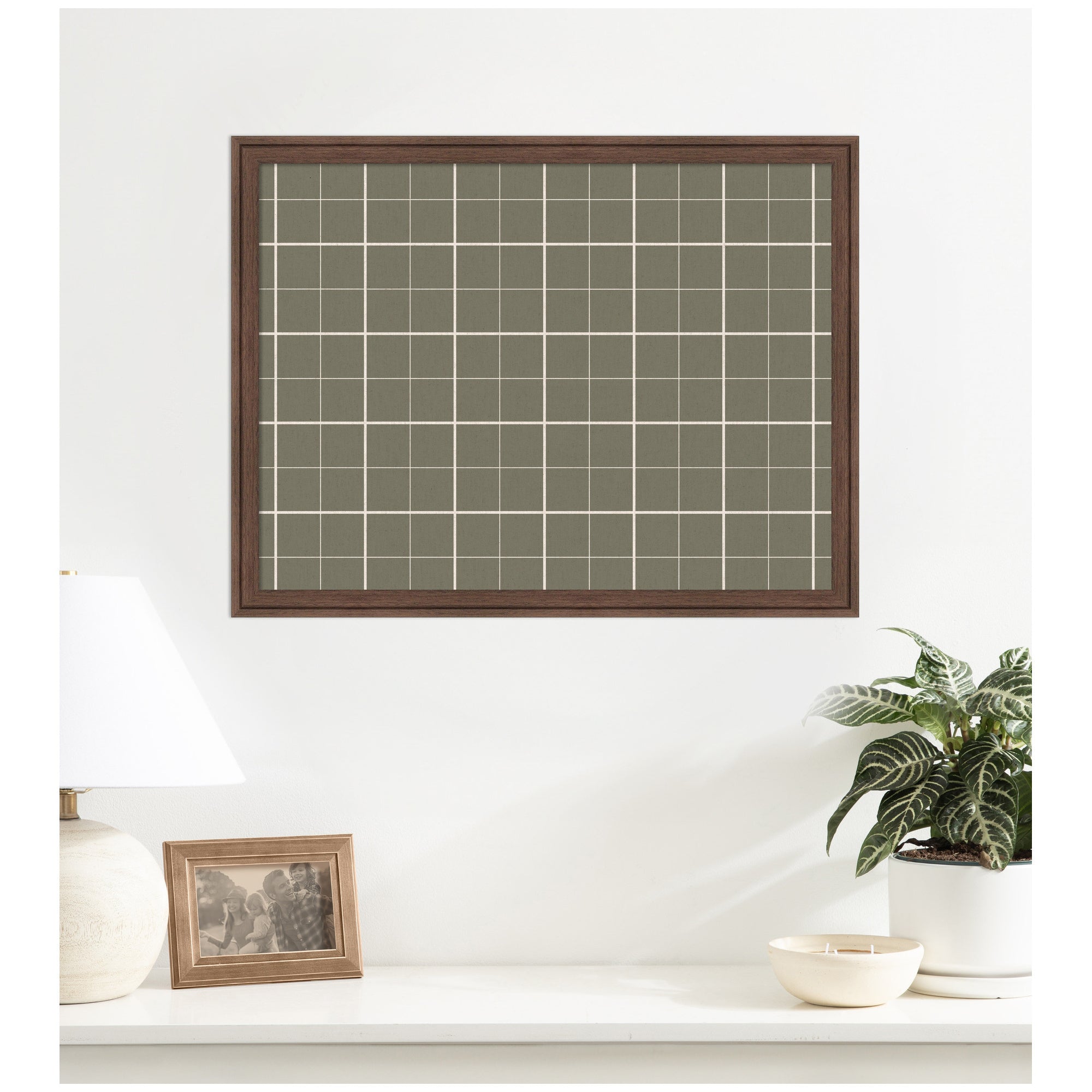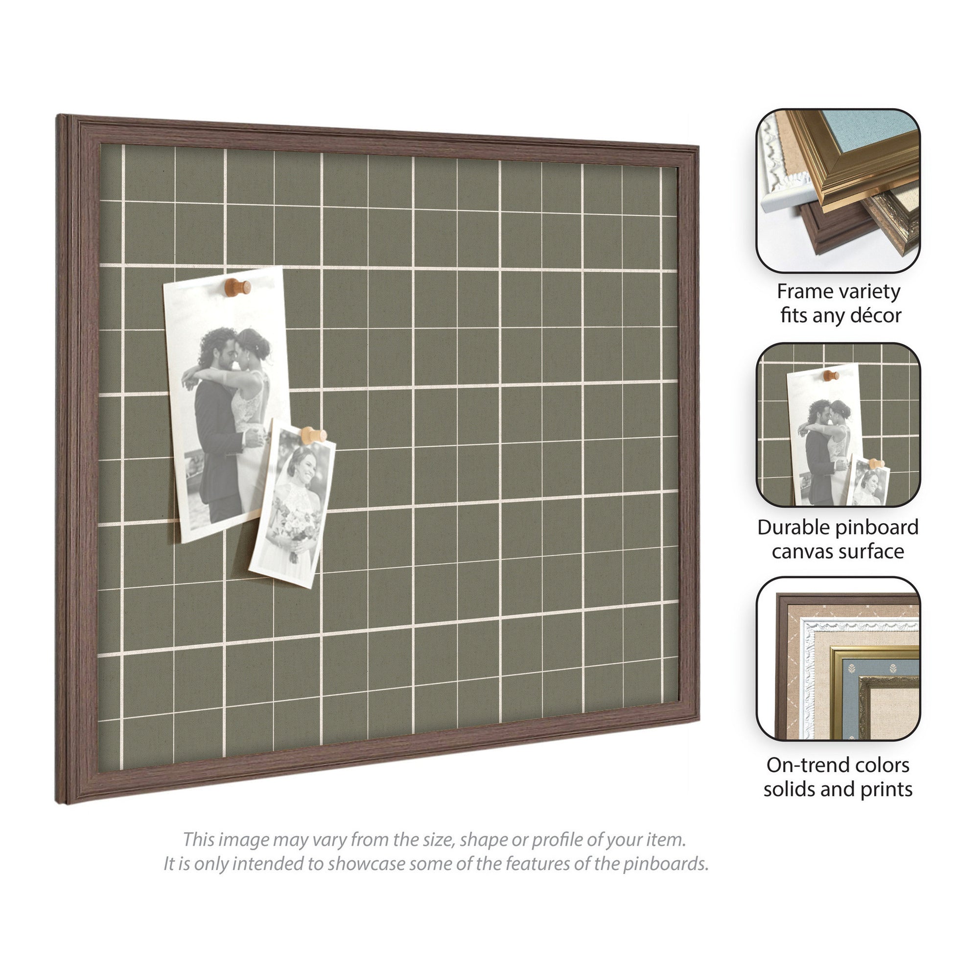 Organize your home in style with a fabric pinboard that has a sophisticated appeal. The muted sage geometric grid pattern accented with textured vertical and horizontal lines for a balanced, minimalist look is inspired by the belief that organization doesn't have to be boring. The decorative pinboard has a lightweight construction with a high-quality, fabric pinning surface that allows pin to push fully in to showcase all your meaningful keepsakes. Use this functional, designer pinboard for hanging photos, wedding invitations, holiday cards, or even stellar report cards. As an stylish accent, the beautiful framed bulletin board looks excellent in any entryway, living room, bedroom, mudroom, or kitchen. It looks fantastic as a critical focal point in a family command center to post reminders, daily chores, or dinner schedules, too. Kick start your creativity in a craft room or creative space by using this accent as a memory or vision board. The pinboard hangs in a matter of seconds with convenient metal D-ring hangers attached to the back of the frame.