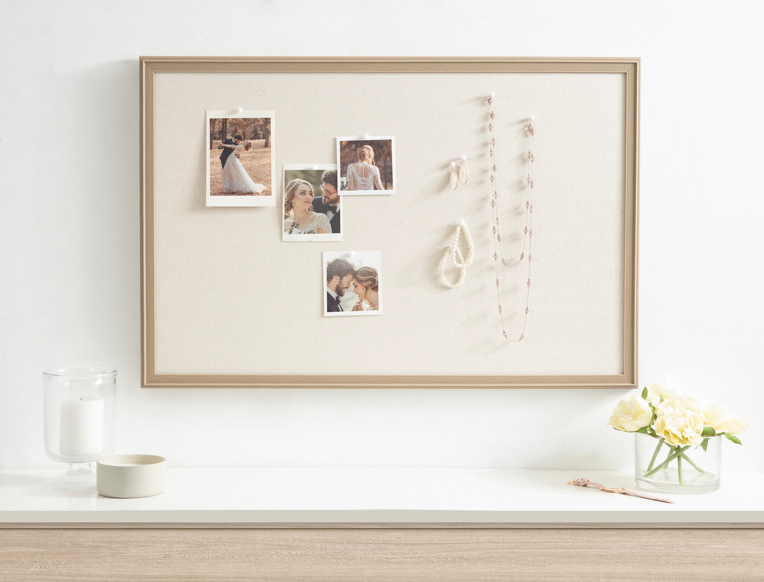 The pinboard is made with a high-quality linen fabric that is durable and perfect for holding notes, photos, and other important documents. The stepped frame and lightly distressed finish add a touch of elegance and sophistication, making this pinboard perfect for vintage-inspired or traditional home decor. Use it to organize your to-do lists, keep important papers in one place, or create an aspirational vision board to help you achieve your goals.