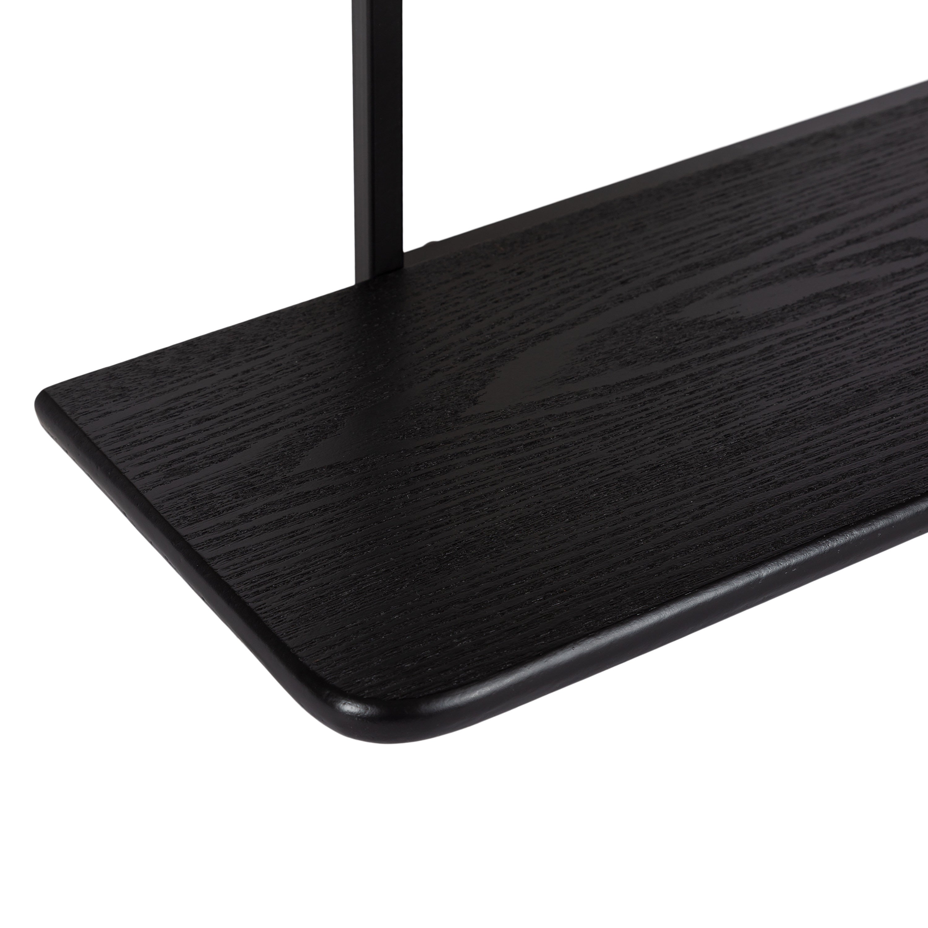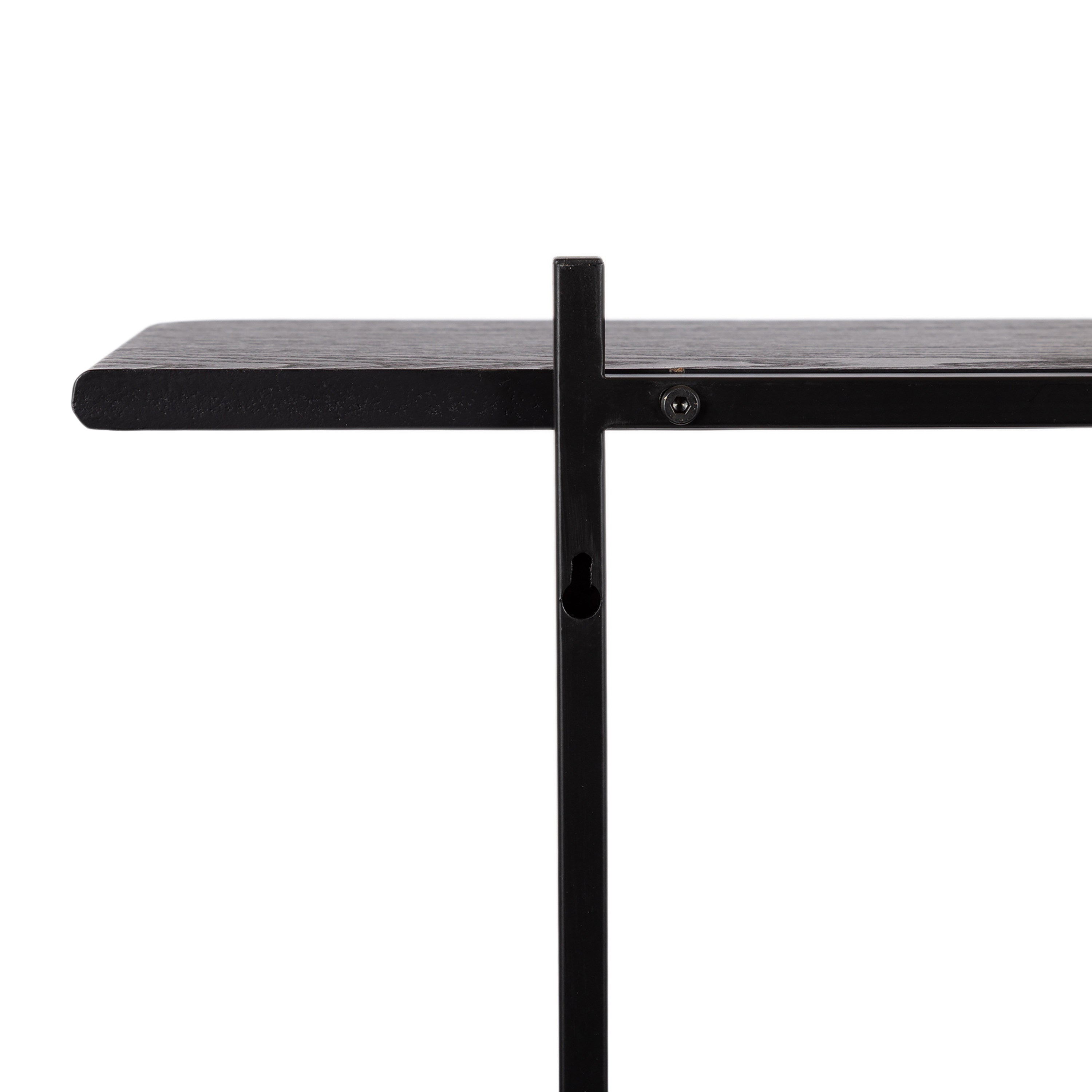 A wall shelf isn't just for storage! Now your space-saving storage can be a dazzling and show-stopping wall display. That's what makes the Ramone shelf an incredible addition to your modern wall decor. It features three tiers of lovely and resilient wooden shelves within a unique frame design, creating a jaw-dropping display and storage solution for all your favorite keepsakes and household necessities. Each shelf has a different width for a variety of options for displaying keepsakes, photos, bathroom necessities, plants, and other household necessities. Put together this delightful tiered shelf with its simple, two-step assembly. Then, hang this beautiful minimal wall shelf in only a matter of seconds with the convenient metal keyhole hangers securely attached to the back of the metal frame.