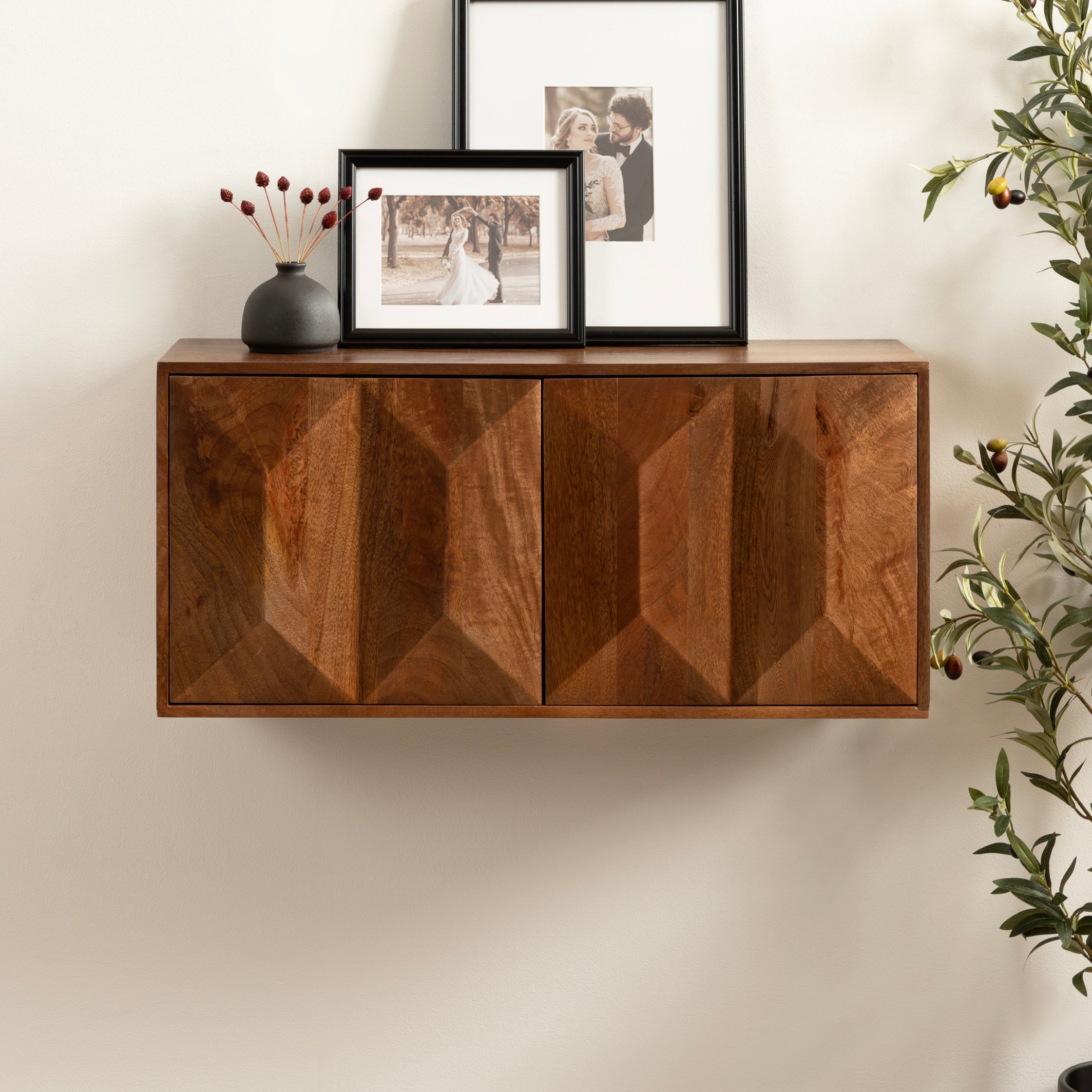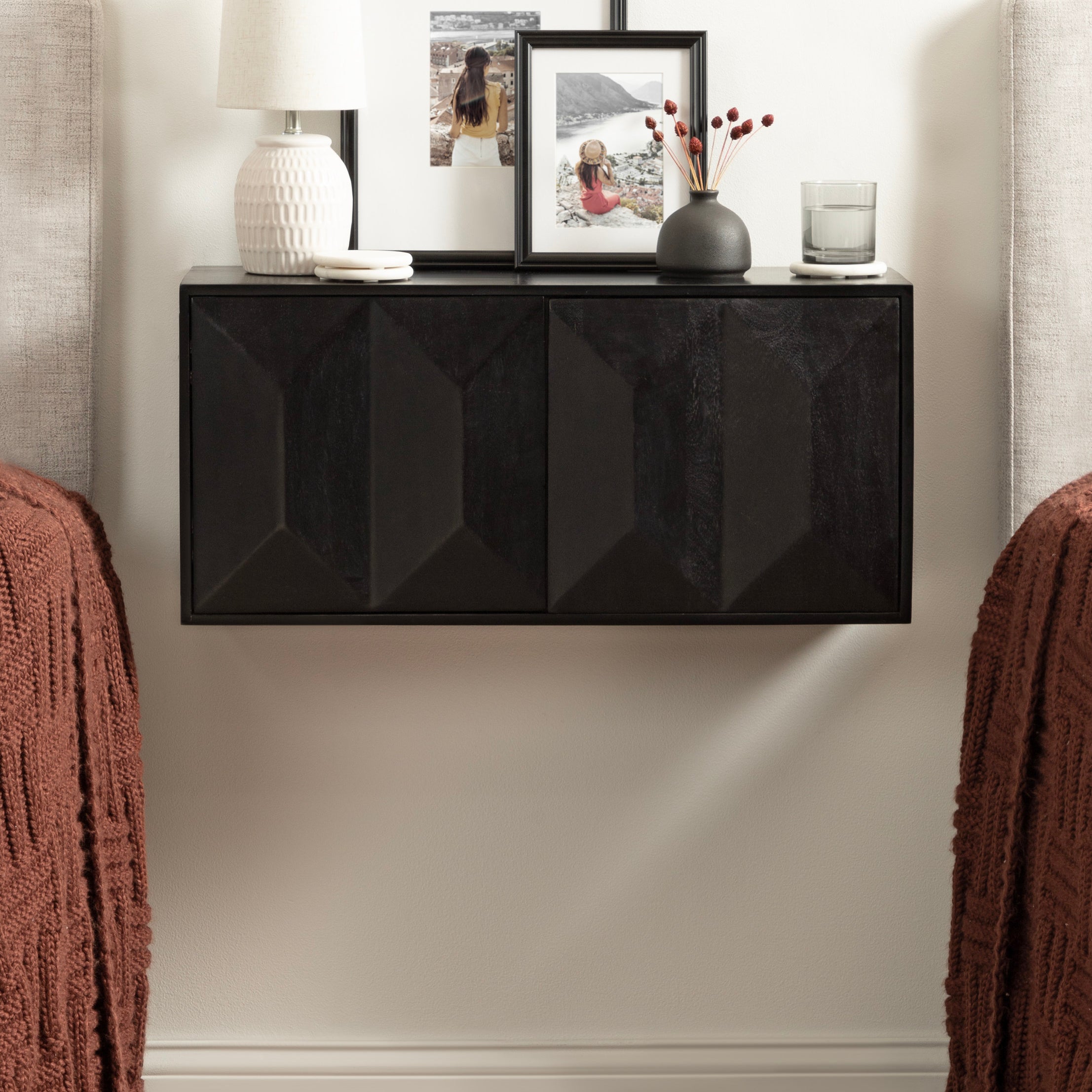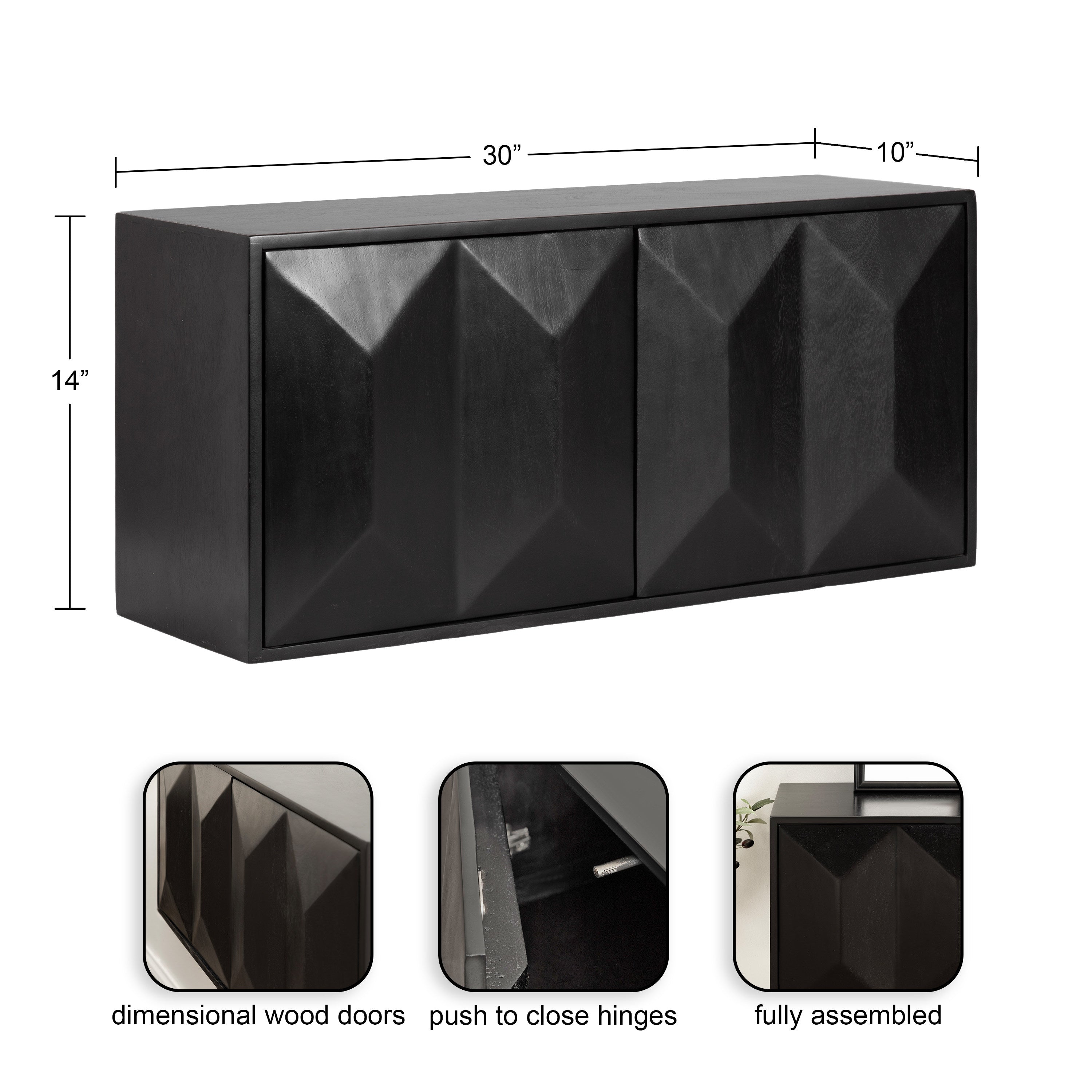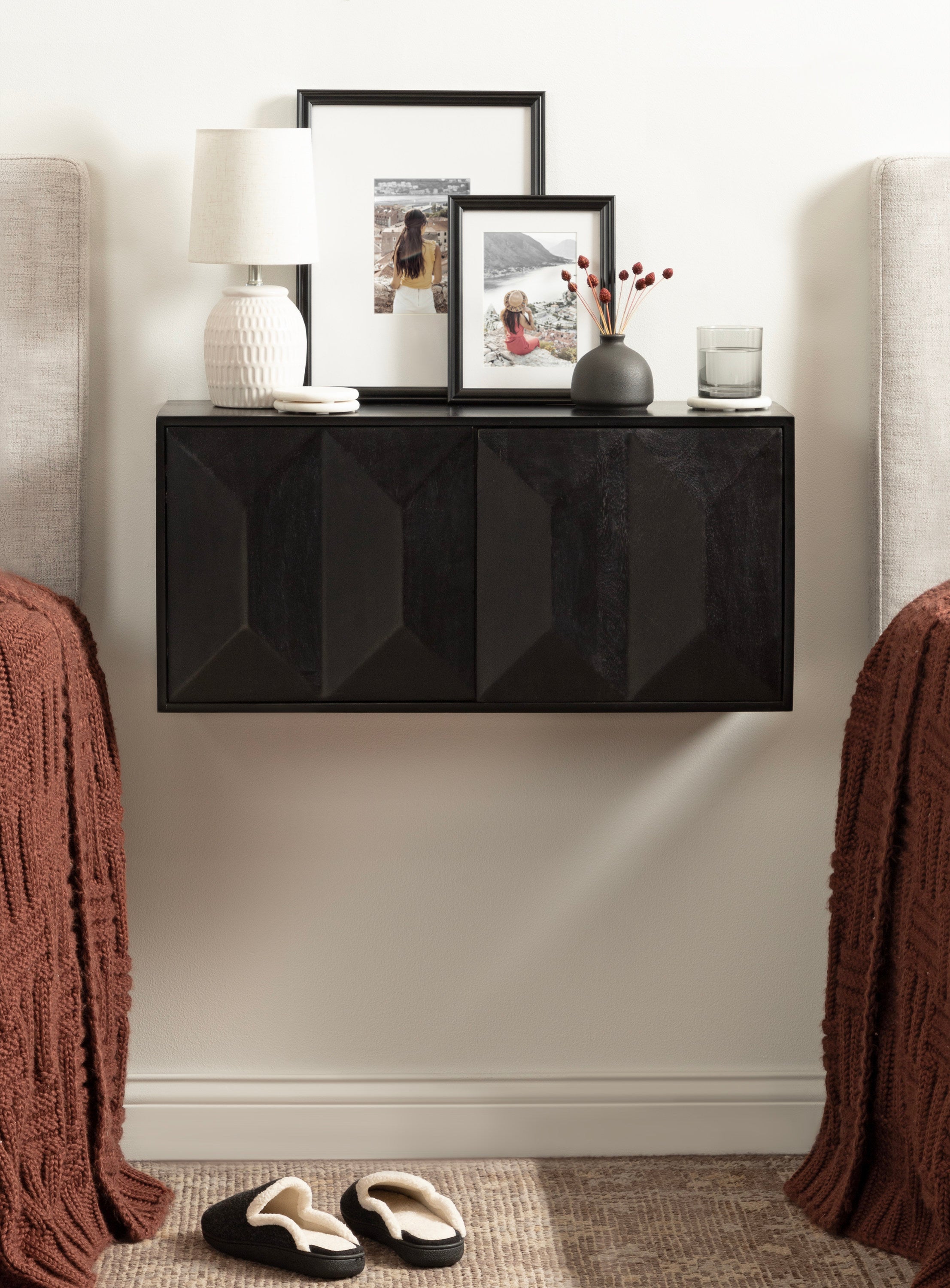 Store books, bathroom supplies, and more in a modern-inspired wall cabinet from Kate and Laurel. The Ranier cabinet is crafted from sturdy wooden material with a beautiful finish. Hide away important items with its cabinet doors that are both convenient and stylish. The face of the doors have a faceted dimensionality to introduce more texture to your space. It also has push-close doors to keep your items secure inside the cabinet with no visible hardware on the door face. The Ranier cabinet is fantastic for housing your books, office supplies, and other household necessities, or you can use it as a functional space for small plates, mugs, and cups. Aside from a wall cabinet, you can also use this unit as a floating side table in your living room or a floating nightstand in your bedroom to take up less floor space. The wall-mounted cabinet hangs on your wall in a matter of seconds thanks to the wood cleat hanger and pre-drilled holes that securely mount the cabinet to the wall.
