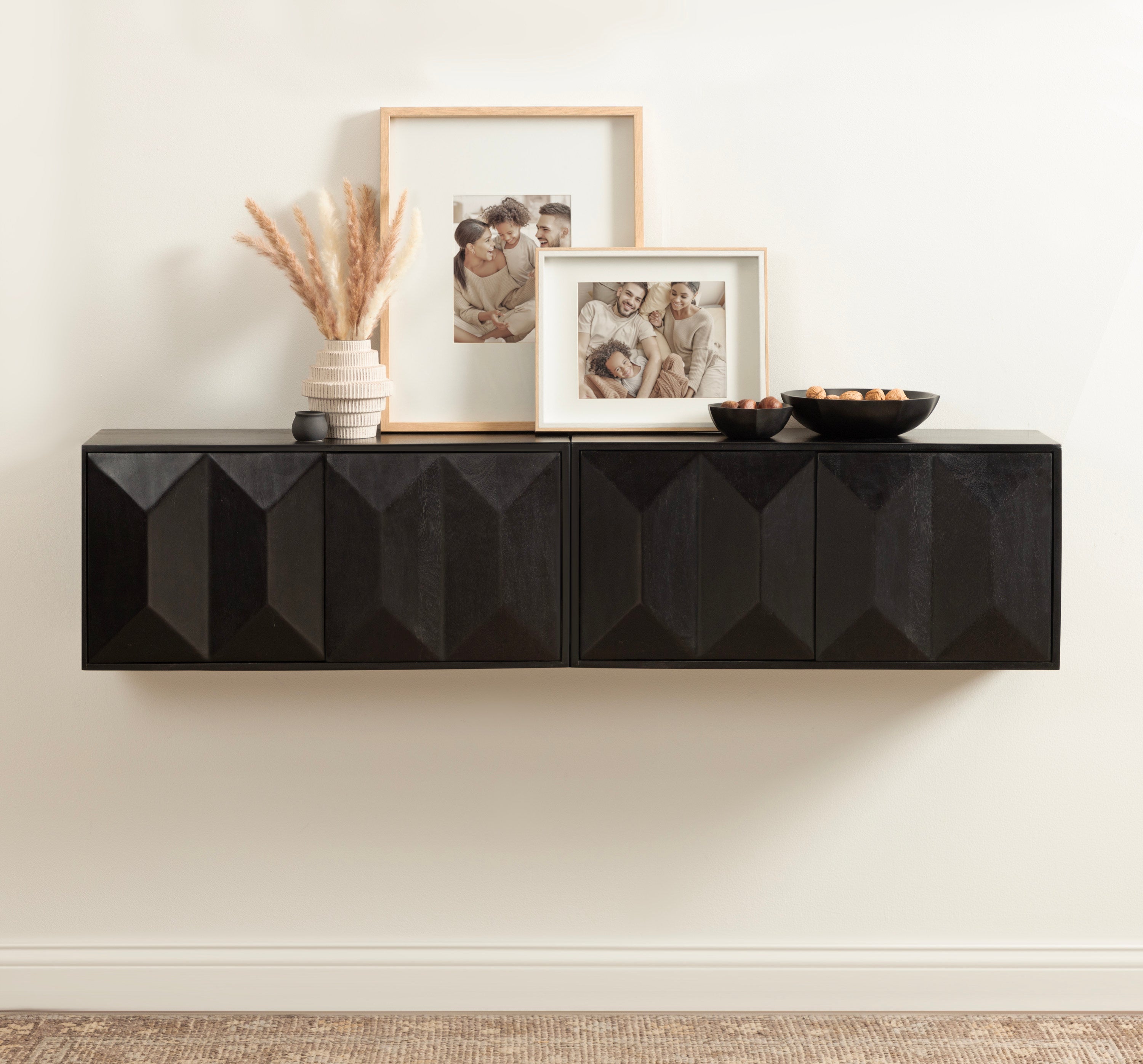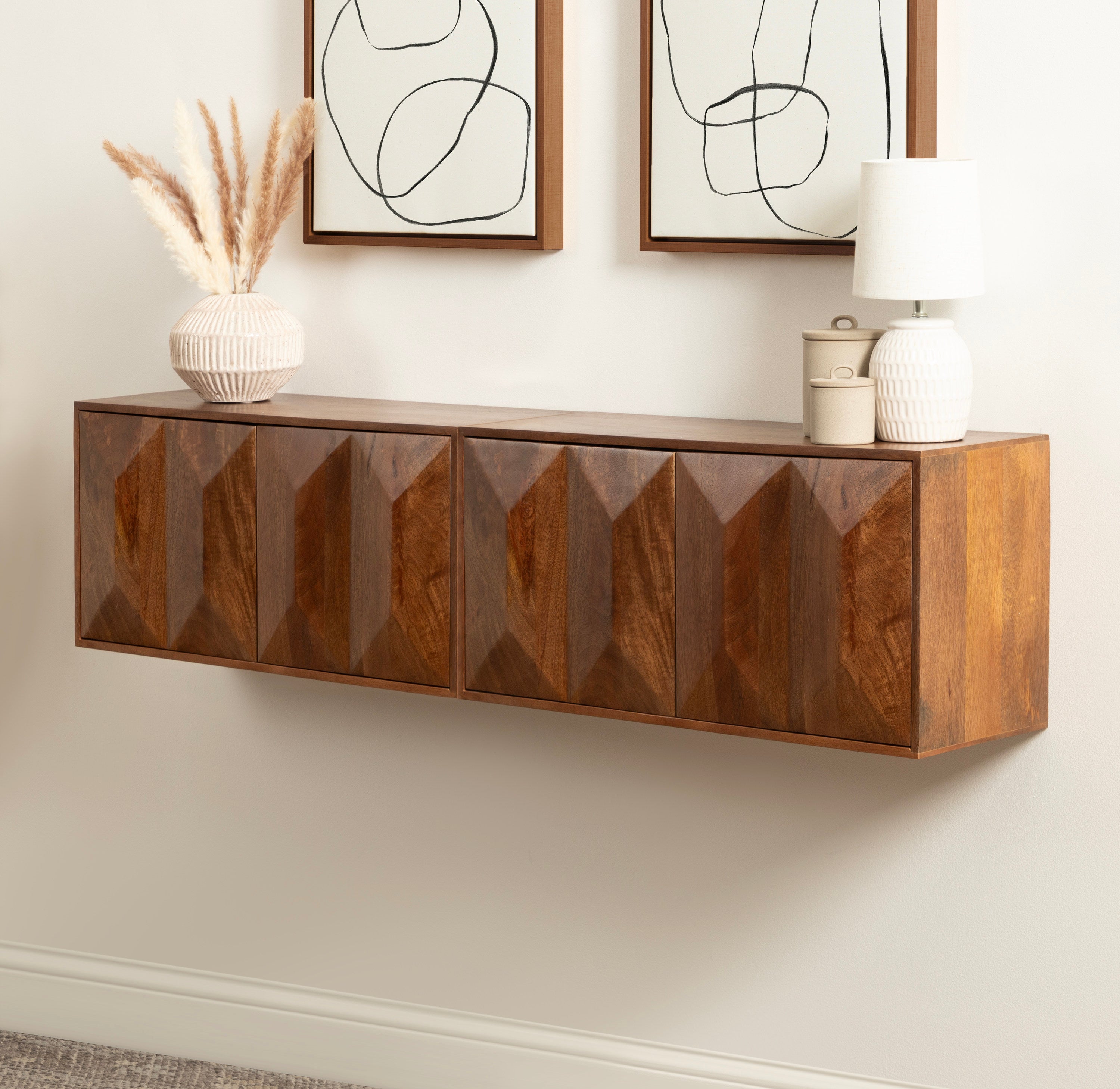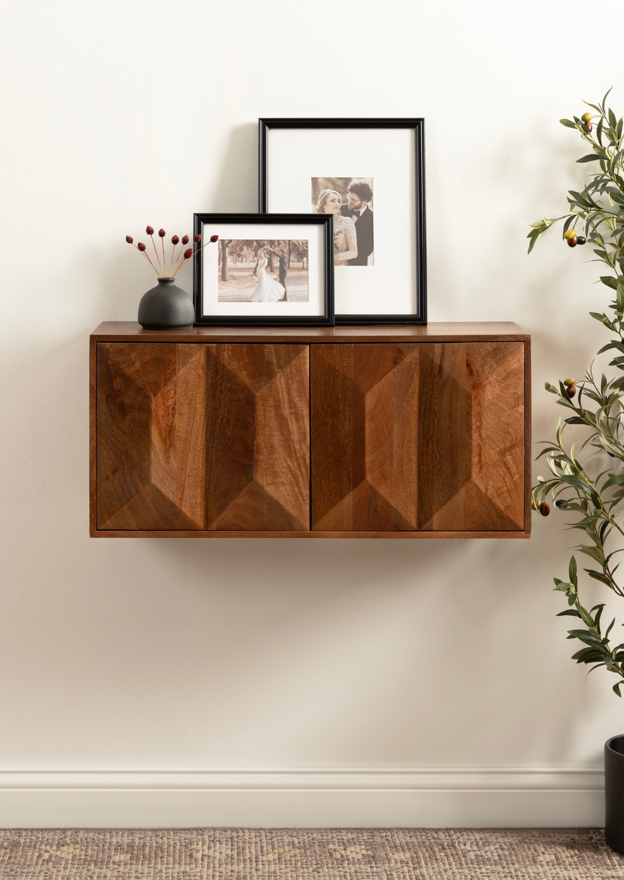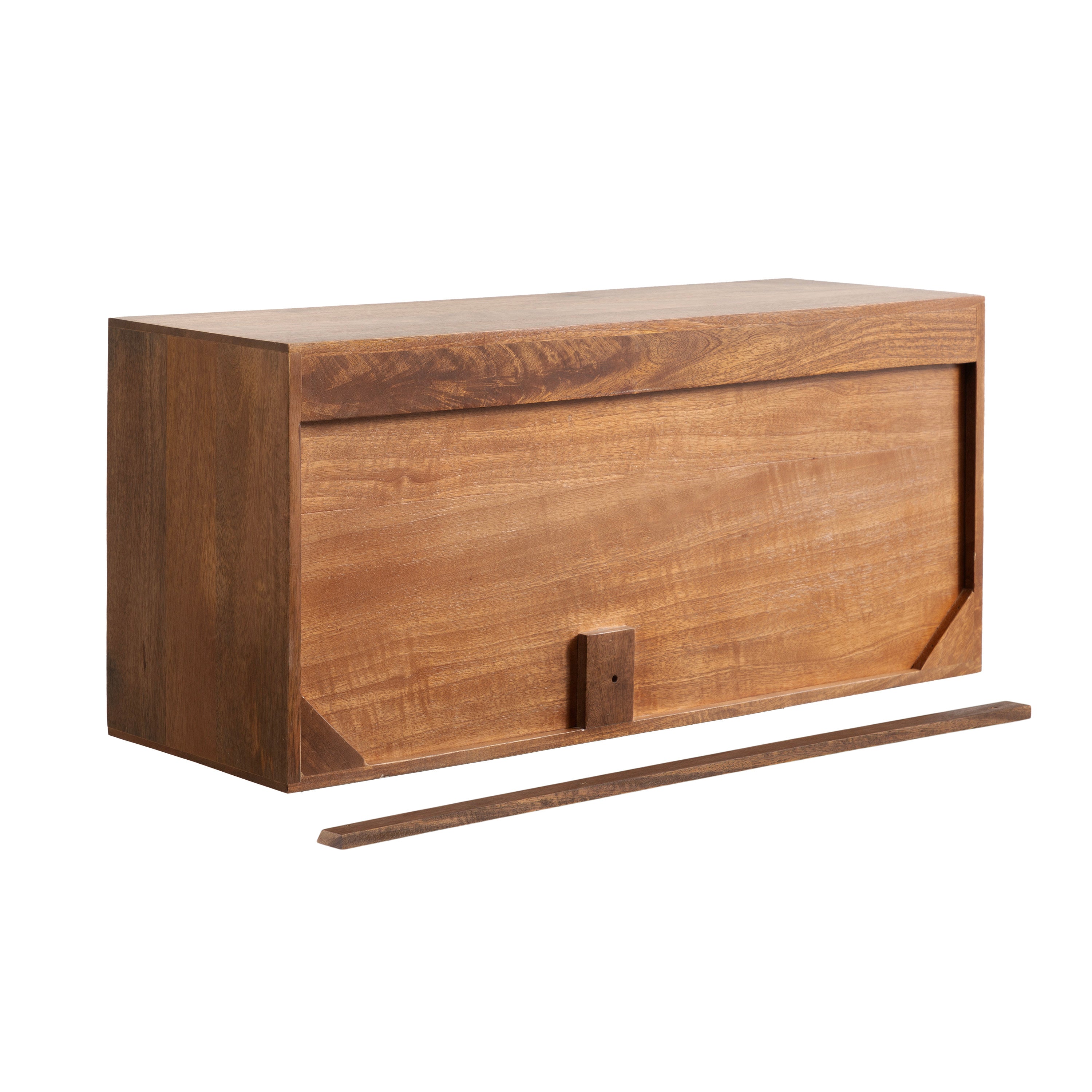 Store books, bathroom supplies, and more in a modern-inspired wall cabinet from Kate and Laurel. The Ranier cabinet is crafted from sturdy wooden material with a beautiful finish. Hide away important items with its cabinet doors that are both convenient and stylish. The face of the doors have a faceted dimensionality to introduce more texture to your space. It also has push-close doors to keep your items secure inside the cabinet with no visible hardware on the door face. The Ranier cabinet is fantastic for housing your books, office supplies, and other household necessities, or you can use it as a functional space for small plates, mugs, and cups. Aside from a wall cabinet, you can also use this unit as a floating side table in your living room or a floating nightstand in your bedroom to take up less floor space. The wall-mounted cabinet hangs on your wall in a matter of seconds thanks to the wood cleat hanger and pre-drilled holes that securely mount the cabinet to the wall.