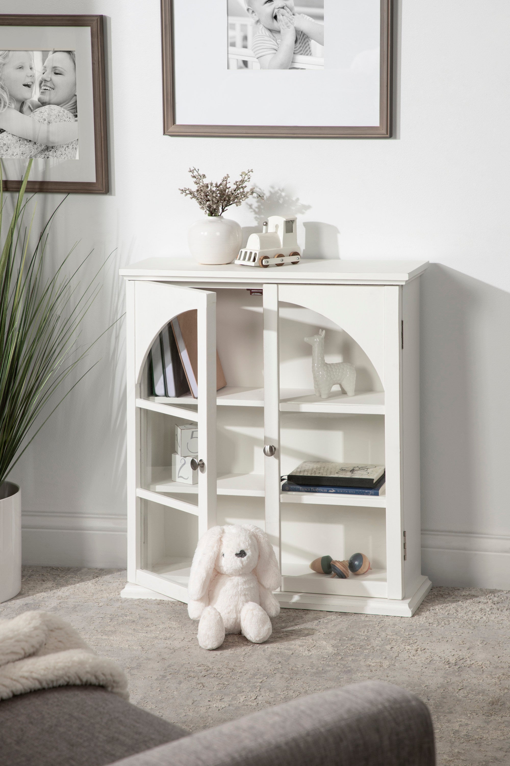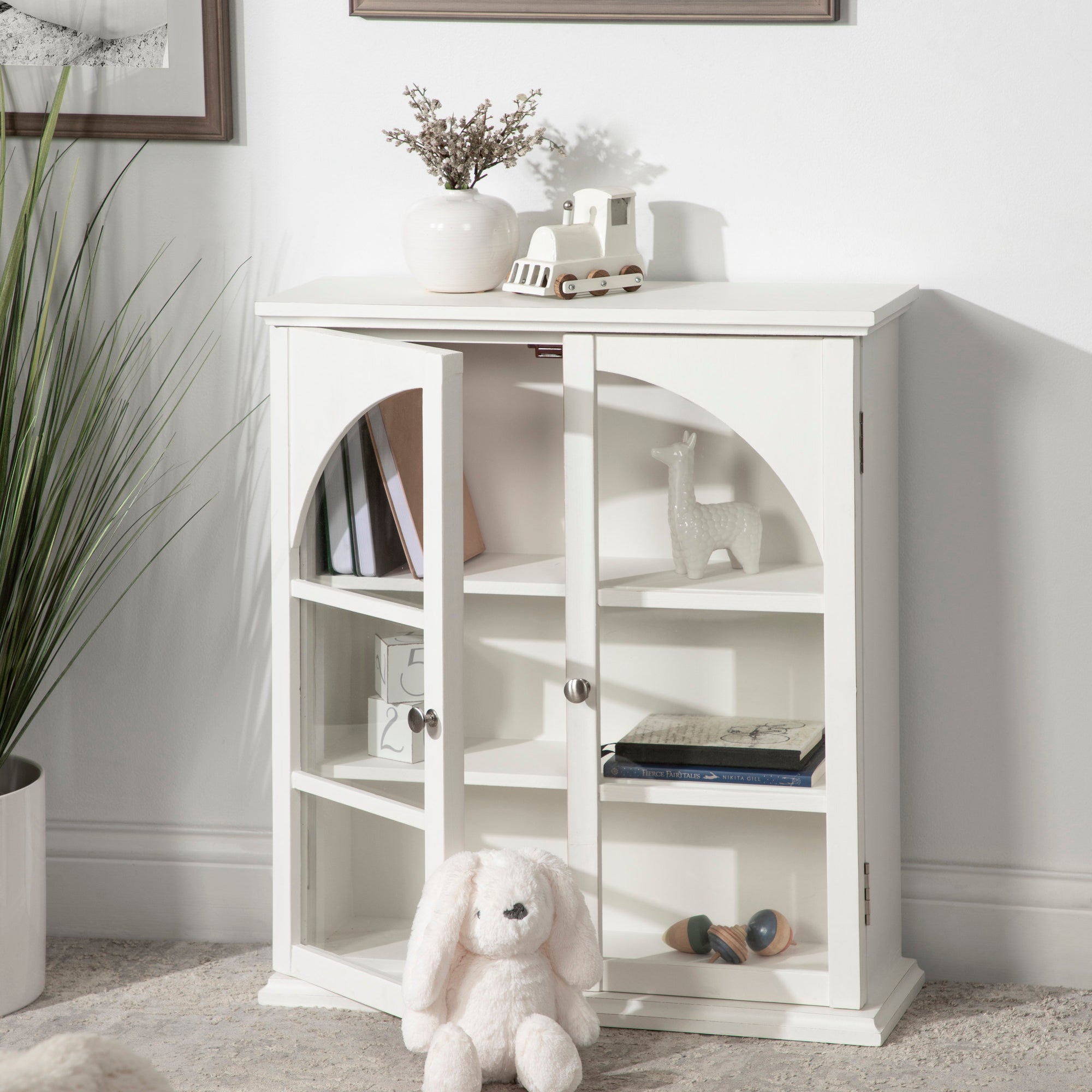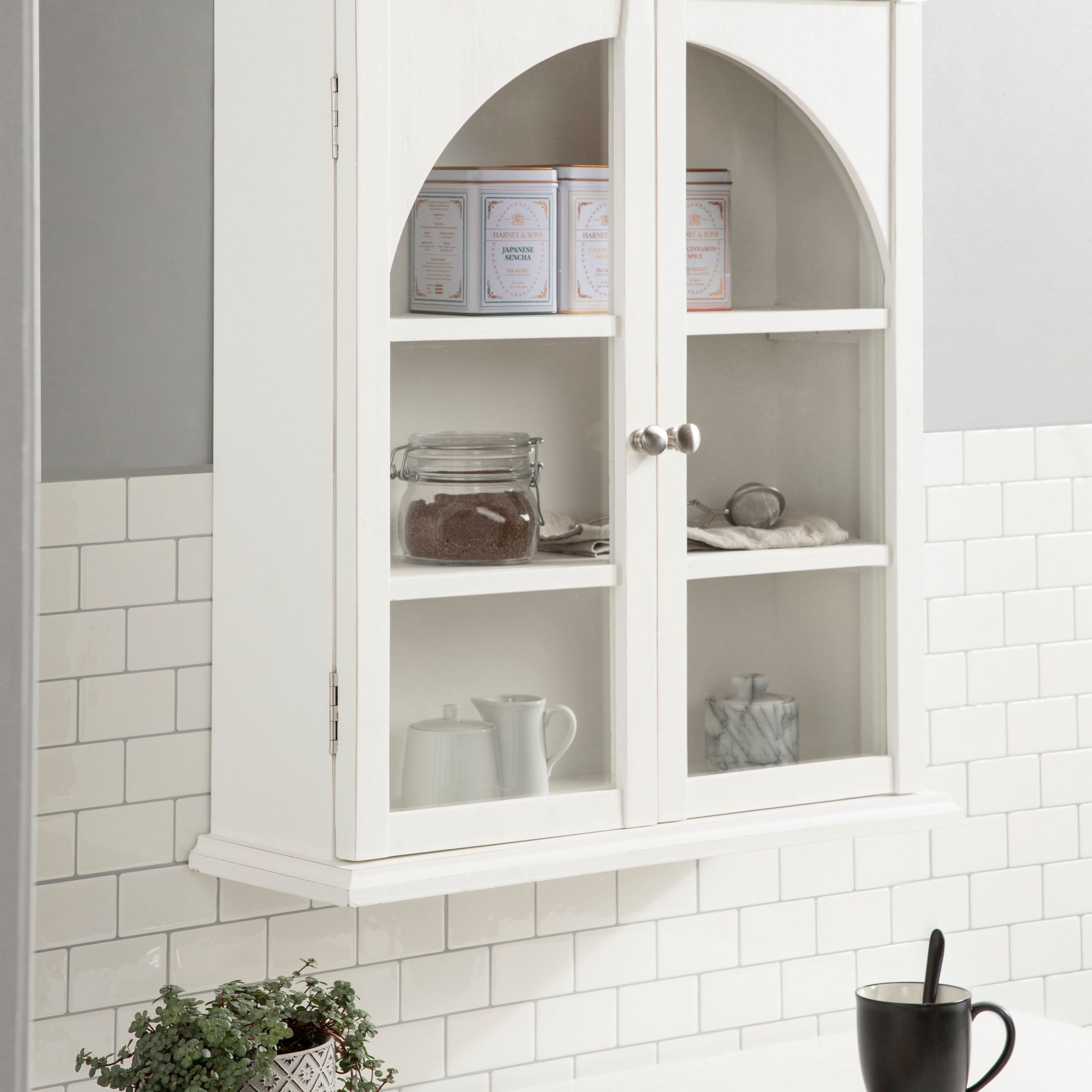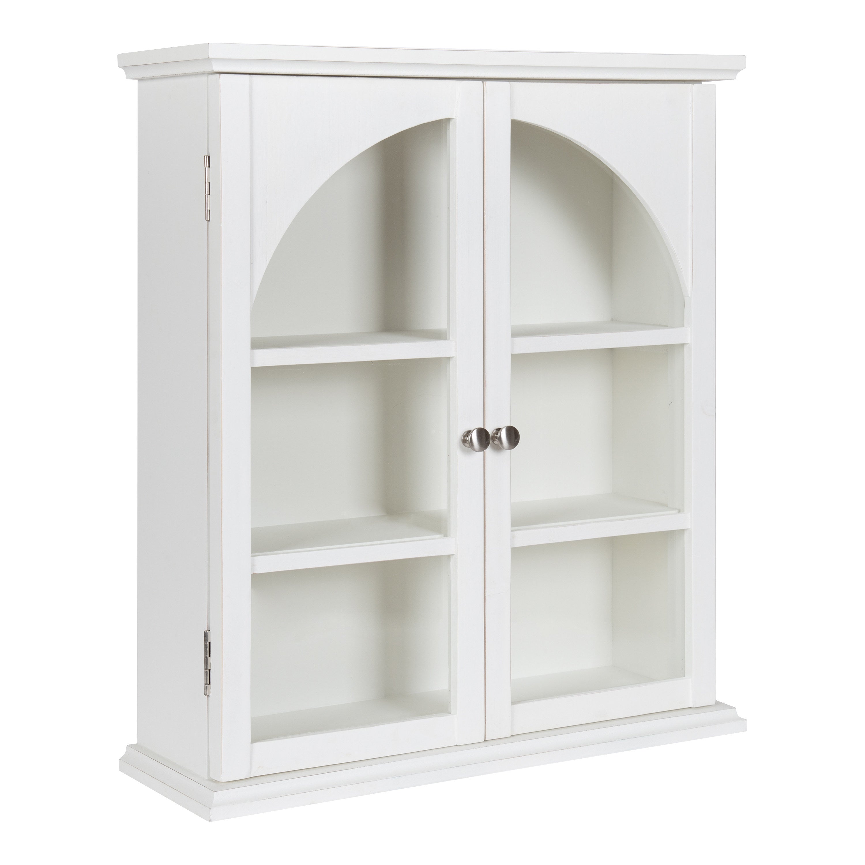 Decorate your bathroom, living room, or bedroom with a farmhouse storage cabinet in the Walsted! Crafted with a hand-distressed finish and a sophisticated arched opening, the Walsted is perfect for your rustic decorating aesthetics. Use it as a spice rack, a decorative display cabinet, or a medicine cabinet with its clear glass doors. It's the perfect way to tie your farmhouse decor together while providing a convenient and space-saving design for all your household necessities.