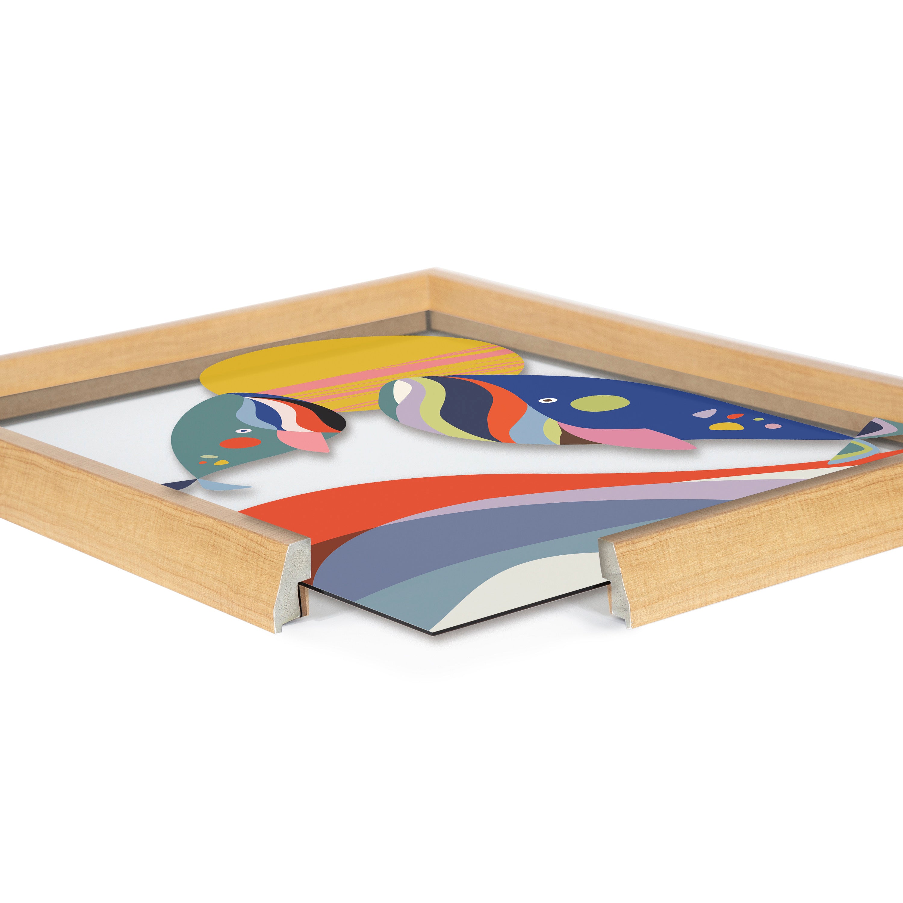 Blake Modern Colorful Whales Framed Printed Glass by Rachel Lee of My Dream Wall
