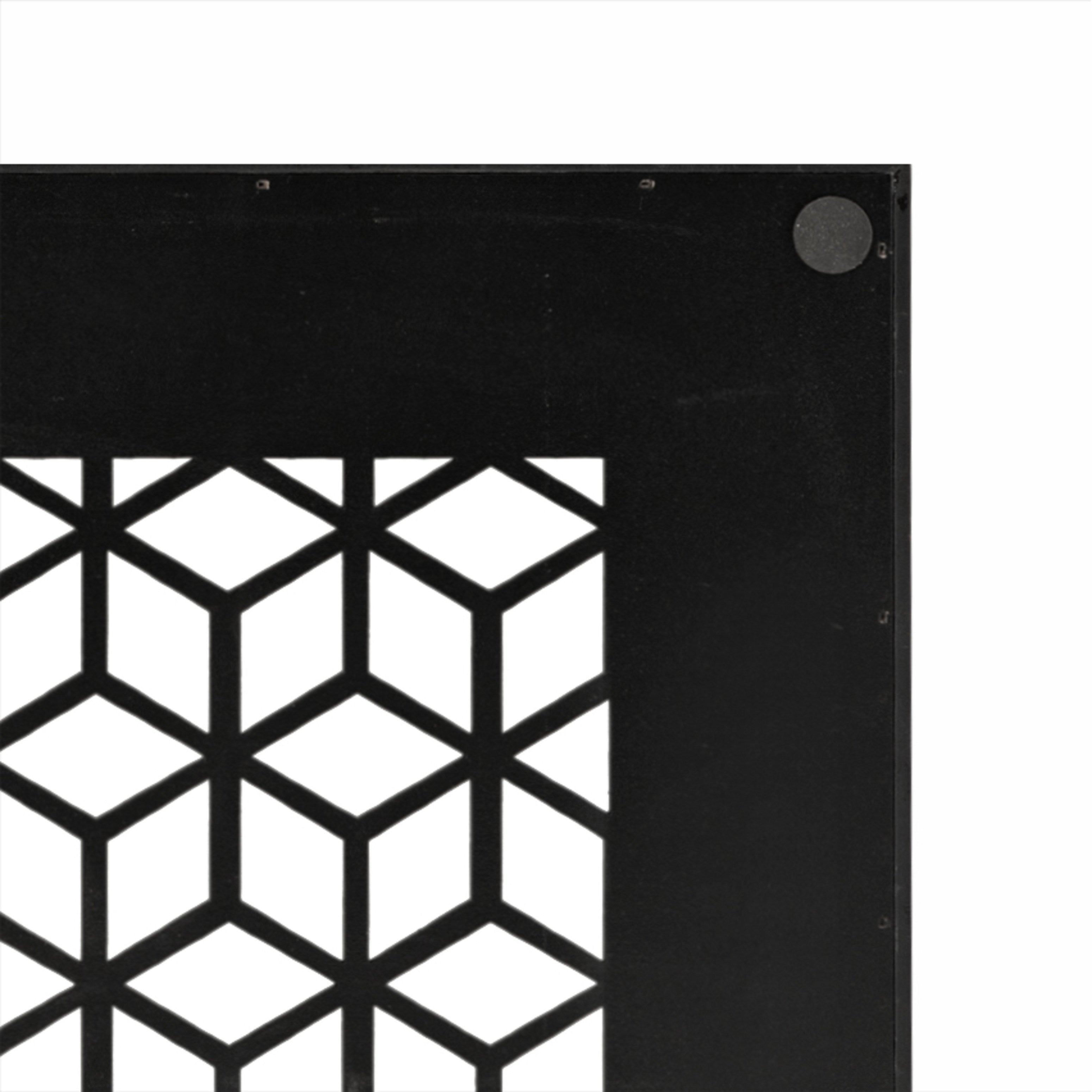 - Constructed of a durable MDF wood with a glass base over patterned wooden cut out bottom