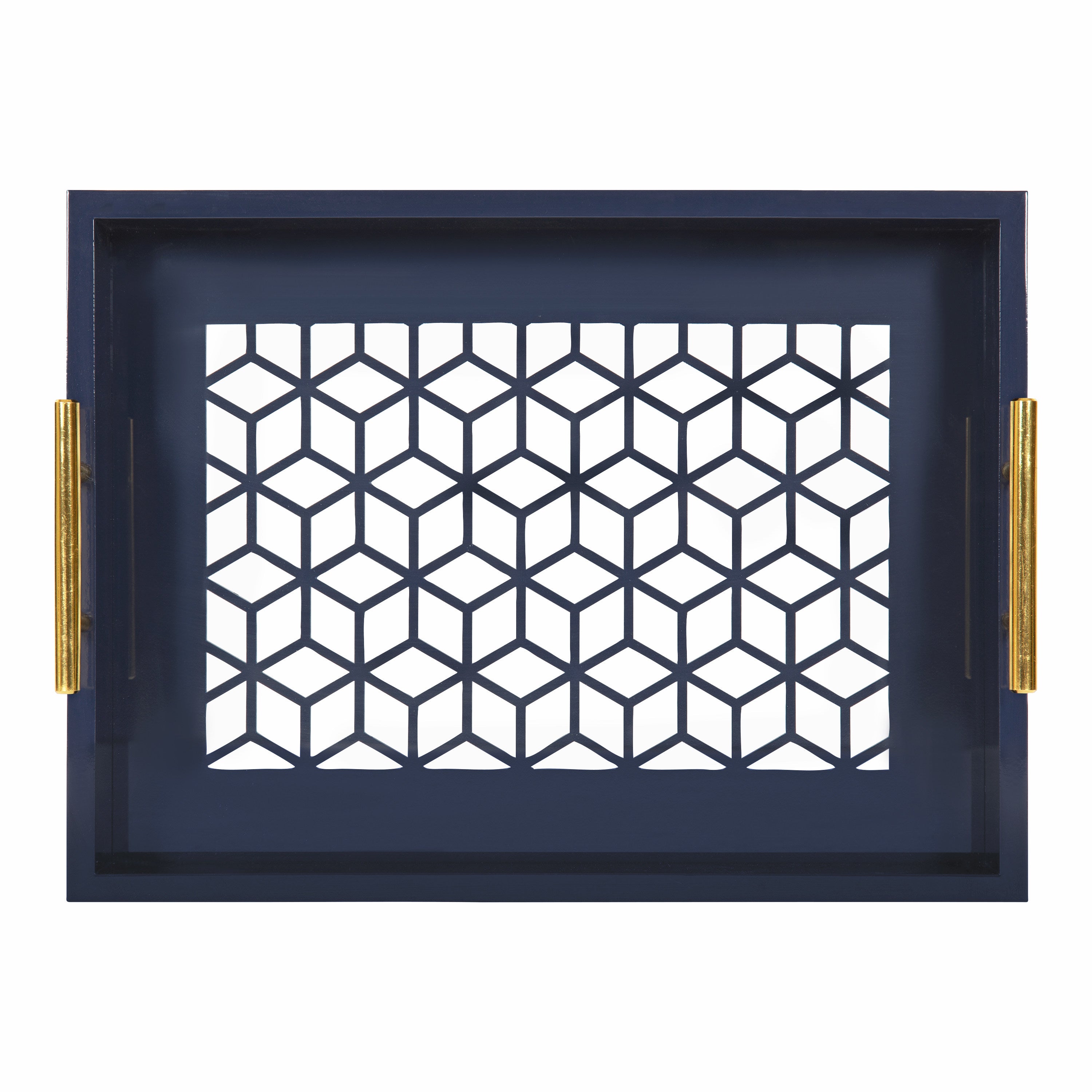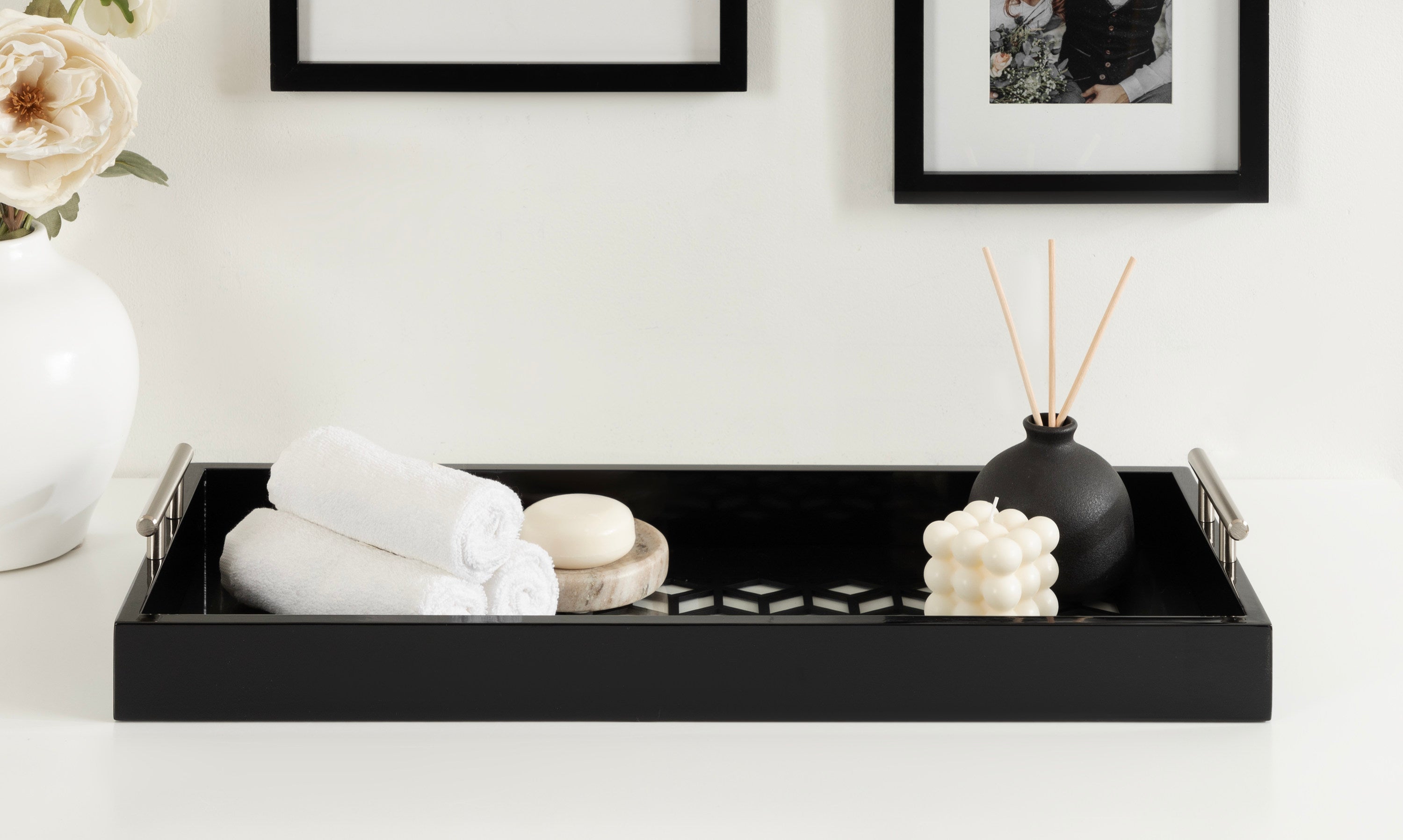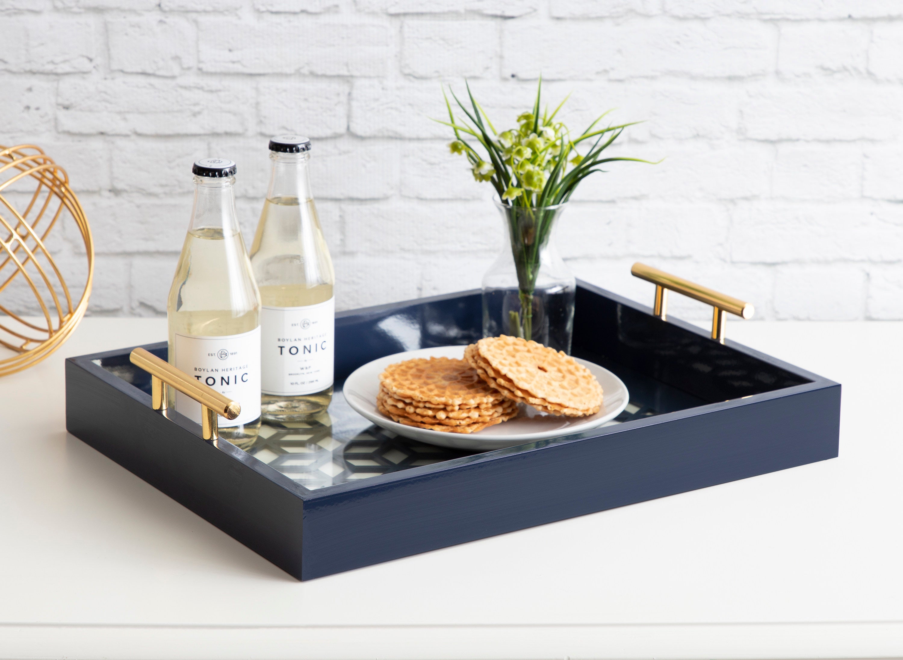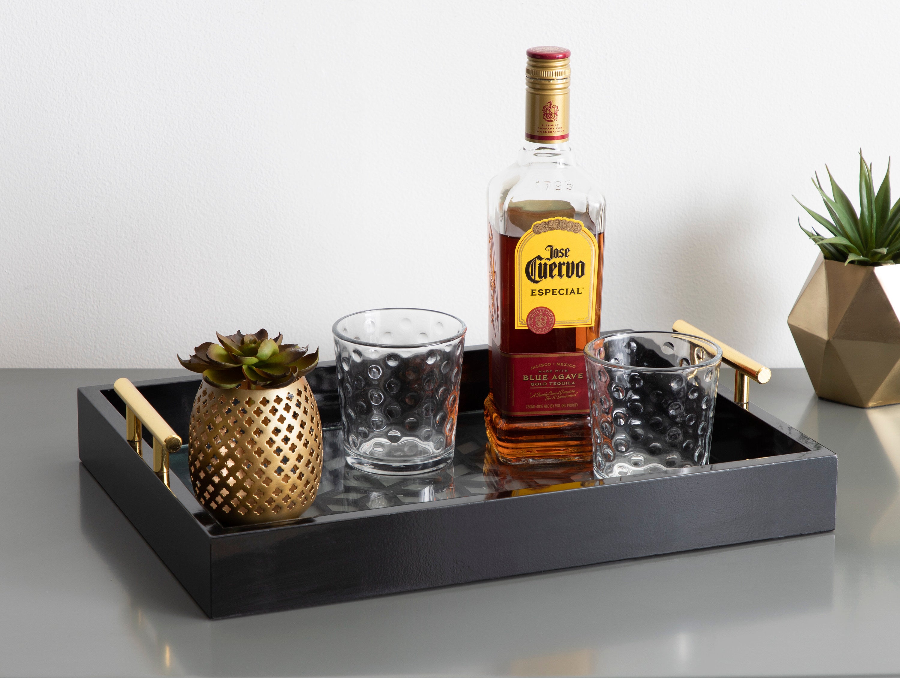 A decorative wooden tray is one of those accent pieces that is not only handy to use but also can look so great styled on your coffee table or ottoman. The elegant look of the Caspen rectangle tray creates fashionable function in an ingenious design. The subtle geometric cut of the wooden base adds a bit of ornate interest while the glass that covers it ensures a smooth surface for placing everything from drinks to perfumes.
