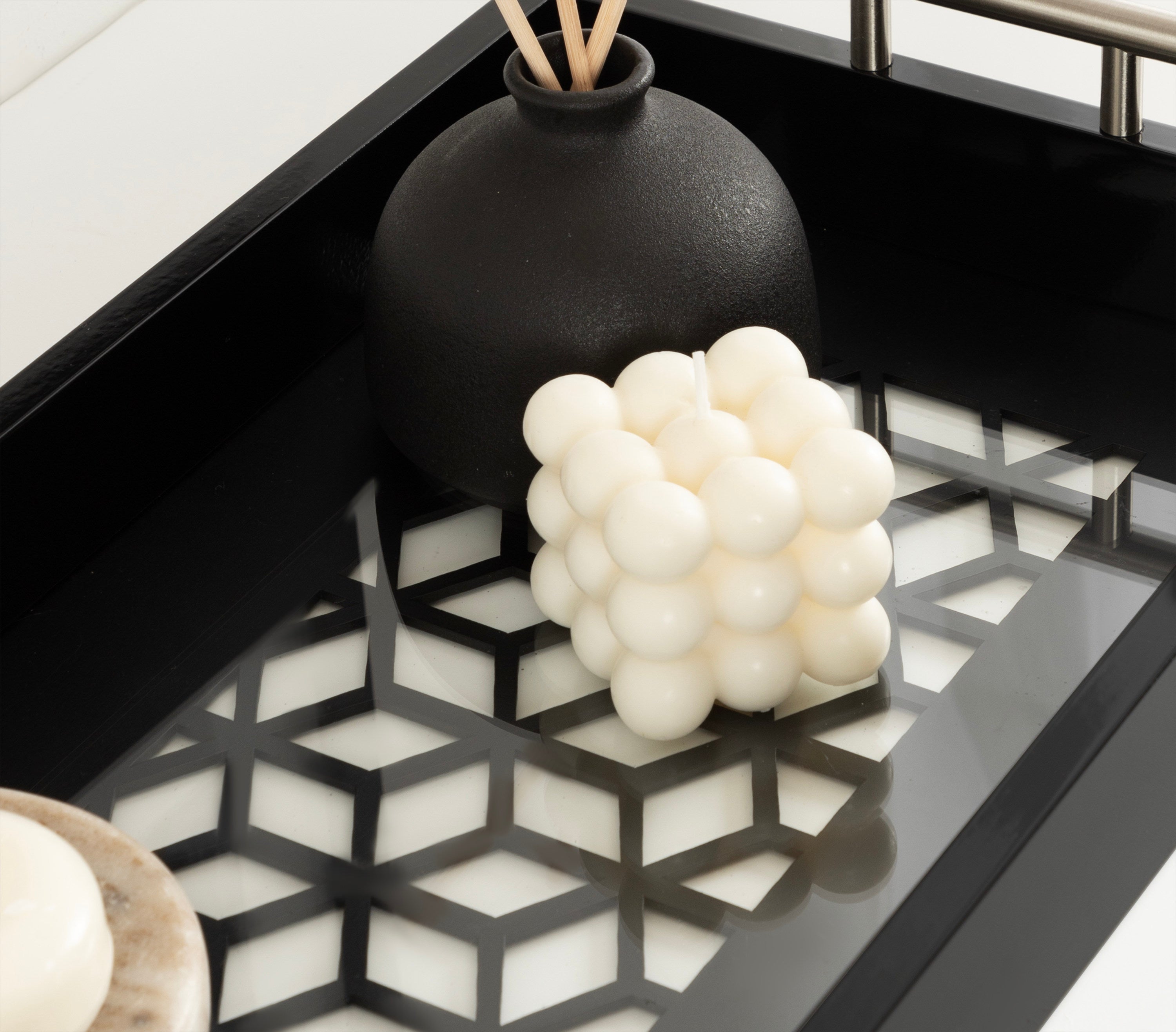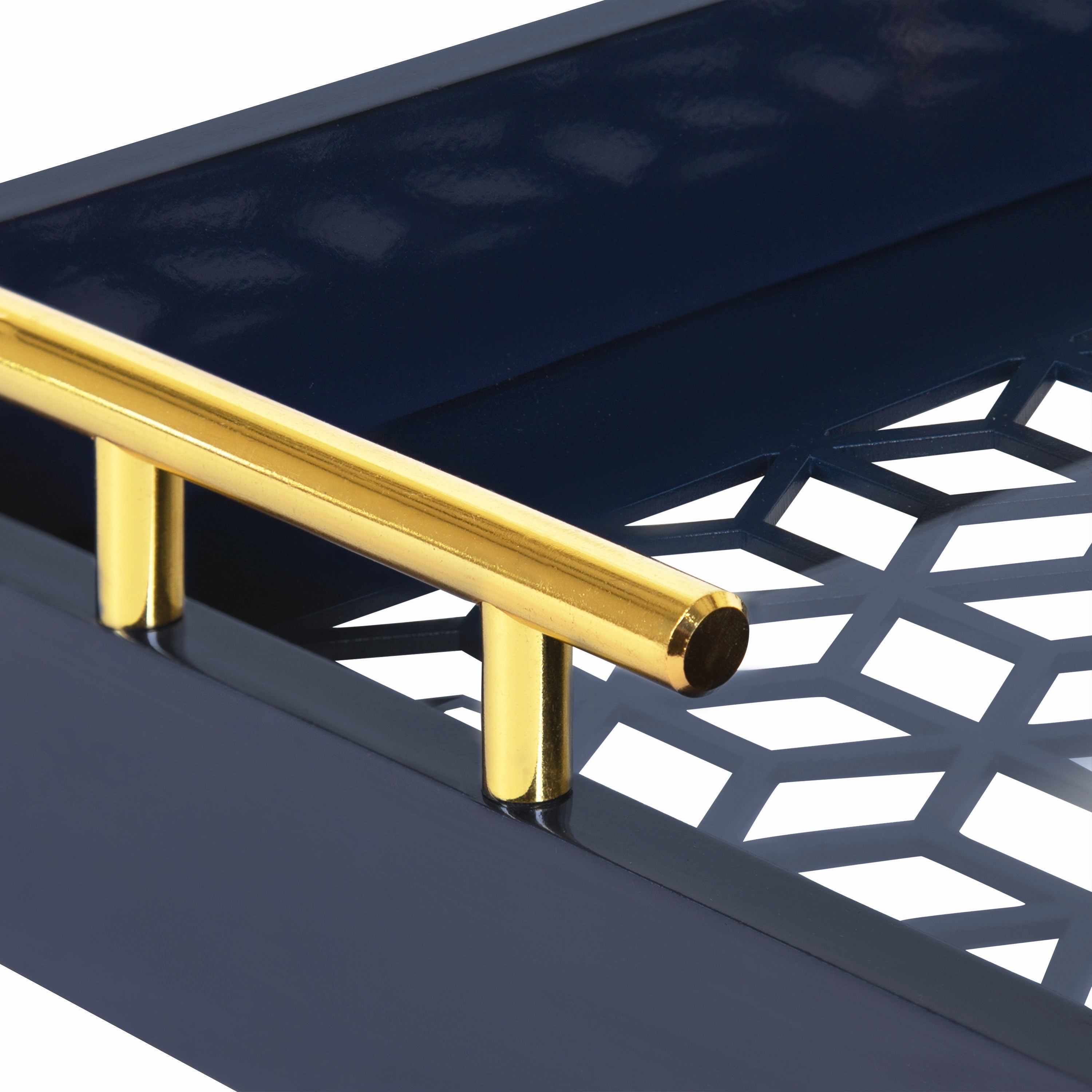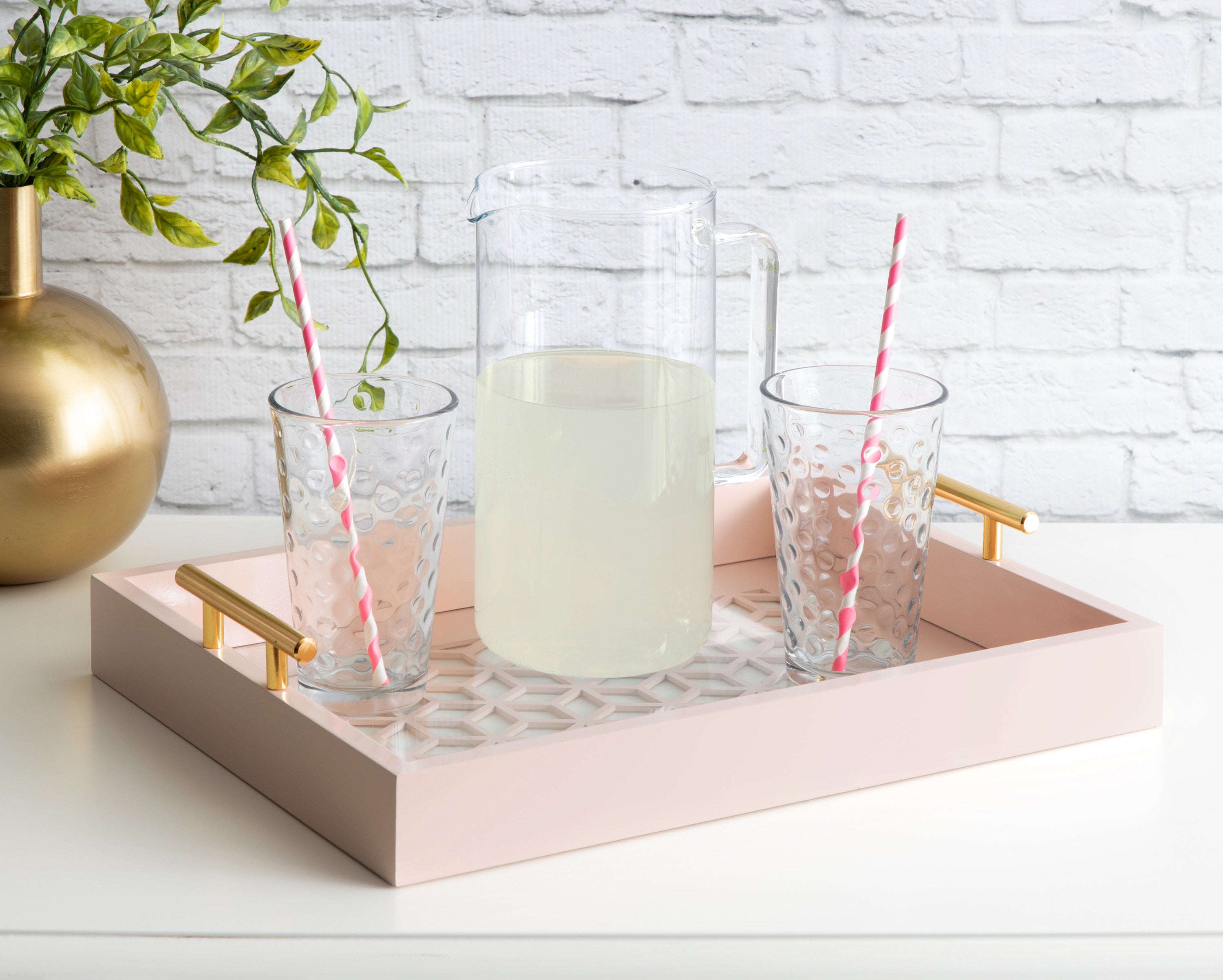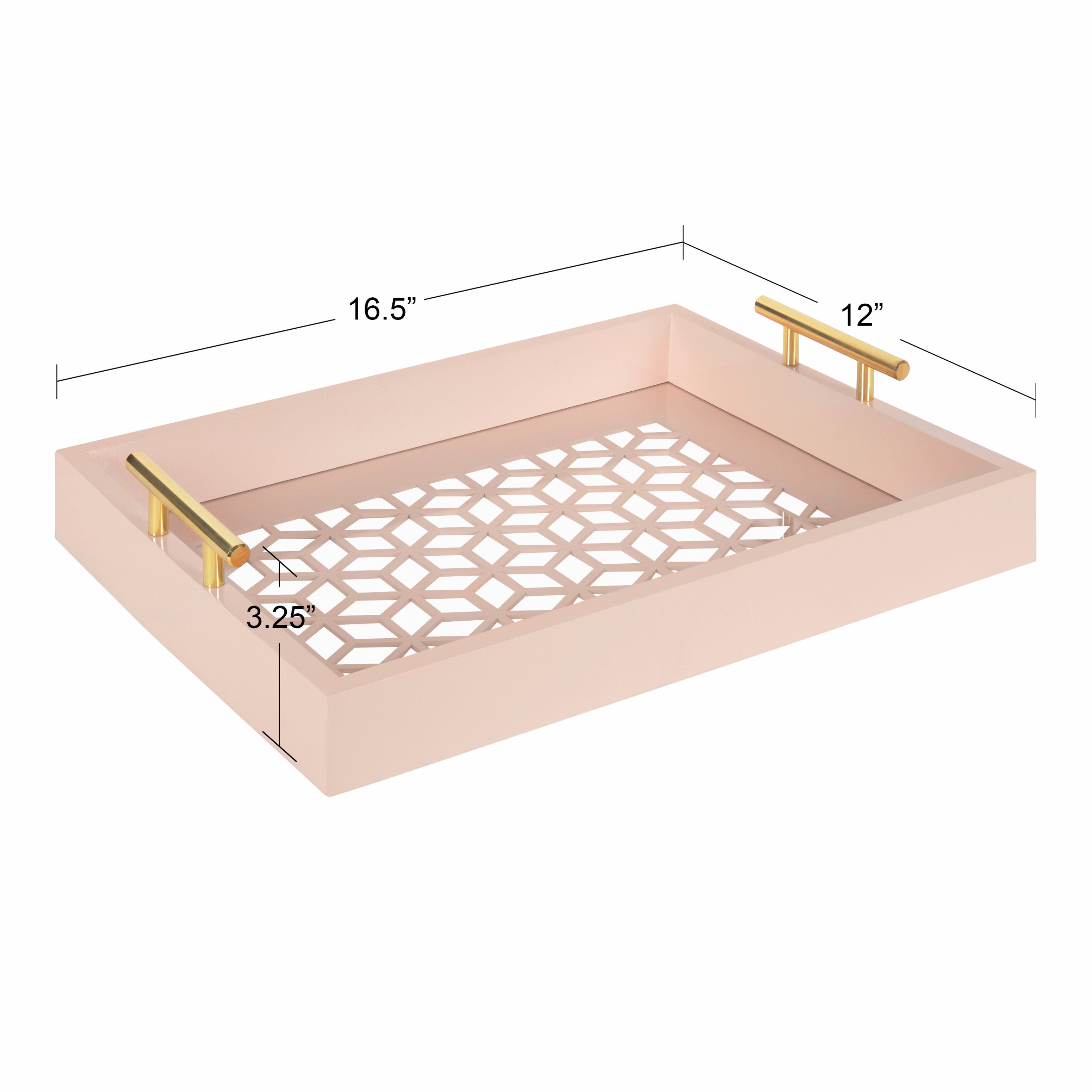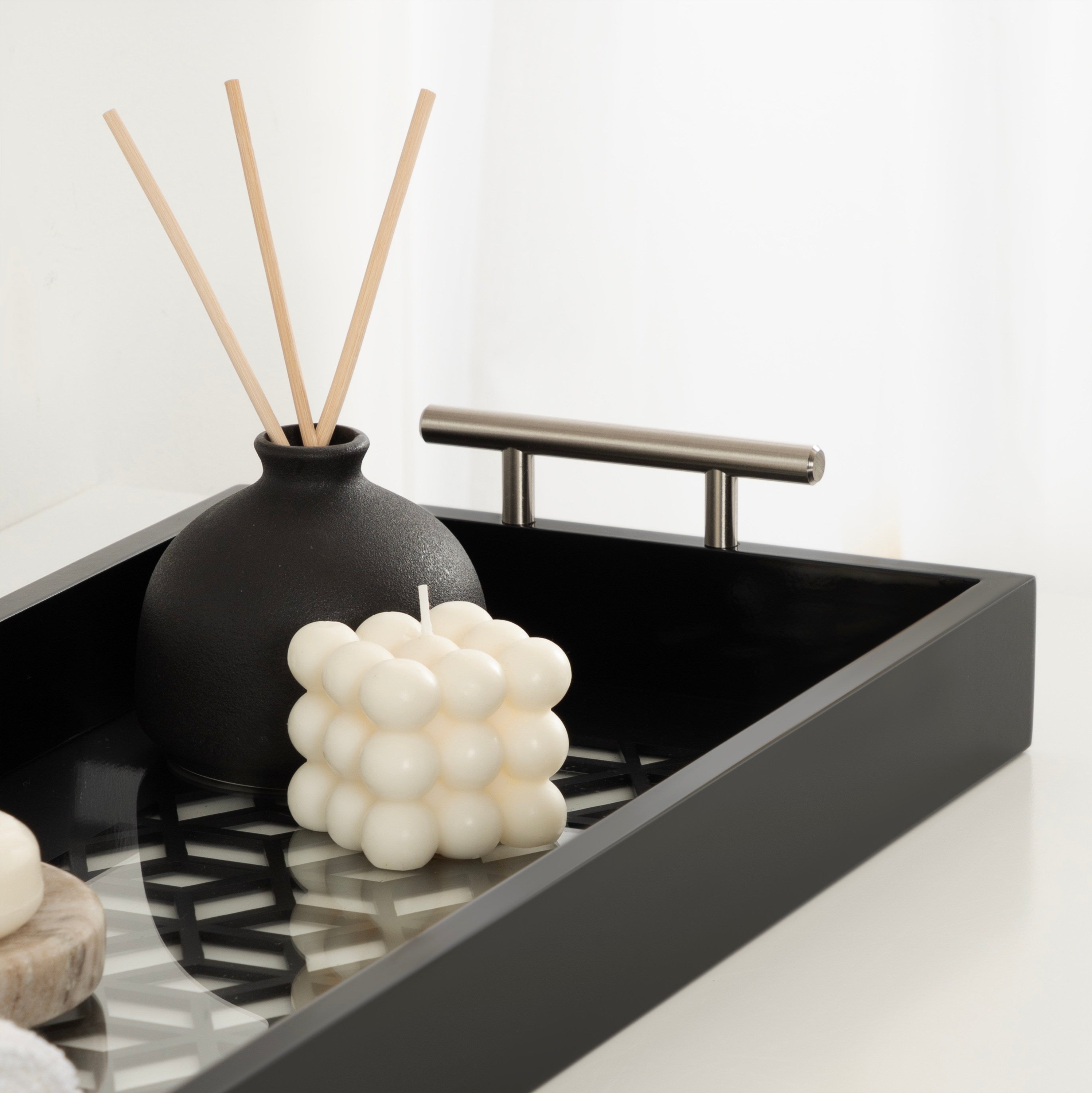 A decorative wooden tray is one of those accent pieces that is not only handy to use but also can look so great styled on your coffee table or ottoman. The elegant look of the Caspen rectangle tray creates fashionable function in an ingenious design. The subtle geometric cut of the wooden base adds a bit of ornate interest while the glass that covers it ensures a smooth surface for placing everything from drinks to perfumes.