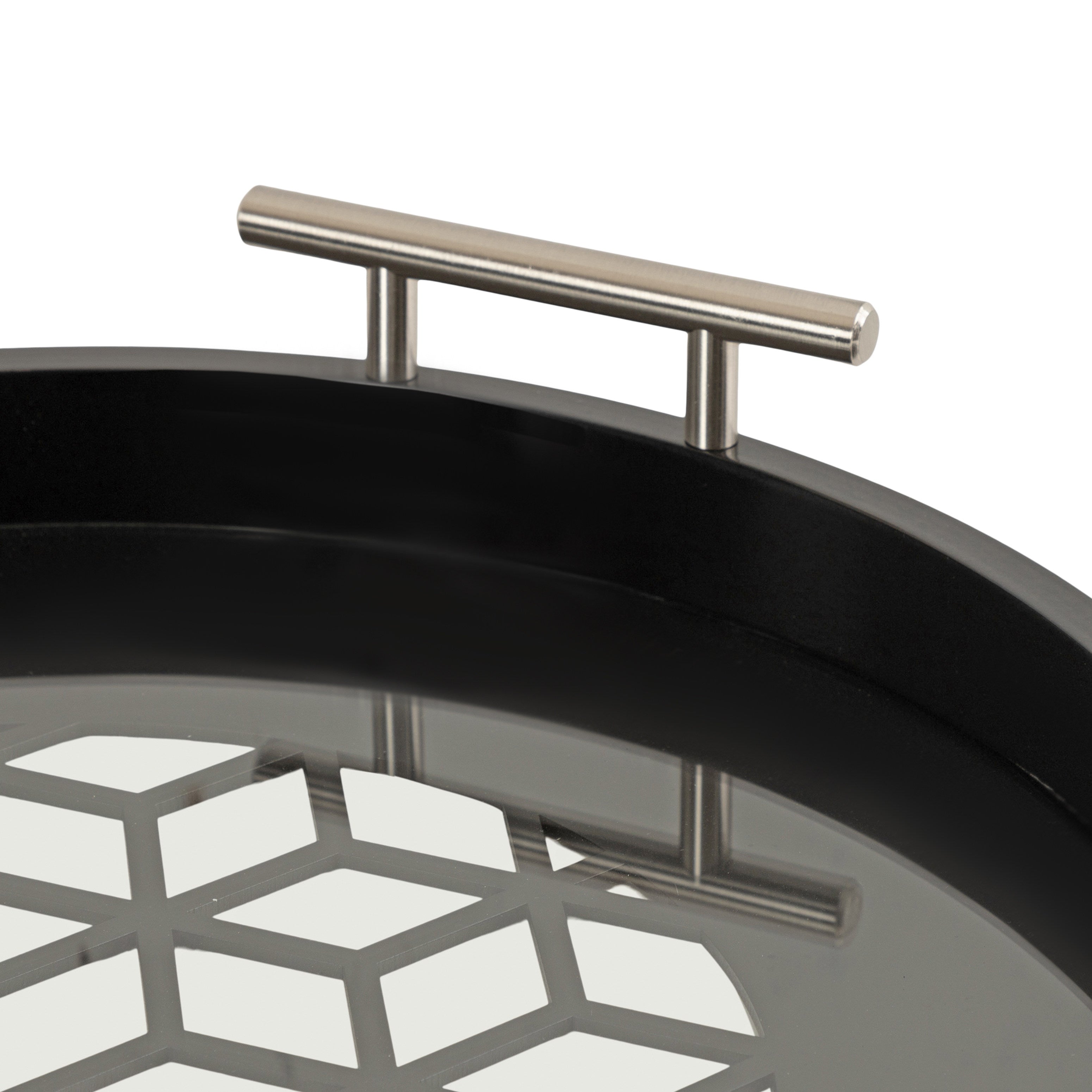 A circular, wooden tray is one of those accent pieces that are not only handy and looks fantastic on your coffee table or ottoman. The elegant look of the Caspen round tray creates fashionable function in an ingenious design. The subtle geometric cut of the wooden base adds a bit of ornate interest, while the glass that covers it ensures a smooth surface for placing everything from drinks to perfumes.