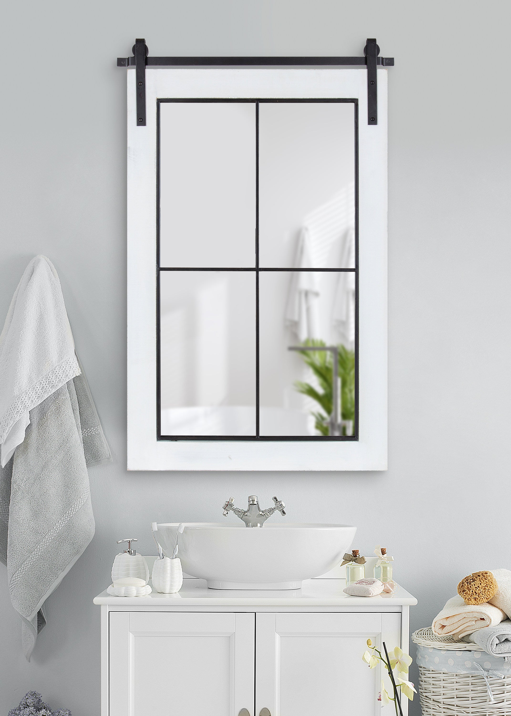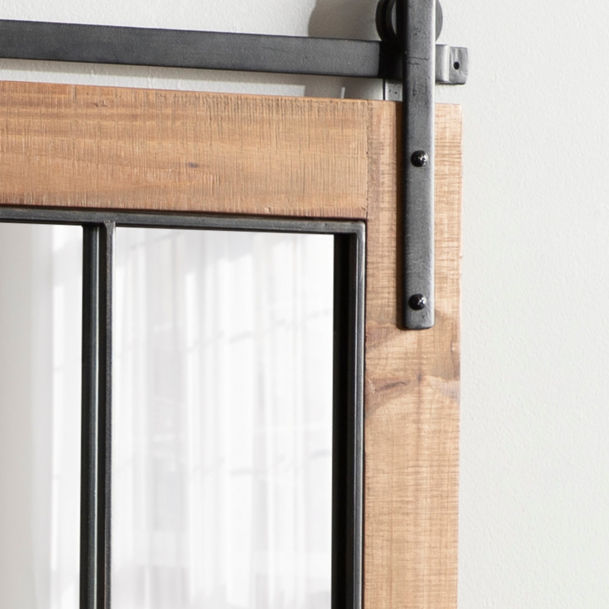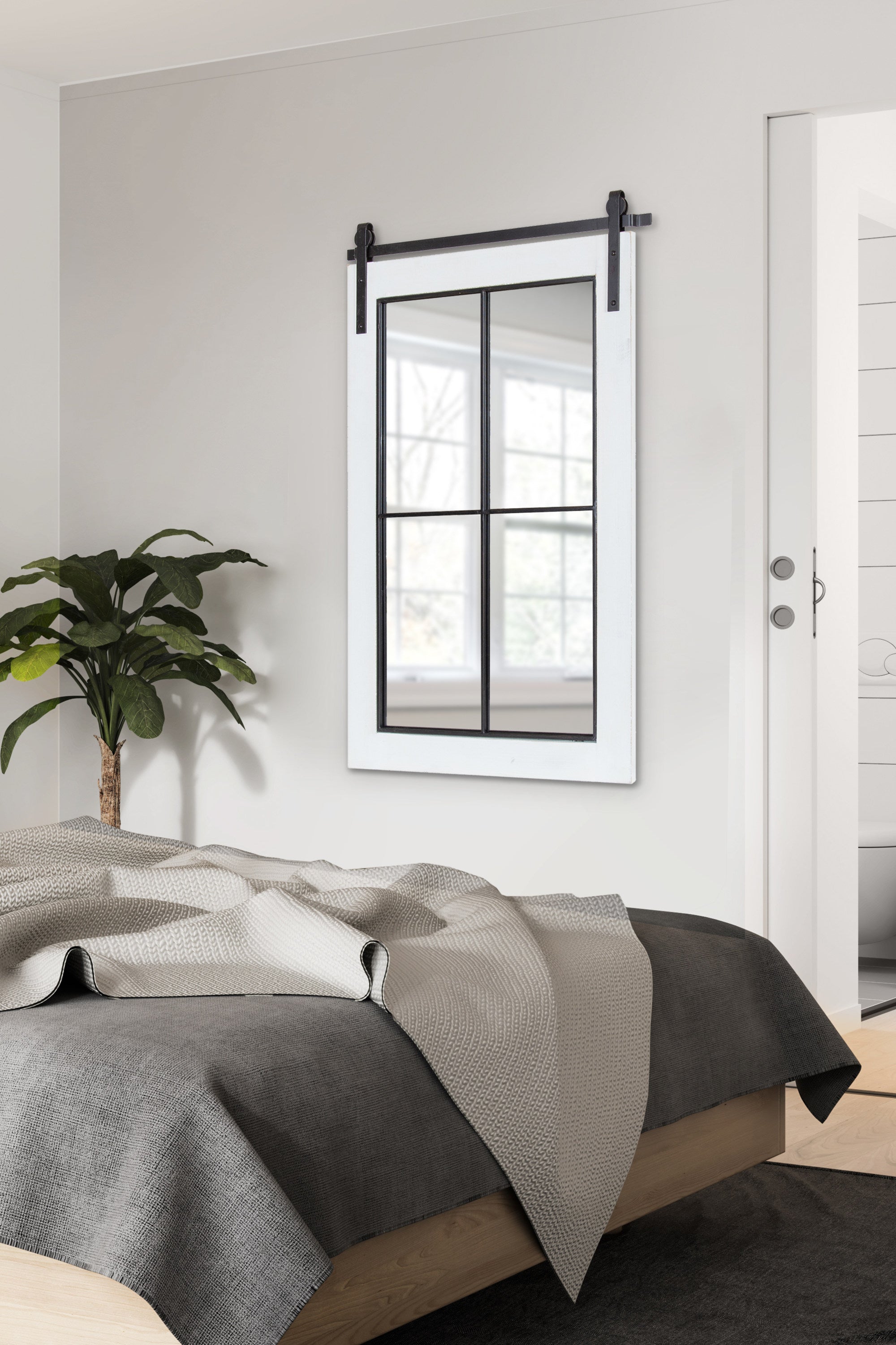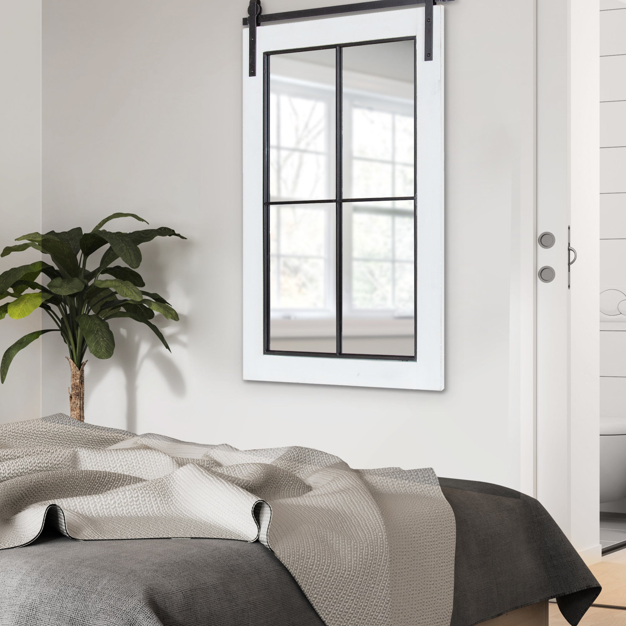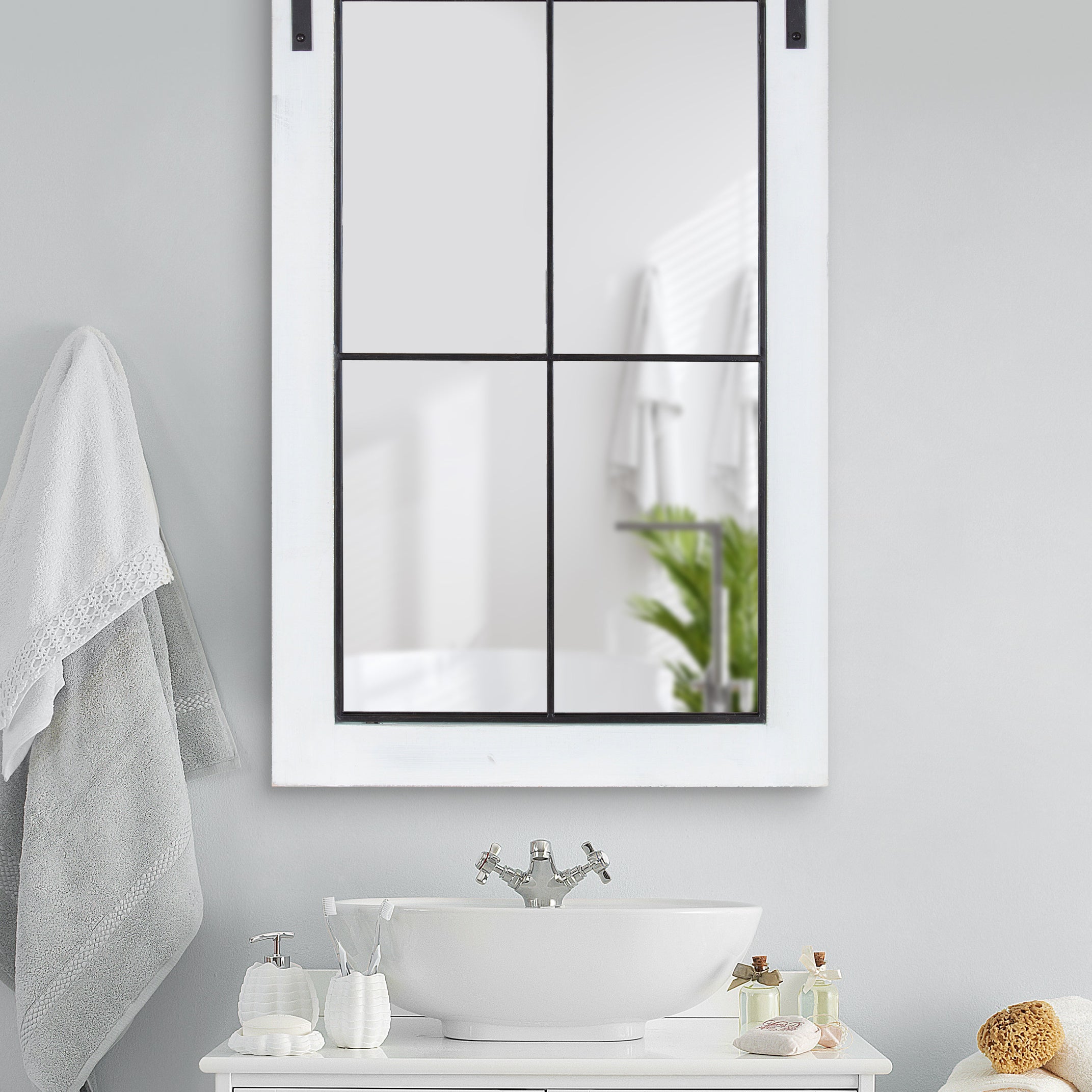 Add vibrancy and dimension to your space with this farmhouse-inspired accent mirror. The Cates mirror features 4 panes separated by a wooden overlay, giving it a farmhouse window-like look. This rustic accent mirror draws in light and creates a more vibrant and open space. Hang this wall mirror in a place that needs more light and dimension.