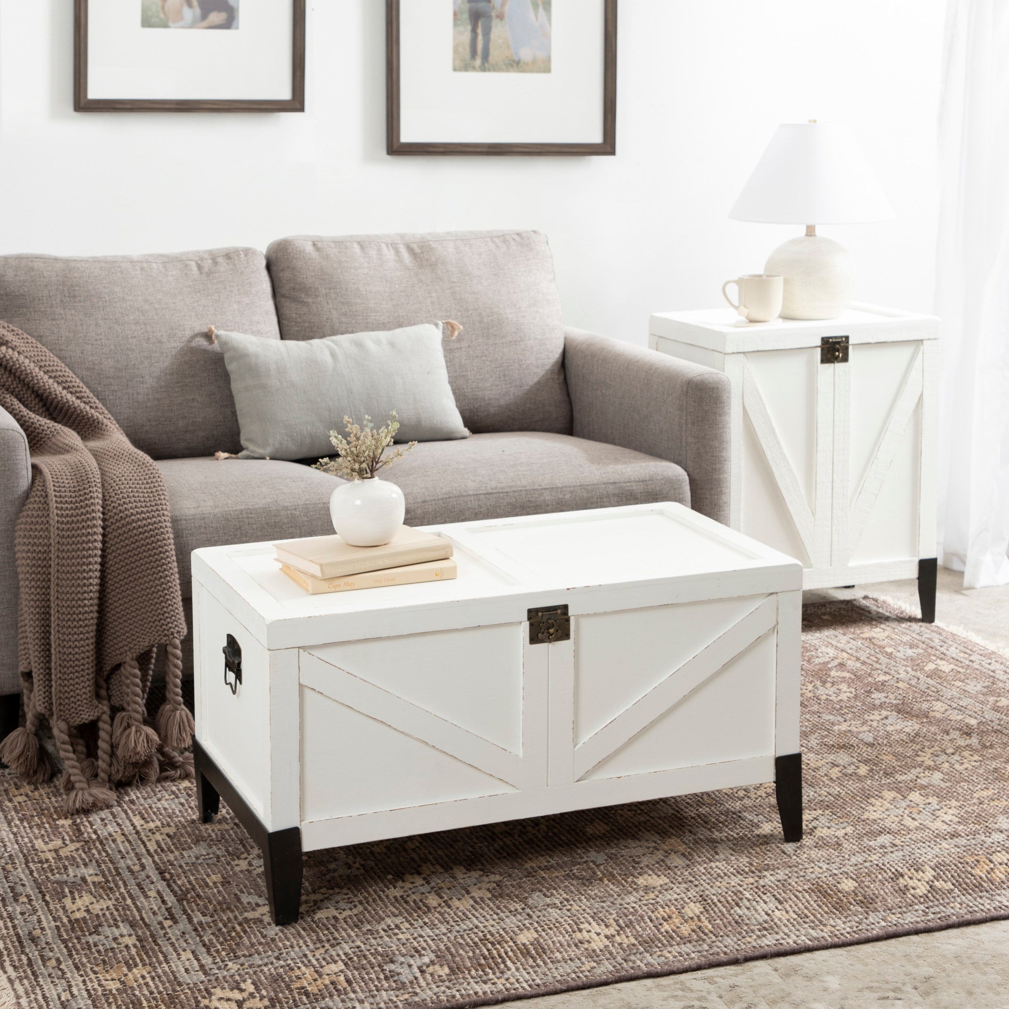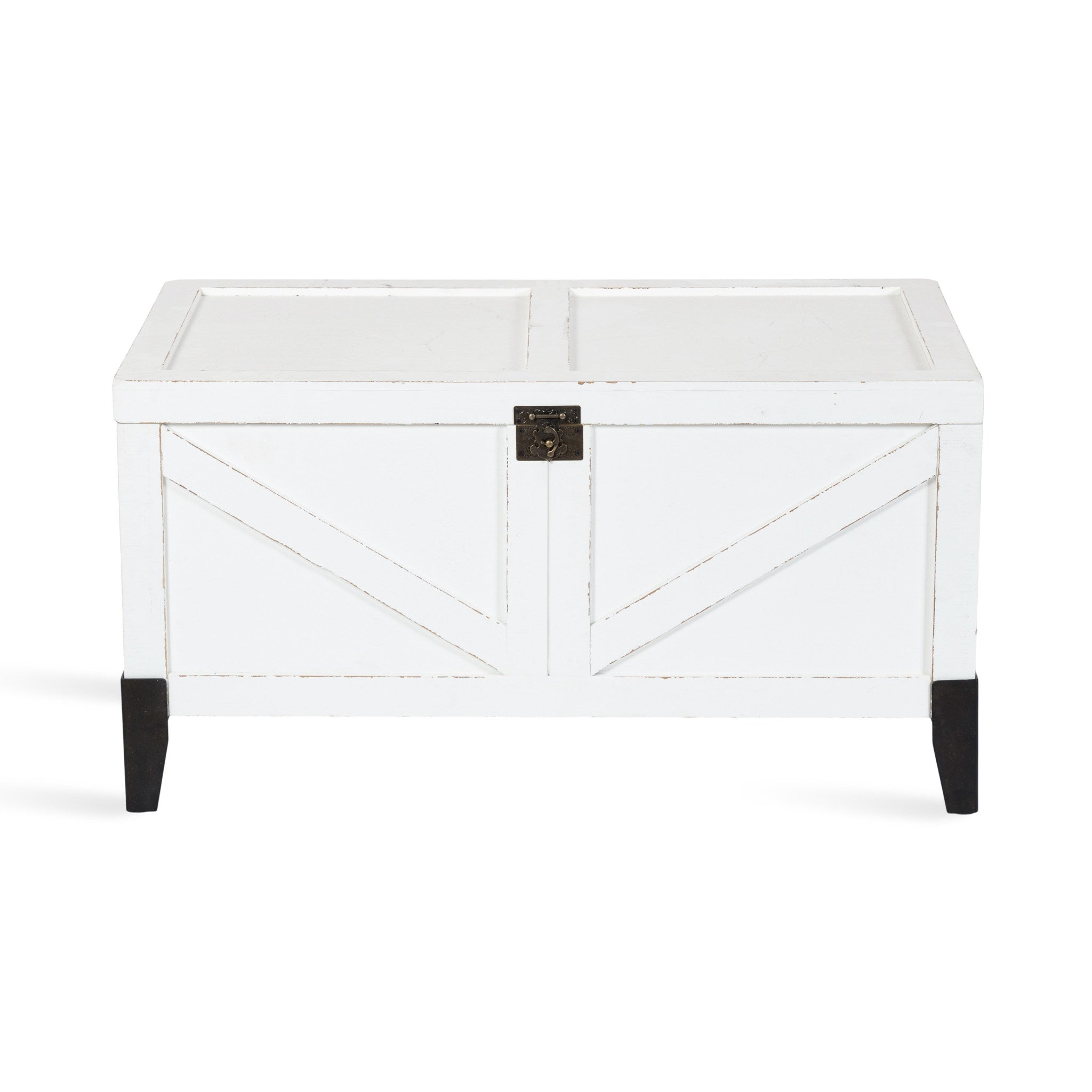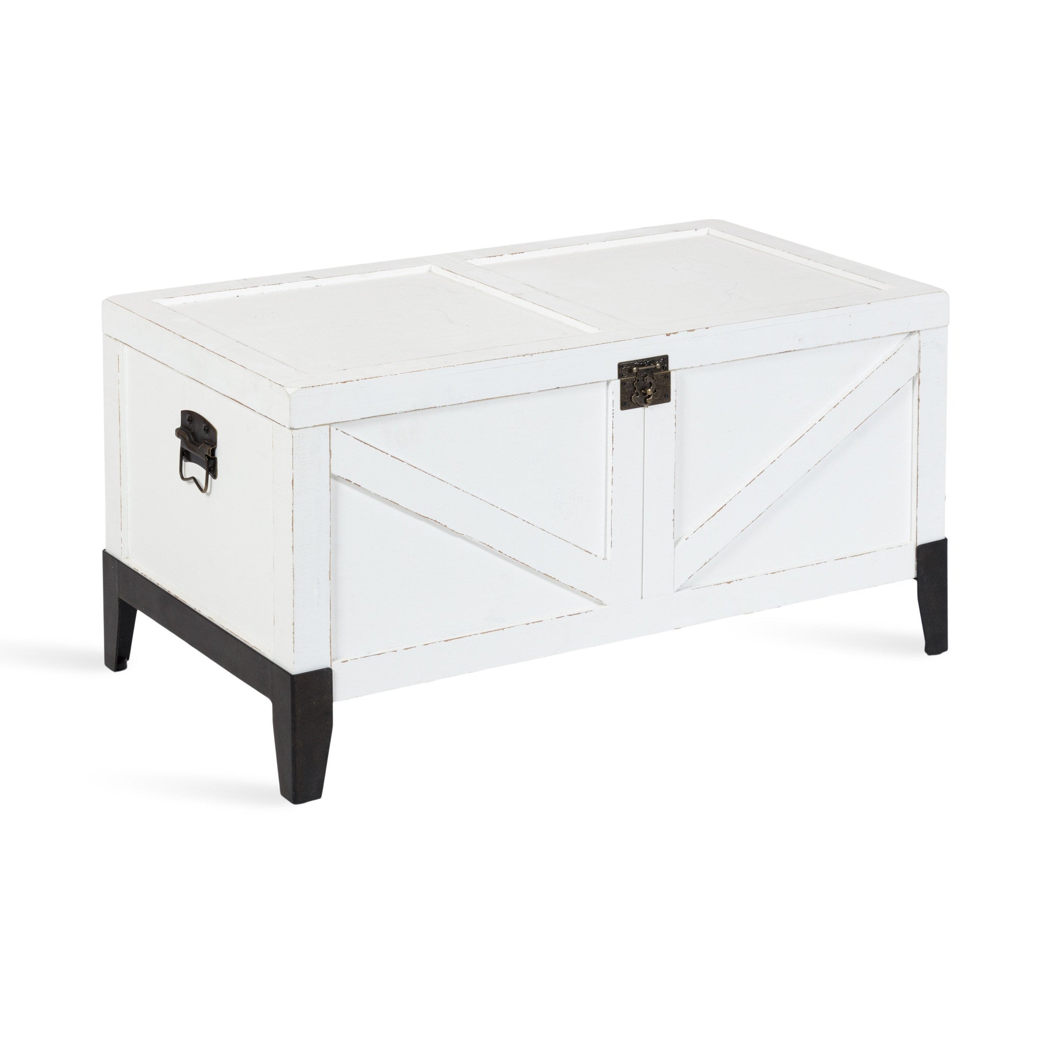 Charm your guests with this lovely Cates wooden coffee table from Kate and Laurel. Building off of our spanning Cates' collection, this table features a barn door-inspired design to fully embrace the rustic farmhouse decor style. With its charming trunk design, you can open up the tabletop and fill the inside with blankets, pillows, remotes, or seasonal decor items that aren't in use.