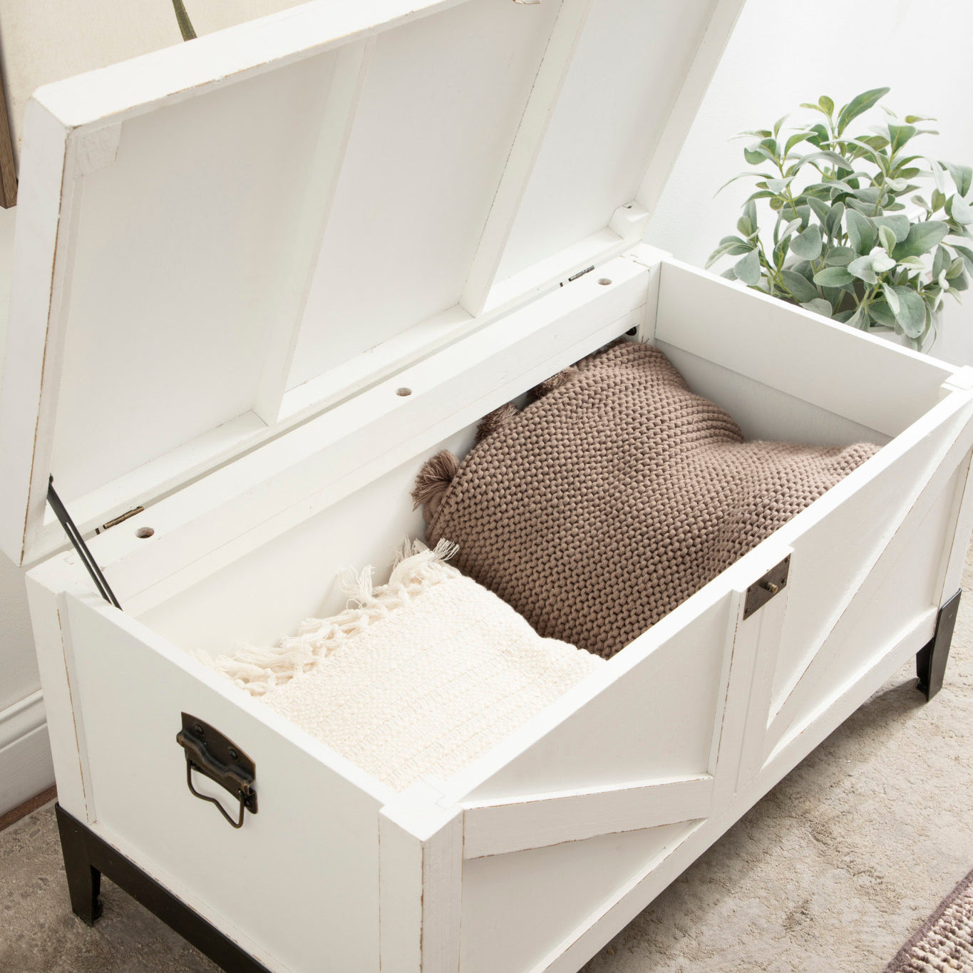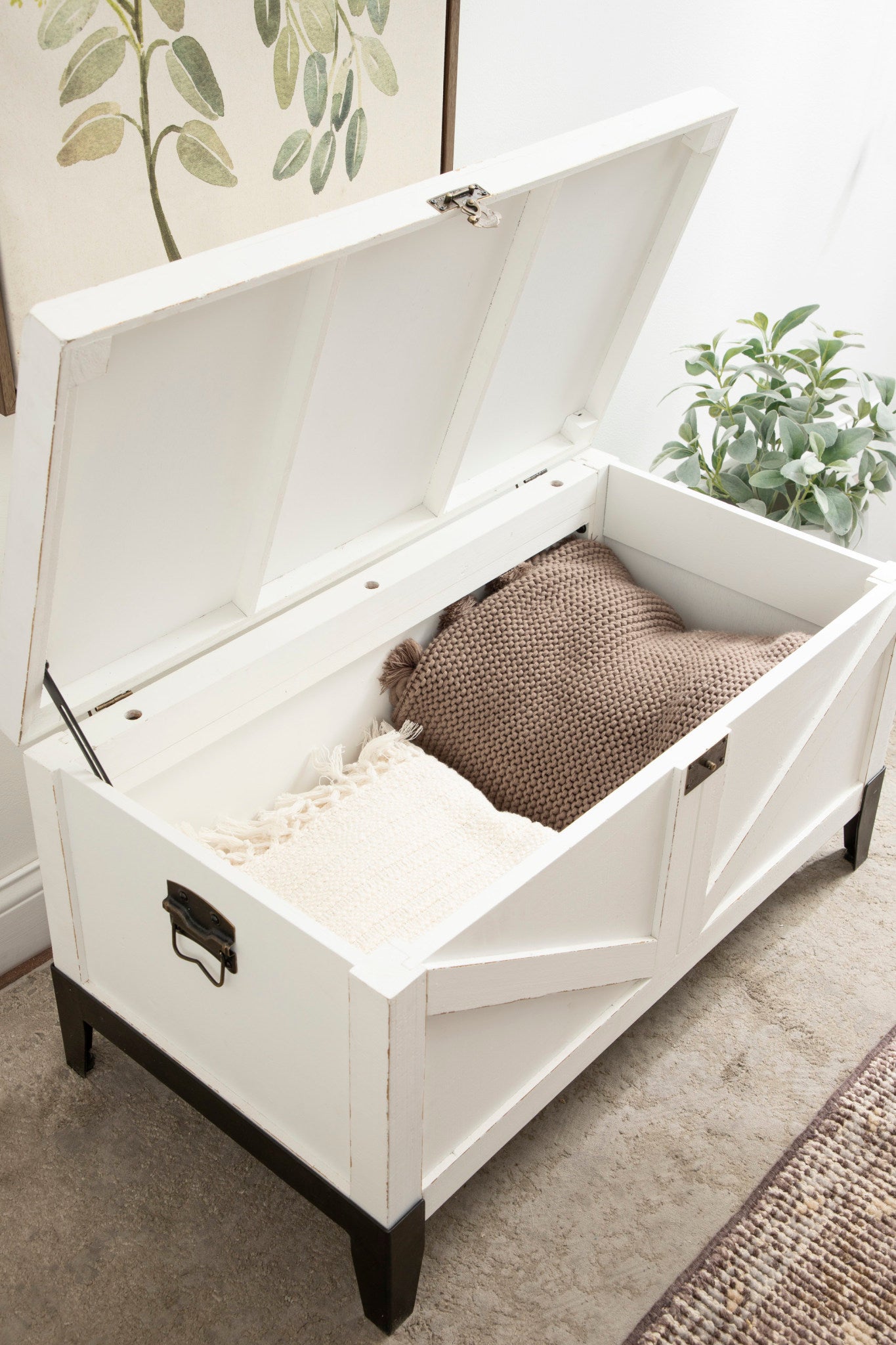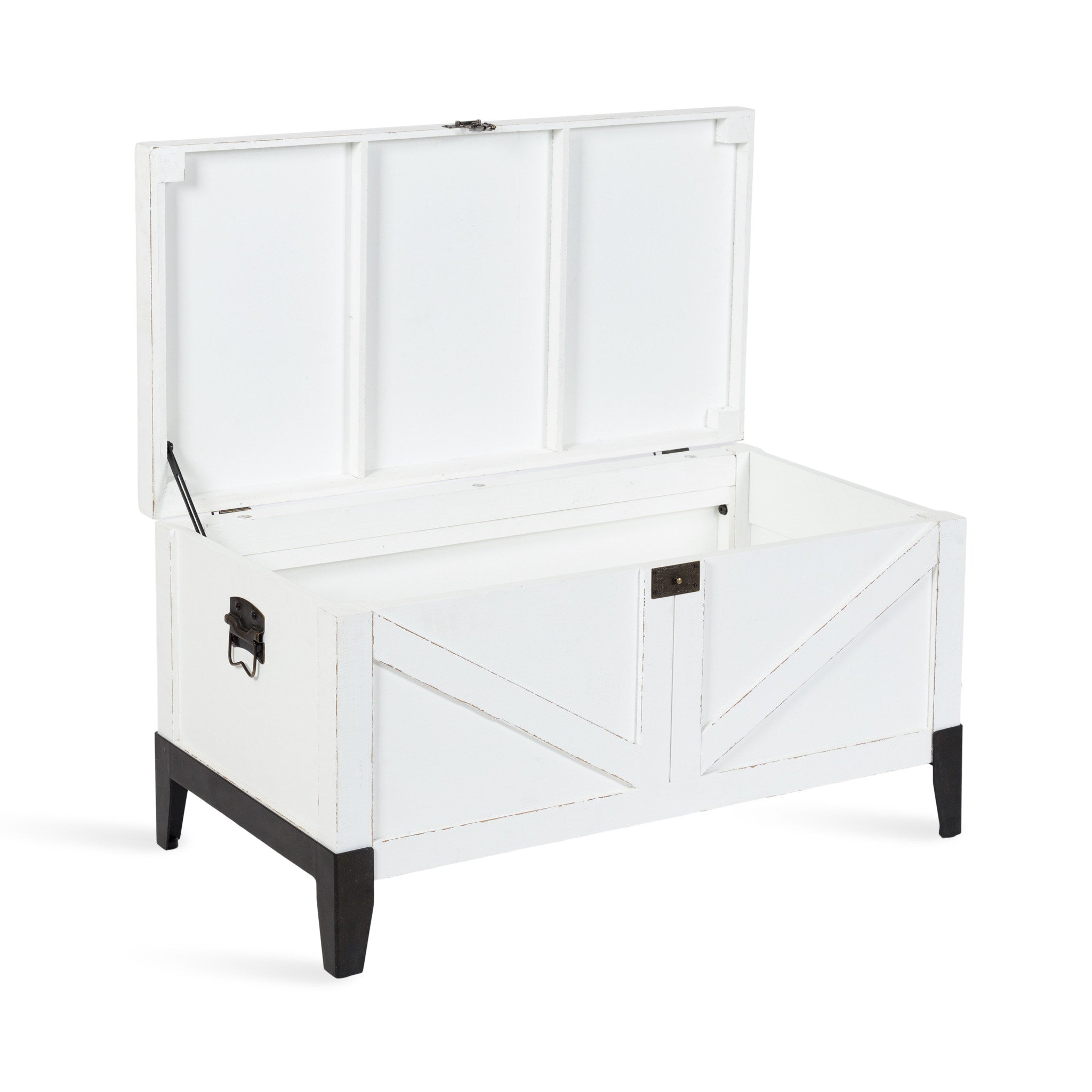 Charm your guests with this lovely Cates wooden coffee table from Kate and Laurel. Building off of our spanning Cates' collection, this table features a barn door-inspired design to fully embrace the rustic farmhouse decor style. With its charming trunk design, you can open up the tabletop and fill the inside with blankets, pillows, remotes, or seasonal decor items that aren't in use.