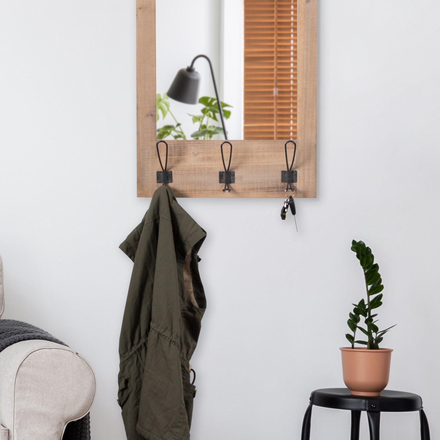 Cates Wood Framed Wall Mirror with Hooks