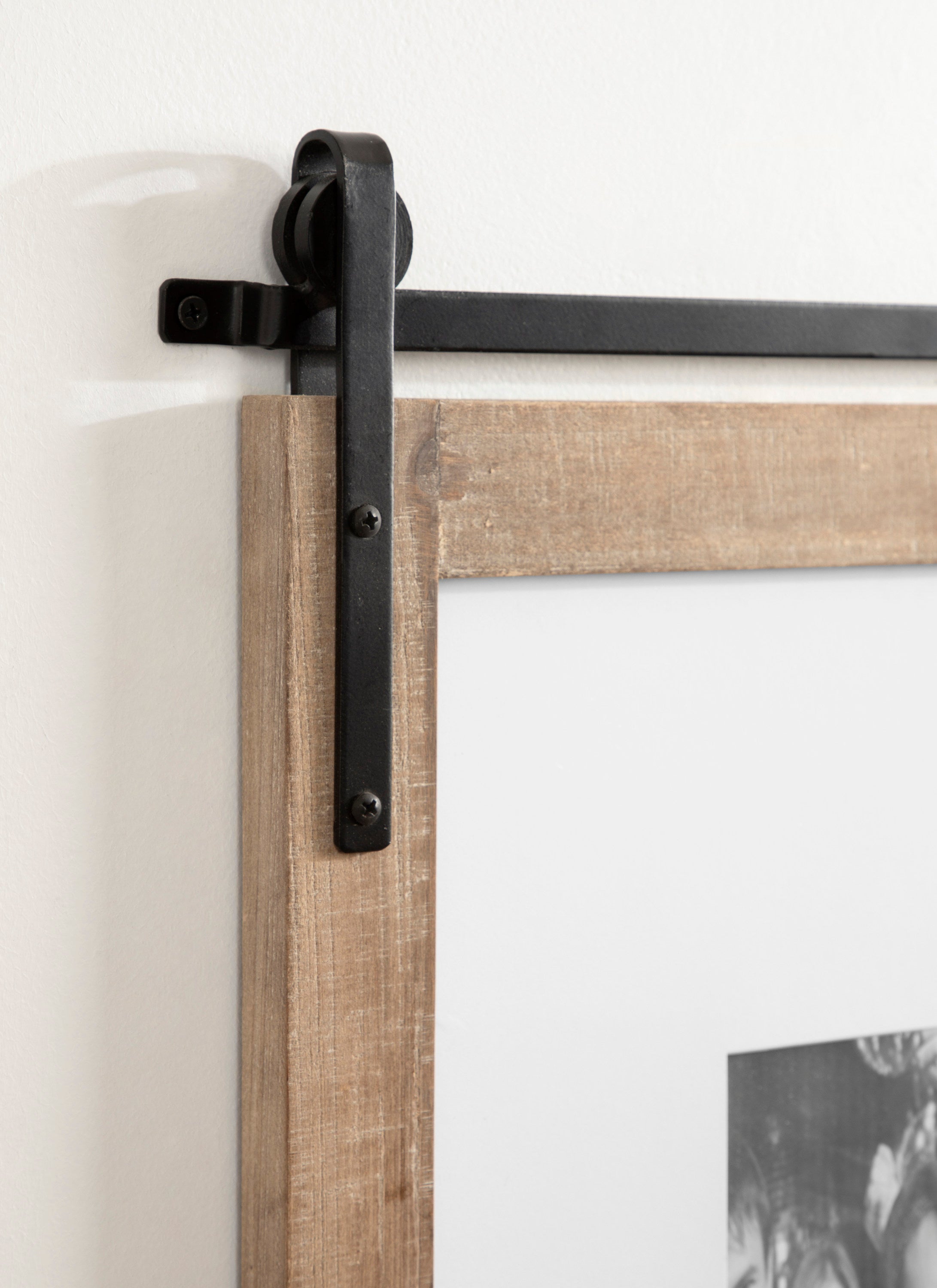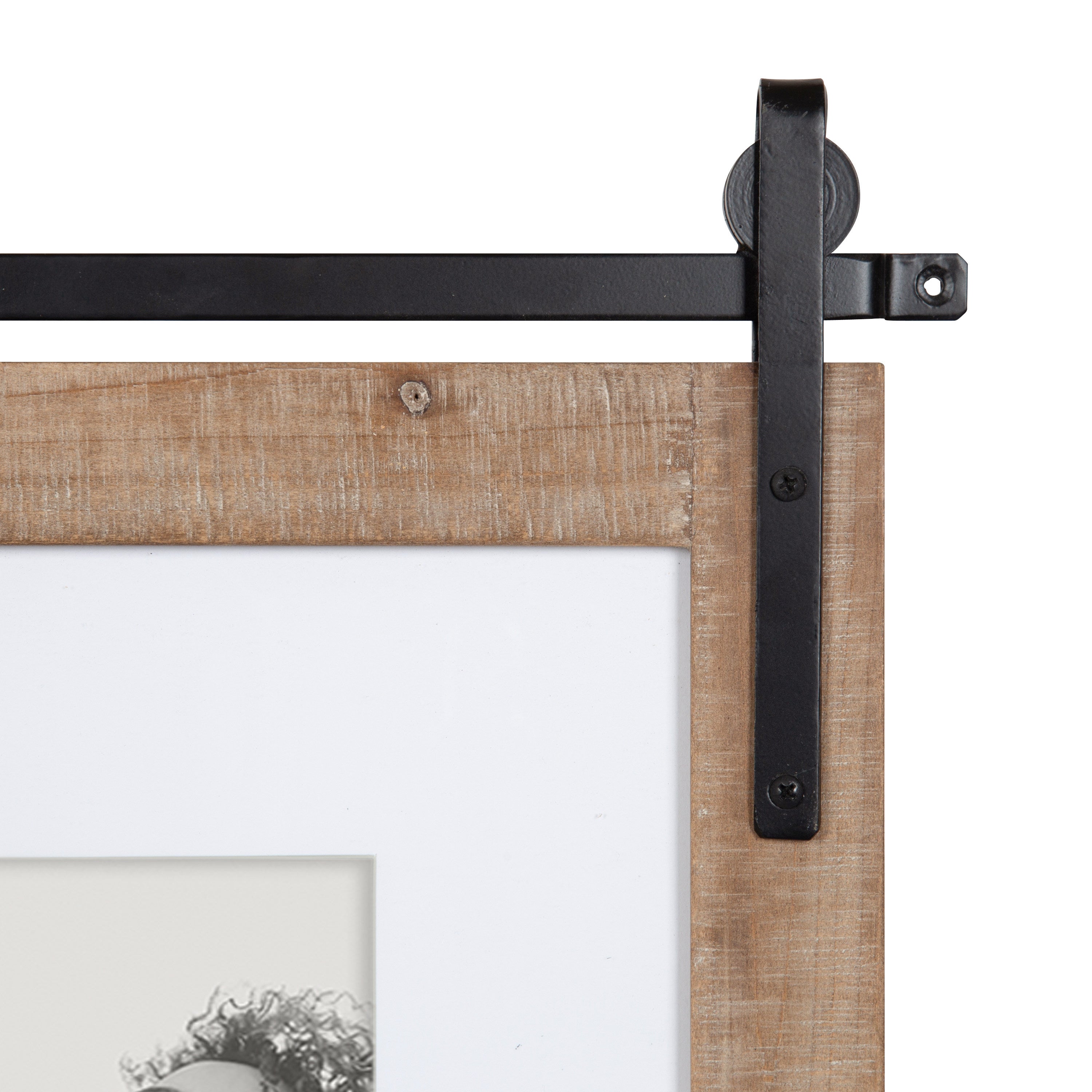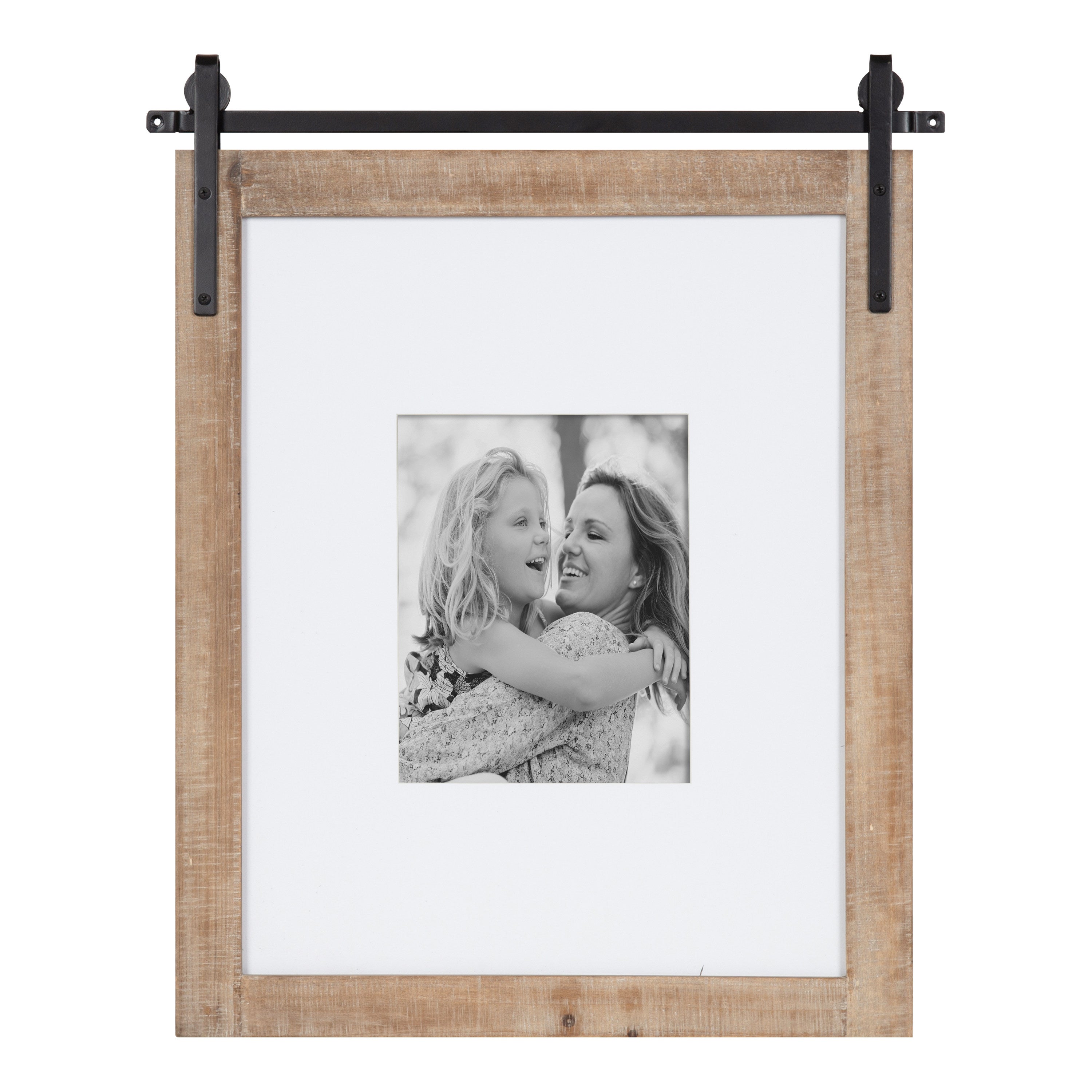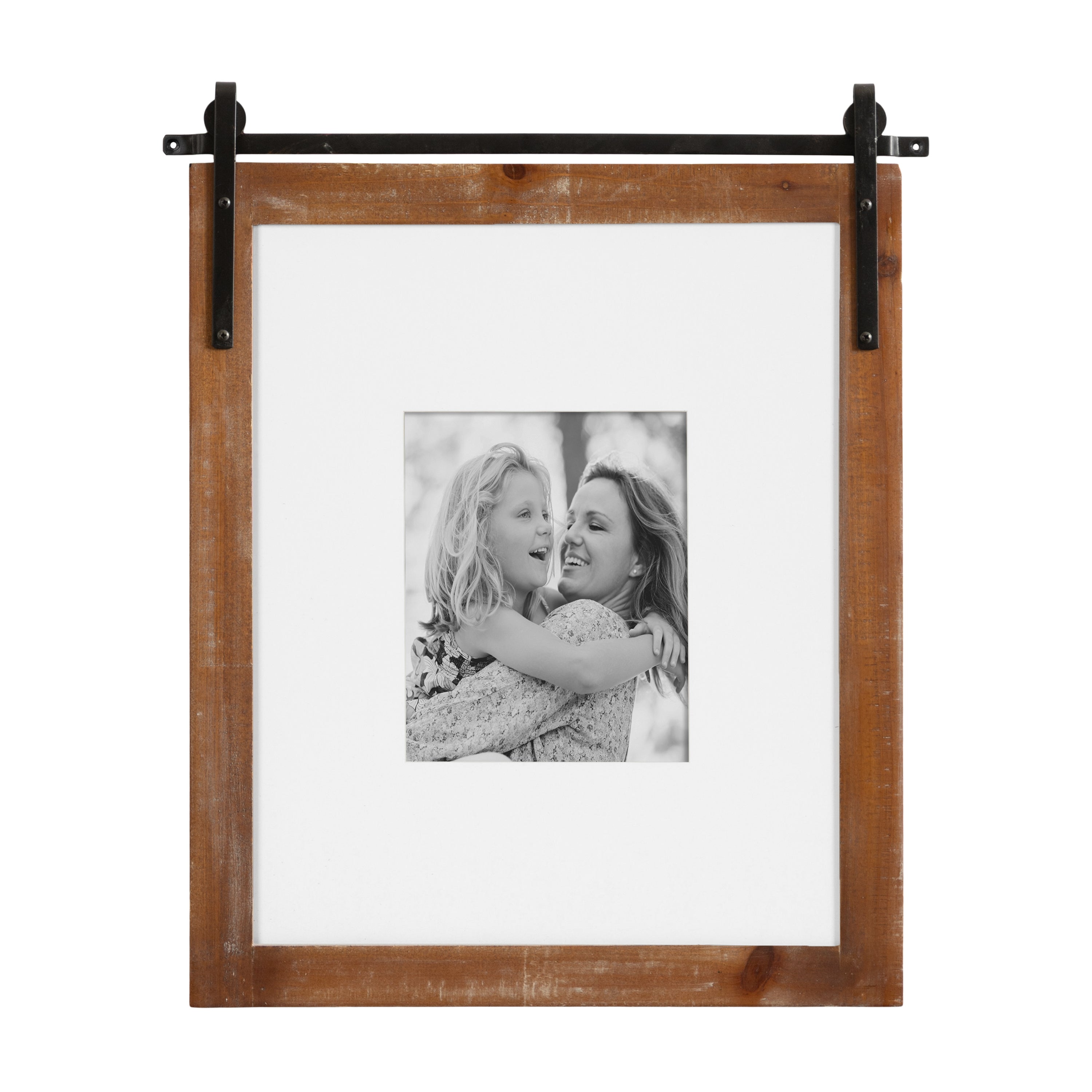 Craft a memorable farmhouse display with this charming Cates photo frame. Molded after the Cates mirror and wall organization collections, this picture frame features the same barn door-inspired design with the metal detailing above the frame and its overall rustic charm. This is a lovely way to showcase your memories while complementing your home decor style.