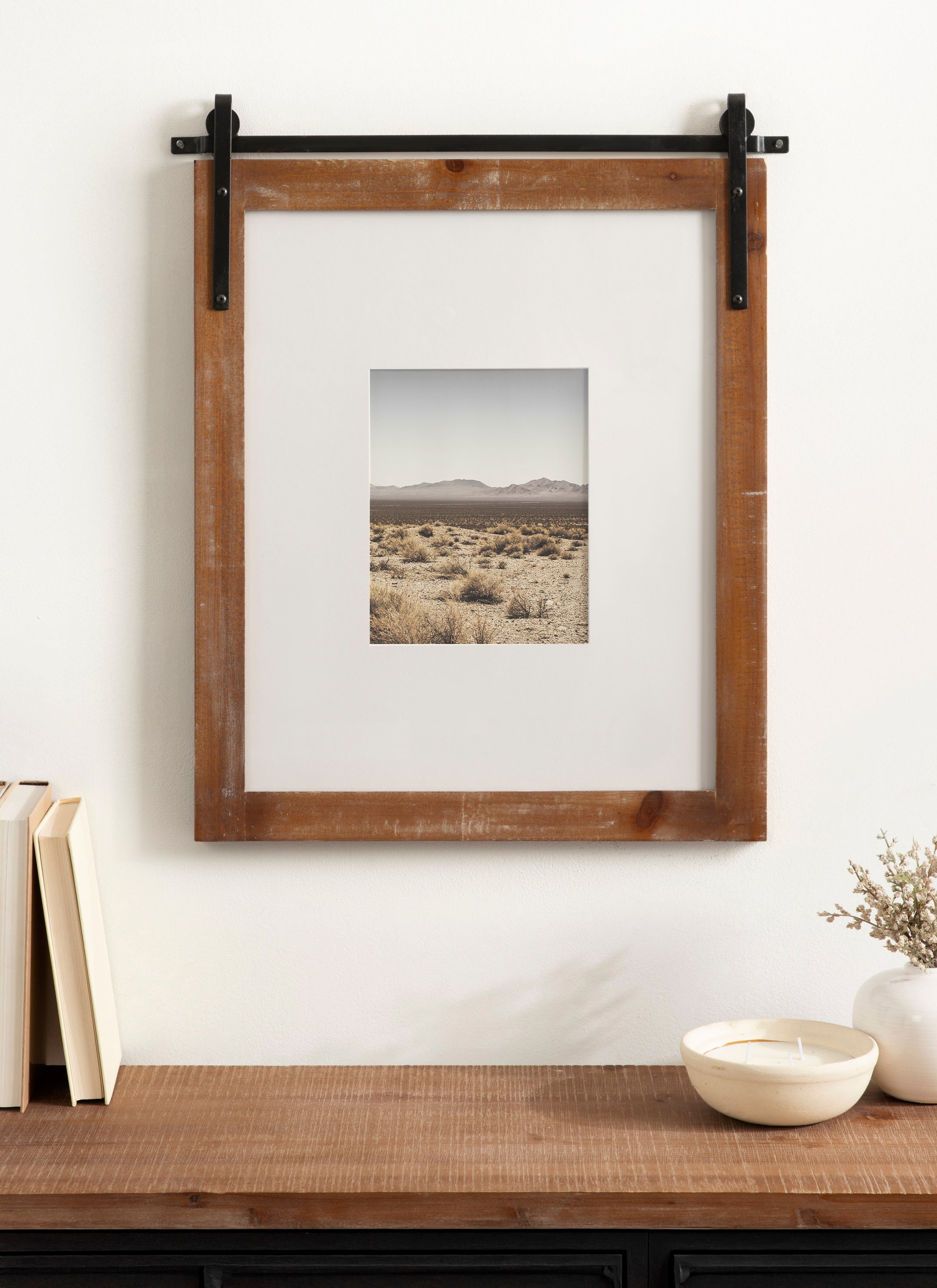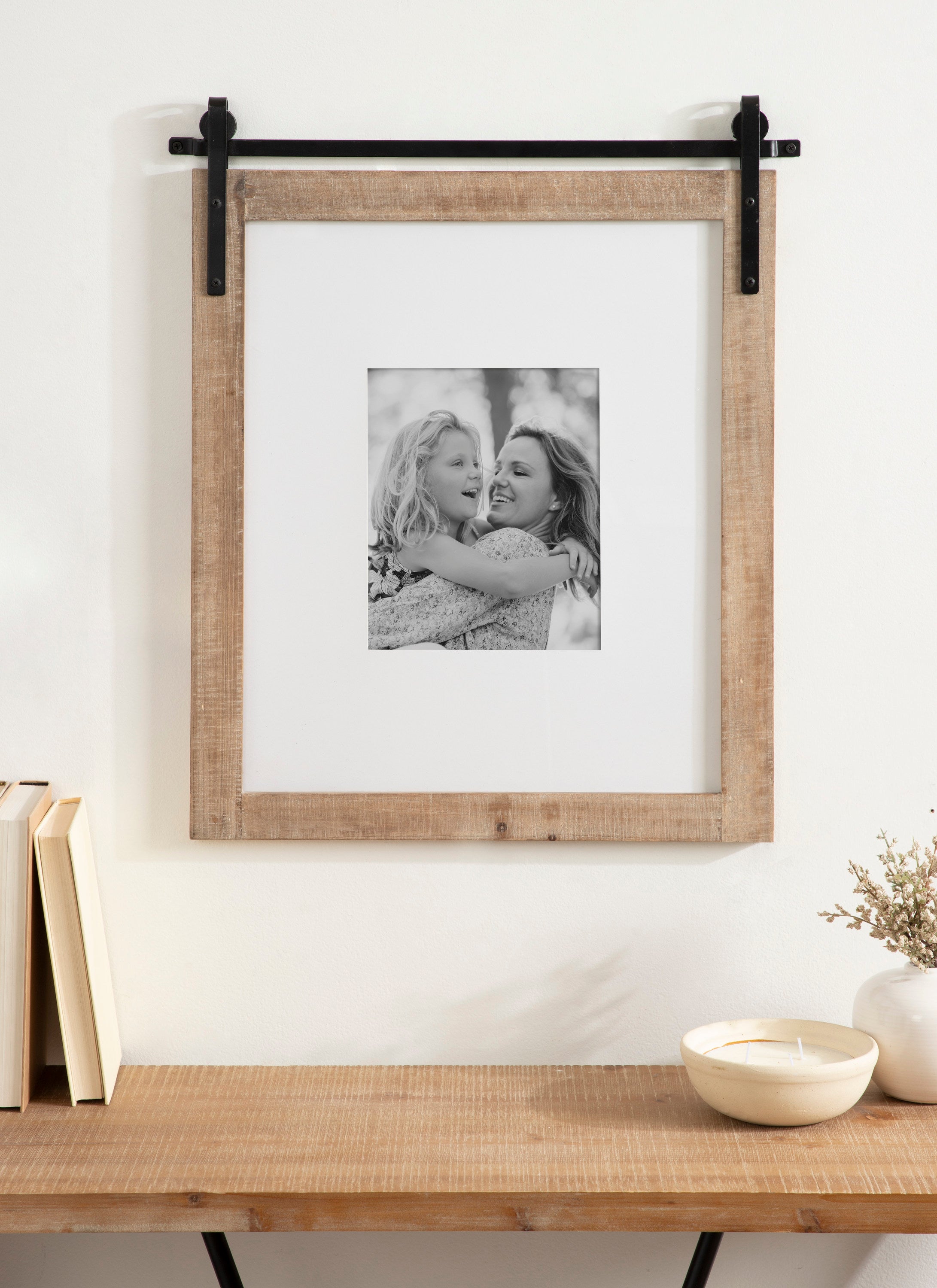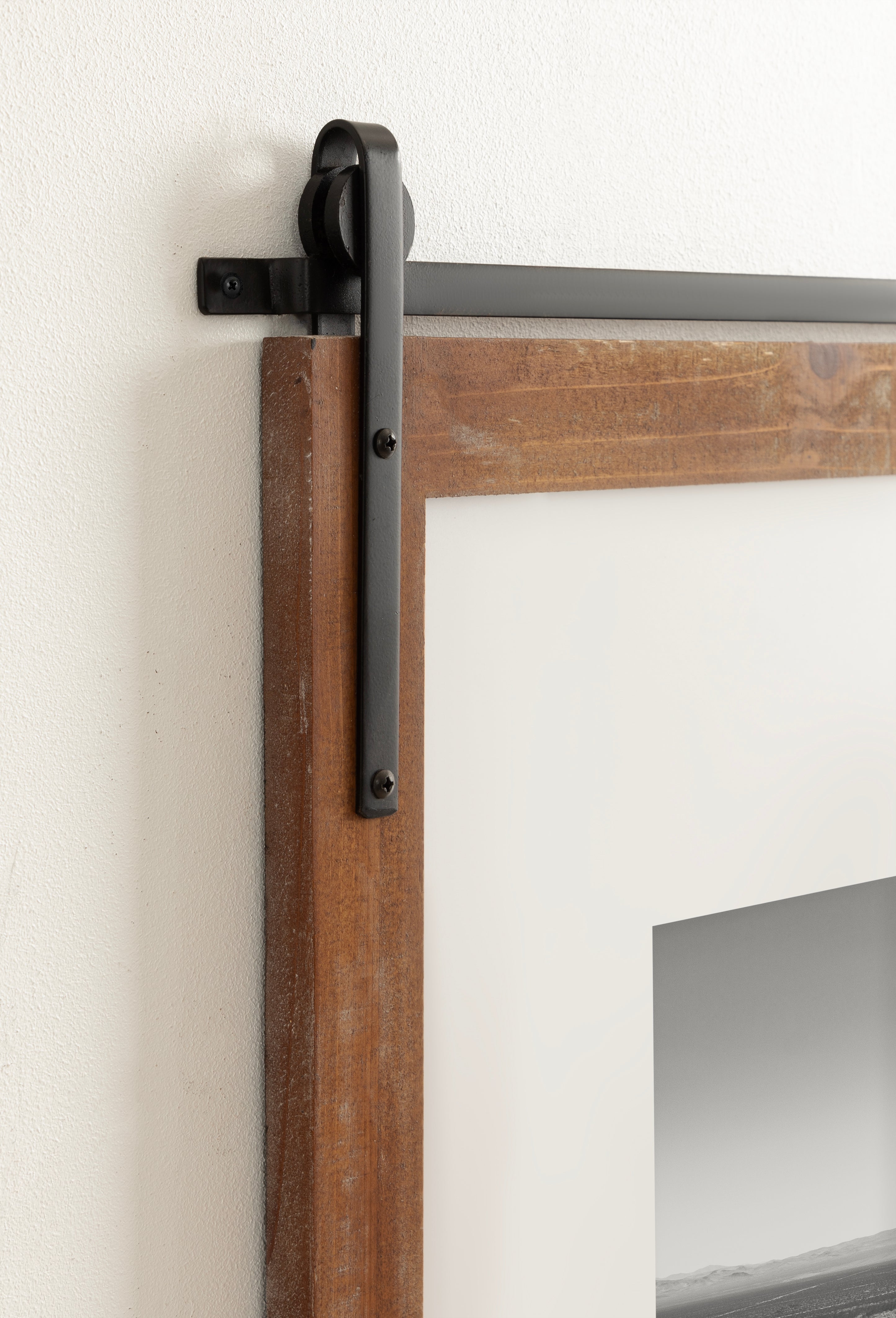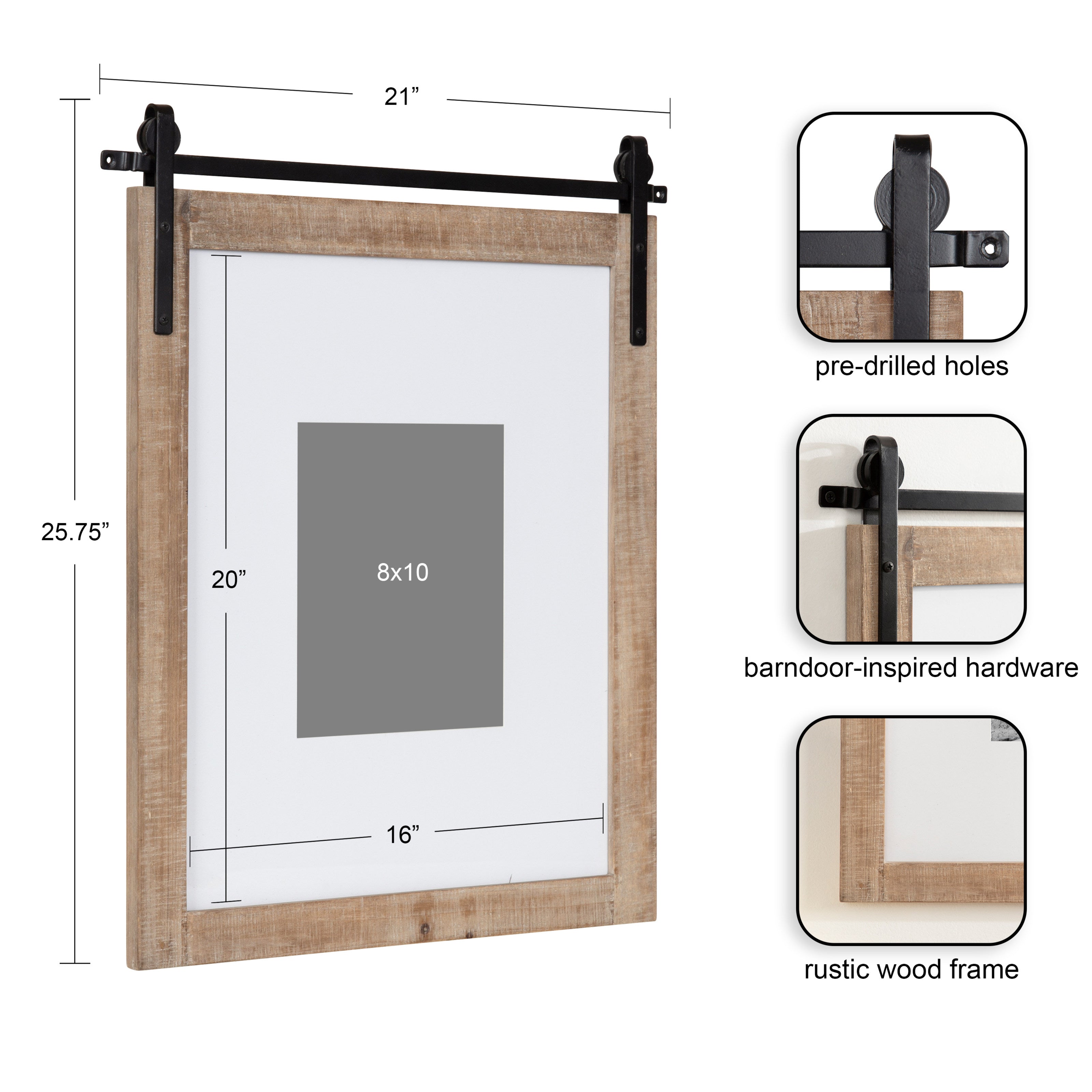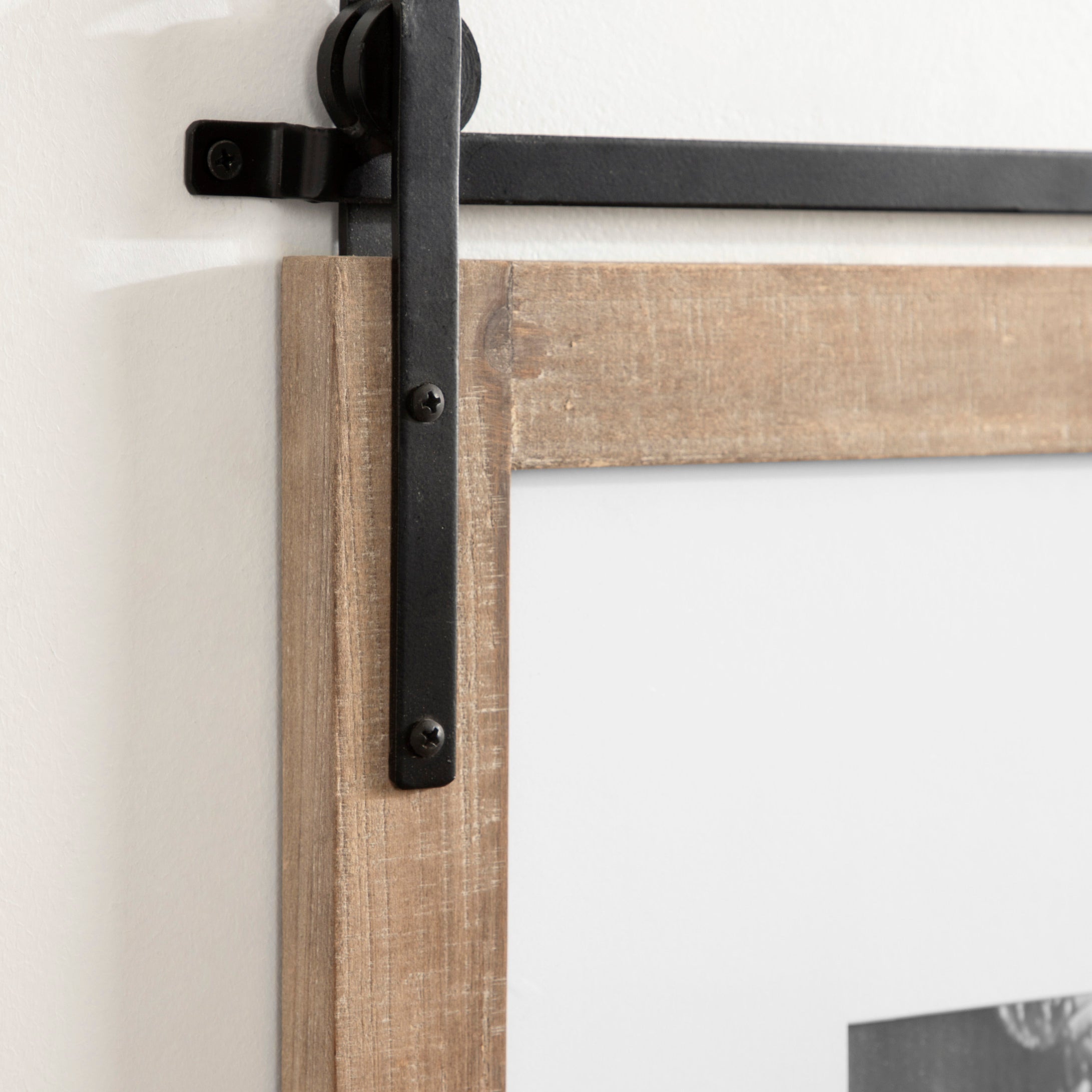 Craft a memorable farmhouse display with this charming Cates photo frame. Molded after the Cates mirror and wall organization collections, this picture frame features the same barn door-inspired design with the metal detailing above the frame and its overall rustic charm. This is a lovely way to showcase your memories while complementing your home decor style.