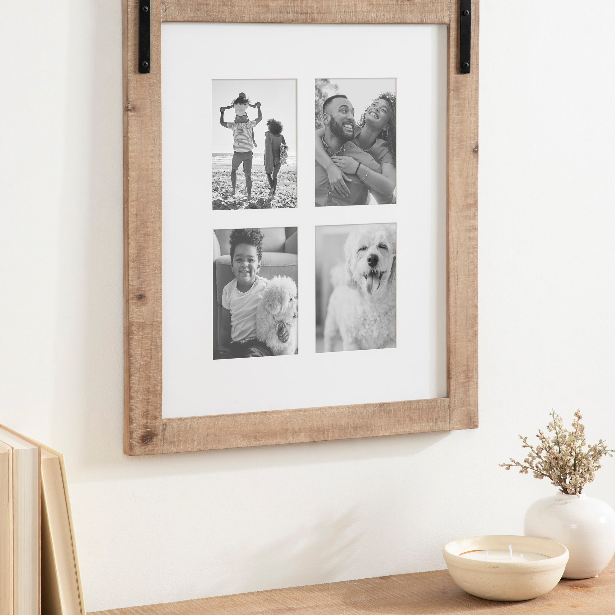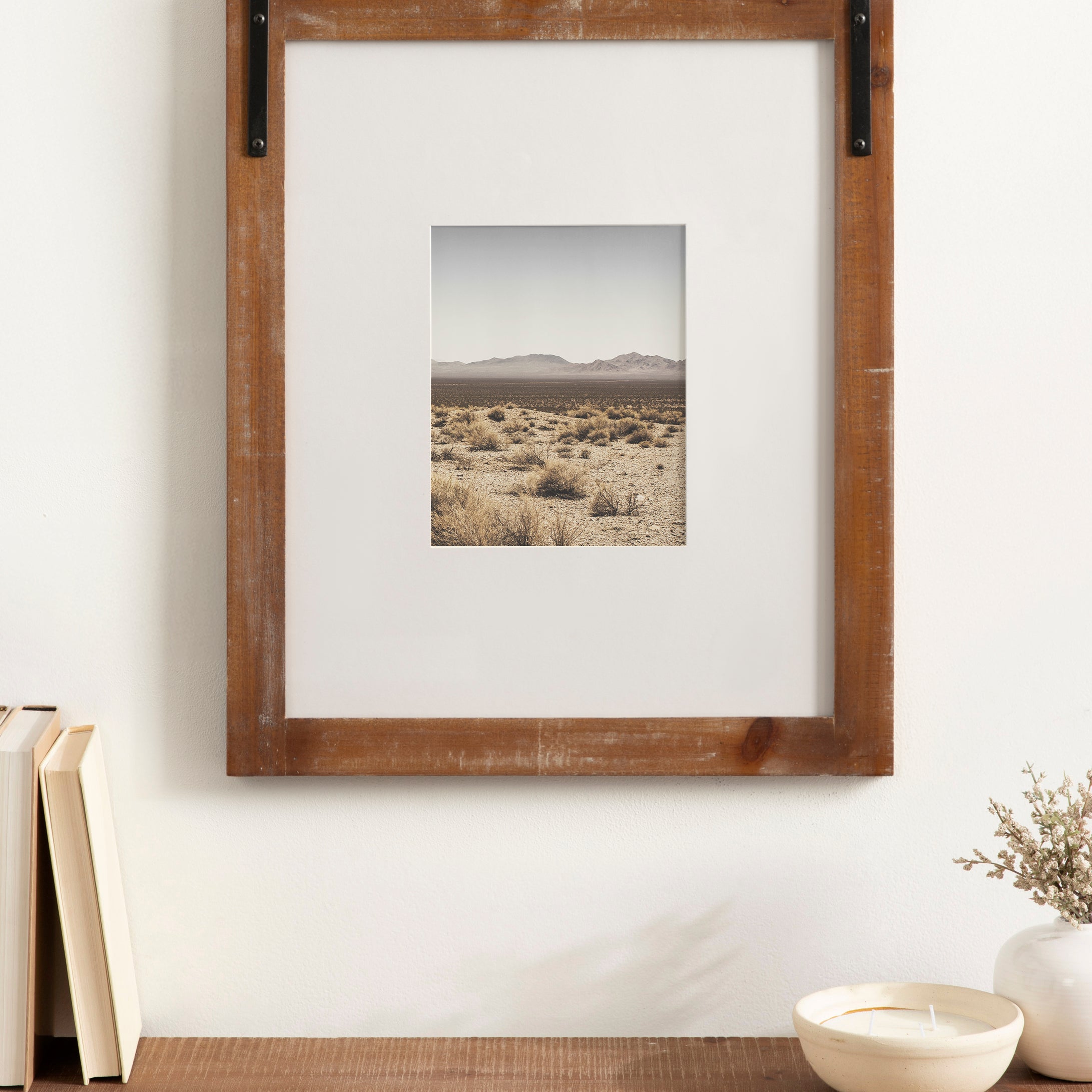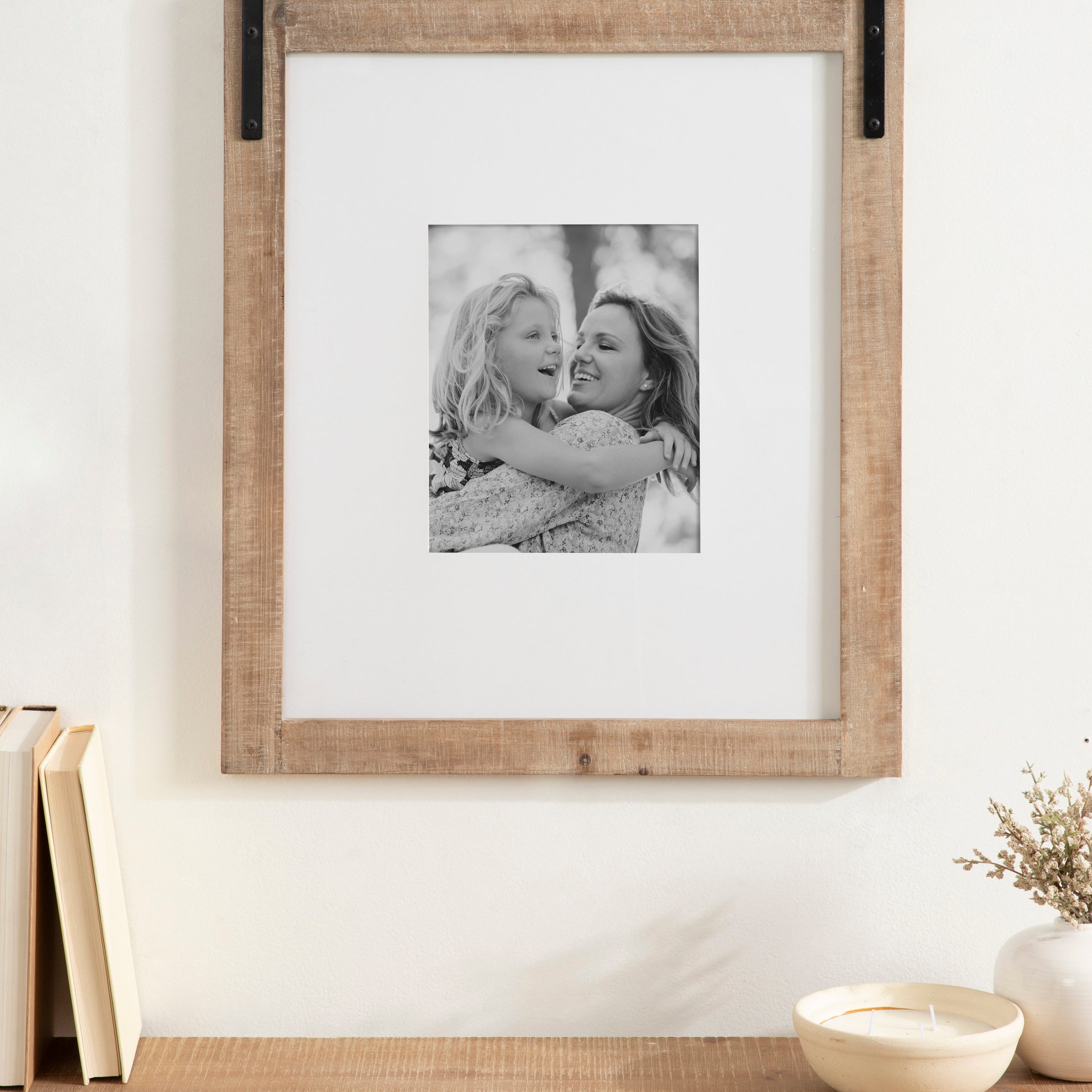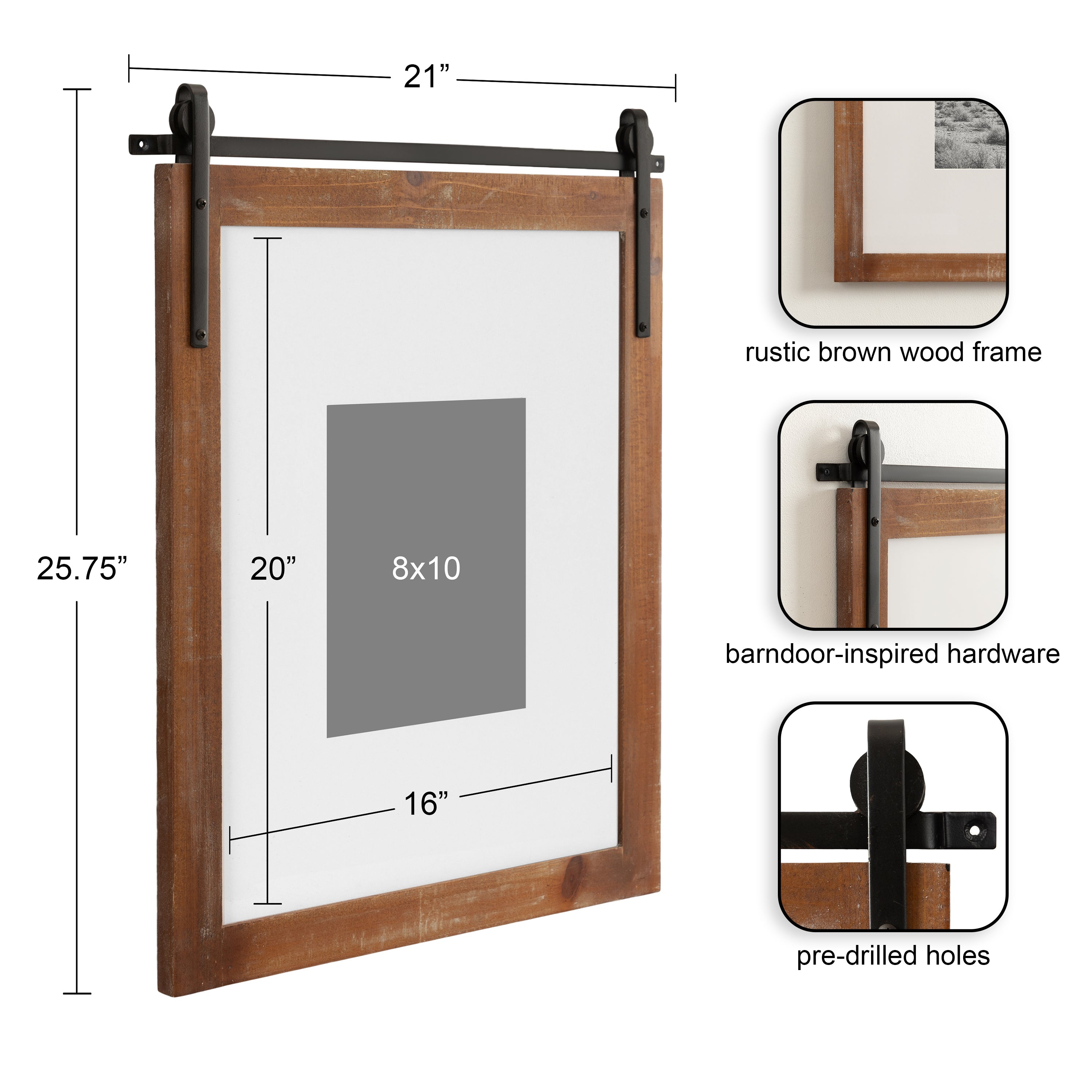 Craft a memorable farmhouse display with this charming Cates photo frame. Molded after the Cates mirror and wall organization collections, this picture frame features the same barn door-inspired design with the metal detailing above the frame and its overall rustic charm. This is a lovely way to showcase your memories while complementing your home decor style.