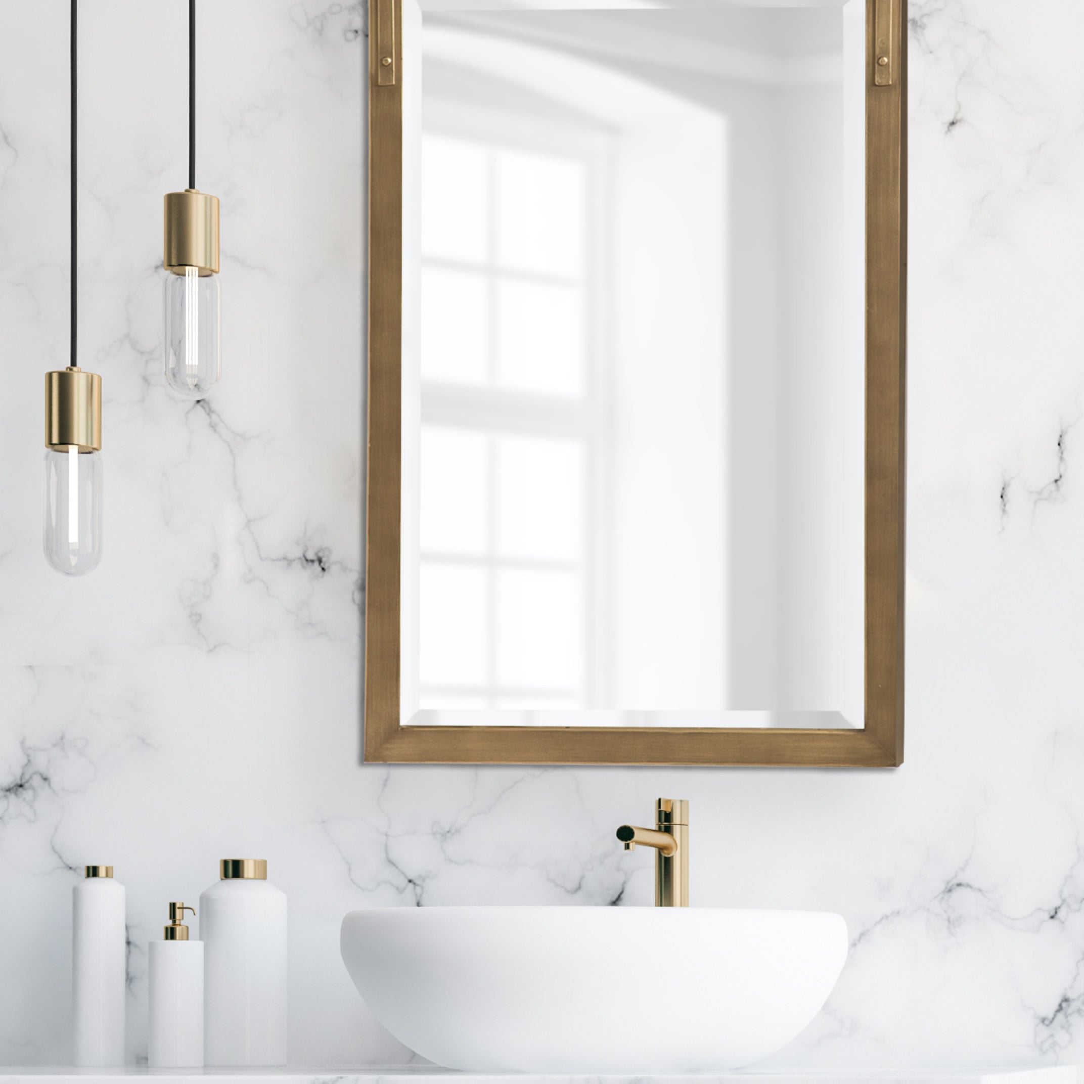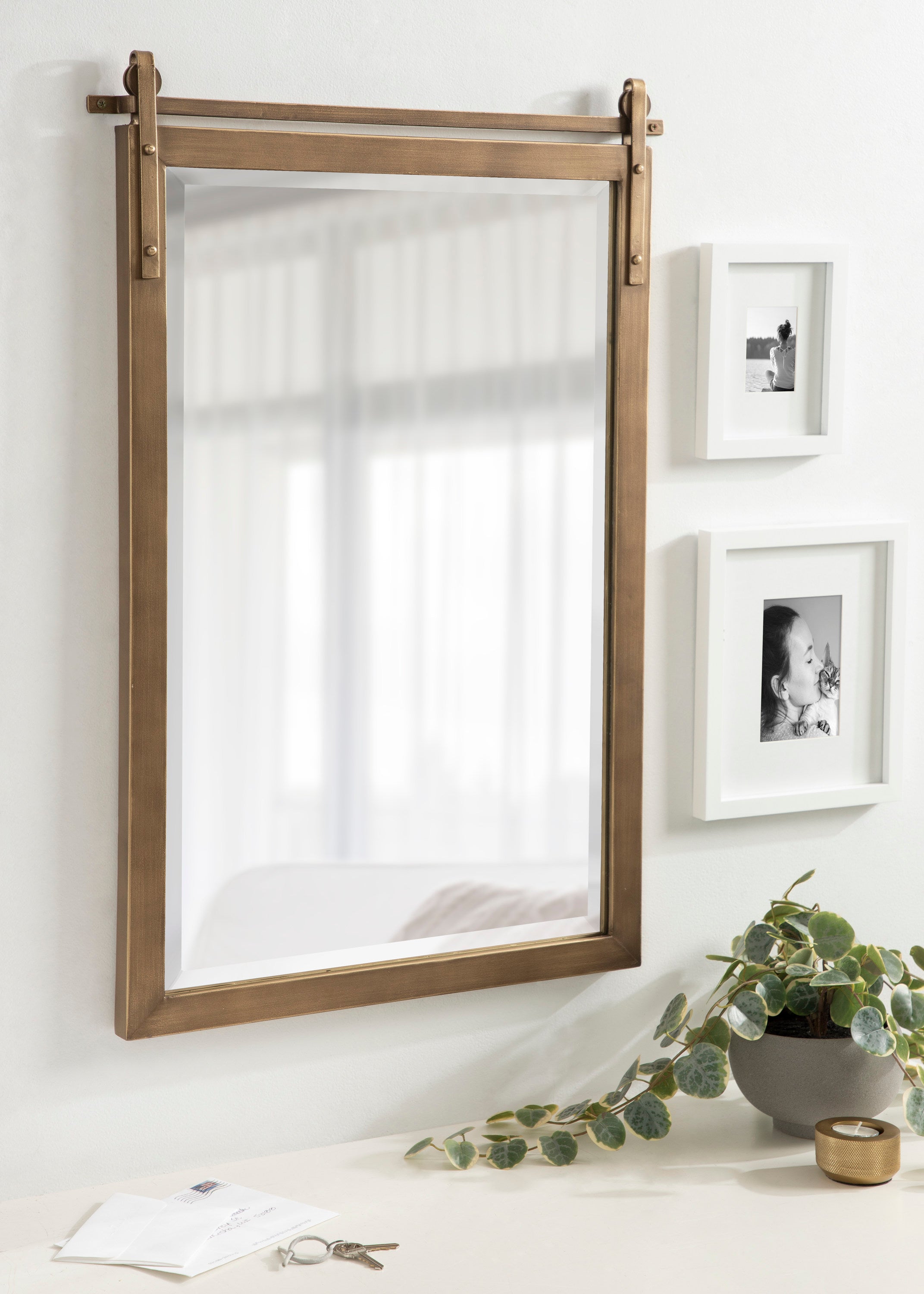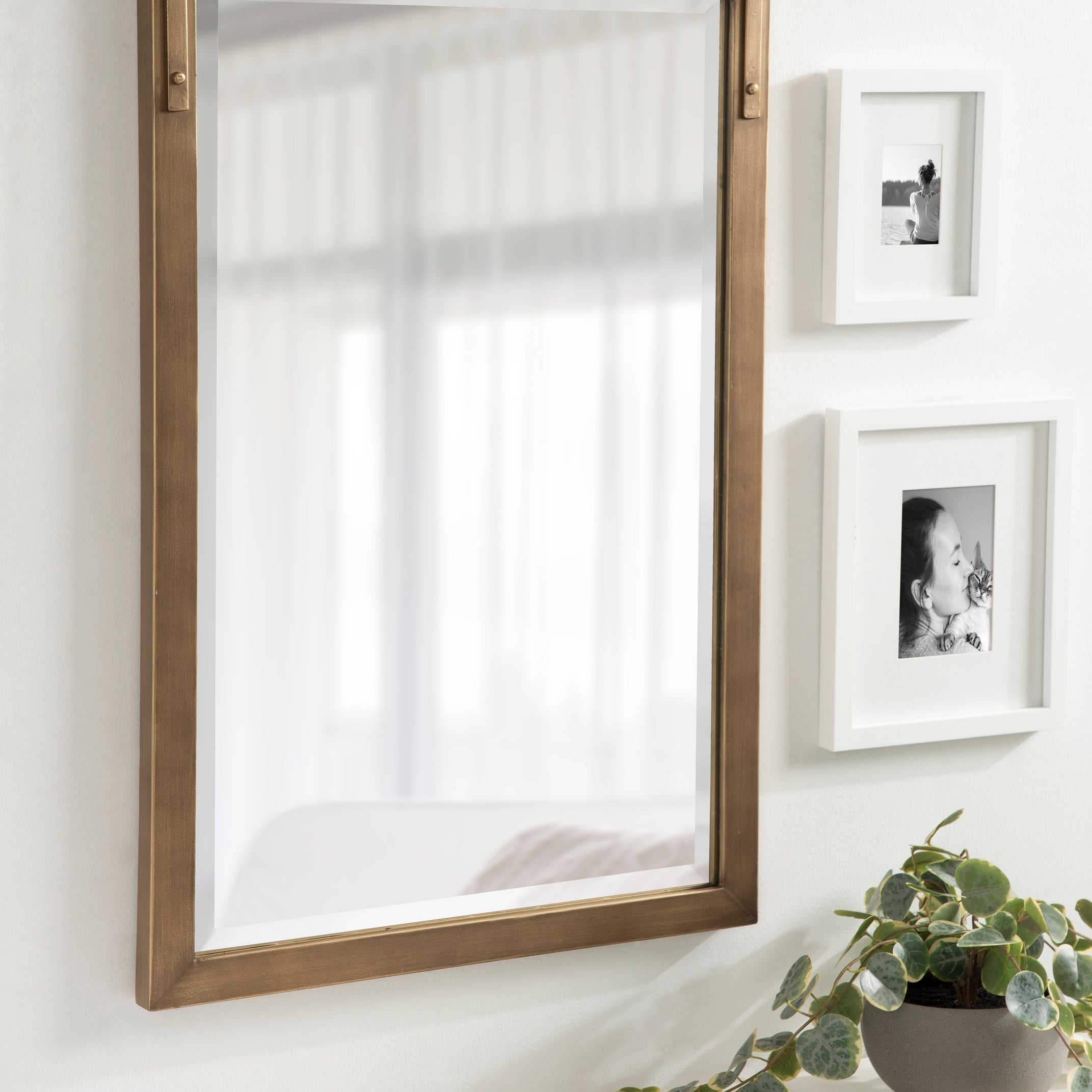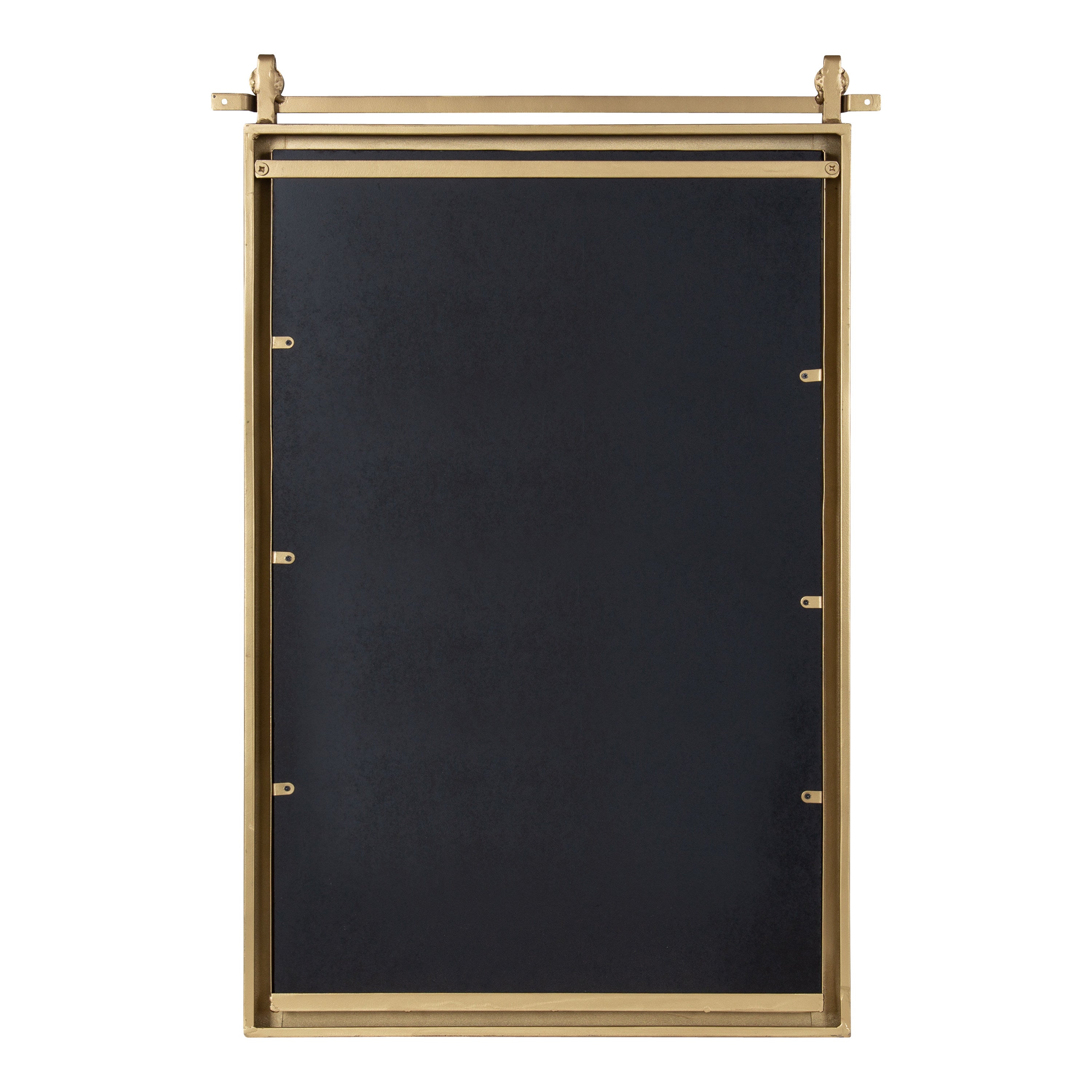 Open your closed-off spaces with the Chadbolt horizontal wall mirror. This lovely accent piece has a rectangular shape and an iron hanging bracket reminiscent of a rolling door design. It's large size and sleek finish are perfect for pairing with your entryway console, living room sofa, or king-sized bed. The Chadbolt showcases your clean contemporary style while creating a more inviting vibe throughout your living space.