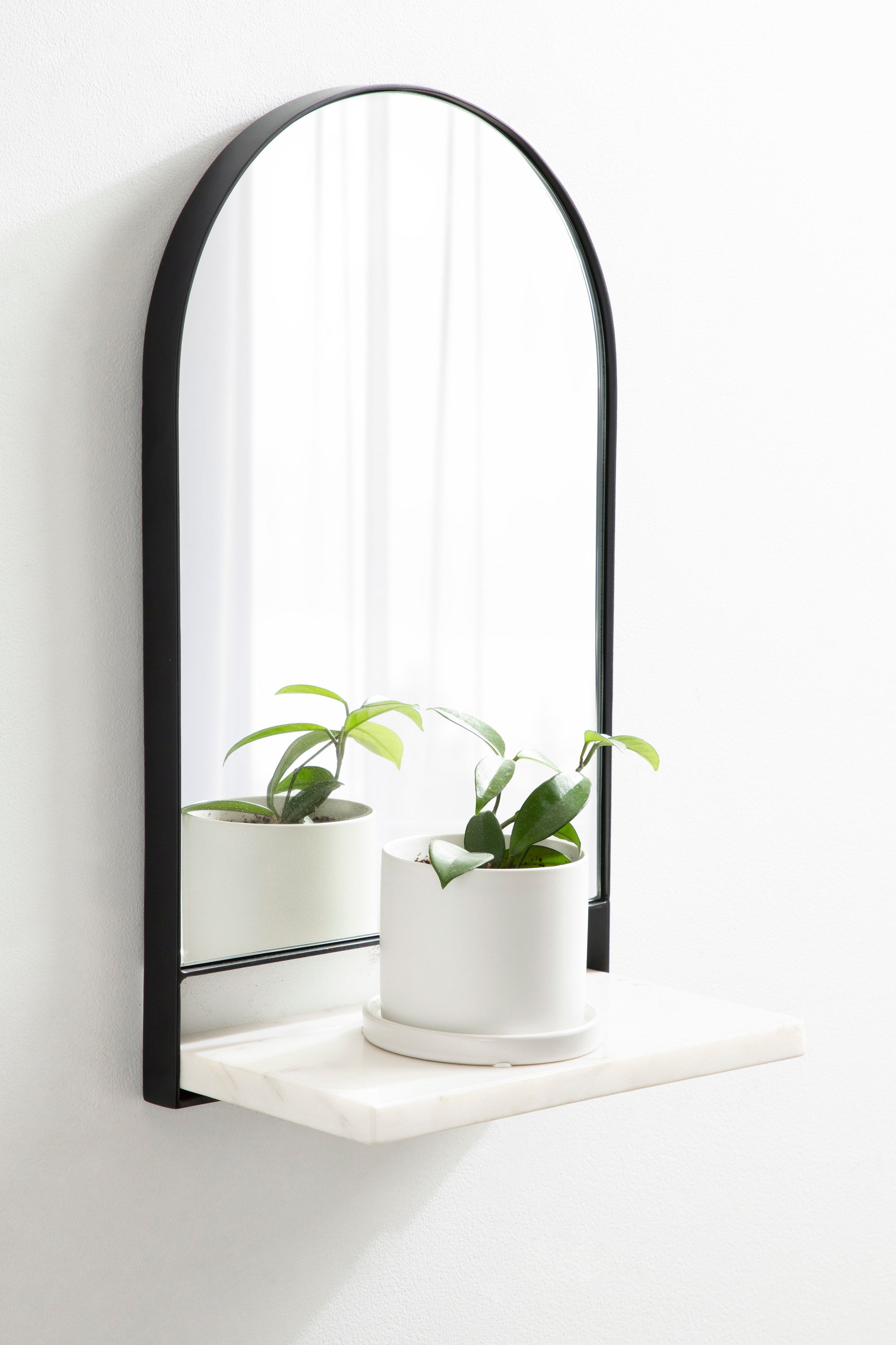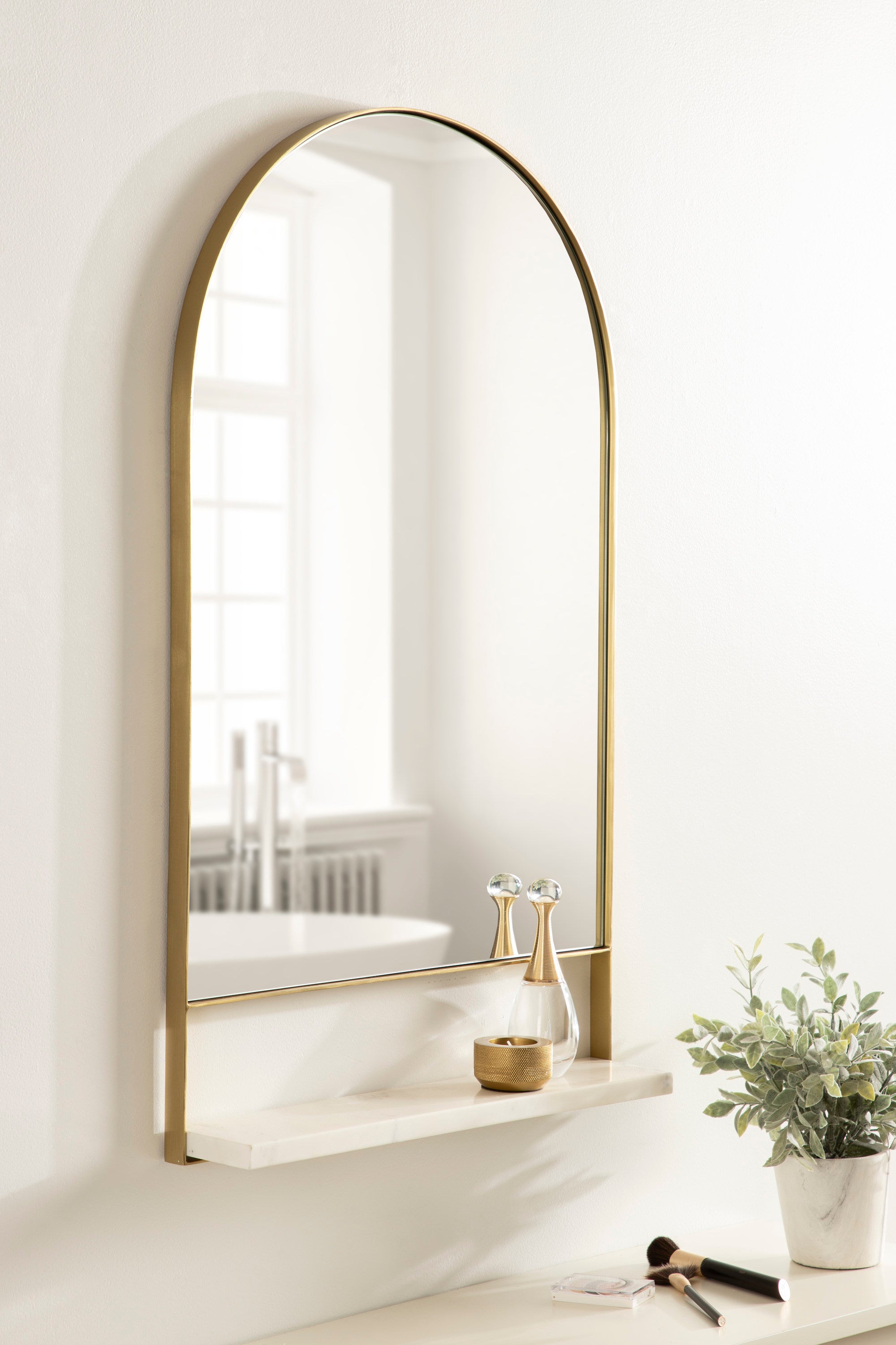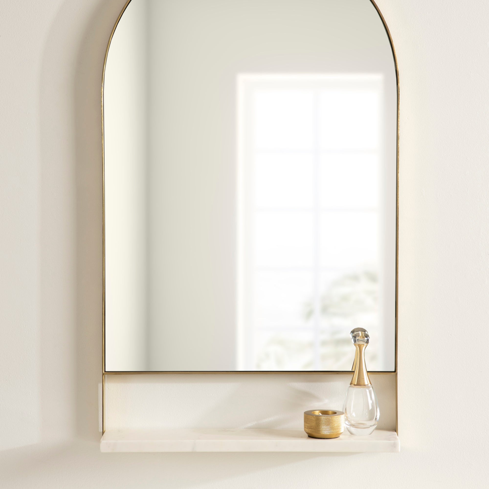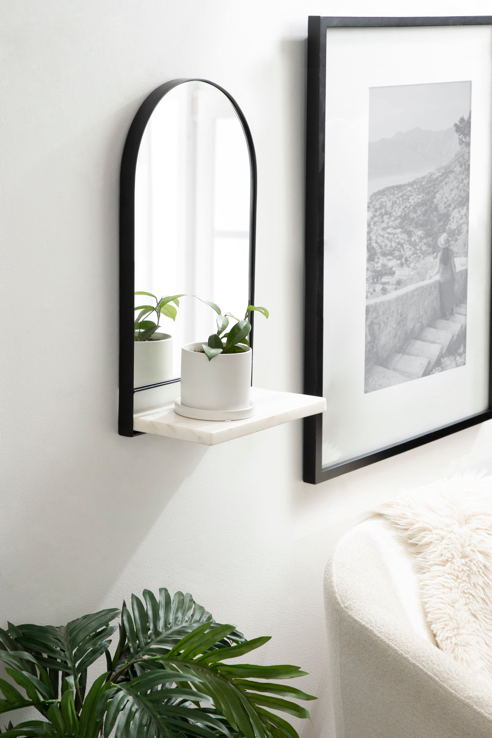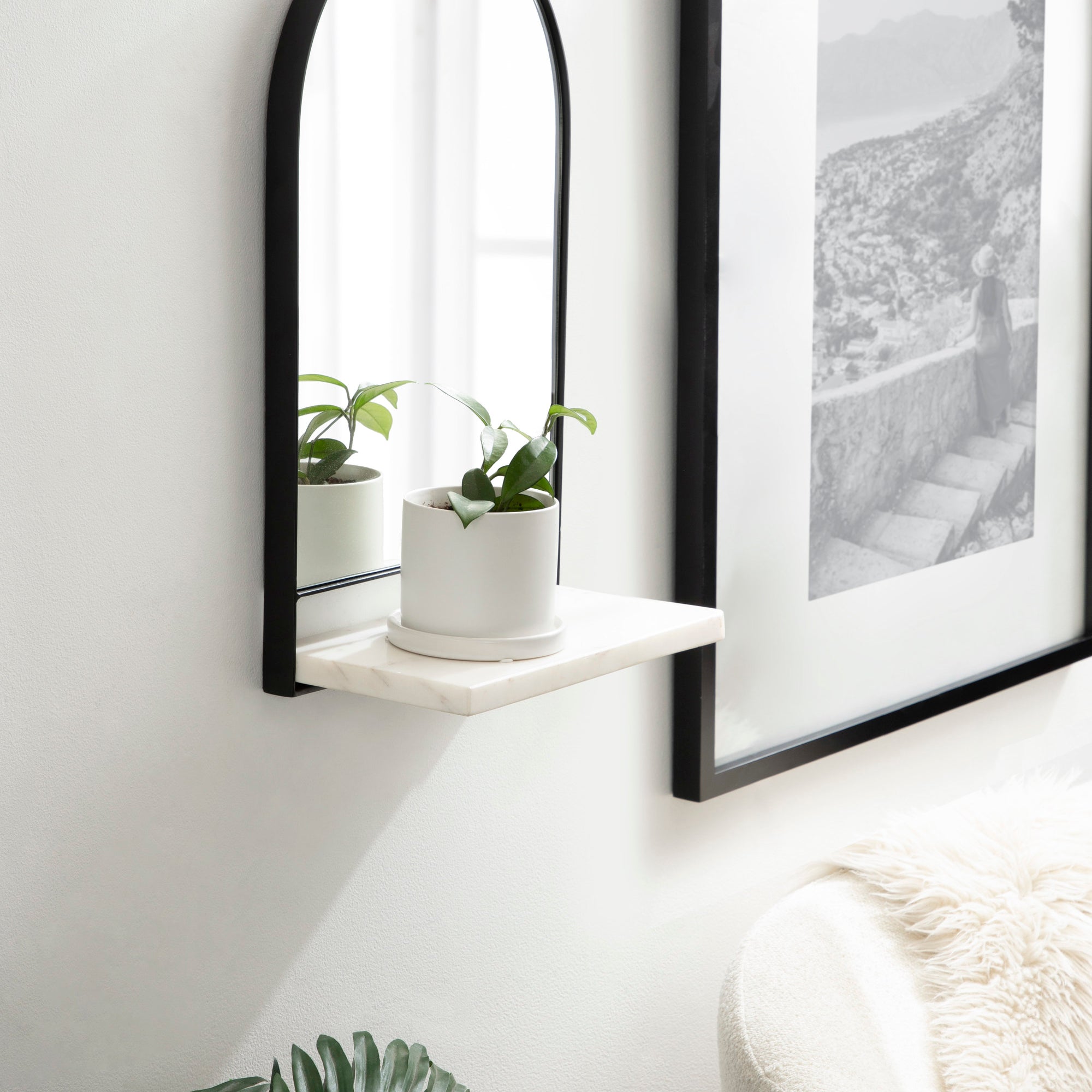 Decorate your wall with this vibrant mirror that puts a modern spin on classic sophistication. The Chadwin mirror brings a sense of refinement and geometry to your home with a lovely arch-shaped frame and a mix of iron and elegant authentic marble. The natural stone shelf attached at the base is excellent for showcasing prized keepsakes or keeping bathroom and household necessities within arms' reach. The Chadwin is a fabulous accent piece for showcasing your elevated style and bold modern taste.