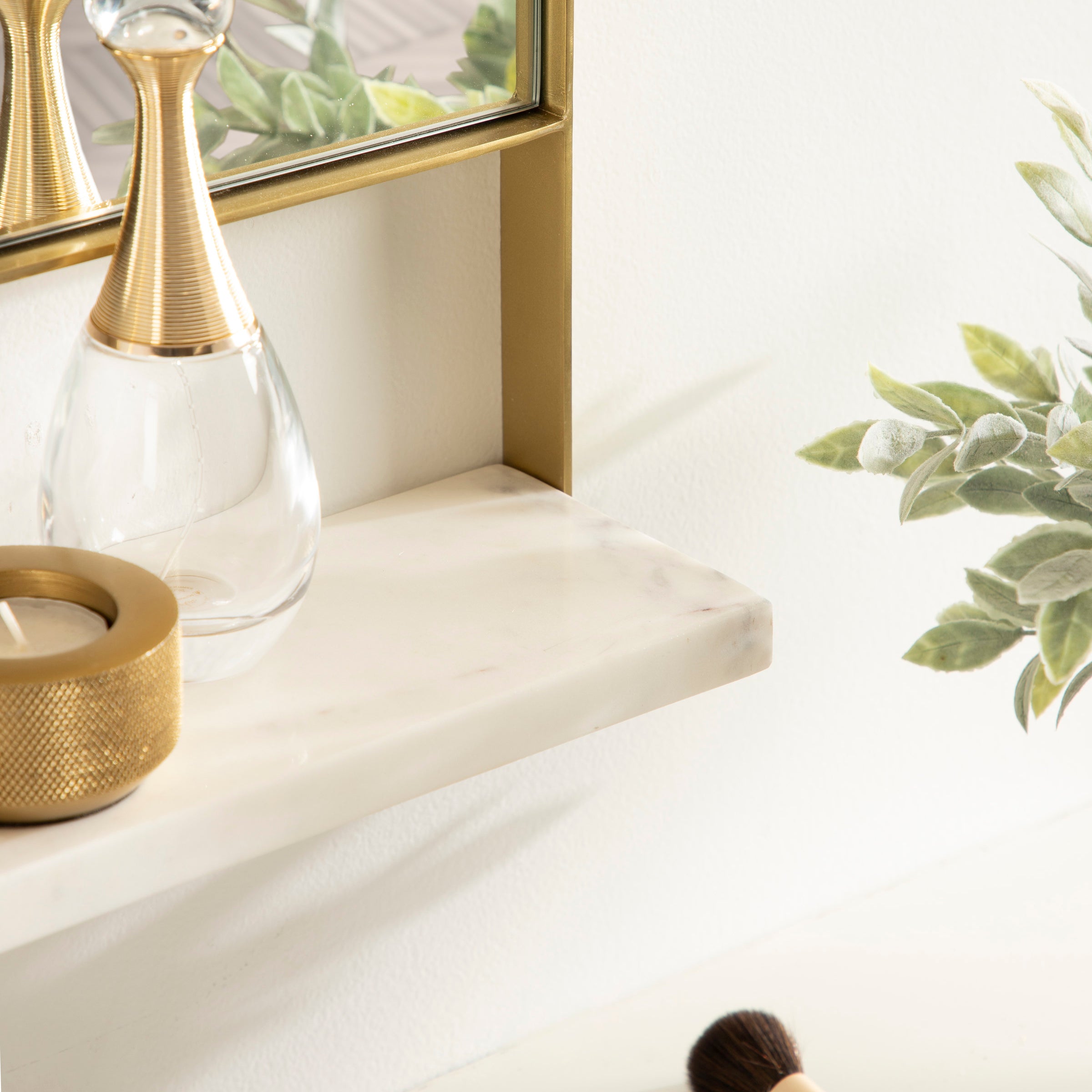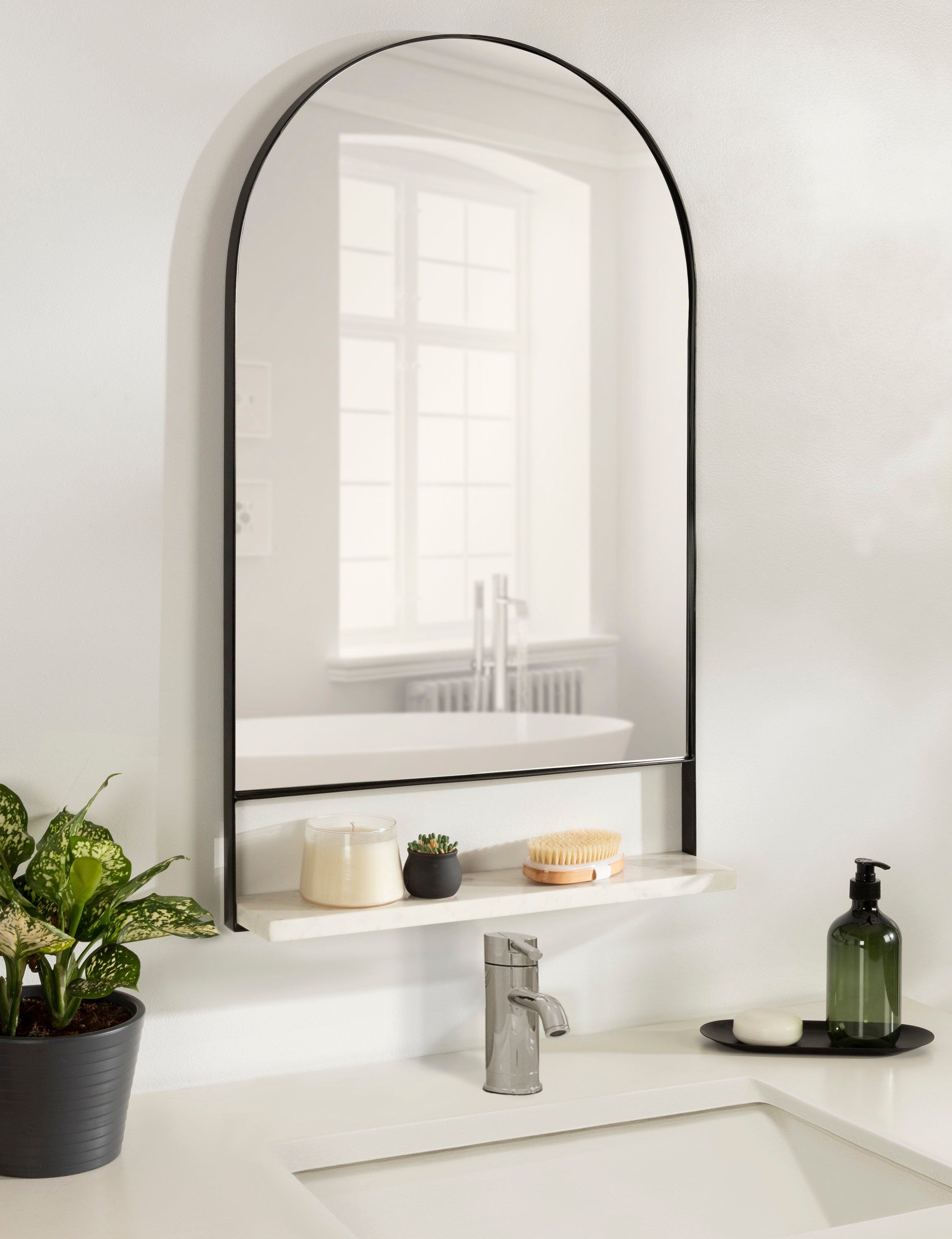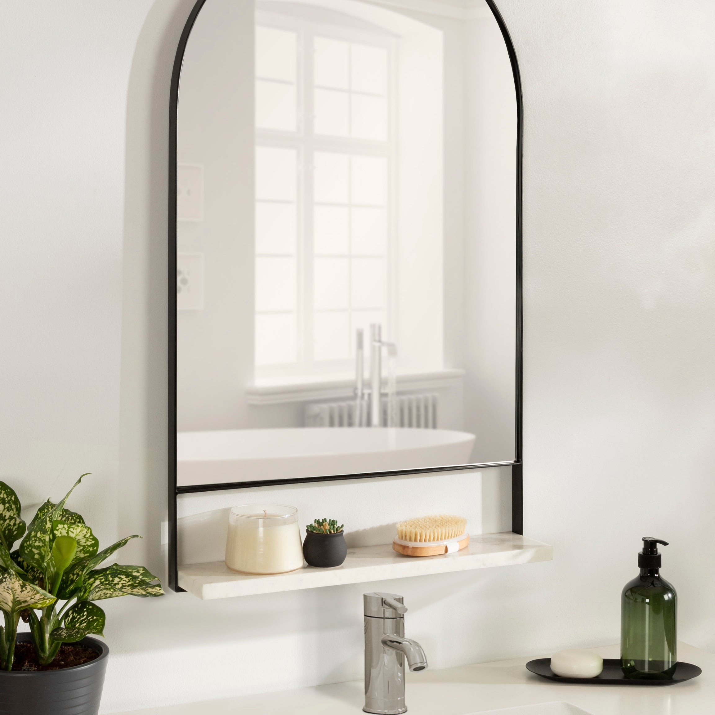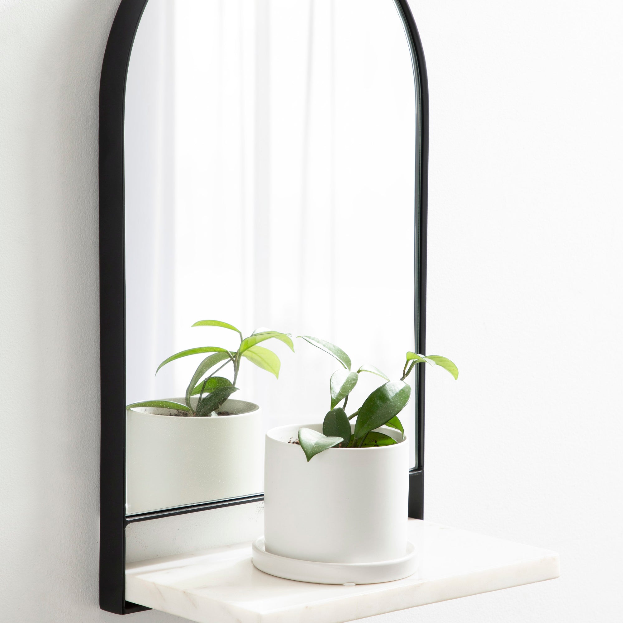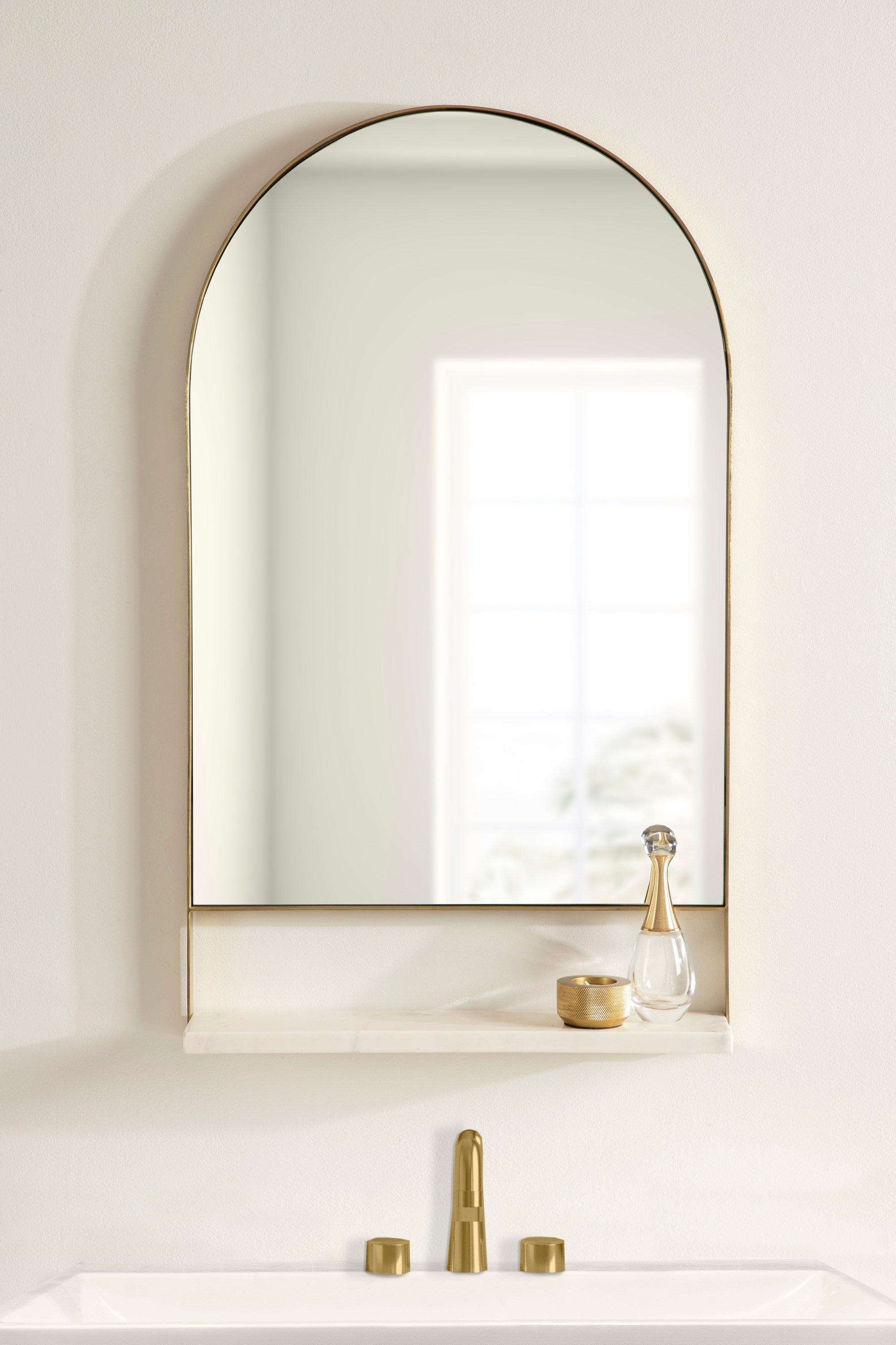 Decorate your wall with this vibrant mirror that puts a modern spin on classic sophistication. The Chadwin mirror brings a sense of refinement and geometry to your home with a lovely arch-shaped frame and a mix of iron and elegant authentic marble. The natural stone shelf attached at the base is excellent for showcasing prized keepsakes or keeping bathroom and household necessities within arms' reach. The Chadwin is a fabulous accent piece for showcasing your elevated style and bold modern taste.