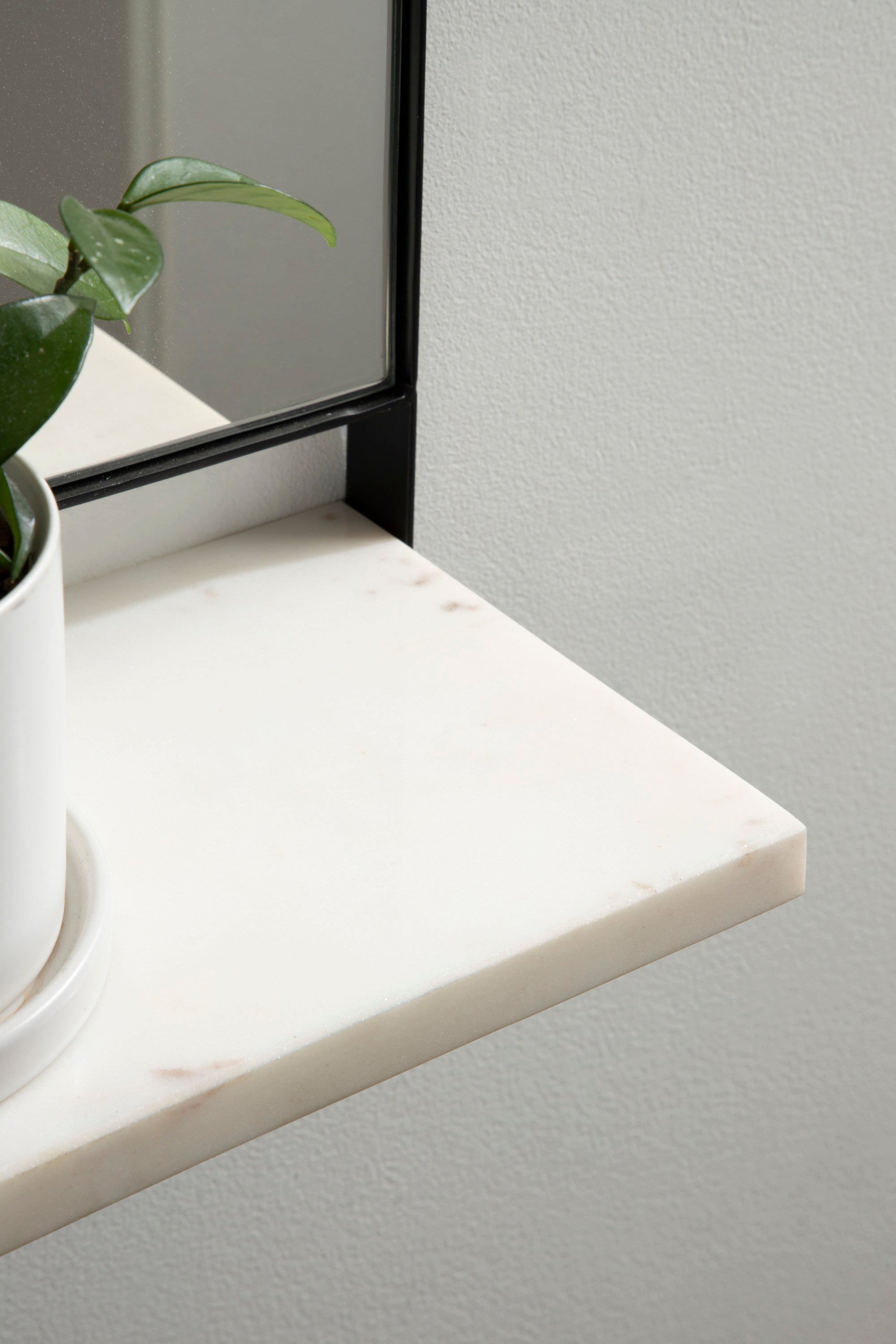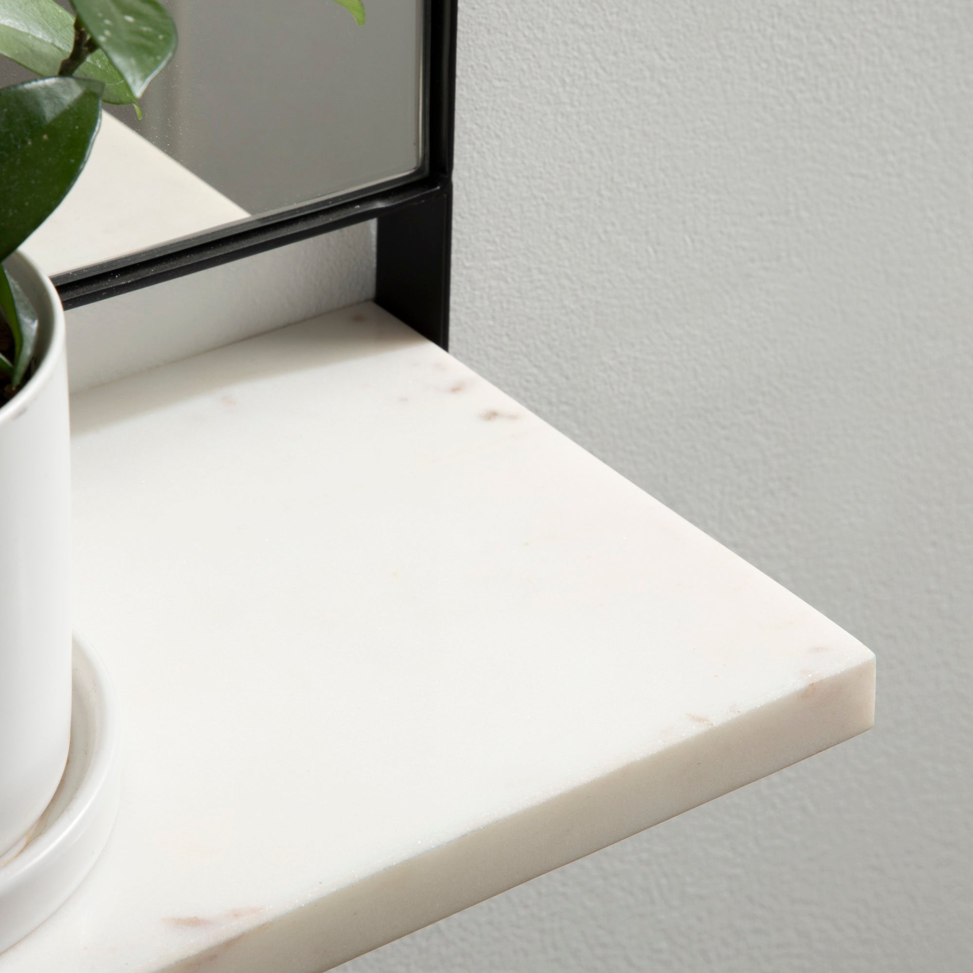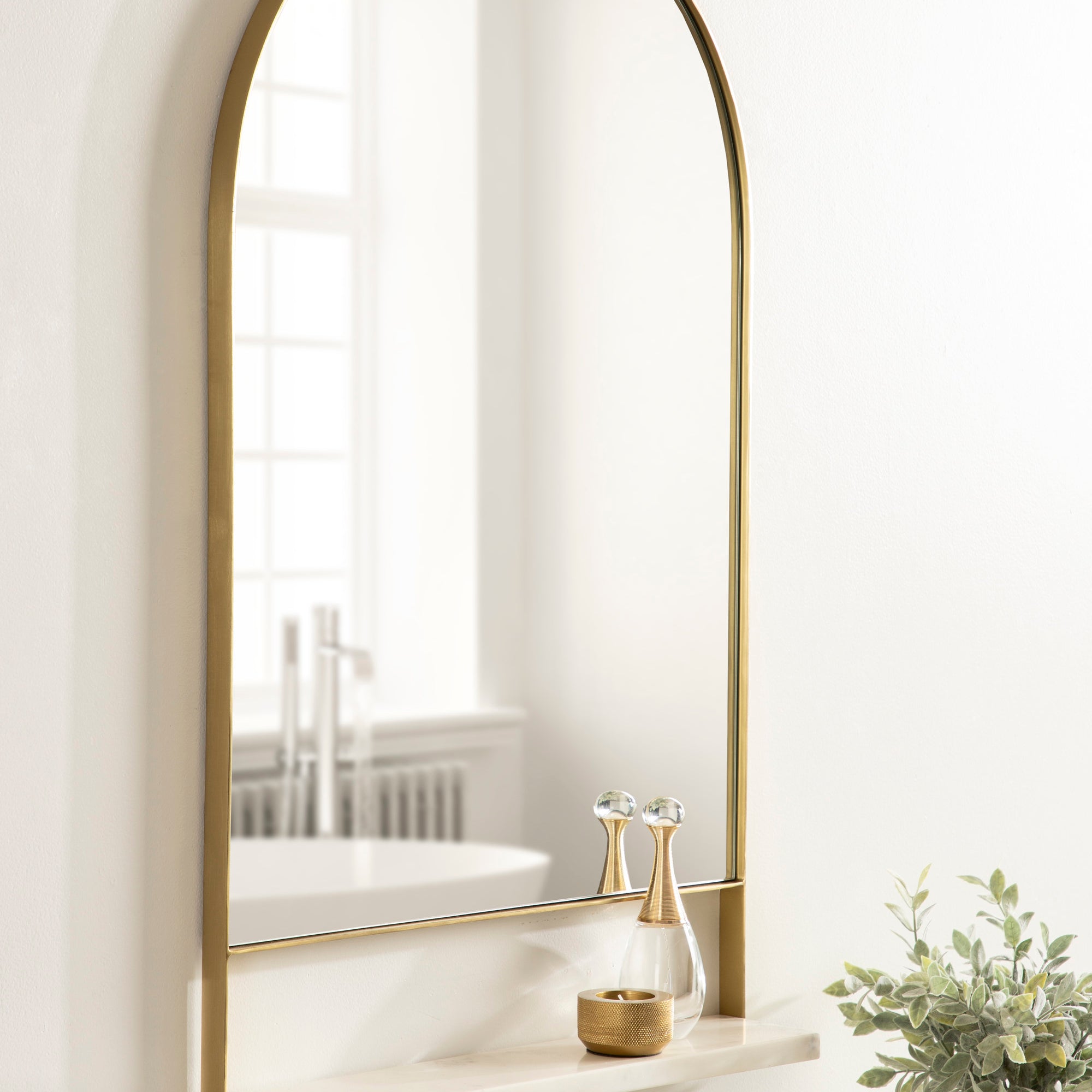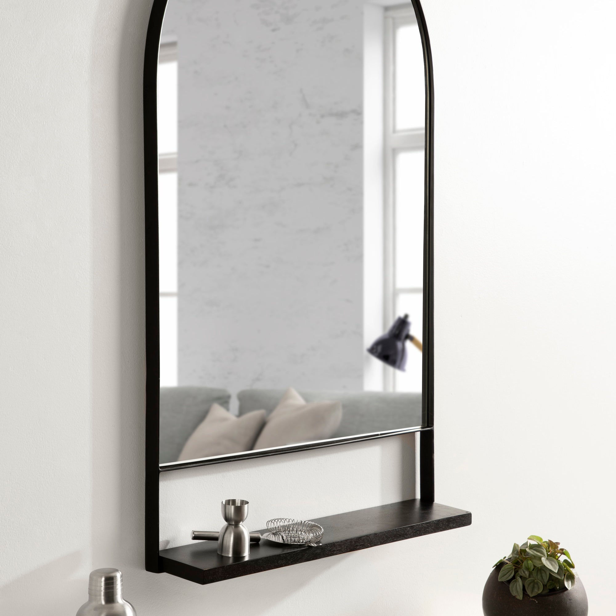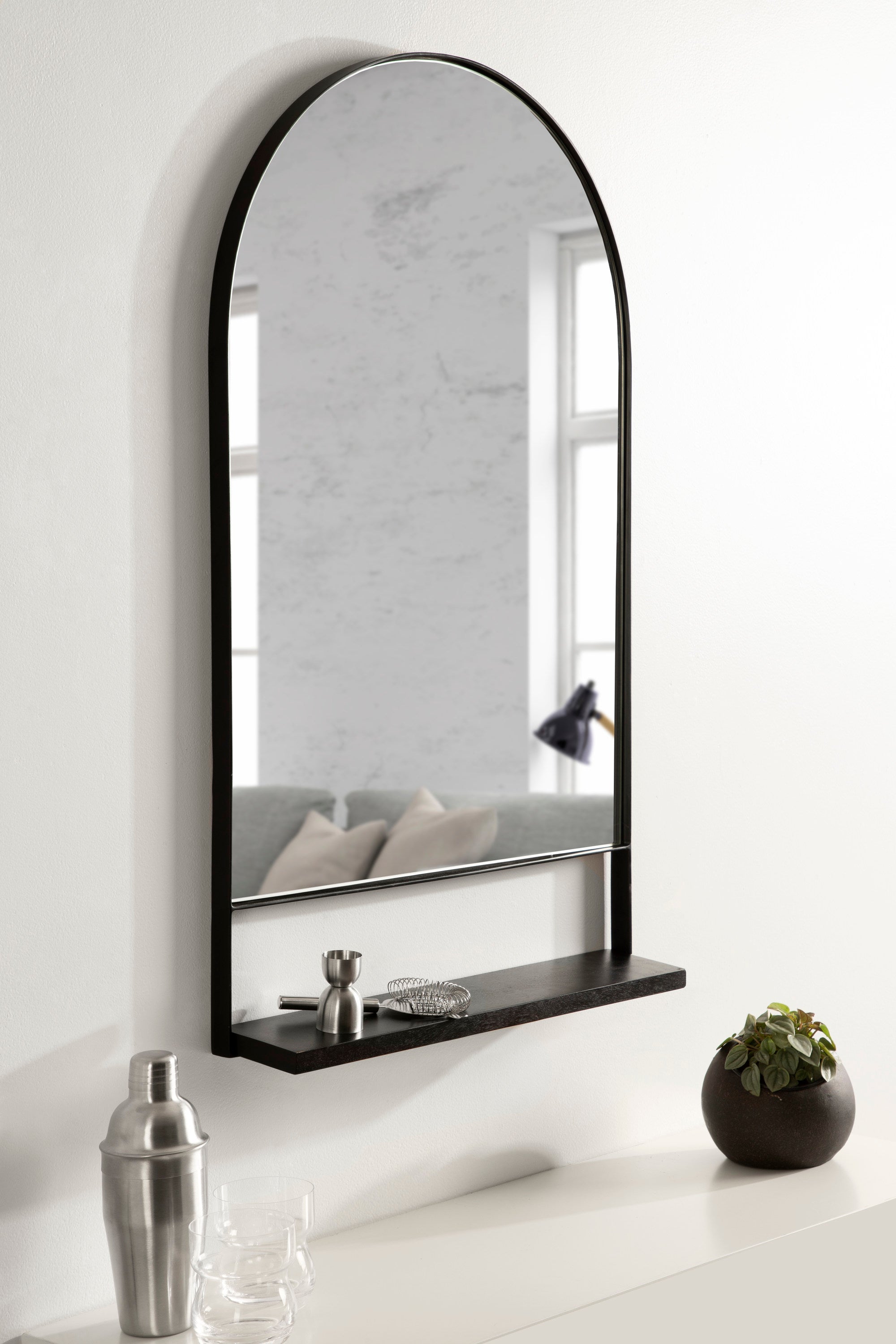 Decorate your wall with this vibrant mirror that puts a modern spin on classic sophistication. The Chadwin mirror brings a sense of refinement and geometry to your home with a lovely arch-shaped frame and a mix of iron and elegant authentic marble. The natural stone shelf attached at the base is excellent for showcasing prized keepsakes or keeping bathroom and household necessities within arms' reach. The Chadwin is a fabulous accent piece for showcasing your elevated style and bold modern taste.