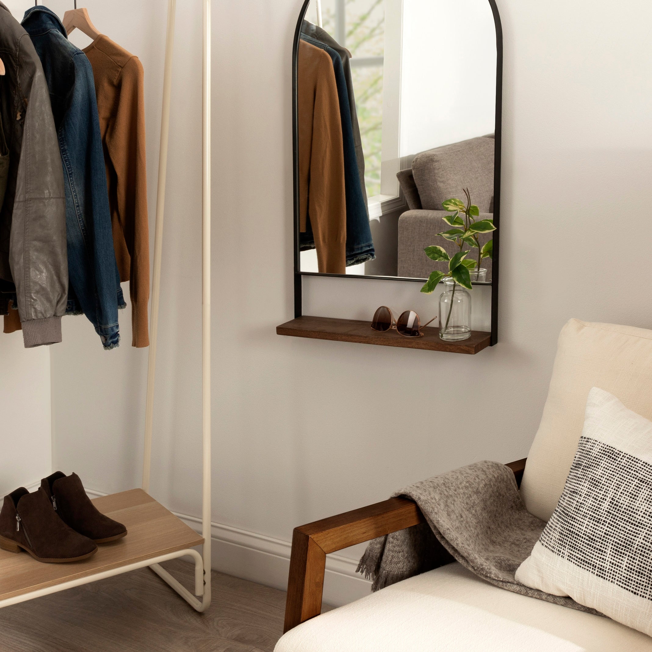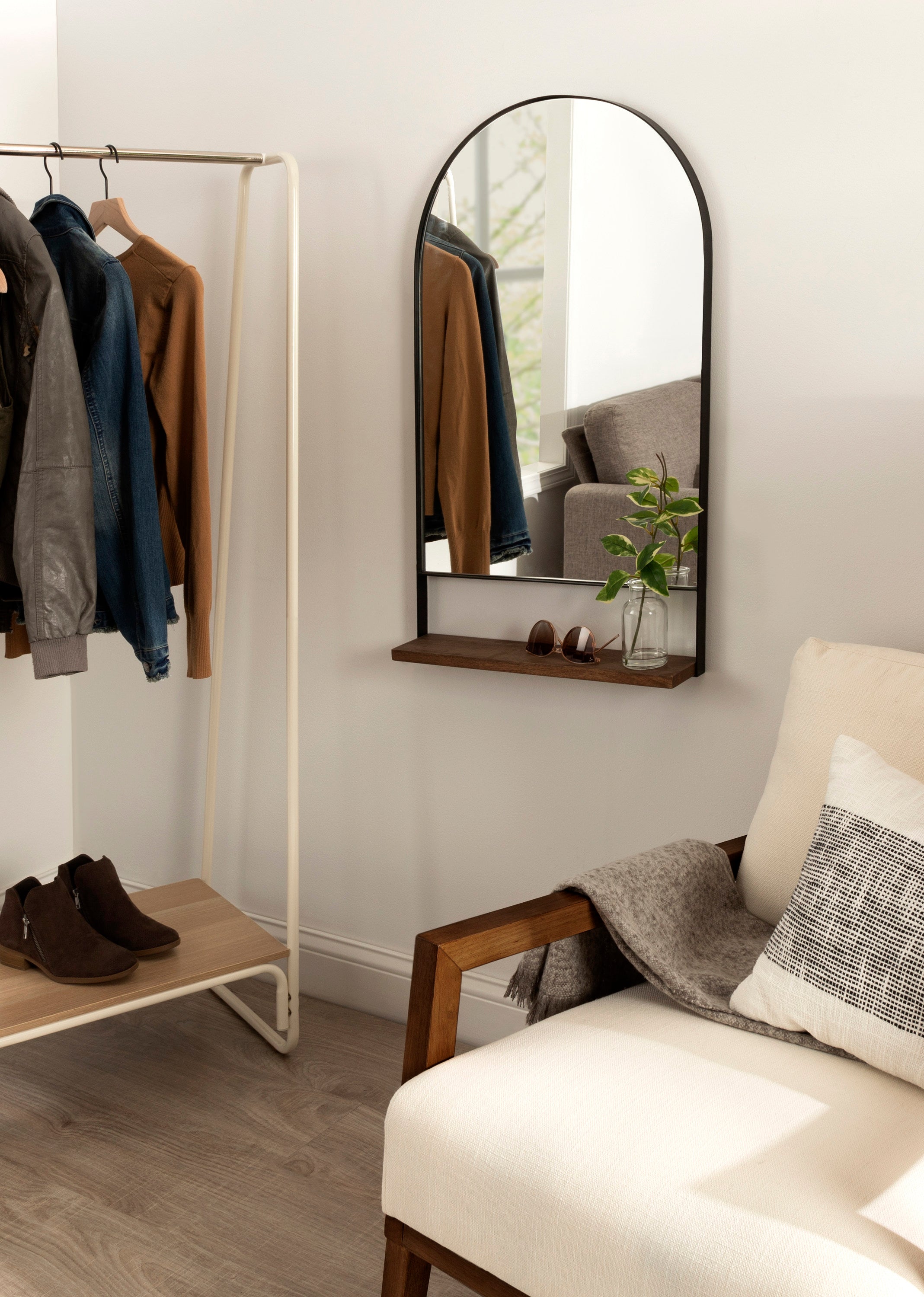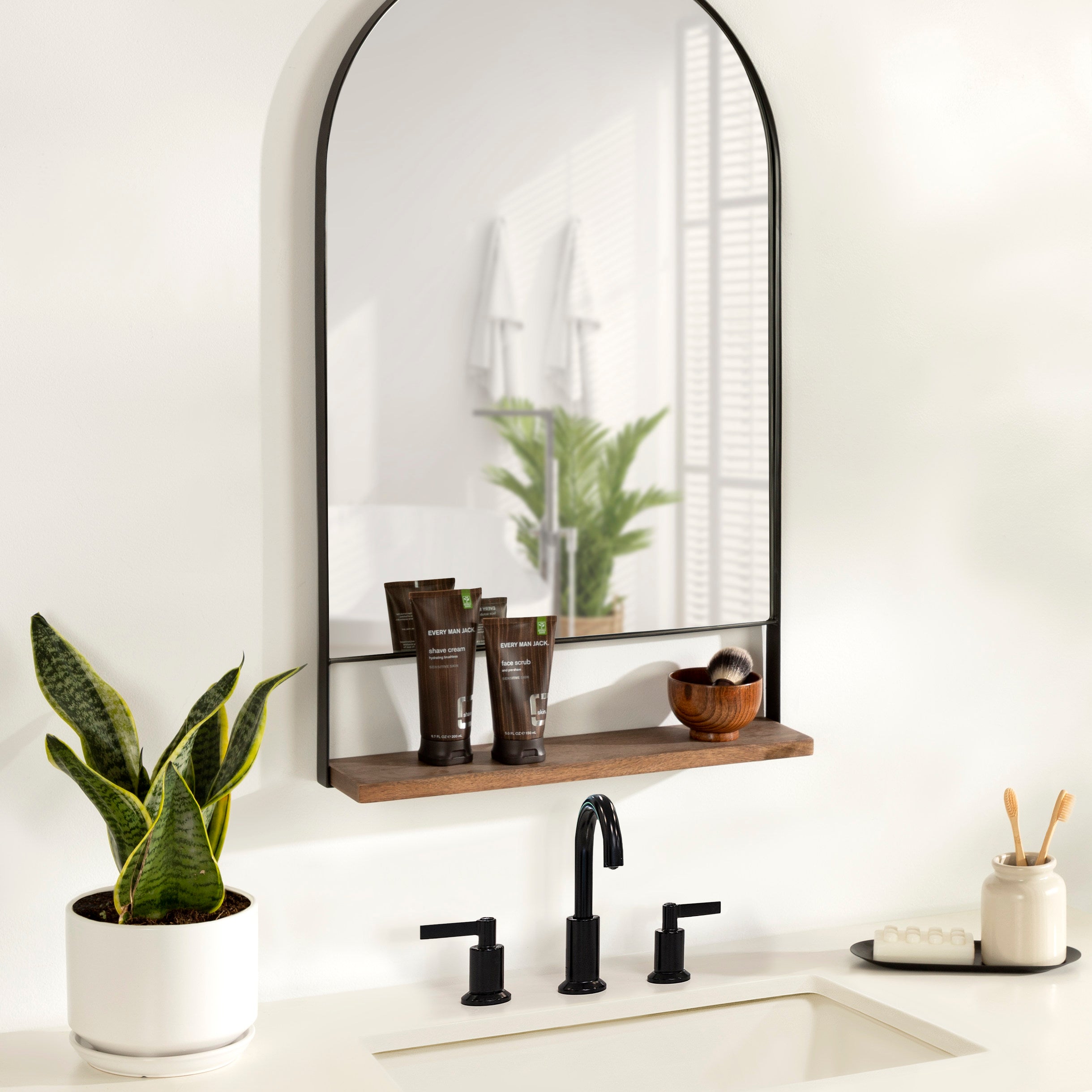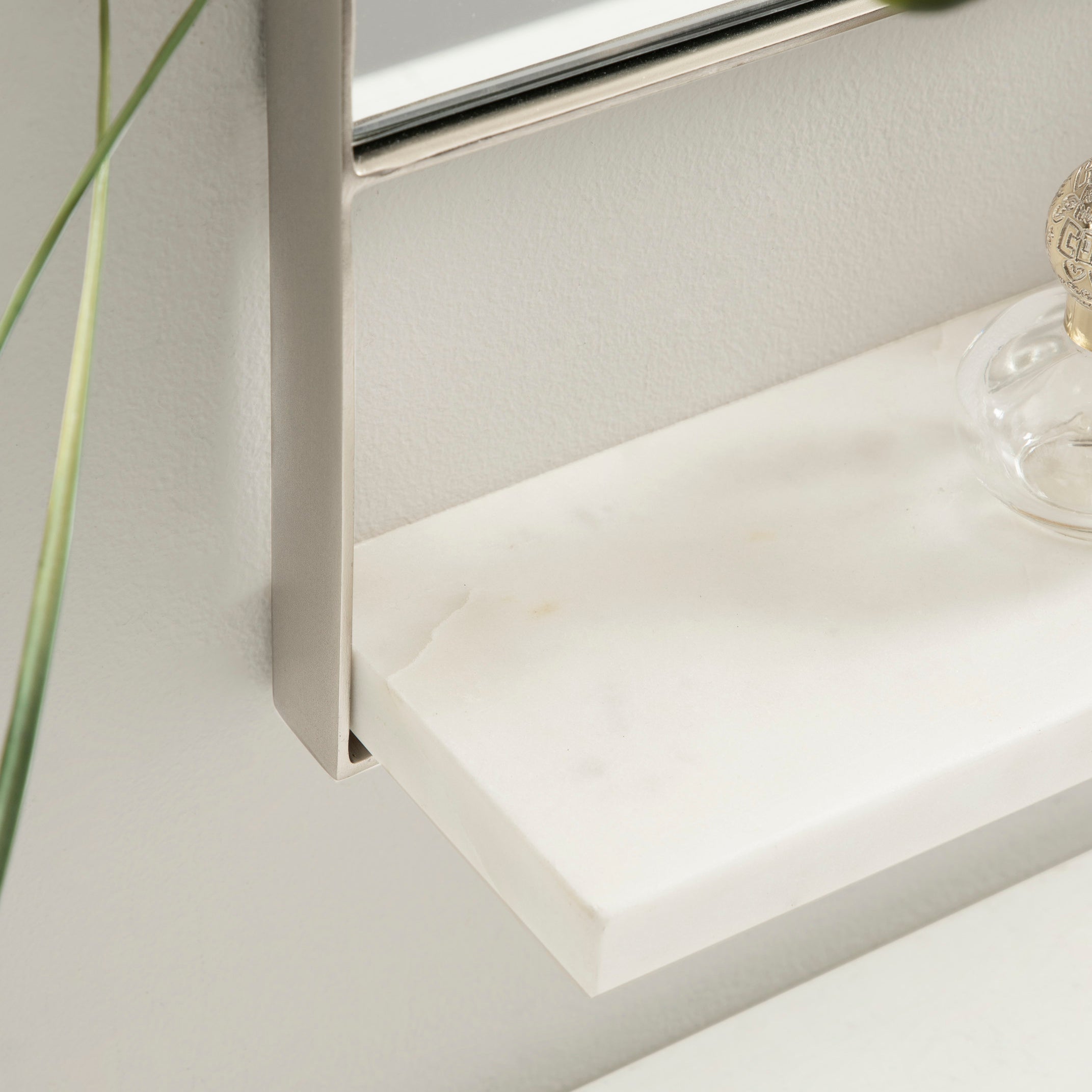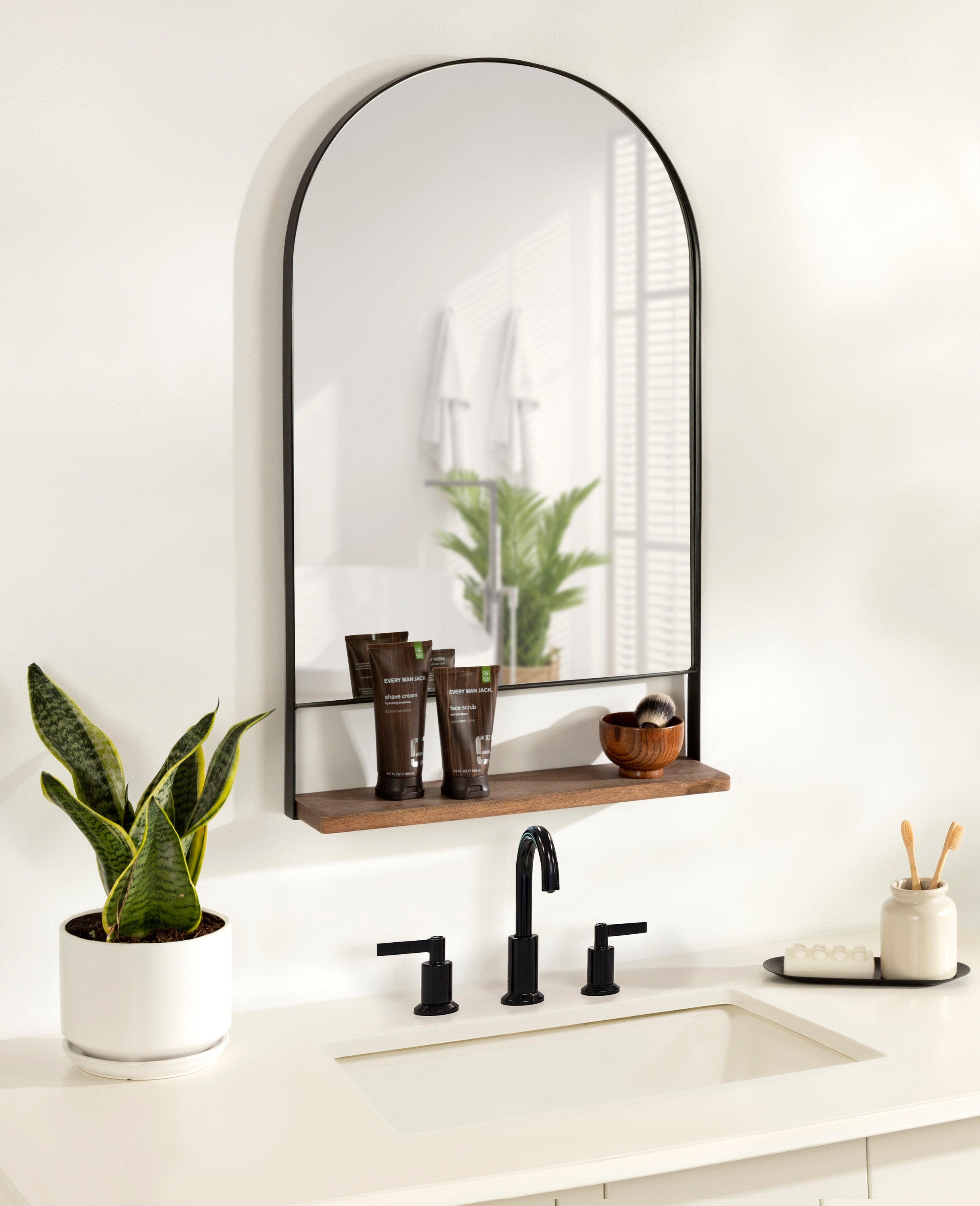 Decorate your wall with this vibrant mirror that puts a modern spin on classic sophistication. The Chadwin mirror brings a sense of refinement and geometry to your home with a lovely arch-shaped frame and a mix of iron and elegant authentic marble. The natural stone shelf attached at the base is excellent for showcasing prized keepsakes or keeping bathroom and household necessities within arms' reach. The Chadwin is a fabulous accent piece for showcasing your elevated style and bold modern taste.