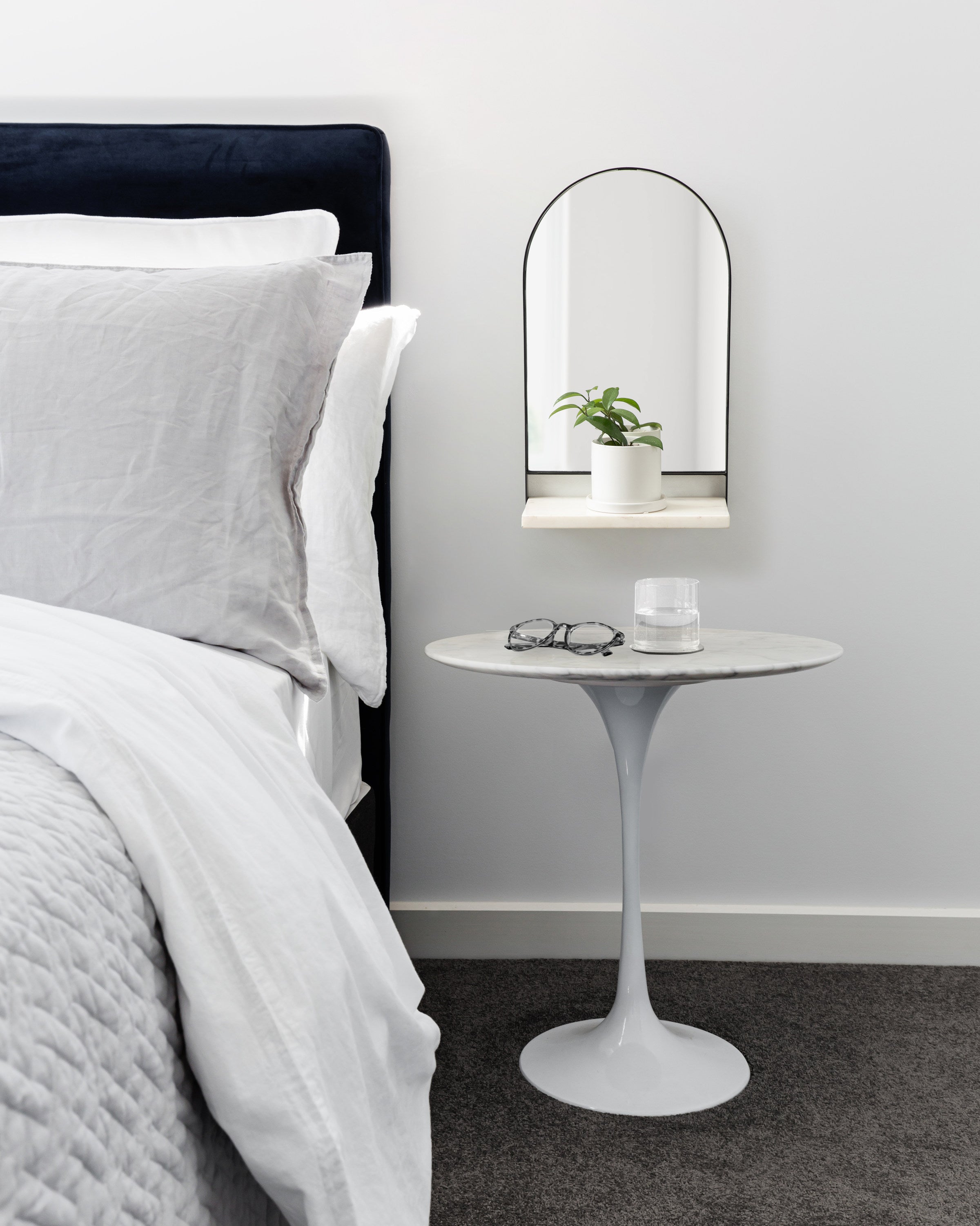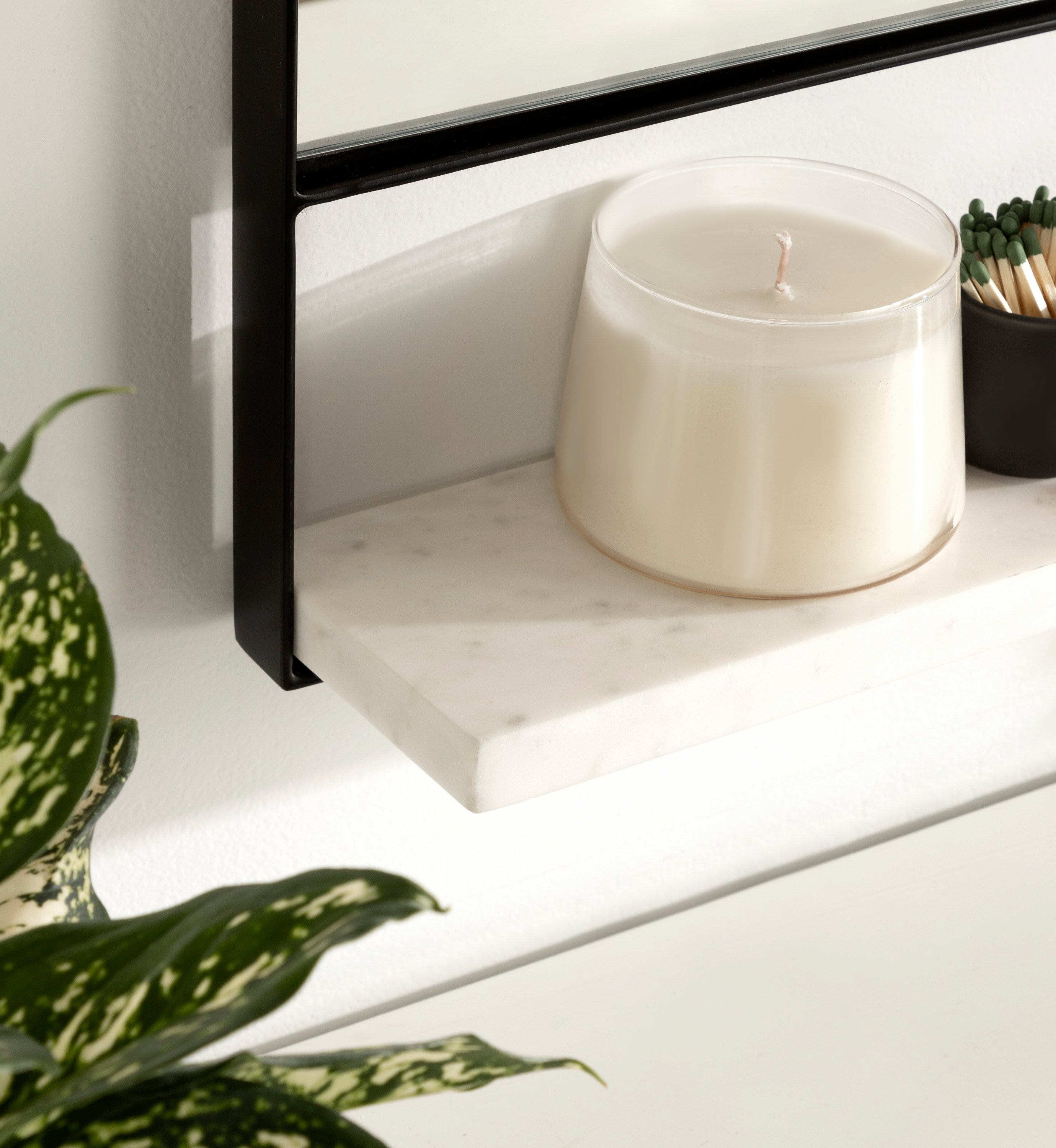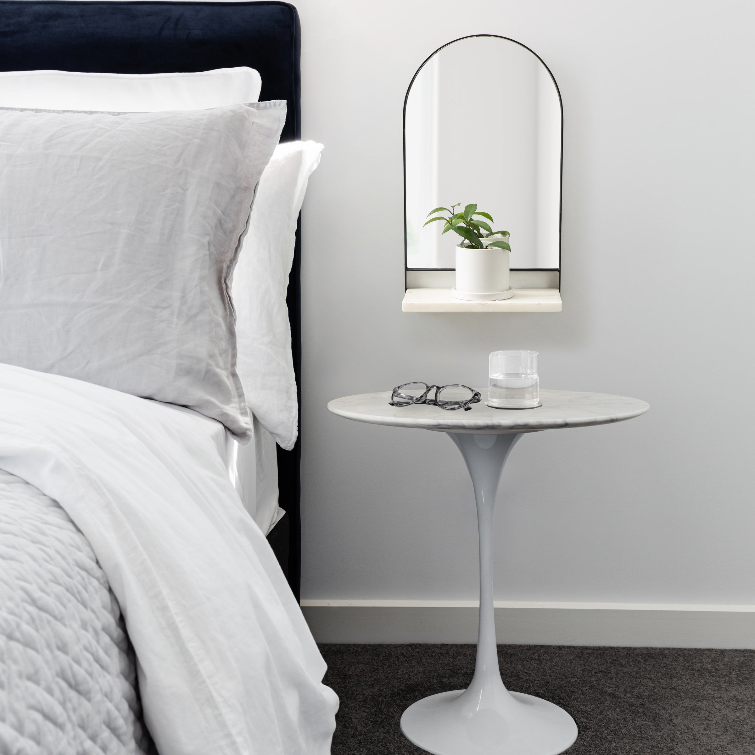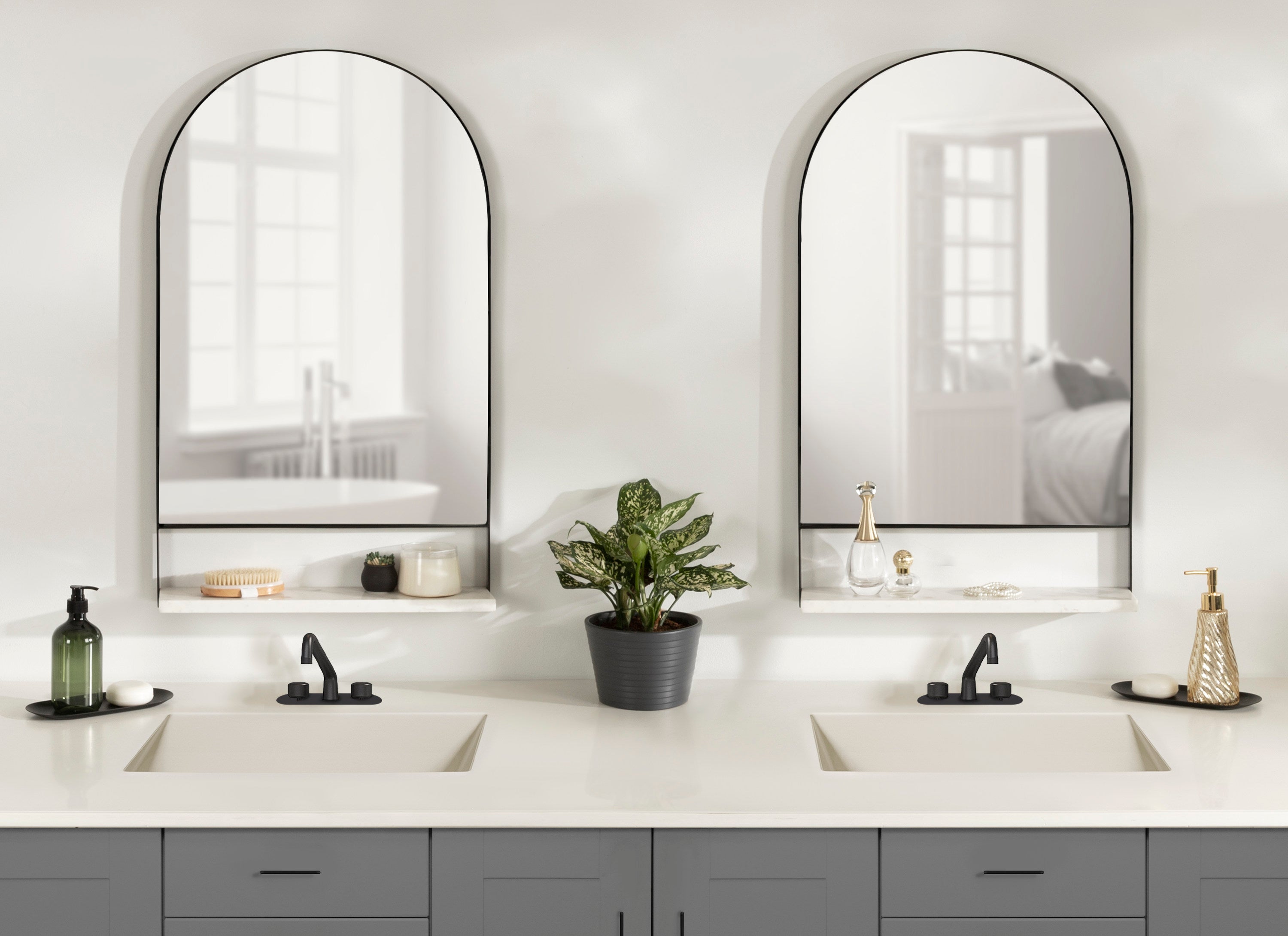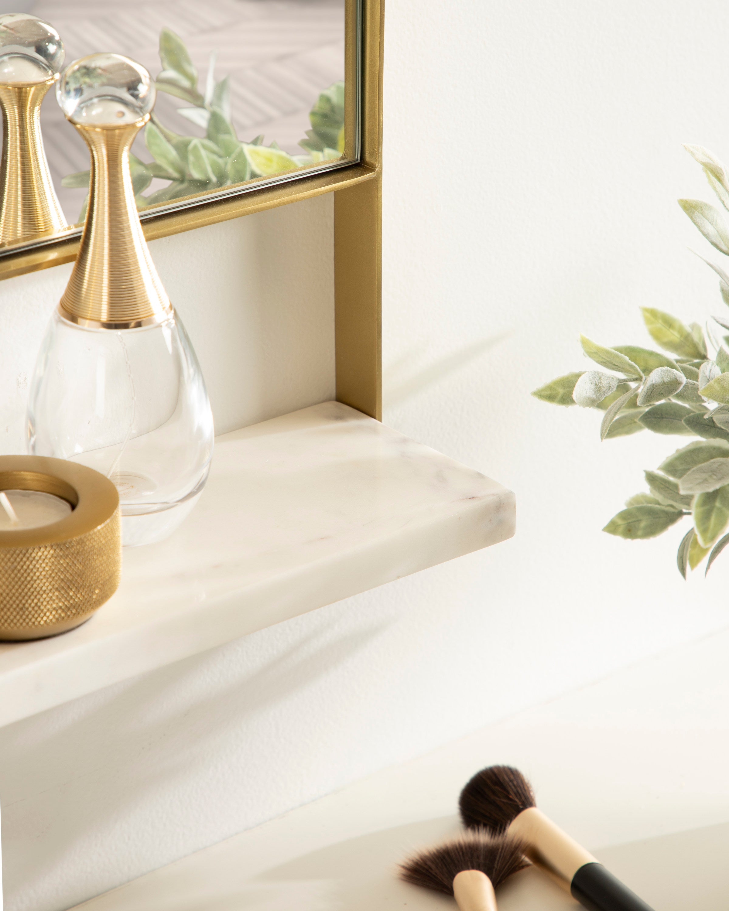 Decorate your wall with this vibrant mirror that puts a modern spin on classic sophistication. The Chadwin mirror brings a sense of refinement and geometry to your home with a lovely arch-shaped frame and a mix of iron and elegant authentic marble. The natural stone shelf attached at the base is excellent for showcasing prized keepsakes or keeping bathroom and household necessities within arms' reach. The Chadwin is a fabulous accent piece for showcasing your elevated style and bold modern taste.
