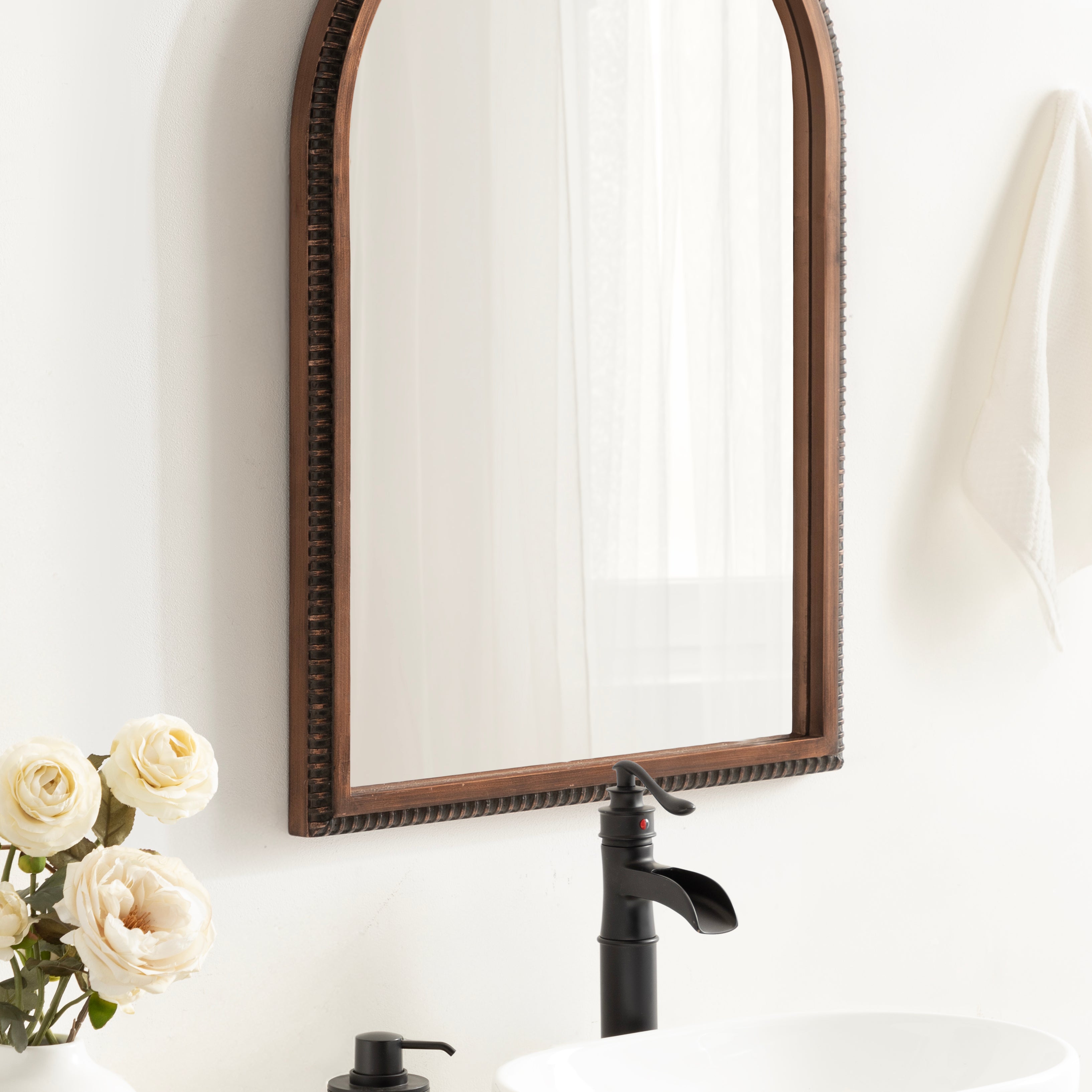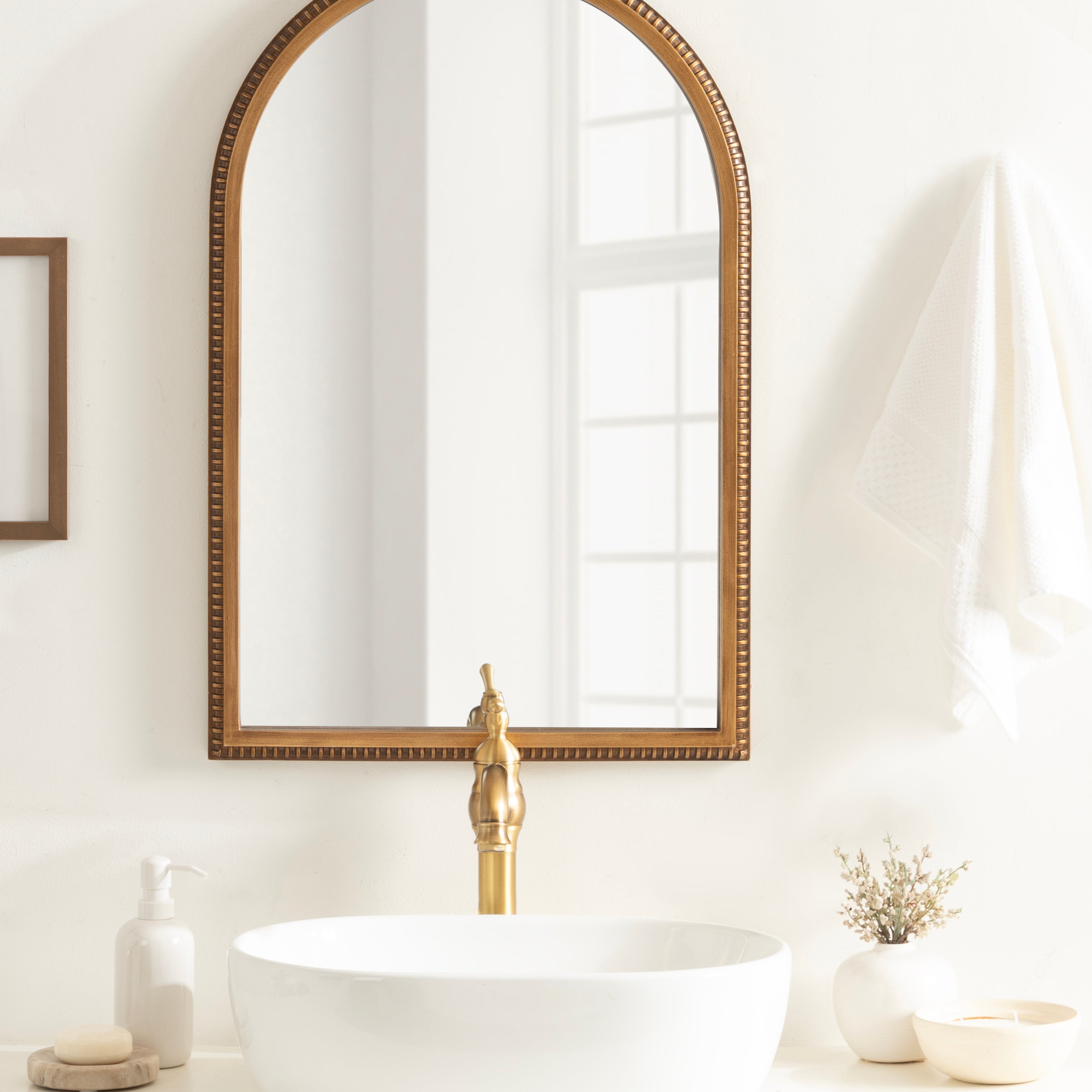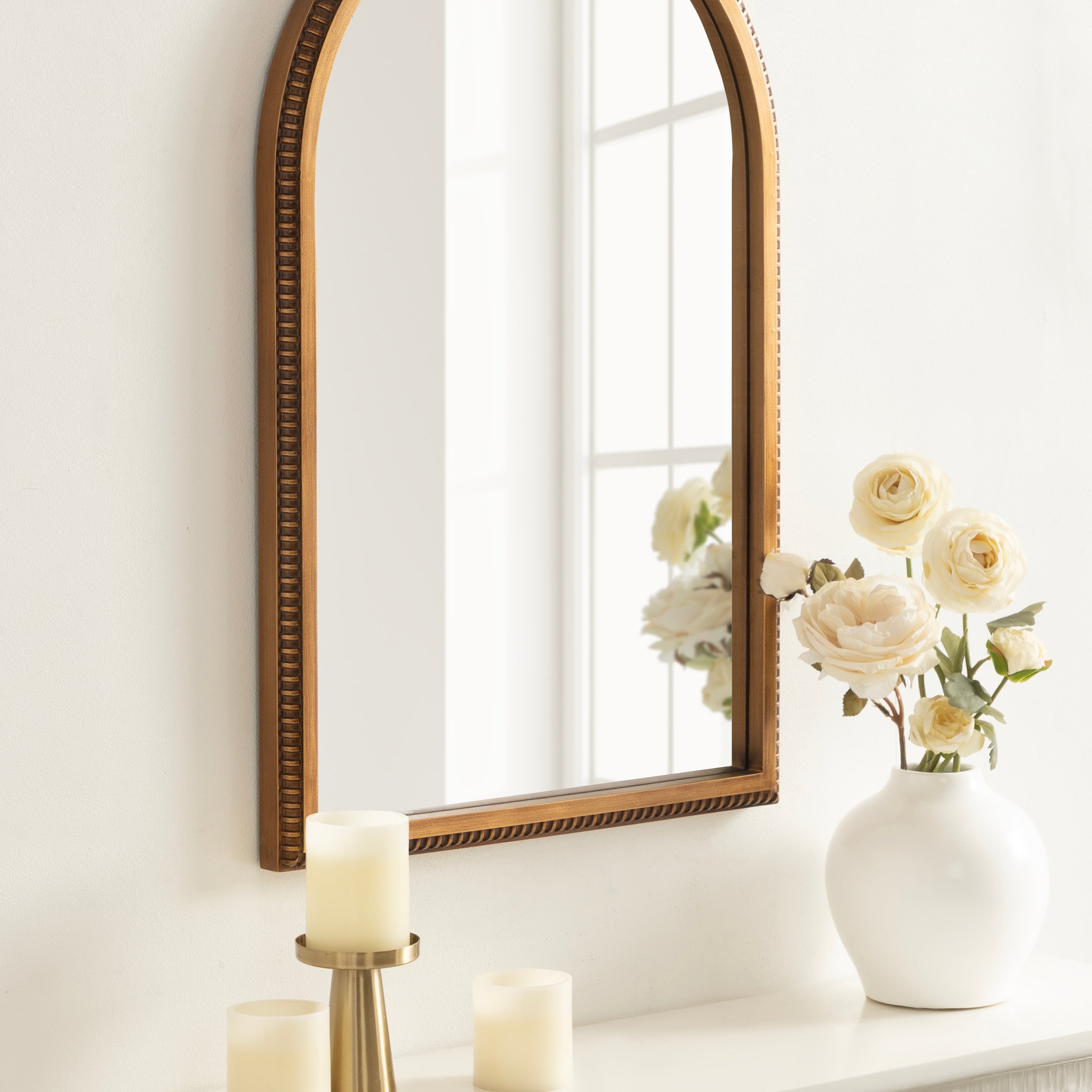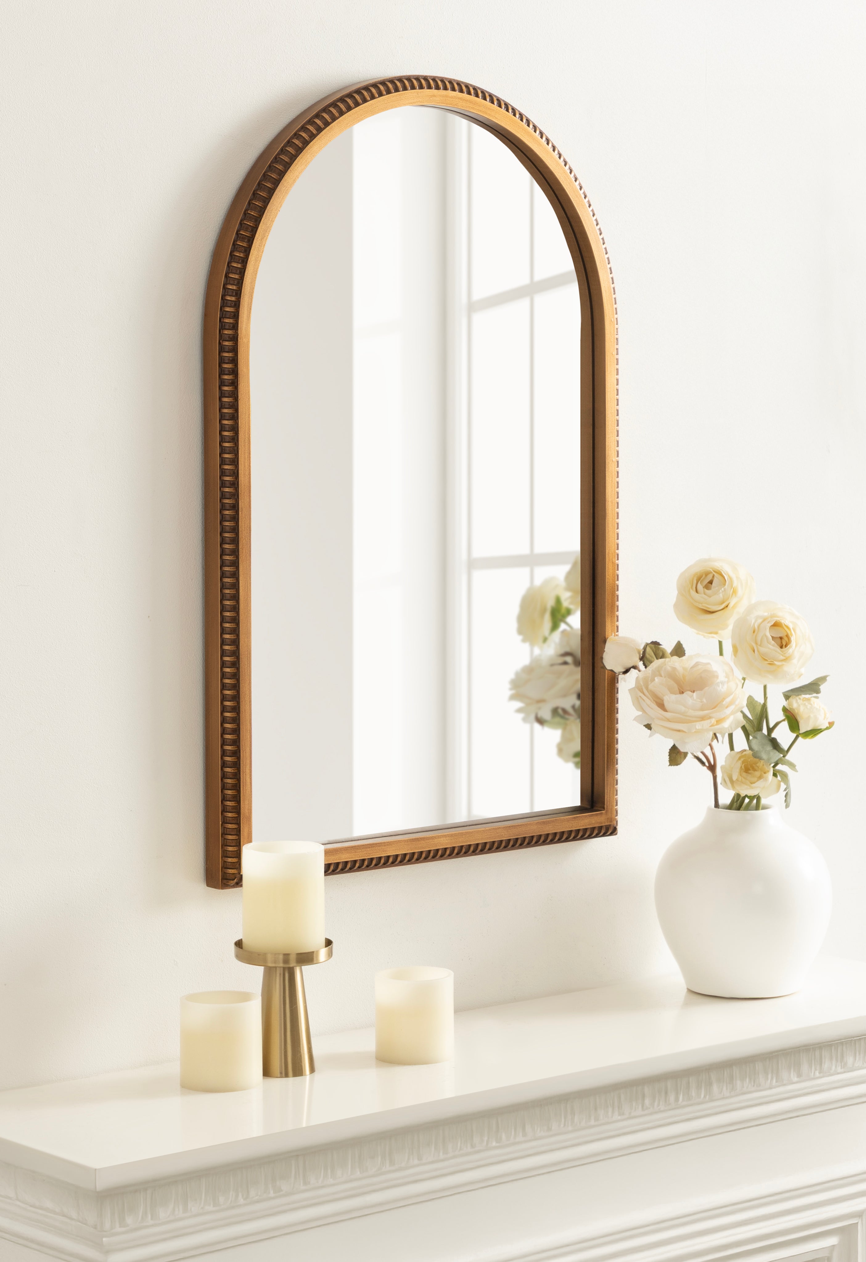 Create a vibrant and sophisticated wall display in your home with the Chaston wall mirror. Created for the modern designer with a flair for hints of antique decor, the Chaston mirror features a trendy yet simple arched shape with an intricate beaded design on the frame that emanates a bold and contemporary style. Create a bold focal point with this arched mirror and its versatile size, enhancing the dimension and vibrancy of your space by highlighting light sources and brightening darker corners. It's also a fantastic accent piece to showcase over your fireplace, console, bed, or couch to add that extra piece your decor needs to stand out. The Chaston's surface area makes it an excellent vanity mirror in your powder room or master bathroom above an elegant sink. Its arched shape and bold look are fabulous for introducing a glamorous decor theme to your home.