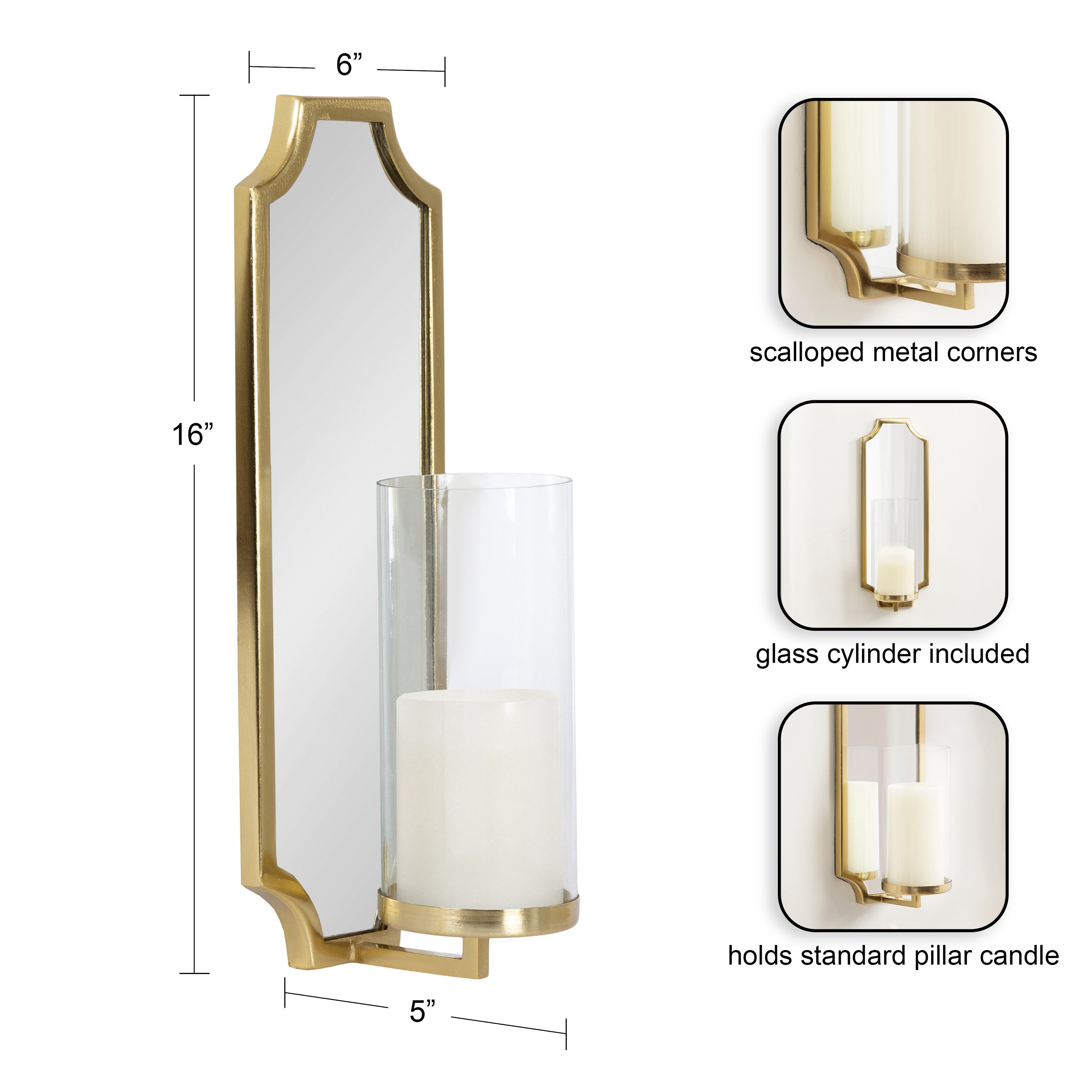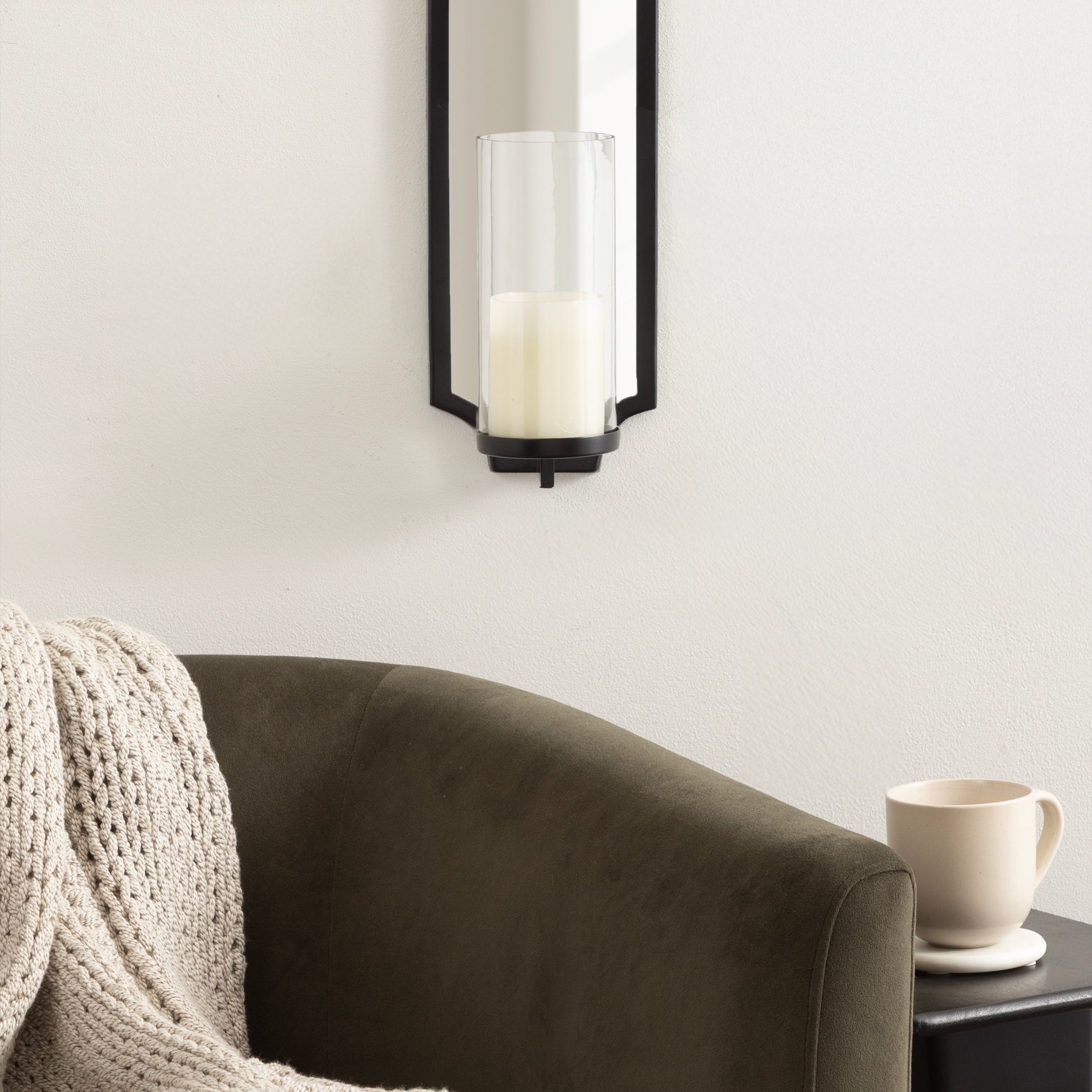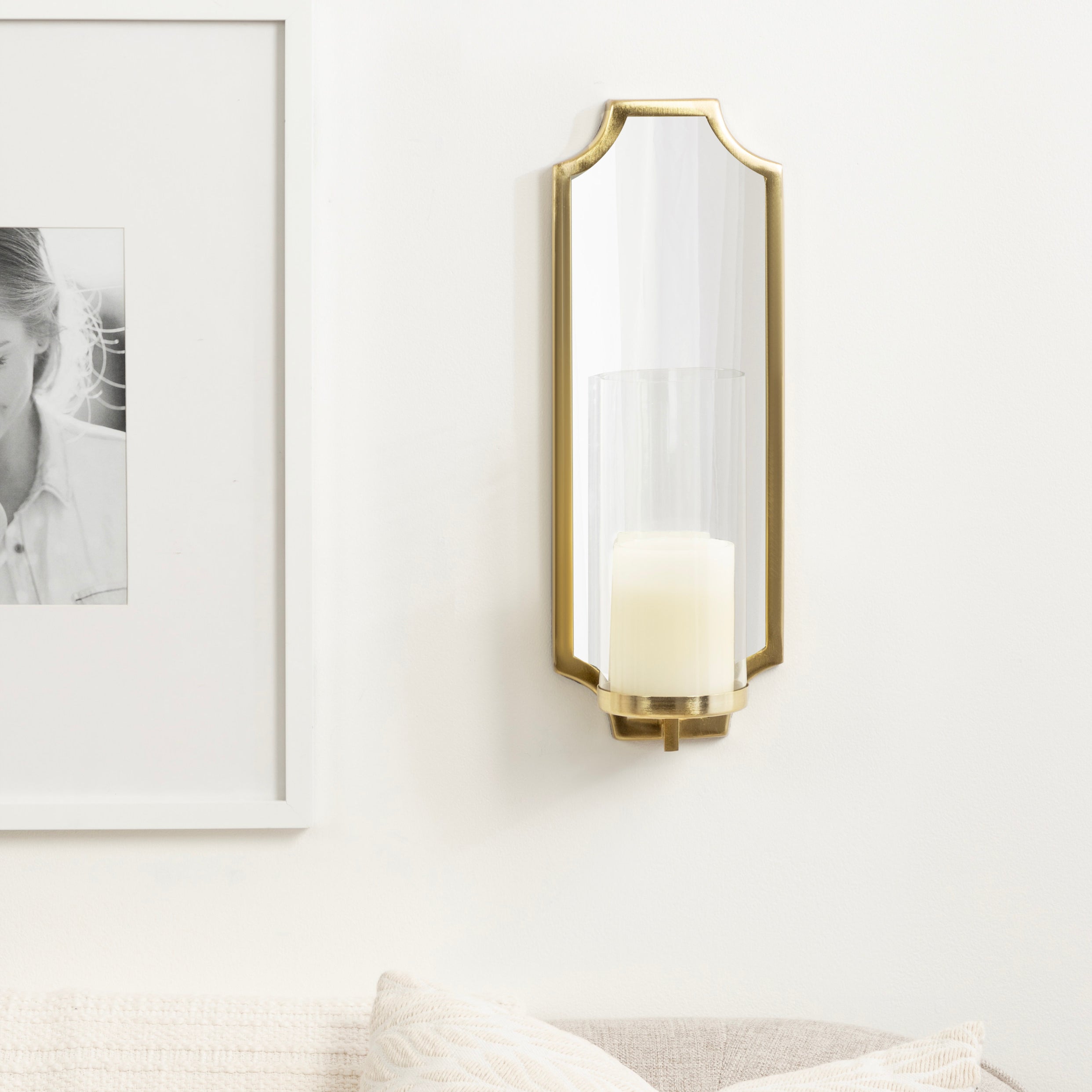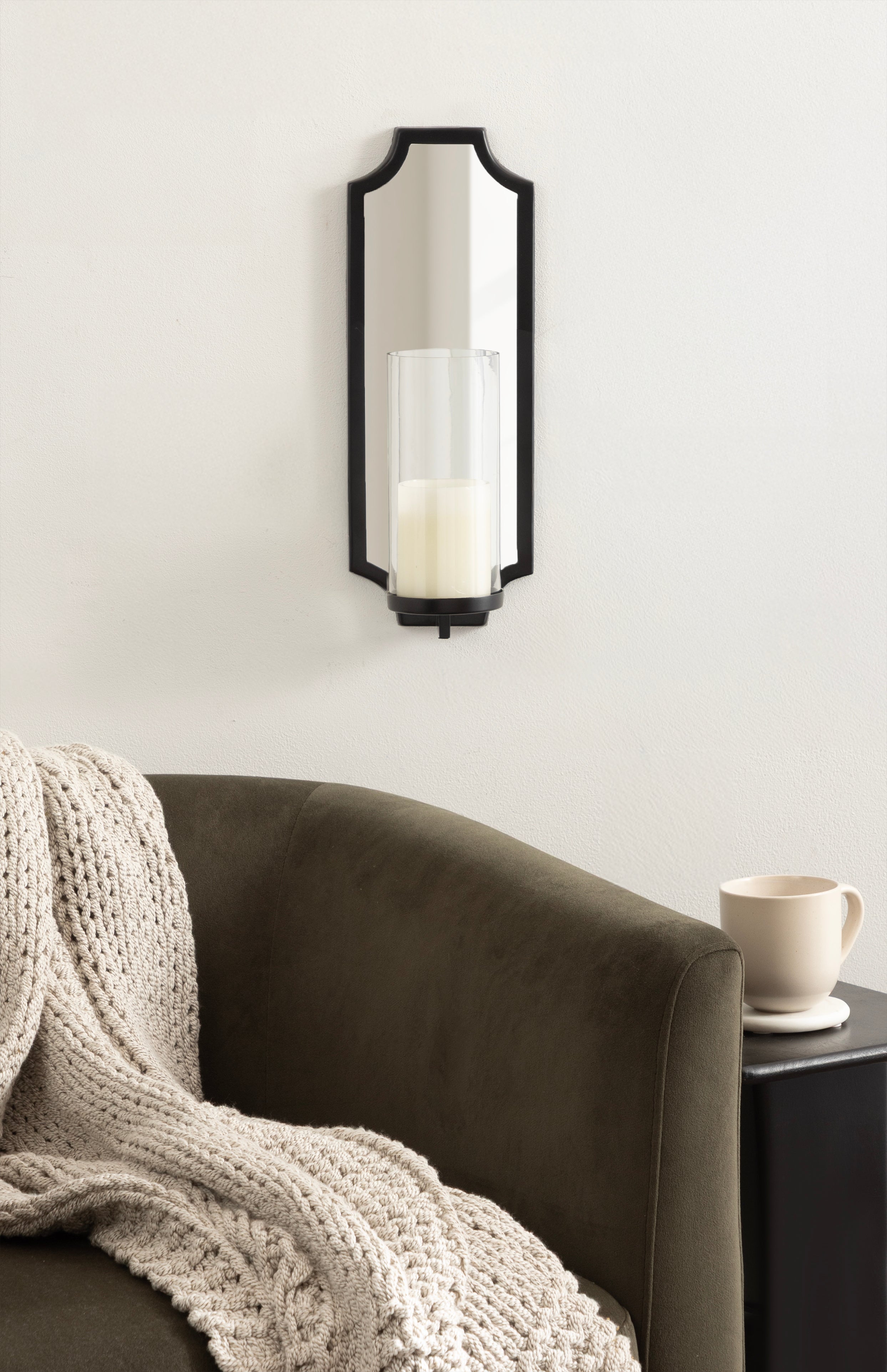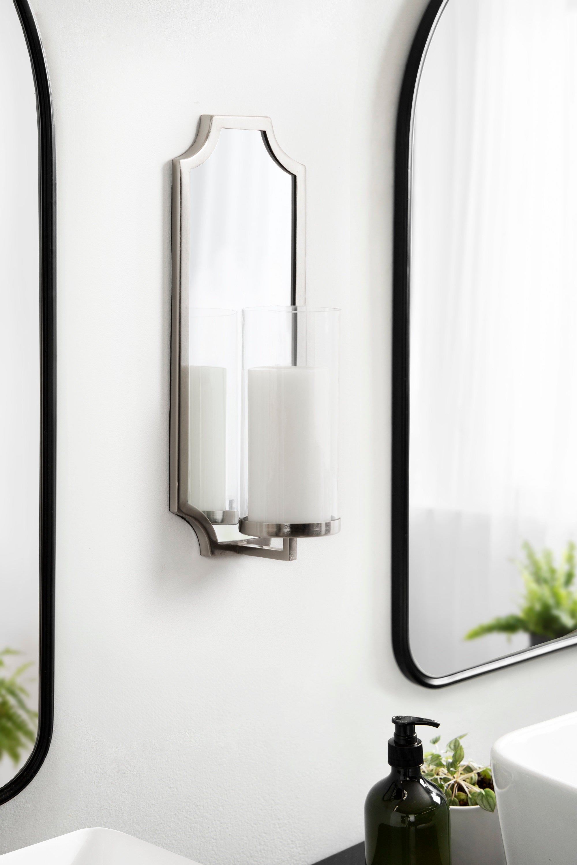 Elevate your home decor with the Kate and Laurel Ciel mirrored wall sconce. The contemporary round candle holder not only serves as a stylish accent but also offers a practical solution for enhancing the ambiance with flameless candles. Behind the candle holder is a tall octagonal mirror that reflects more light throughout your home. Another highlight of this sconce is the removable glass cylinder, thoughtfully designed to beautifully showcase your favorite candles. Whether adorning your living room, bedroom, or hallway, the soft glow emanating through the glass cylinder creates a mesmerizing visual impact and a hint of light.