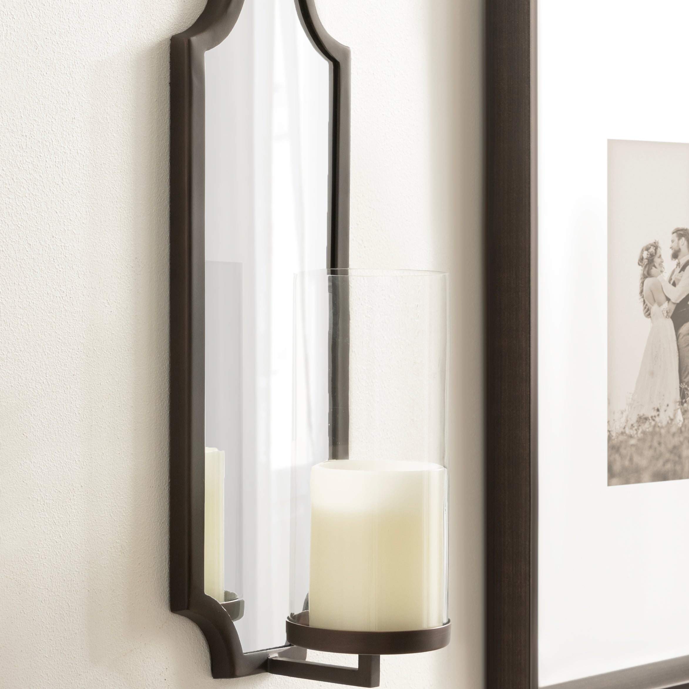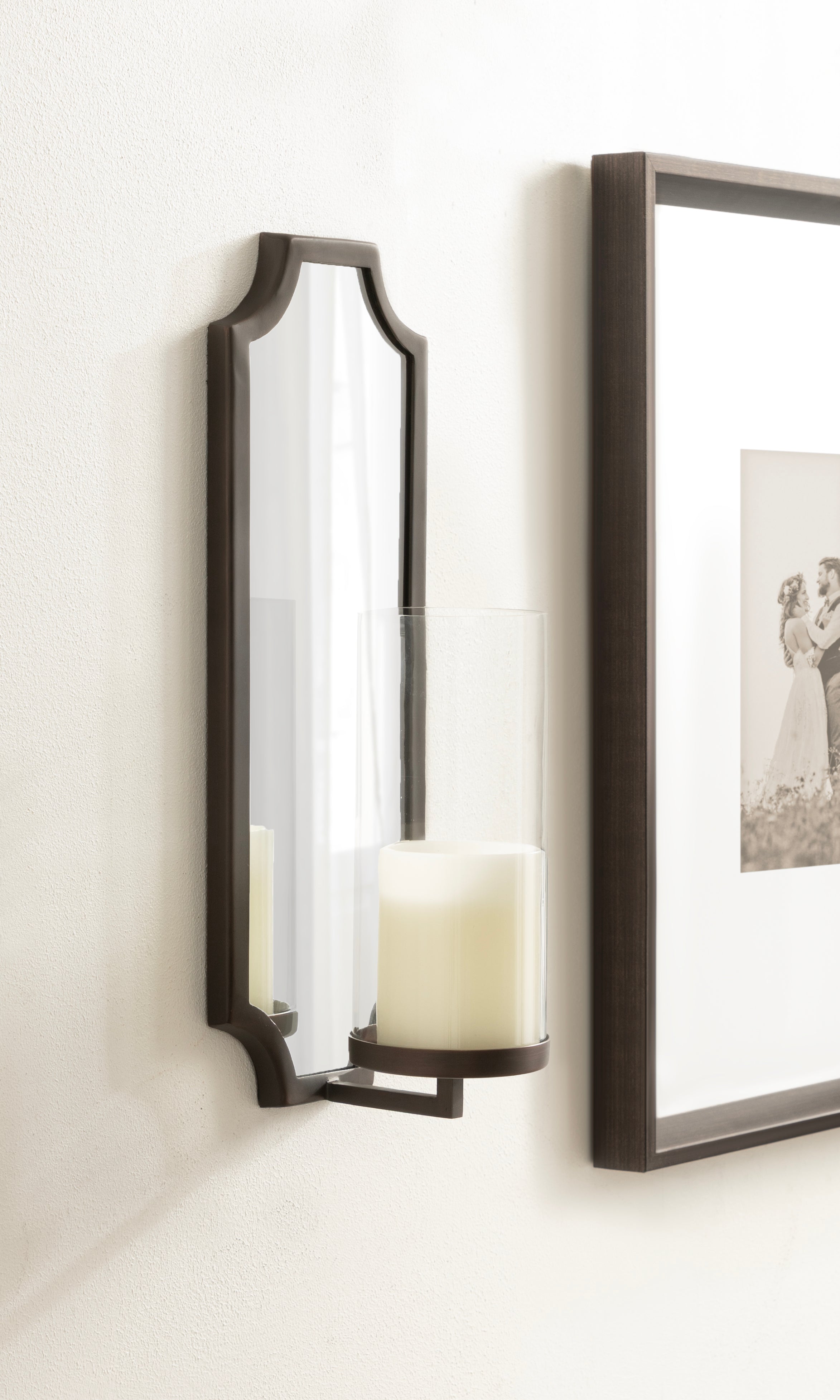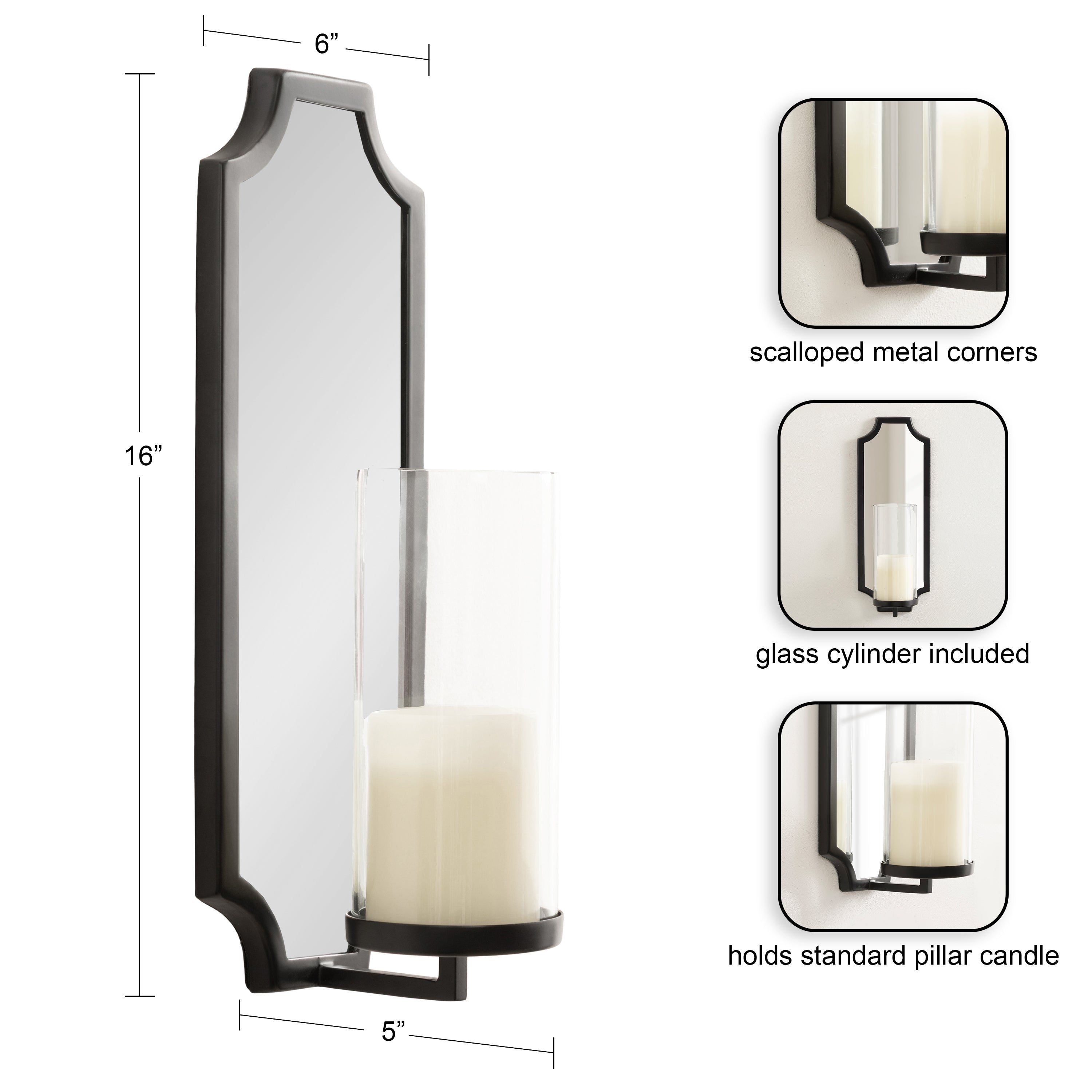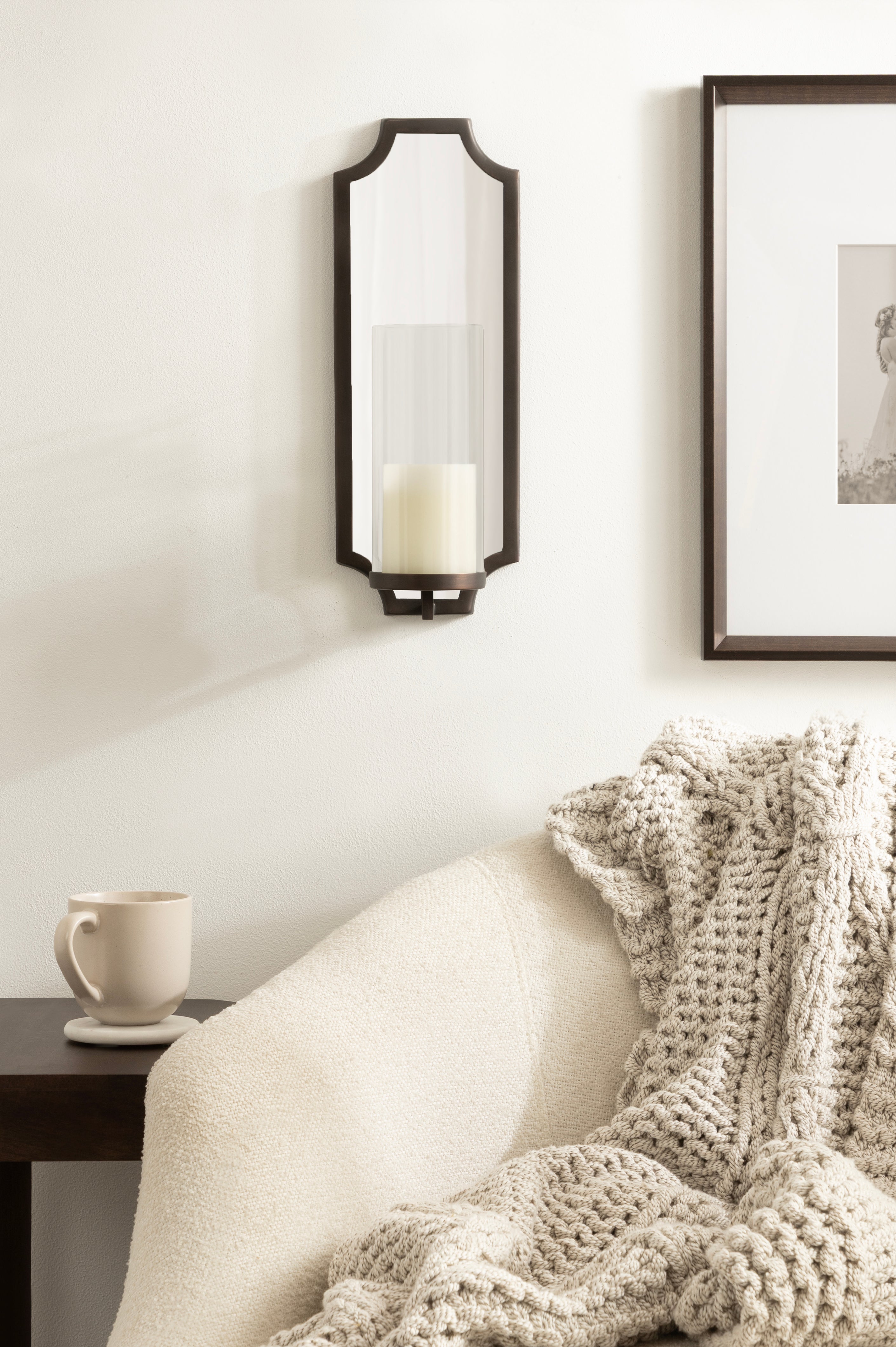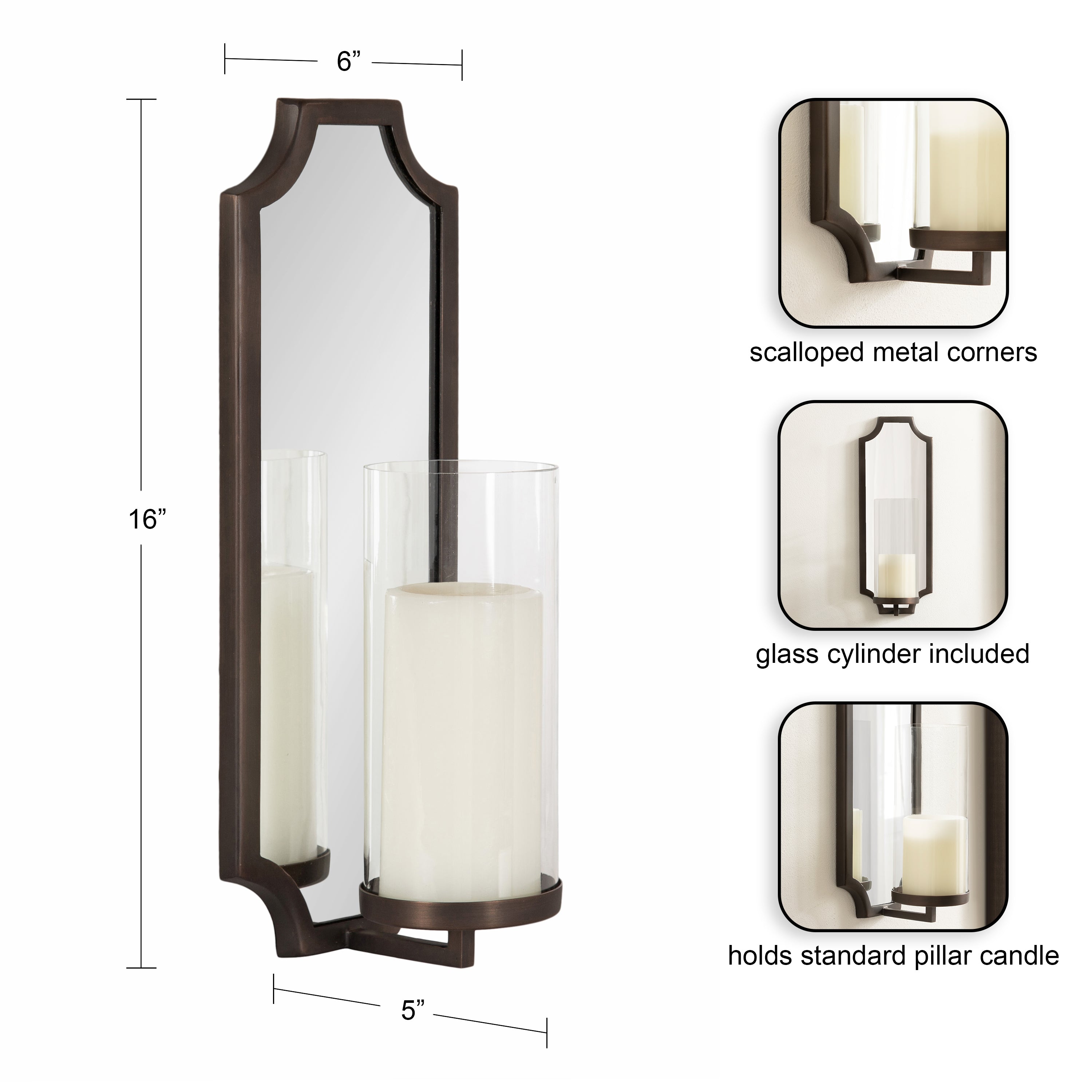 Elevate your home decor with the Kate and Laurel Ciel mirrored wall sconce. The contemporary round candle holder not only serves as a stylish accent but also offers a practical solution for enhancing the ambiance with flameless candles. Behind the candle holder is a tall octagonal mirror that reflects more light throughout your home. Another highlight of this sconce is the removable glass cylinder, thoughtfully designed to beautifully showcase your favorite candles. Whether adorning your living room, bedroom, or hallway, the soft glow emanating through the glass cylinder creates a mesmerizing visual impact and a hint of light.