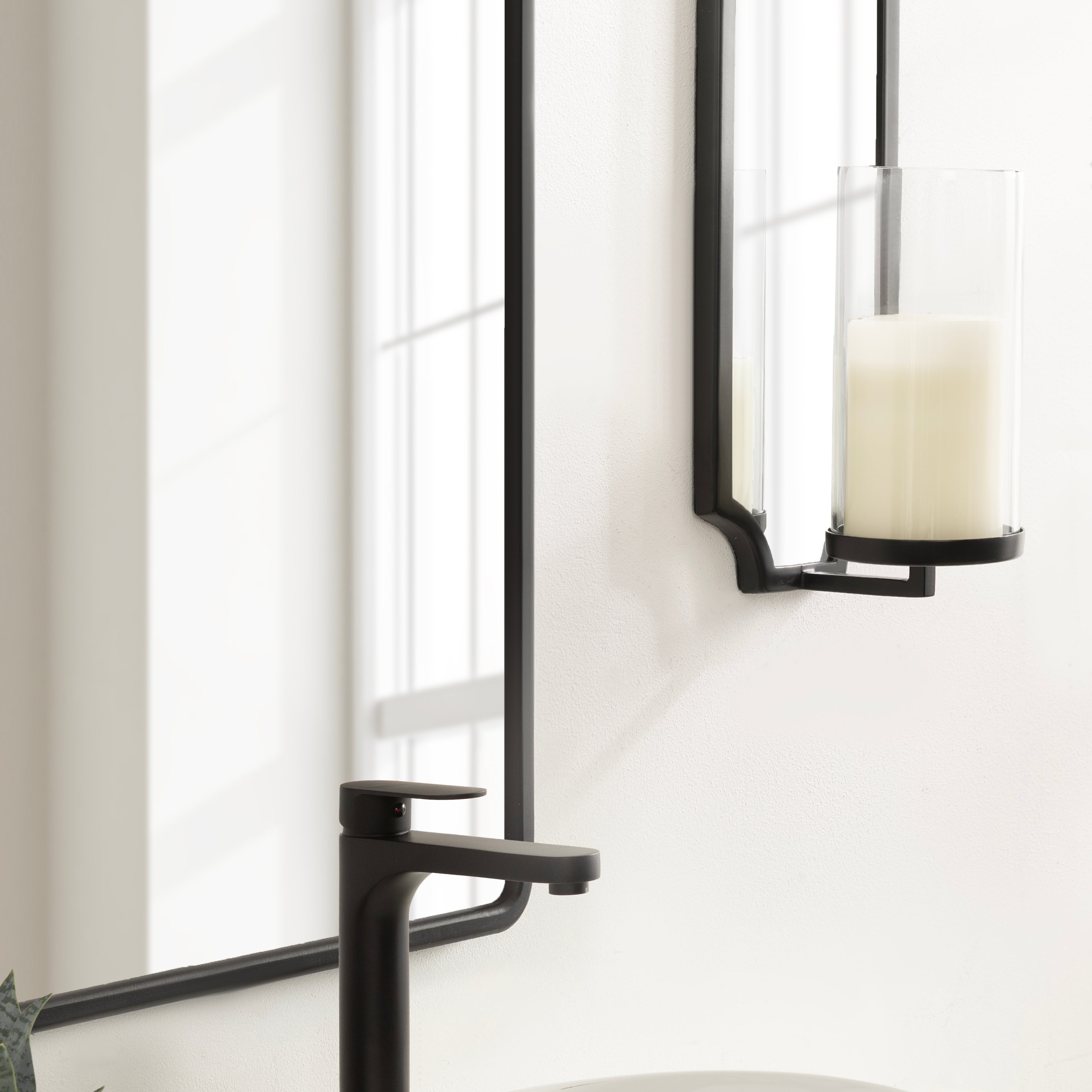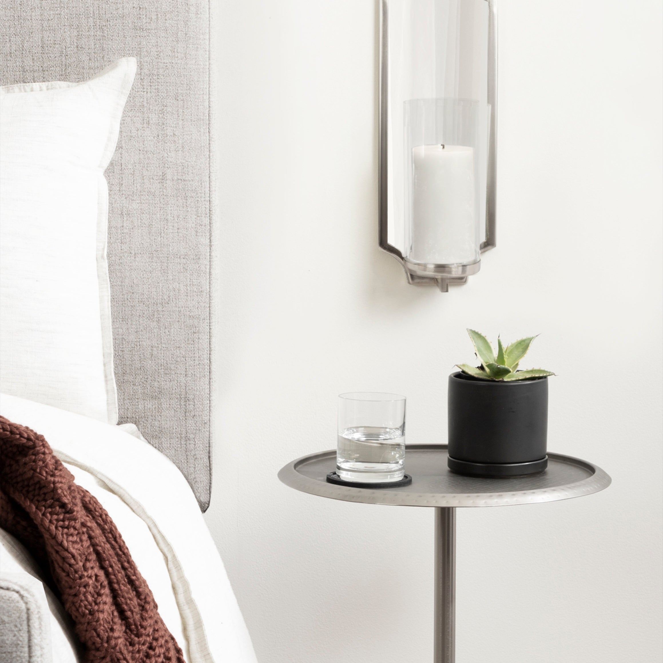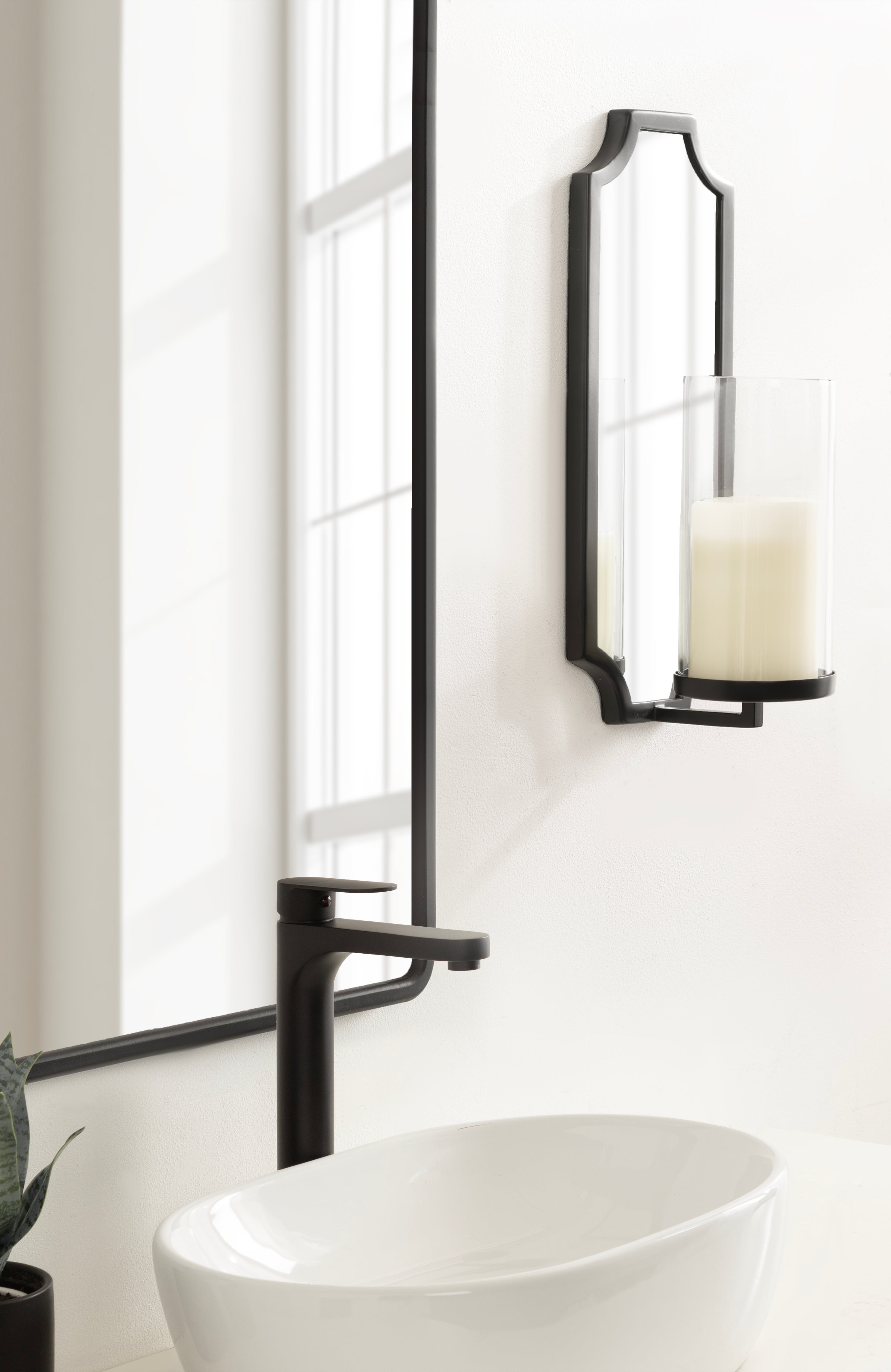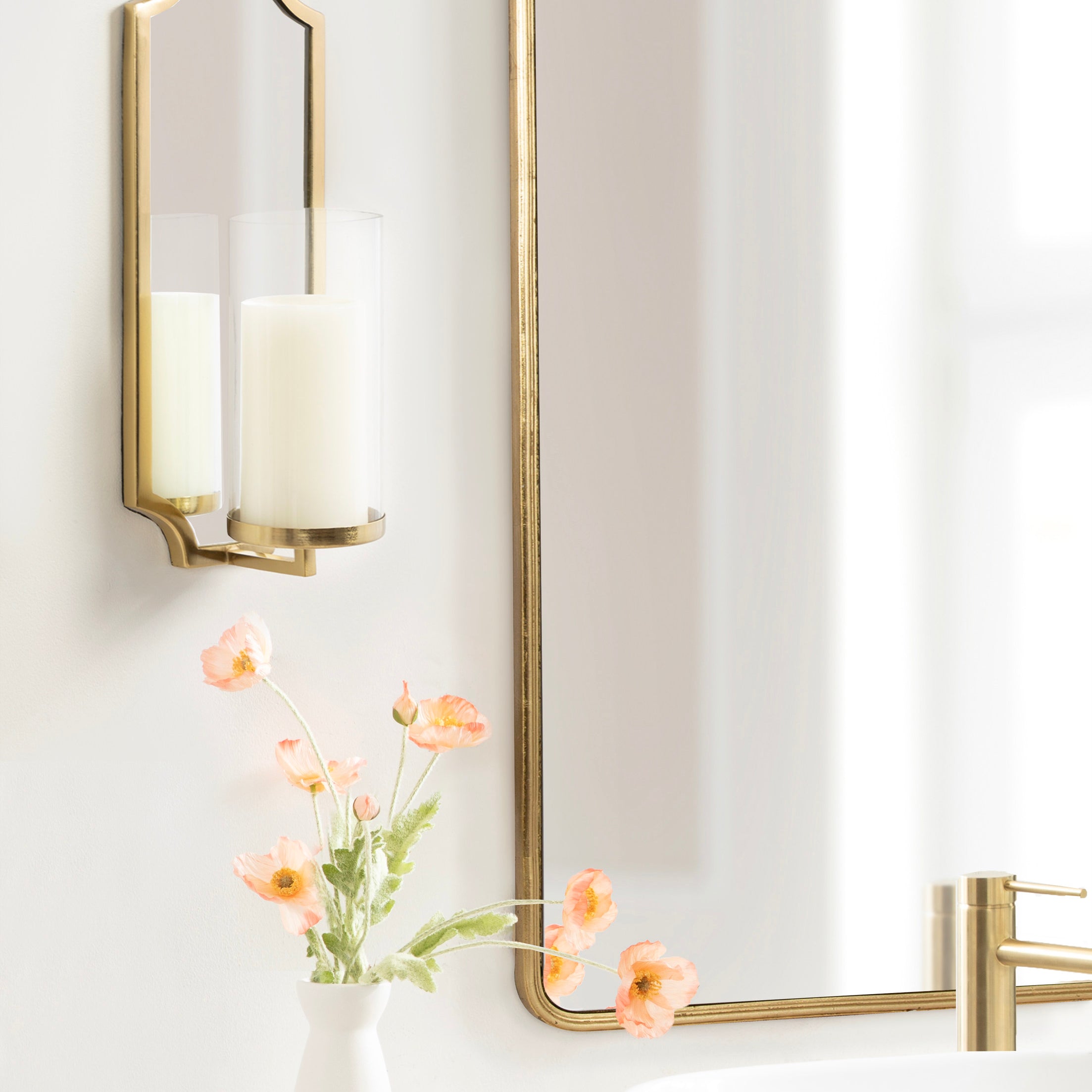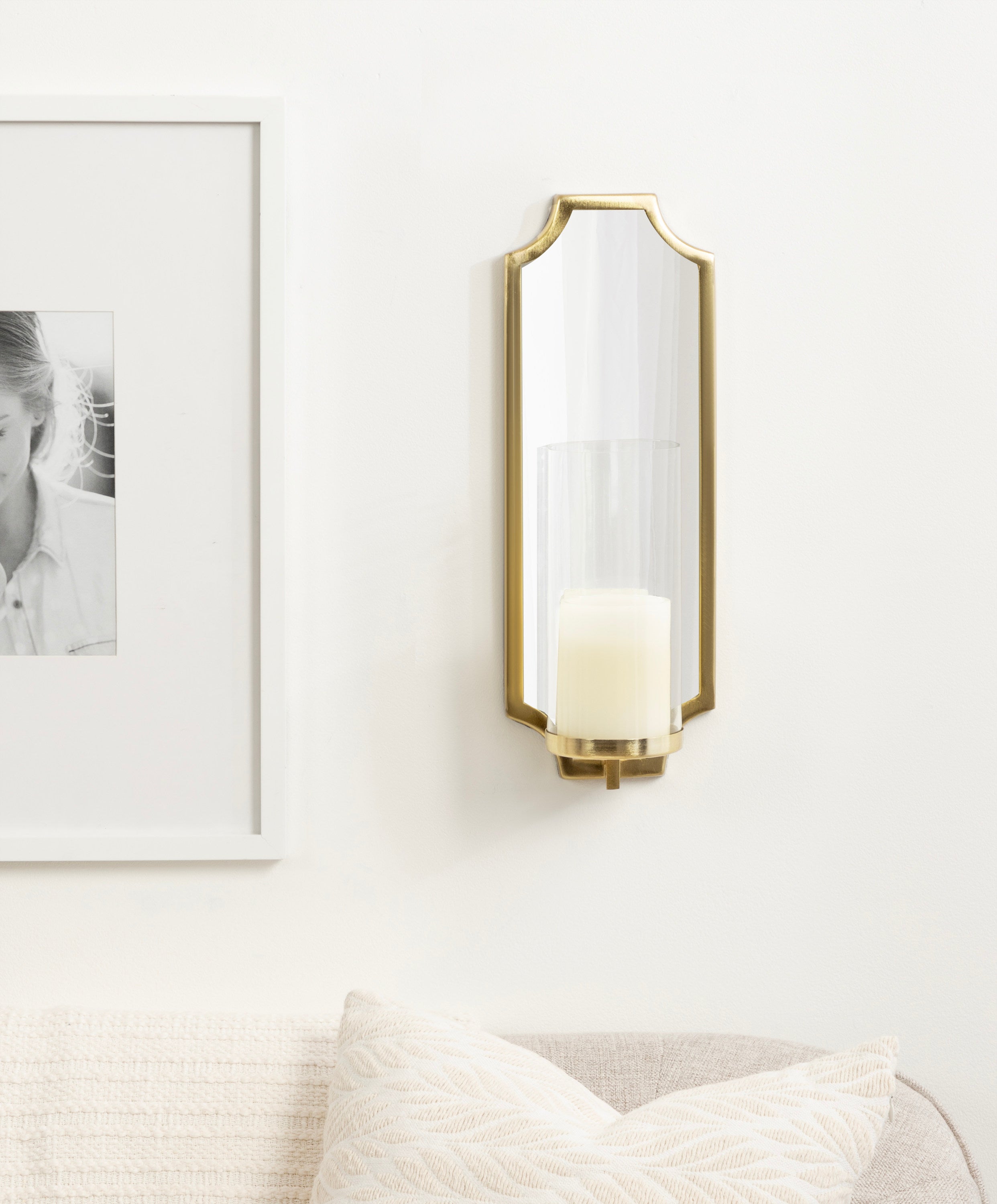 Elevate your home decor with the Kate and Laurel Ciel mirrored wall sconce. The contemporary round candle holder not only serves as a stylish accent but also offers a practical solution for enhancing the ambiance with flameless candles. Behind the candle holder is a tall octagonal mirror that reflects more light throughout your home. Another highlight of this sconce is the removable glass cylinder, thoughtfully designed to beautifully showcase your favorite candles. Whether adorning your living room, bedroom, or hallway, the soft glow emanating through the glass cylinder creates a mesmerizing visual impact and a hint of light.