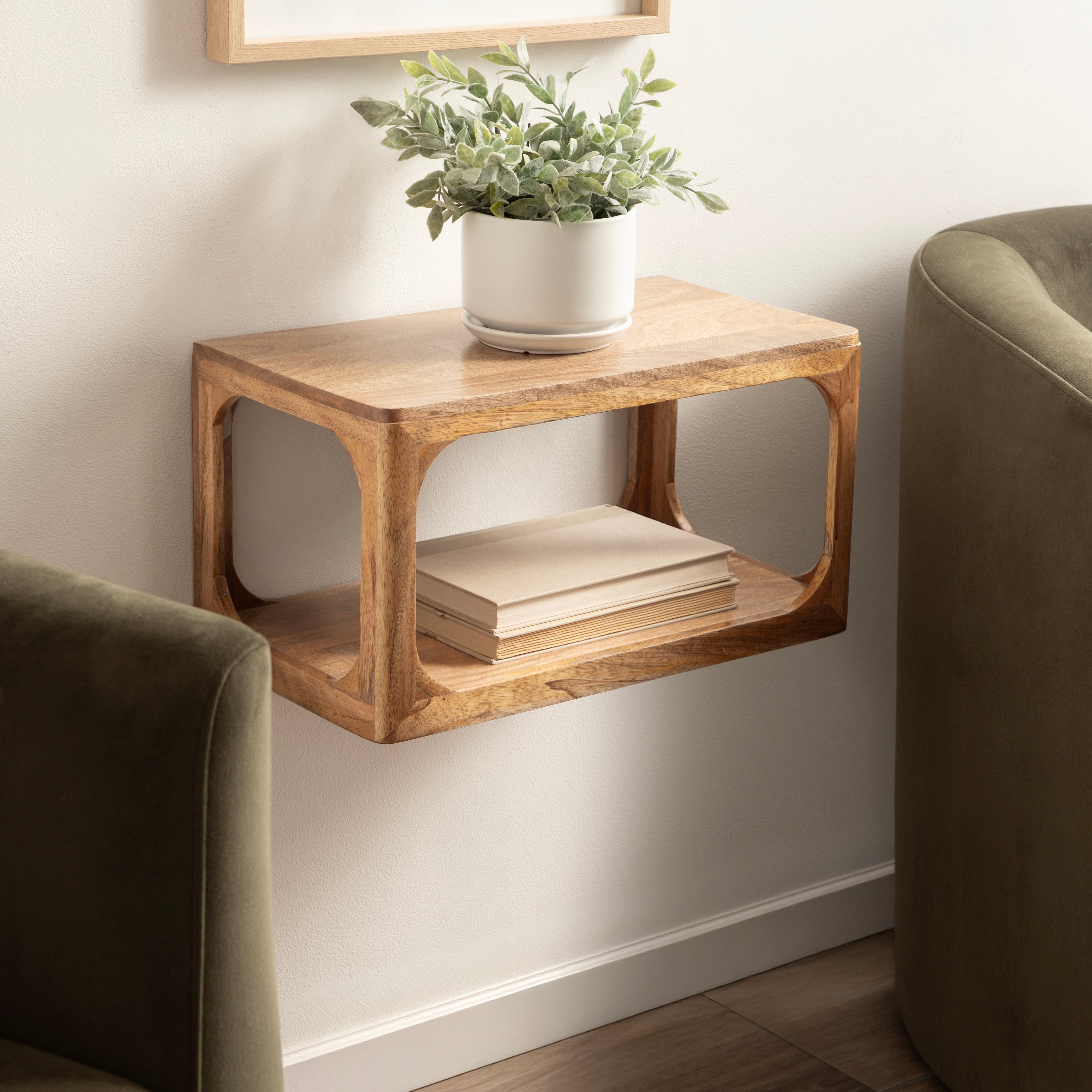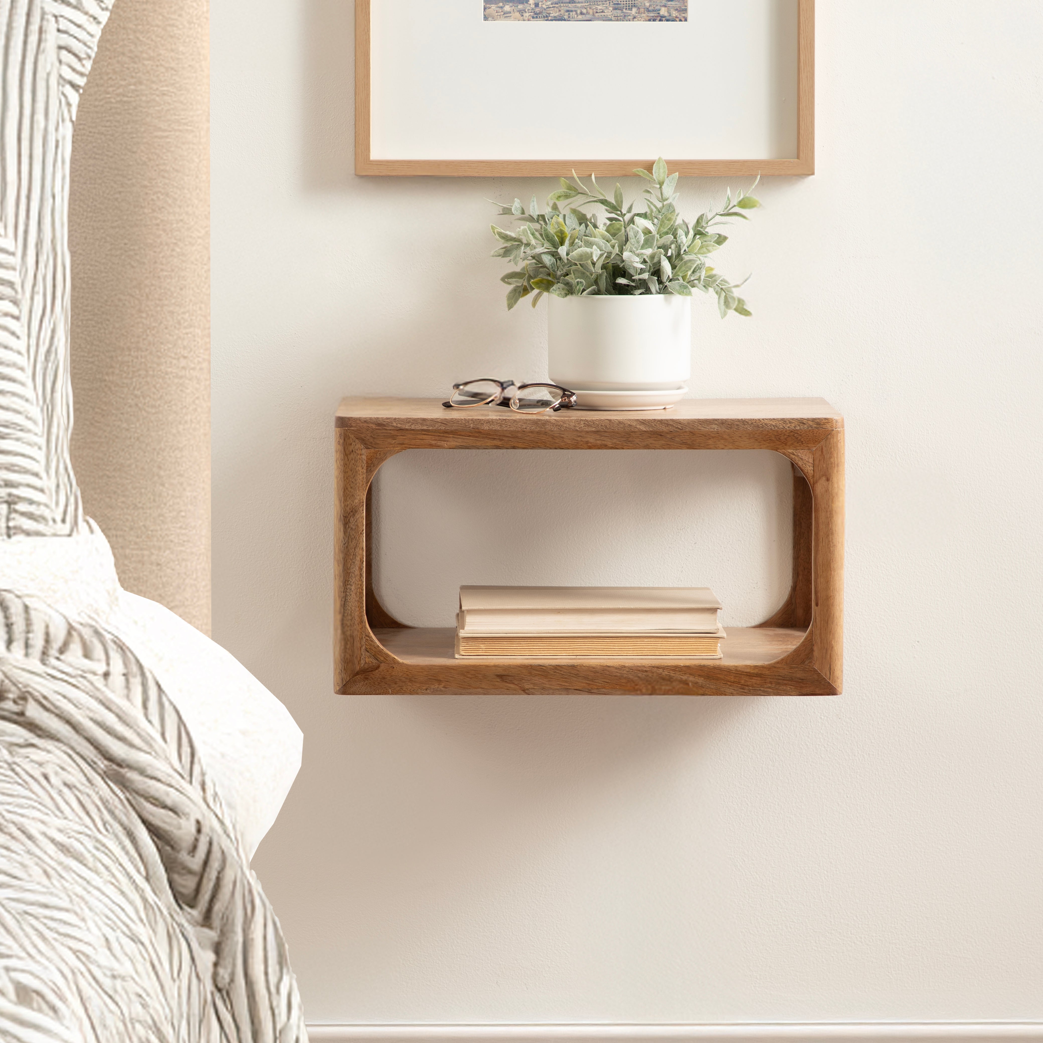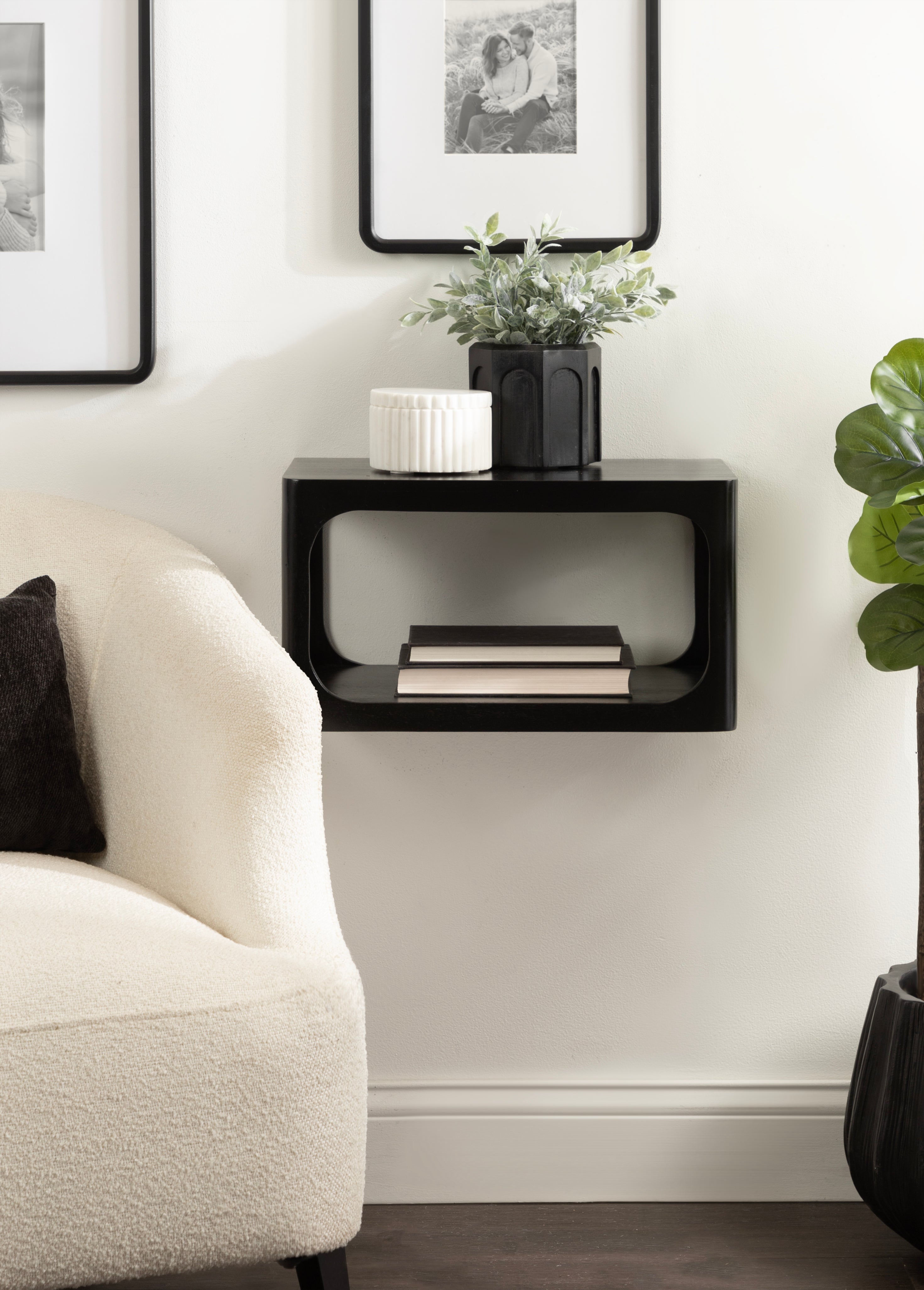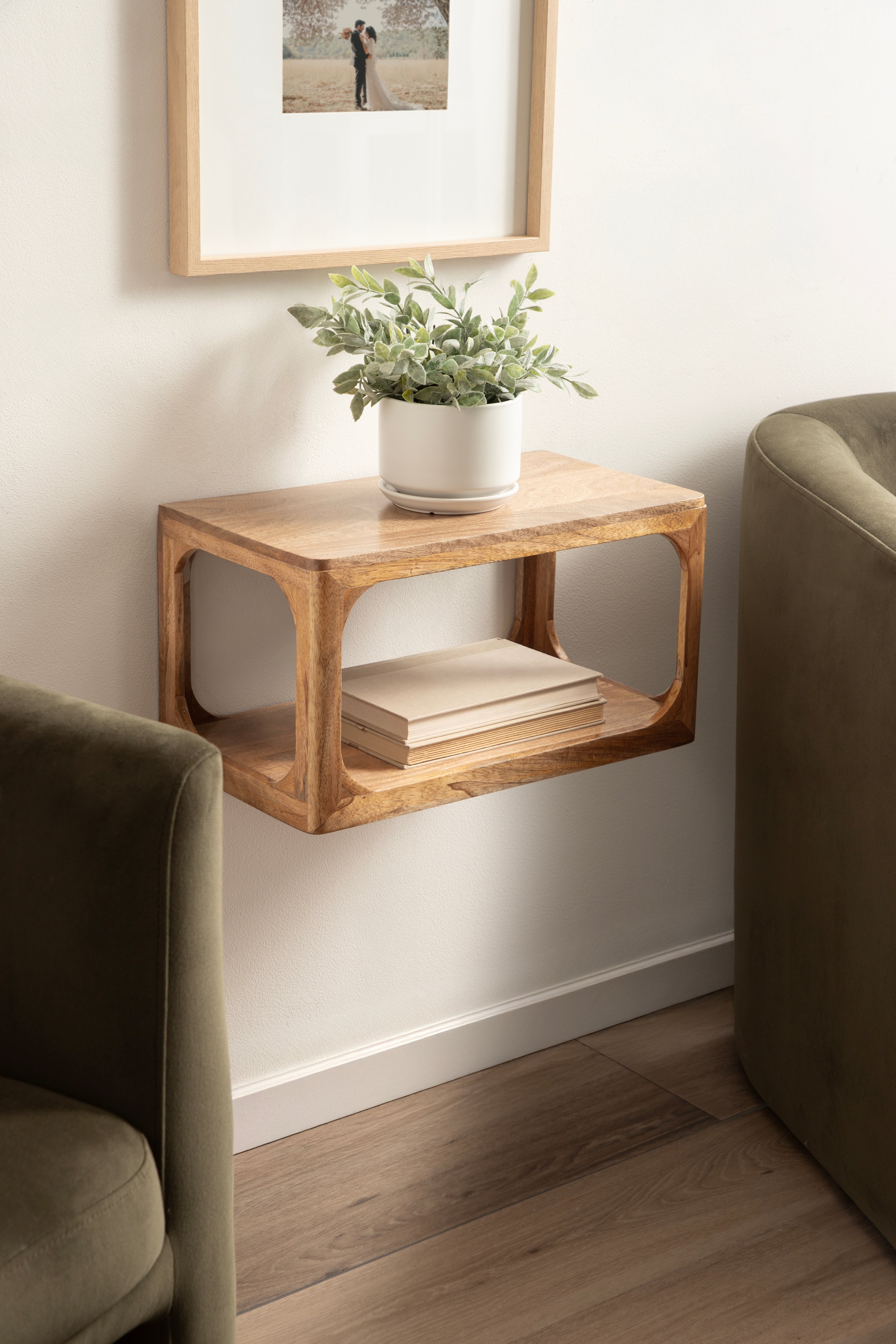 Introducing the Dahl floating side table - the perfect addition to your bedroom or living space! This modern floating nightstand is designed to add functionality and style to any room with its sleek and transitional design. Featuring a simple, convenient design, this wood side table provides stylish storage space for your essentials, such as books, remotes, and other small items. The floating design of this side table creates a unique and modern look, adding an aesthetic touch to your room. It is easy to install with the included hardware, making it a hassle-free addition to your home. The floating design also helps to create an illusion of more space, making it a great choice for a floating shelf in small rooms or apartments.