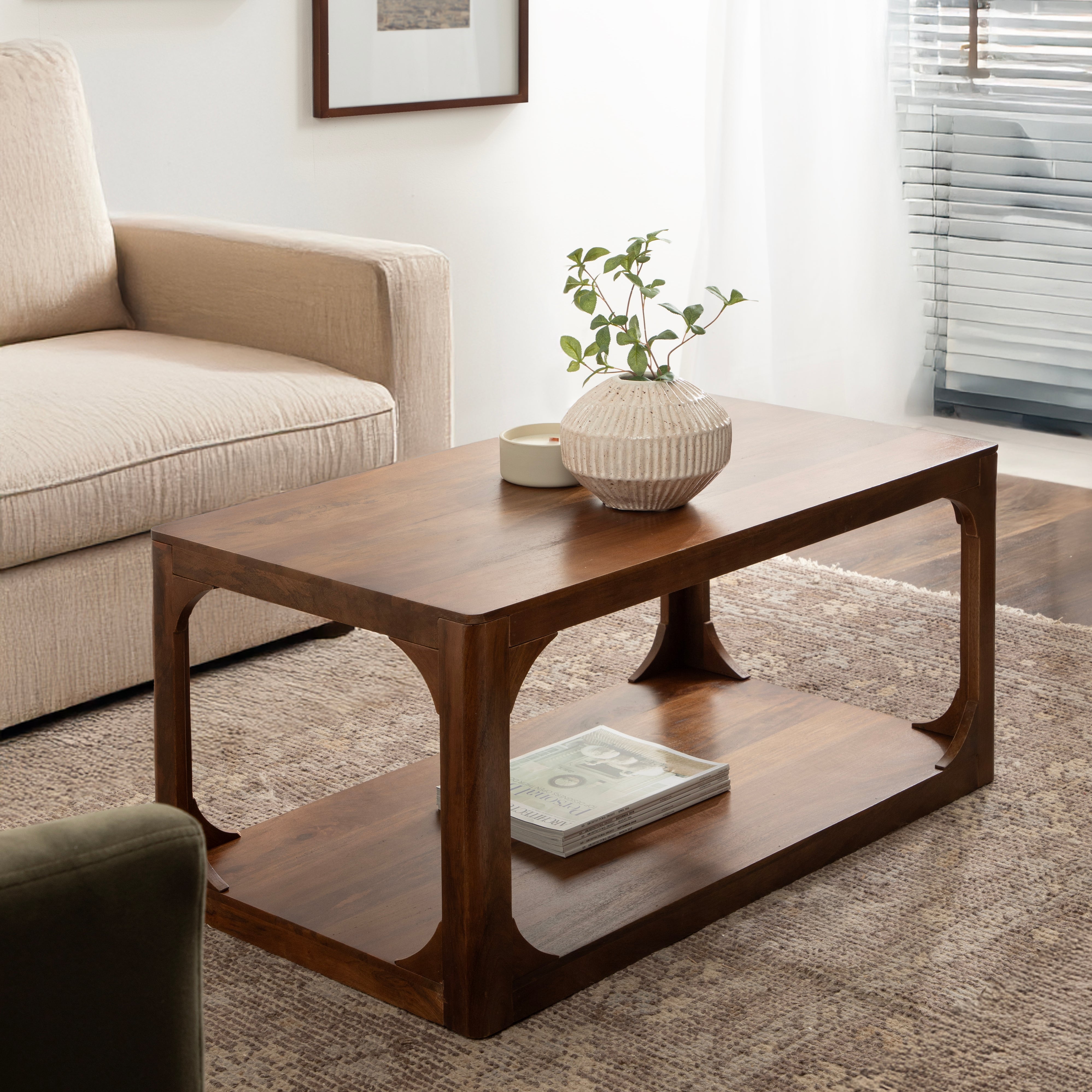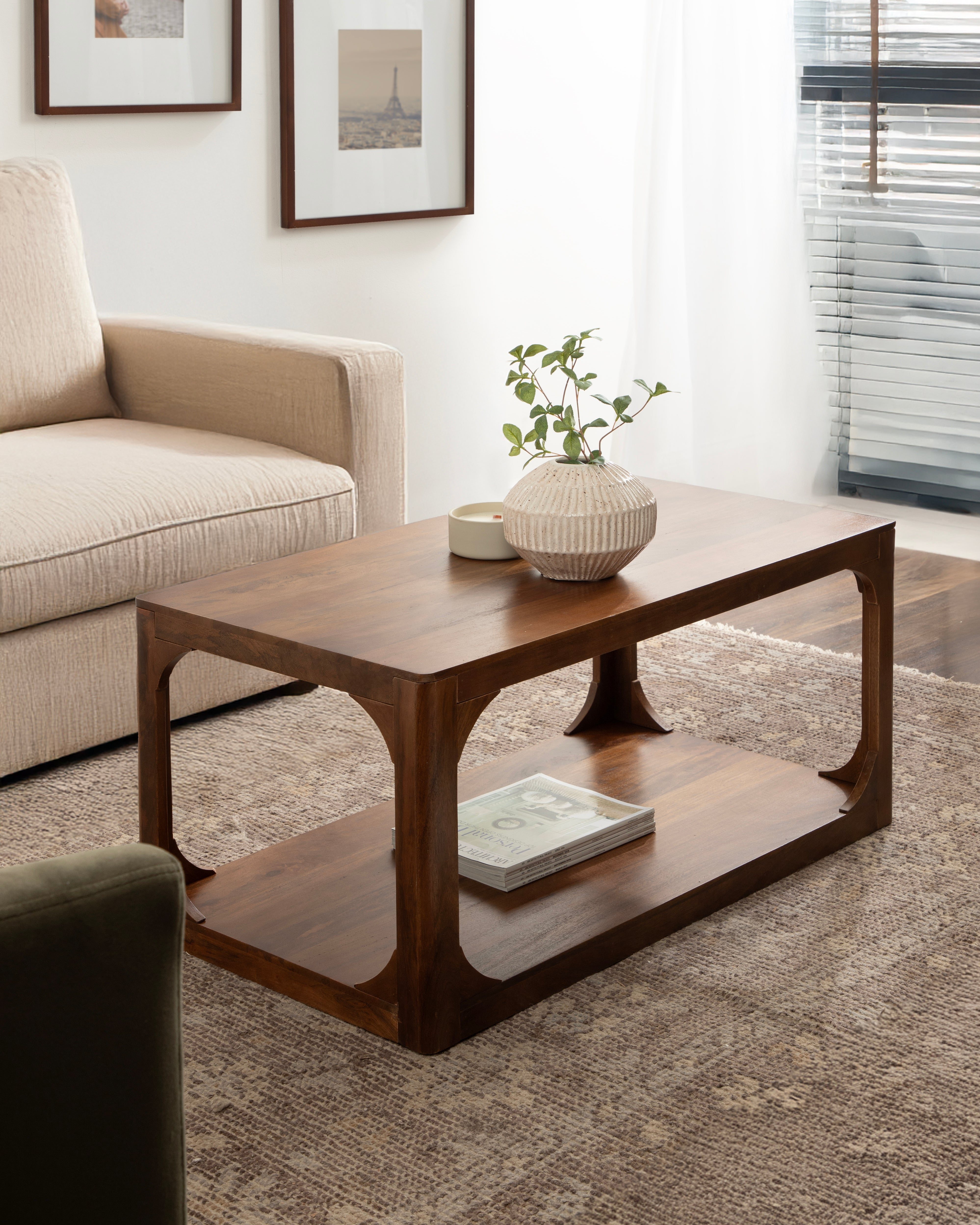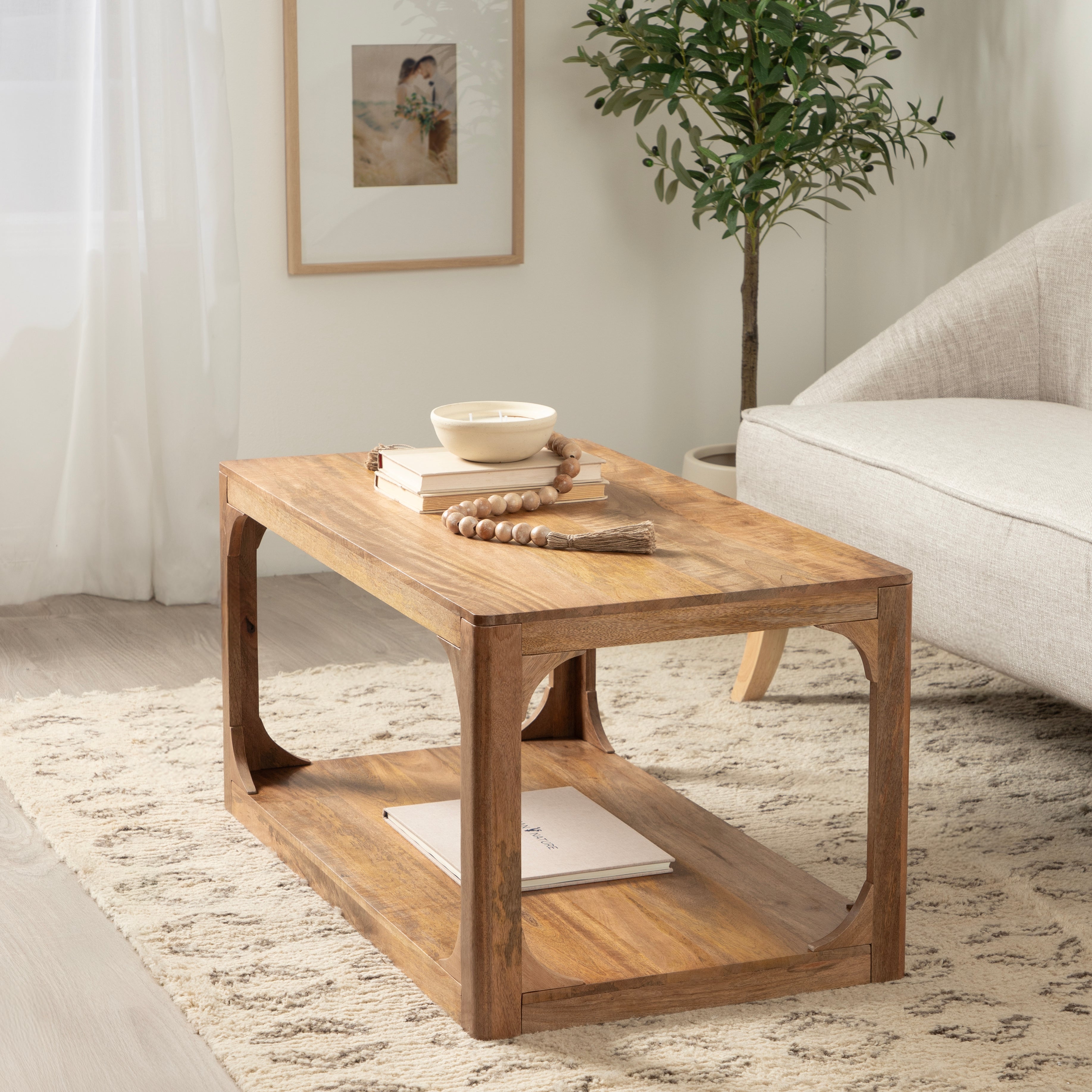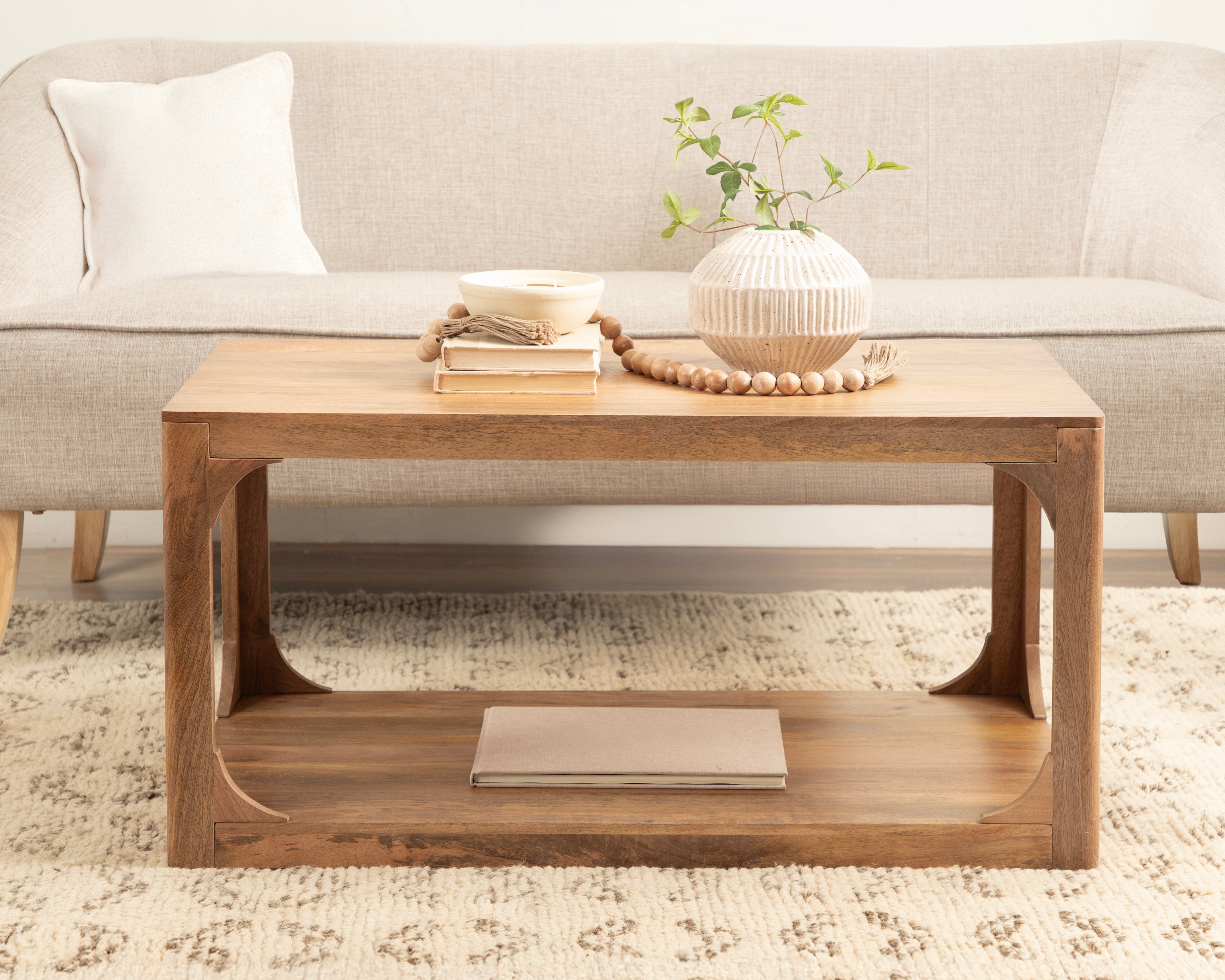 The Kate and Laurel Dahl coffee table is a masterpiece of modern design that will elevate your living room decor to a whole new level of sophistication. The slatted wood legs add an elegant touch to the overall design while providing stability and balance. Its solid mango wood construction ensures both durability and beauty, making it a long-lasting addition to your home. It also means that each table will have its own unique wood grain, making your table truly one-of-a-kind. Whether you're entertaining guests or enjoying a quiet night in, this coffee table's unique blend of contemporary flair and appeal makes it the perfect centerpiece for your living room. With the Dahl coffee table, you can create a welcoming and stylish atmosphere that exudes warmth and character. Upgrade your living space today with this exquisite piece of furniture that combines form and function seamlessly.