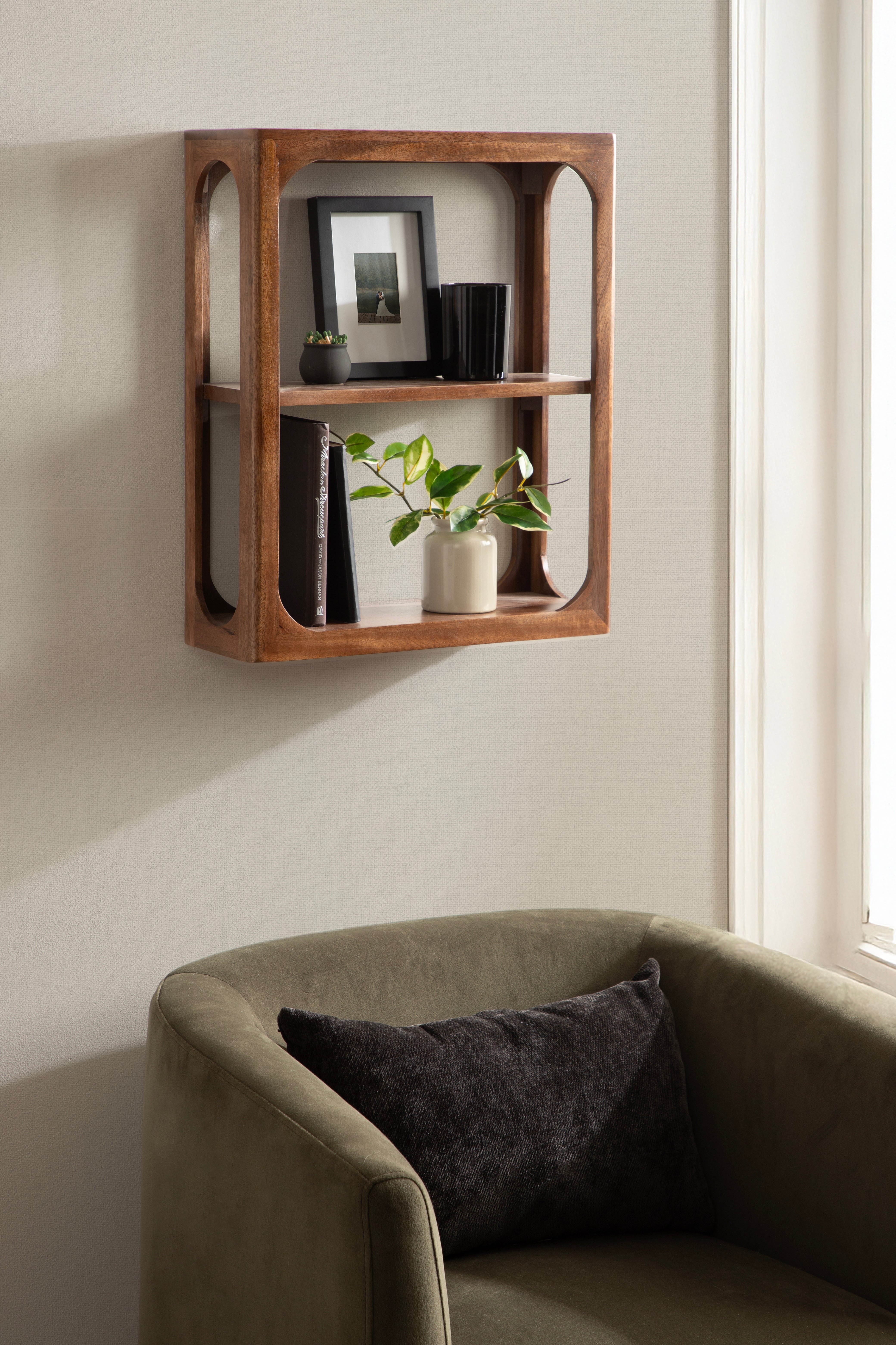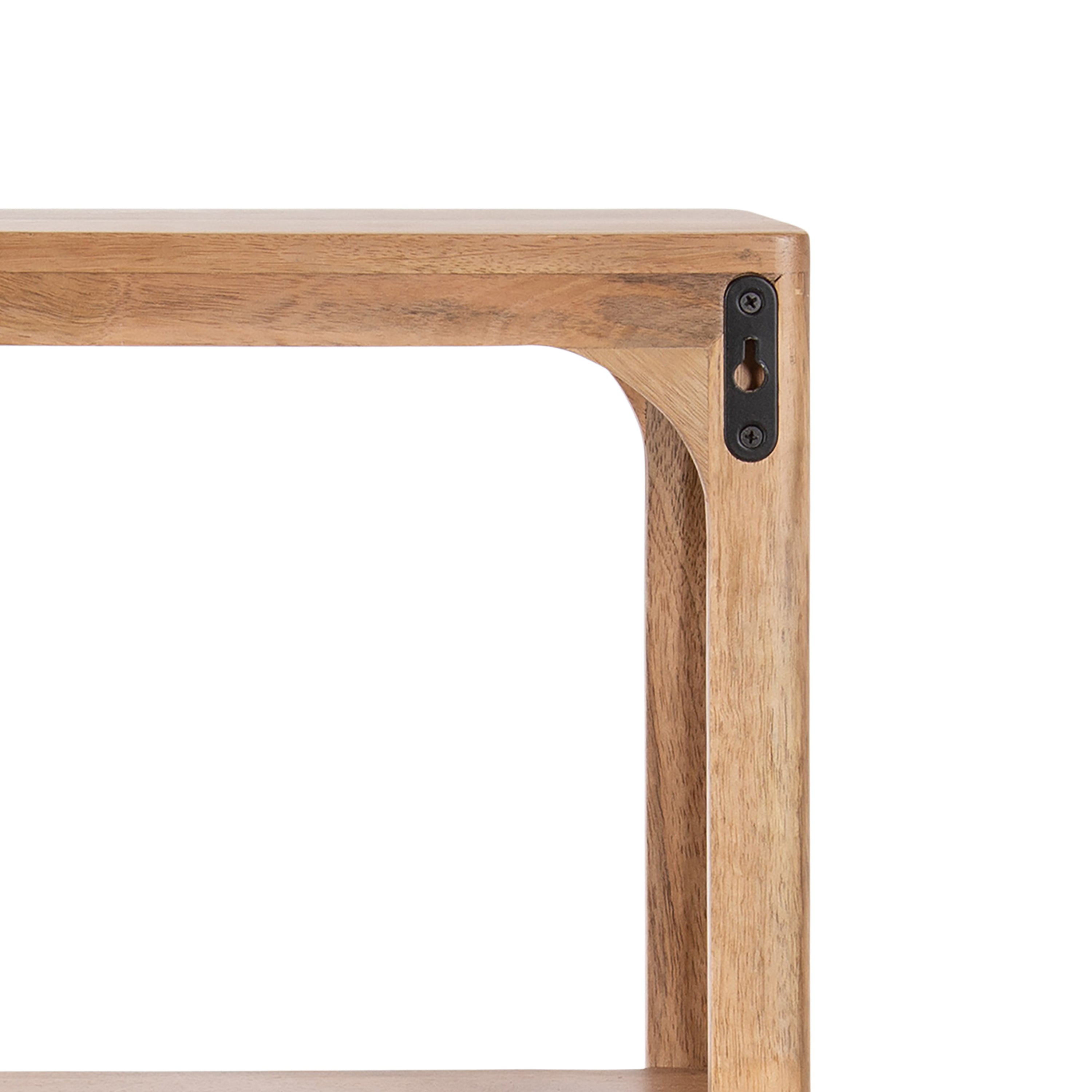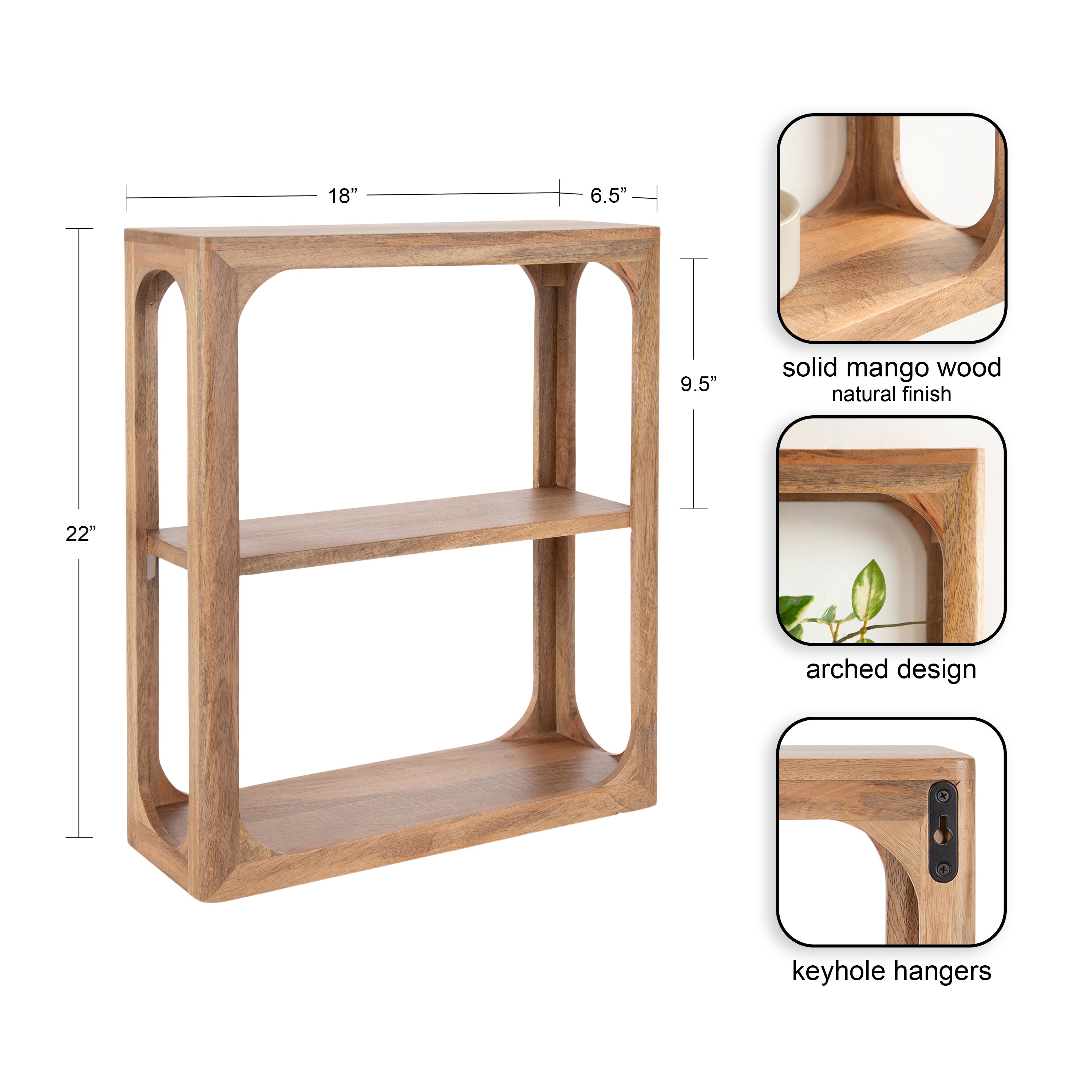 Create a sophisticated wall display that takes inspiration from modern design with the wooden Dahl wall shelf from Kate and Laurel. Indulge in the clean curvature and minimalist design with its solid mango wood construction. Due to this mango wood design, each Dahl shelf features natural wood grain that makes each piece one-of-a-kind. You could also use the tiered design to create a unique bookshelf option for small novels and other books. Each Dahl wall shelf features metal keyhole hangers attached to the back of the frame for quick and easy installation in no time. The open, airy design of this wood shelf provides your space with plenty of storage without encroaching on your wall.