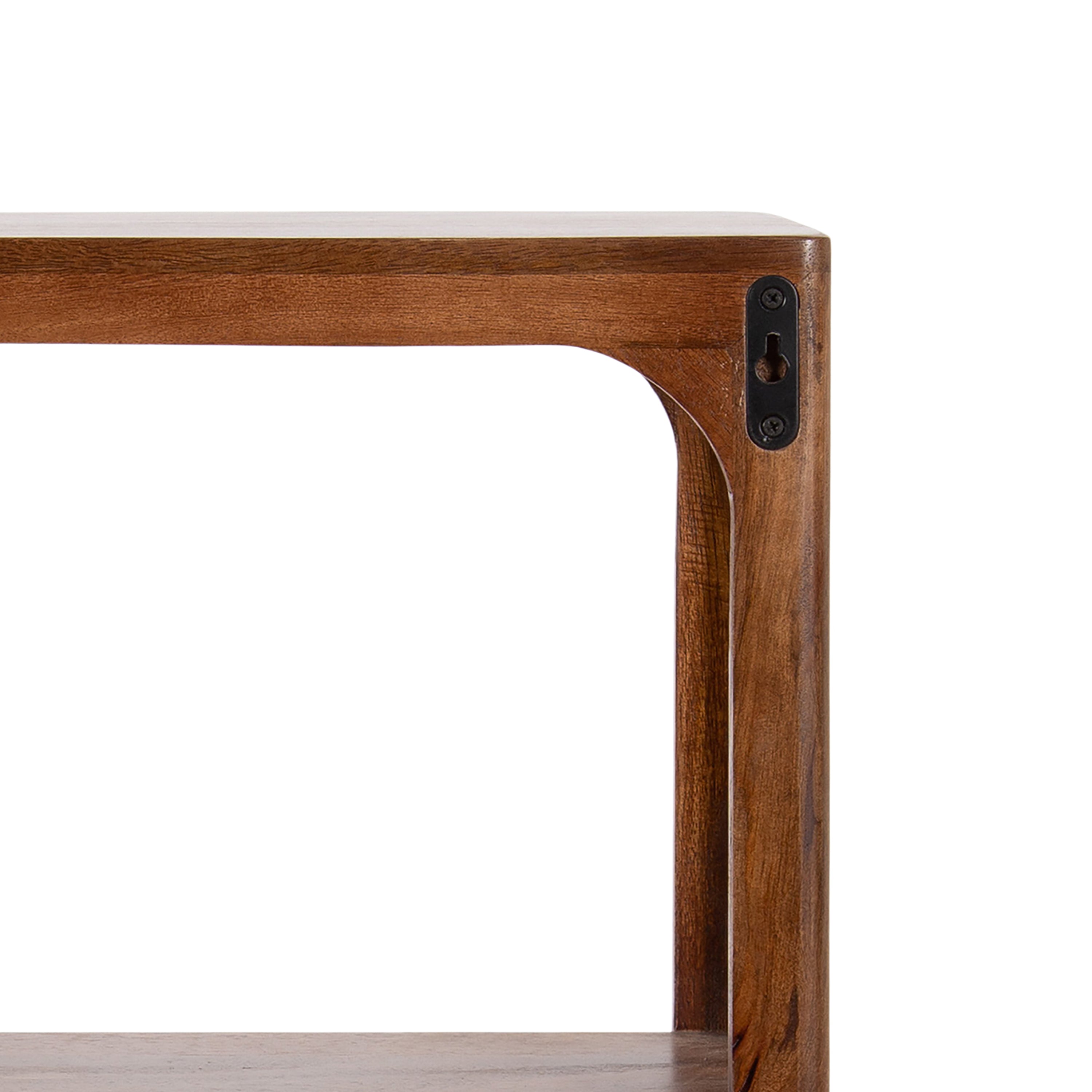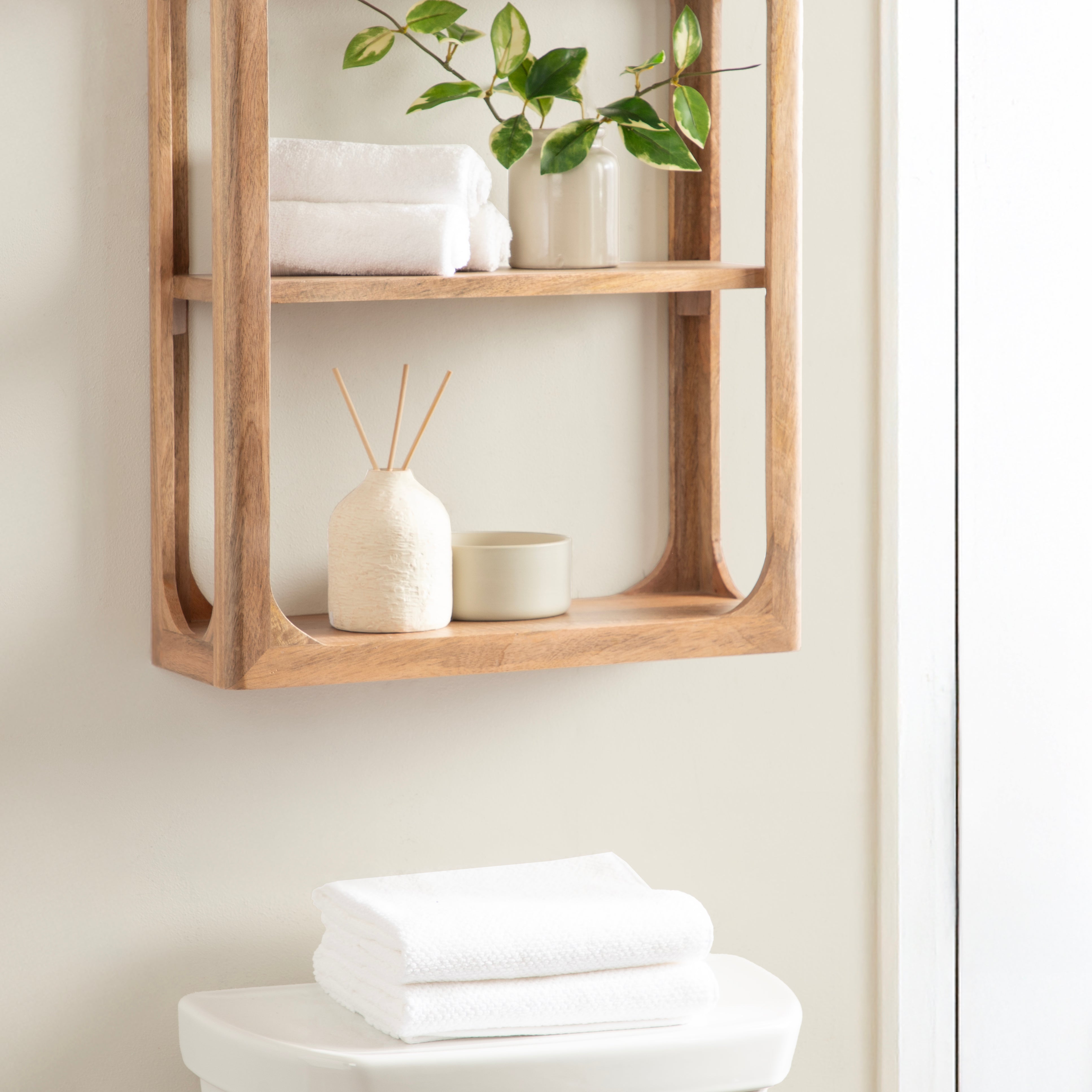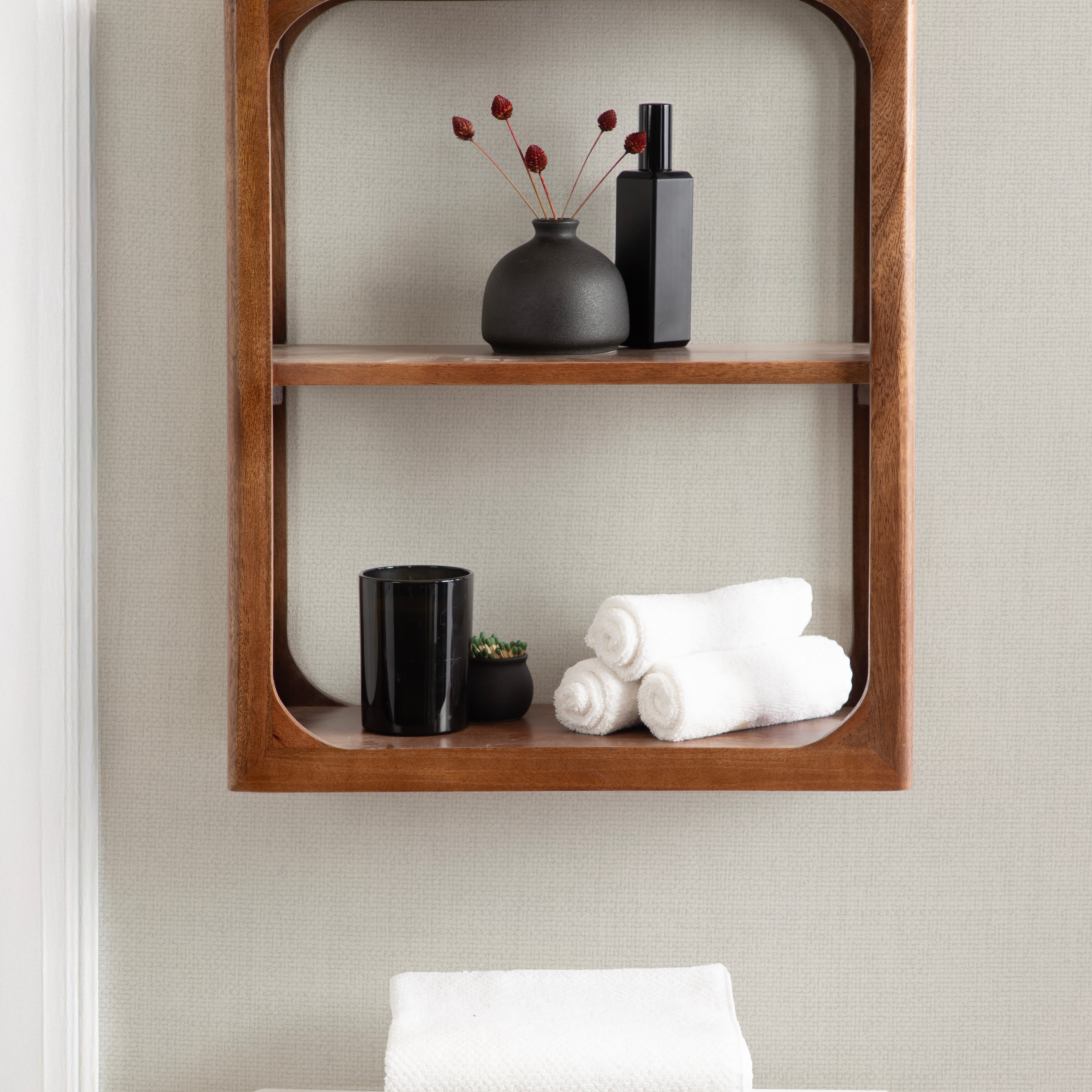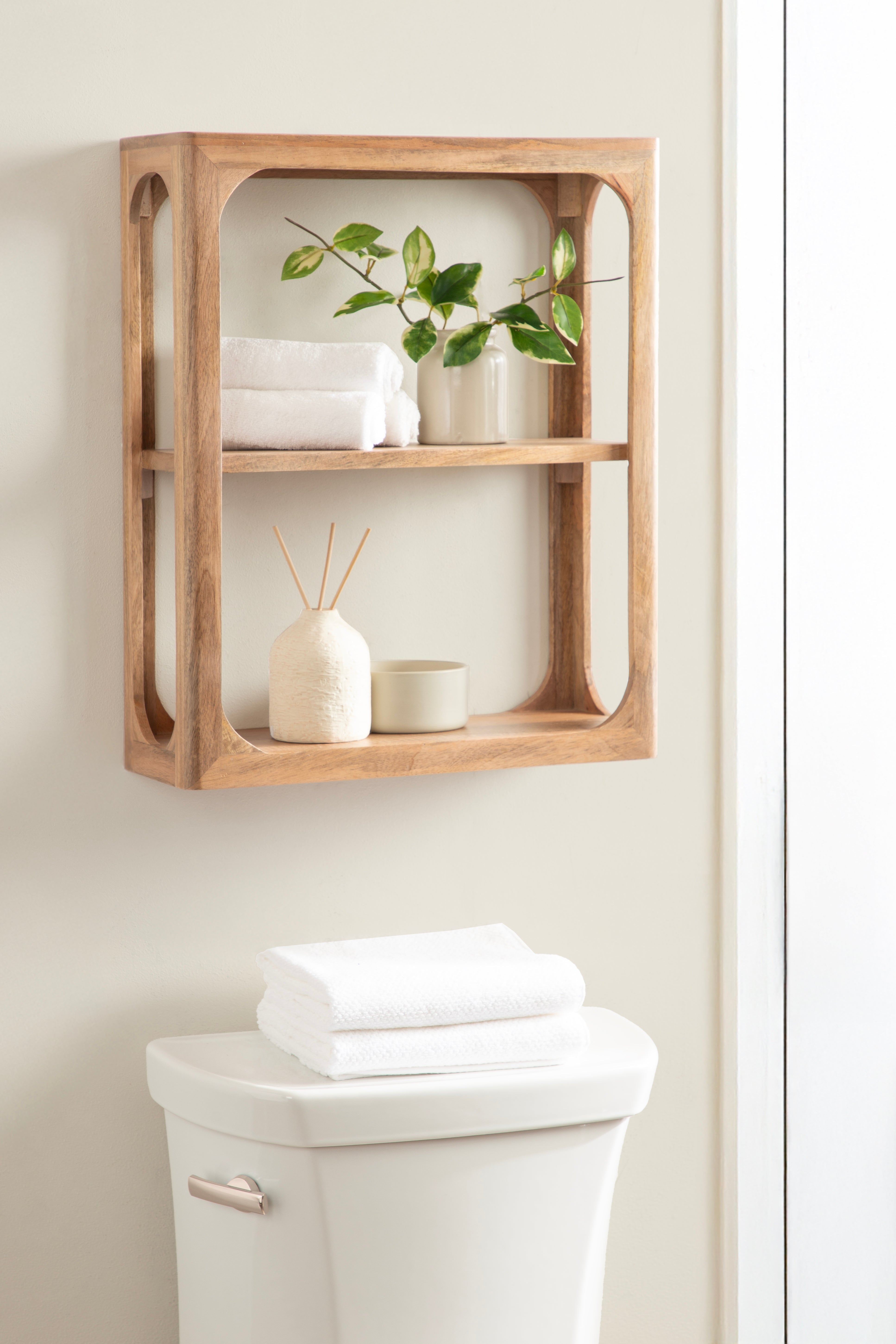 Create a sophisticated wall display that takes inspiration from modern design with the wooden Dahl wall shelf from Kate and Laurel. Indulge in the clean curvature and minimalist design with its solid mango wood construction. Due to this mango wood design, each Dahl shelf features natural wood grain that makes each piece one-of-a-kind. You could also use the tiered design to create a unique bookshelf option for small novels and other books. Each Dahl wall shelf features metal keyhole hangers attached to the back of the frame for quick and easy installation in no time. The open, airy design of this wood shelf provides your space with plenty of storage without encroaching on your wall.