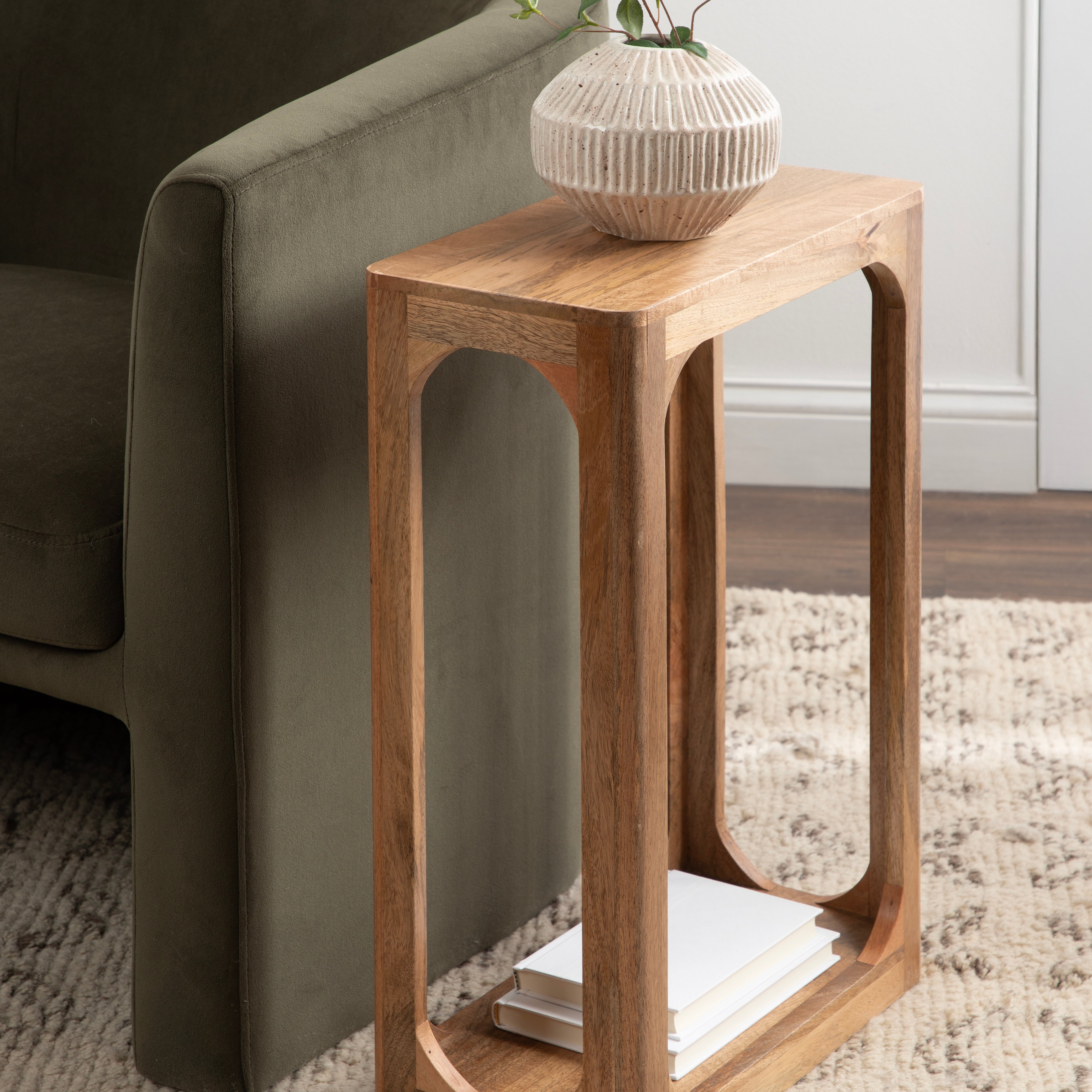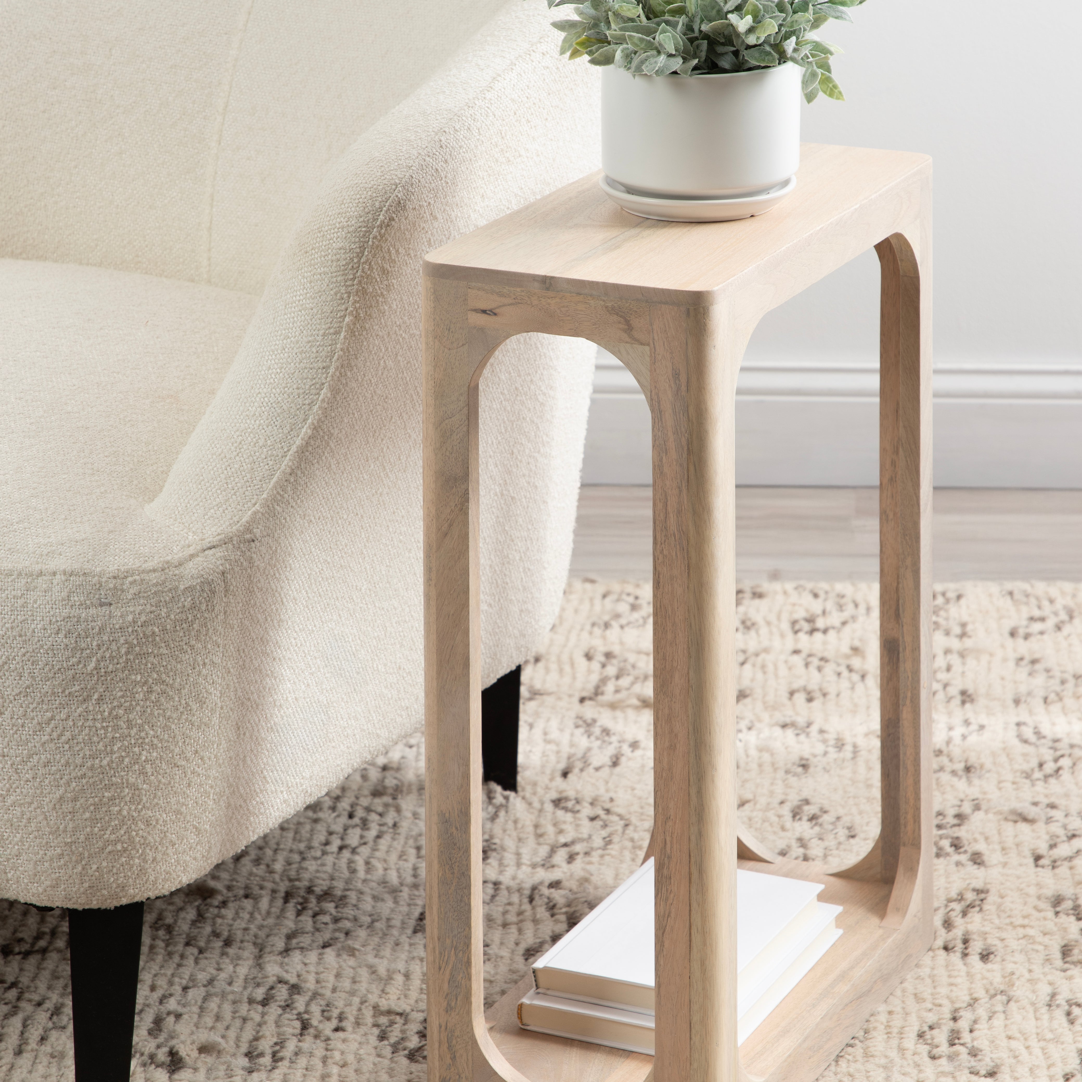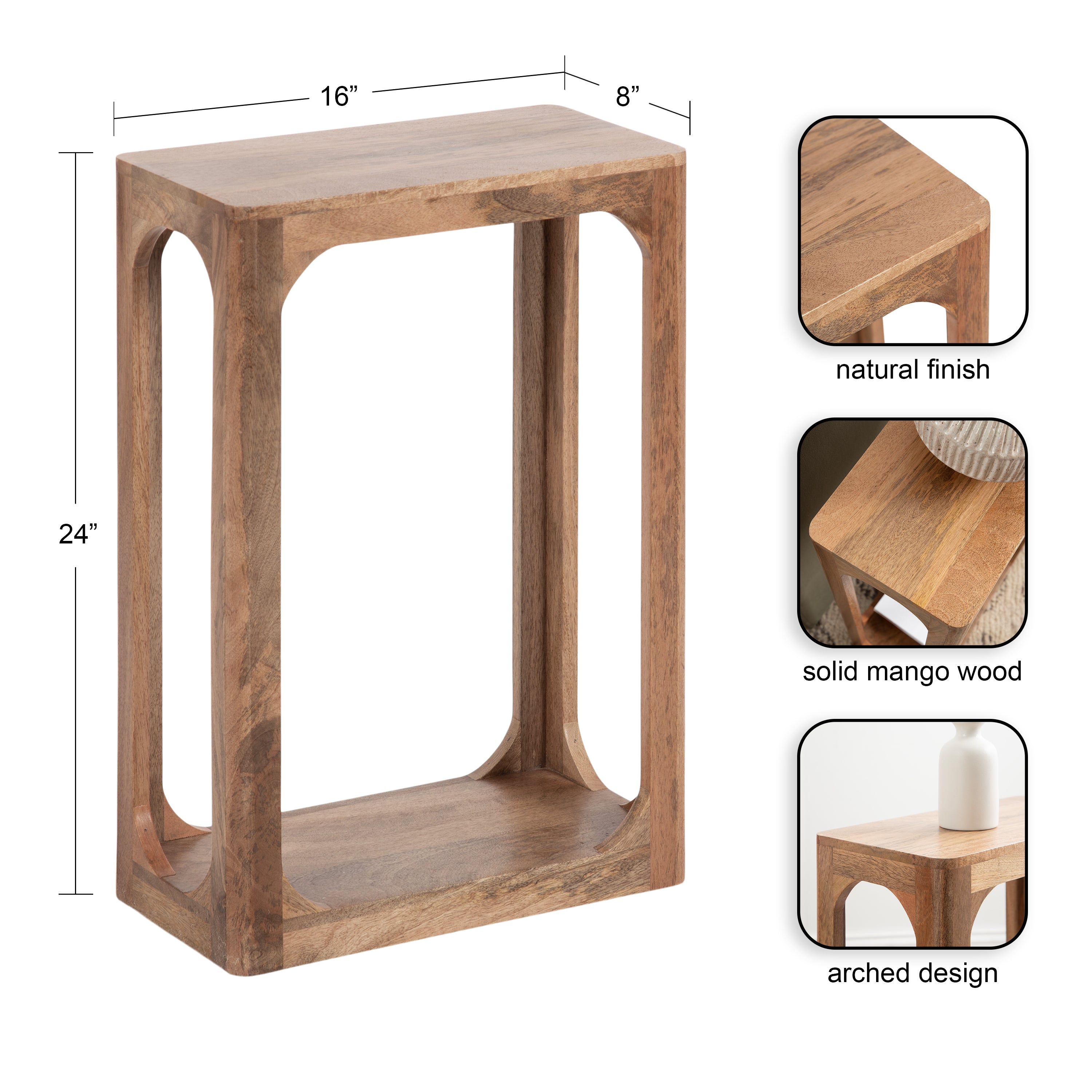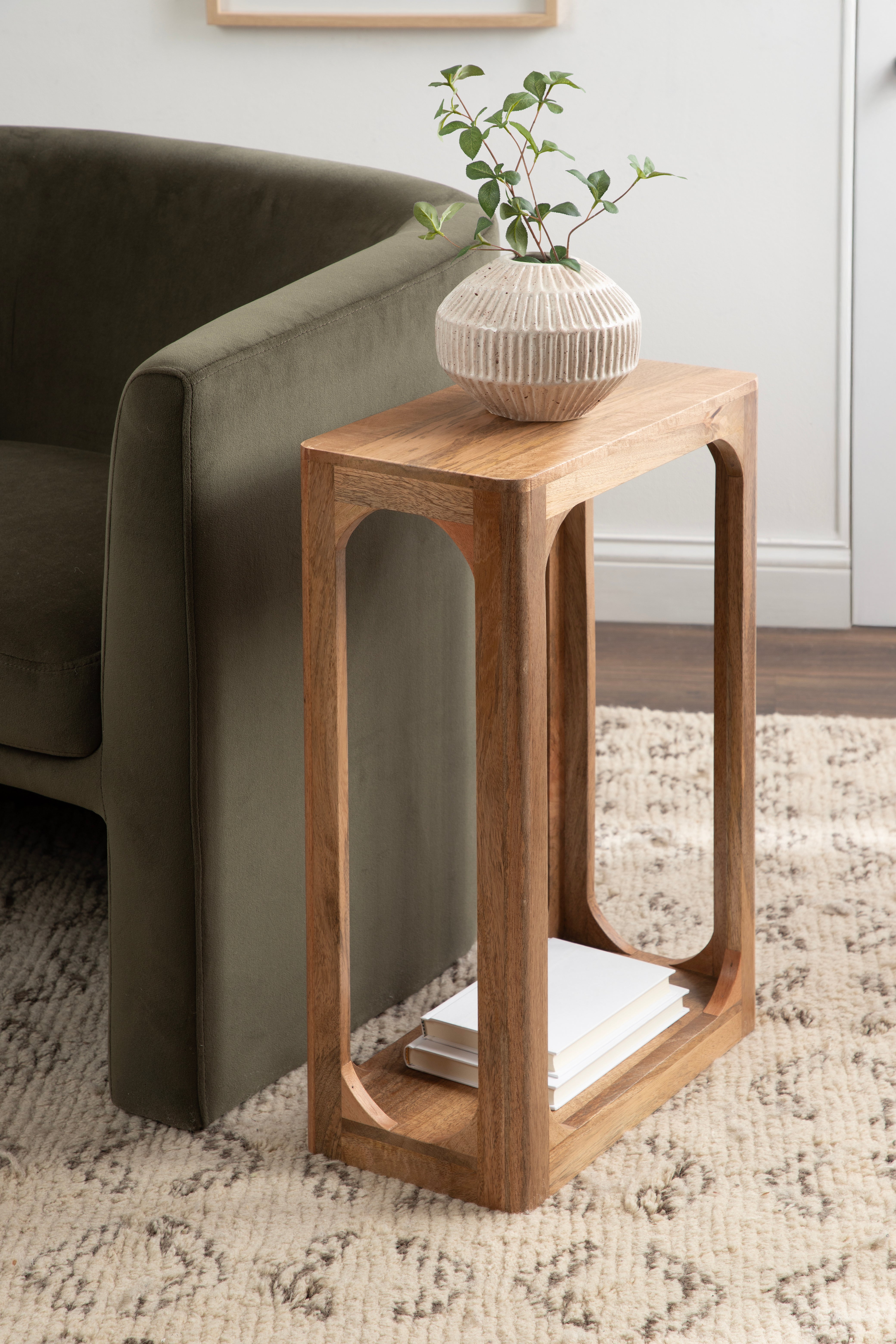 Add a charming accent to your home with this Dahl slatted slim side table. Between its modern wooden risers and rectangle tabletop, the table serves as the most delightful display accent. Crafted in India with premium materials, this table features high-quality mango wood that gives it delightful variations in the wood grain. Each table is constructed with these authentic materials, meaning that each piece of wood will feature unique, one-of-a-kind variations. Commonly used as a living room end table, this table also serves as a lovely boho plant stand. With its unique design, this wooden accent table comes fully assembled, so you can start enjoying and decorating it at once. The table's unique negative space gives you rectangular openings between each of the four risers.