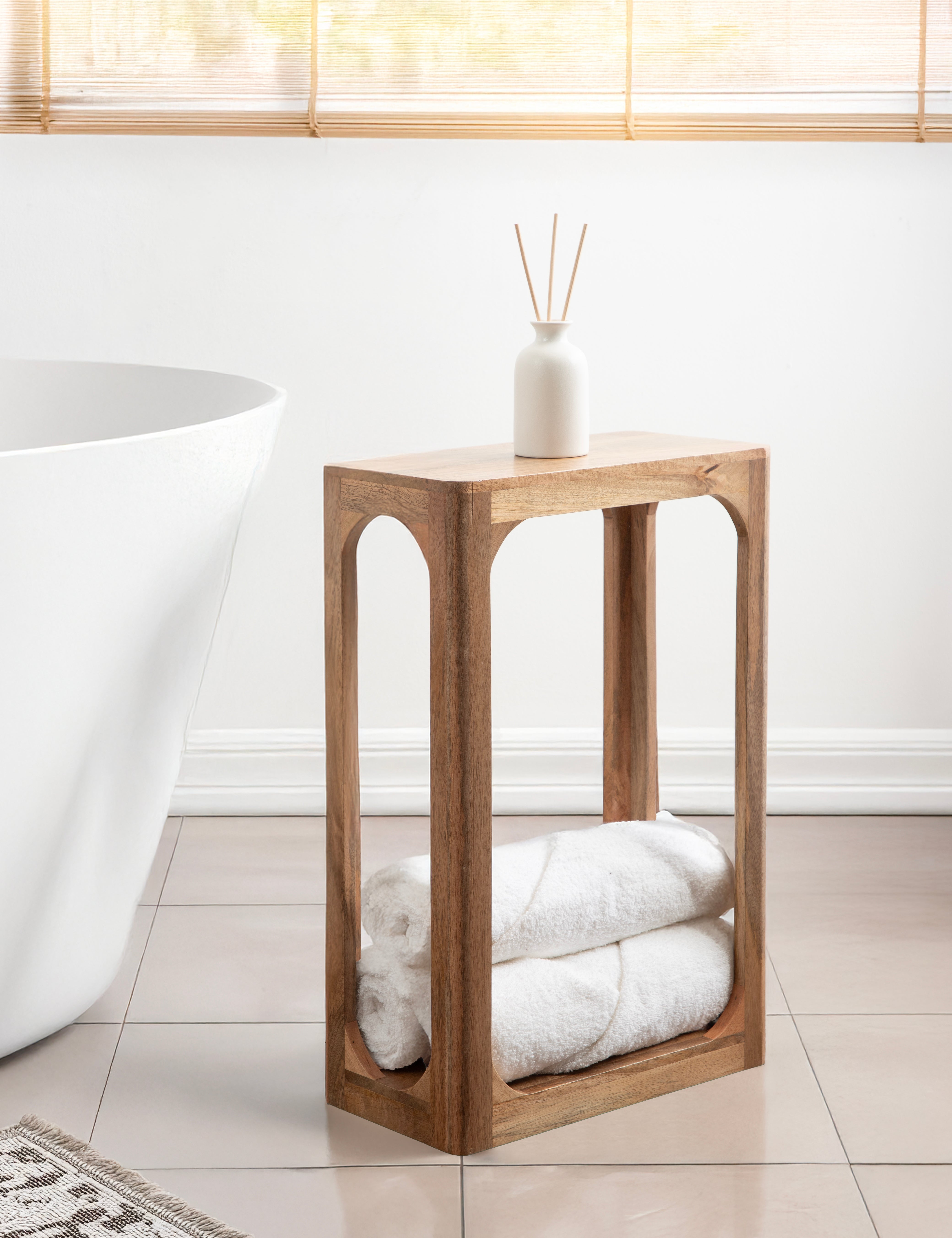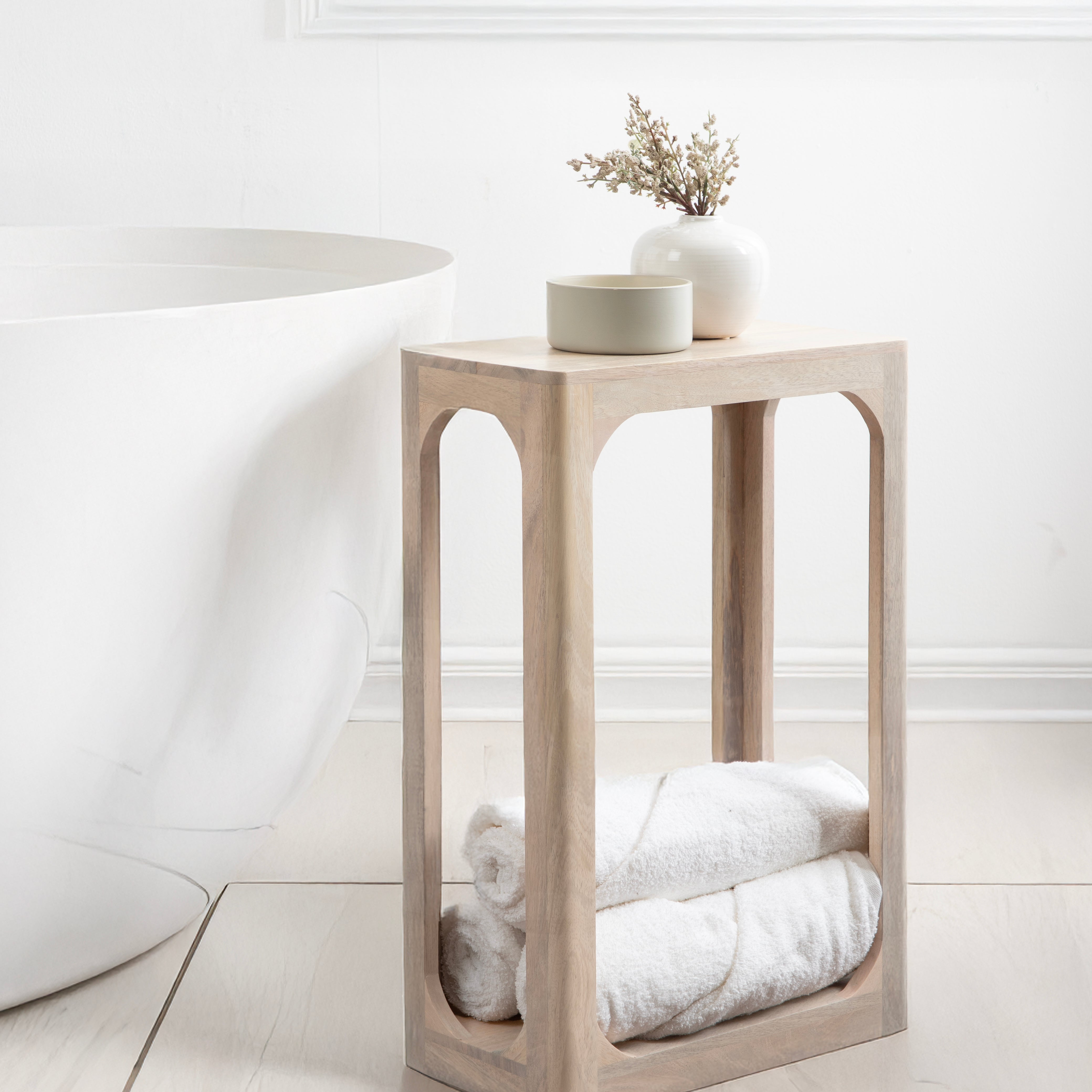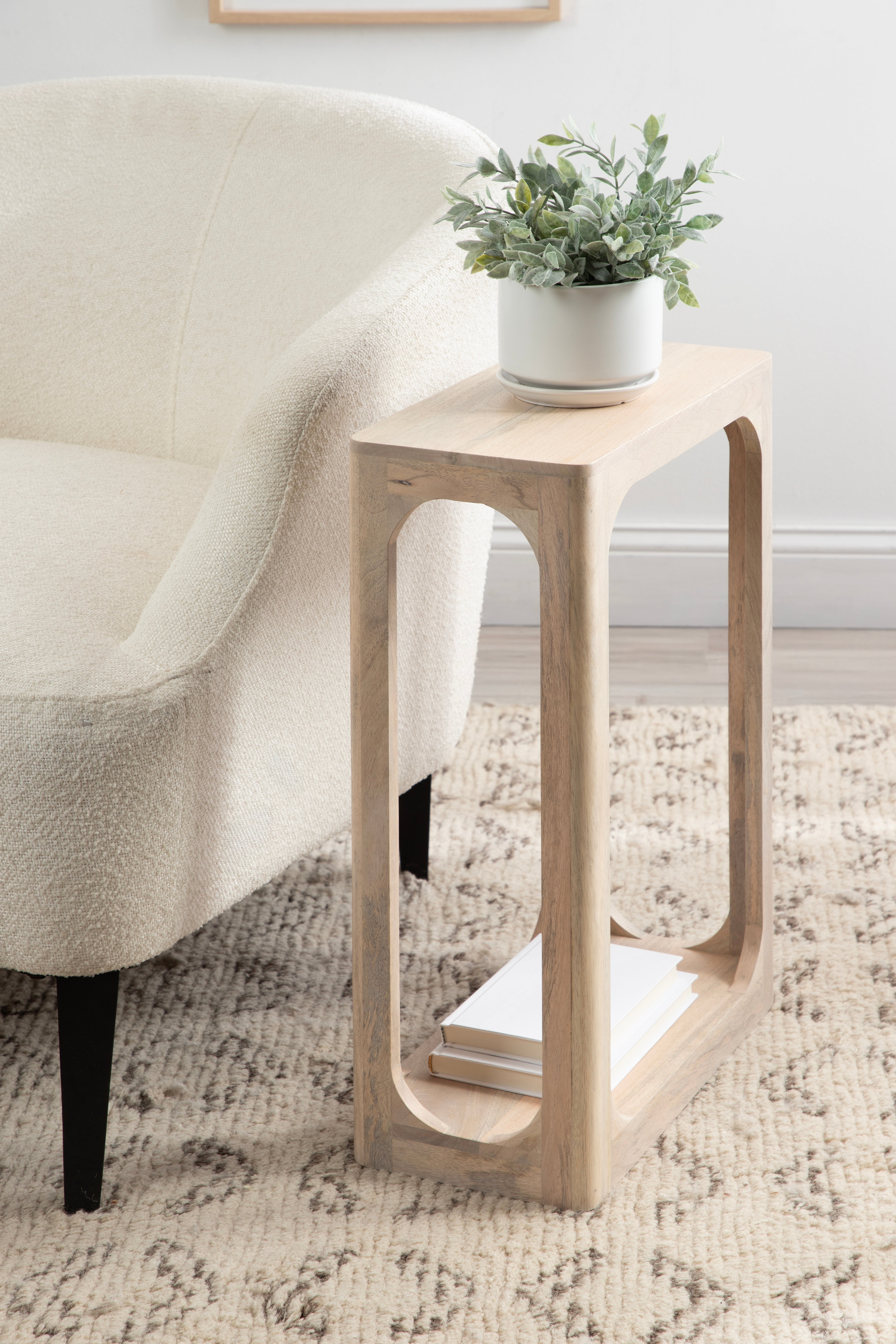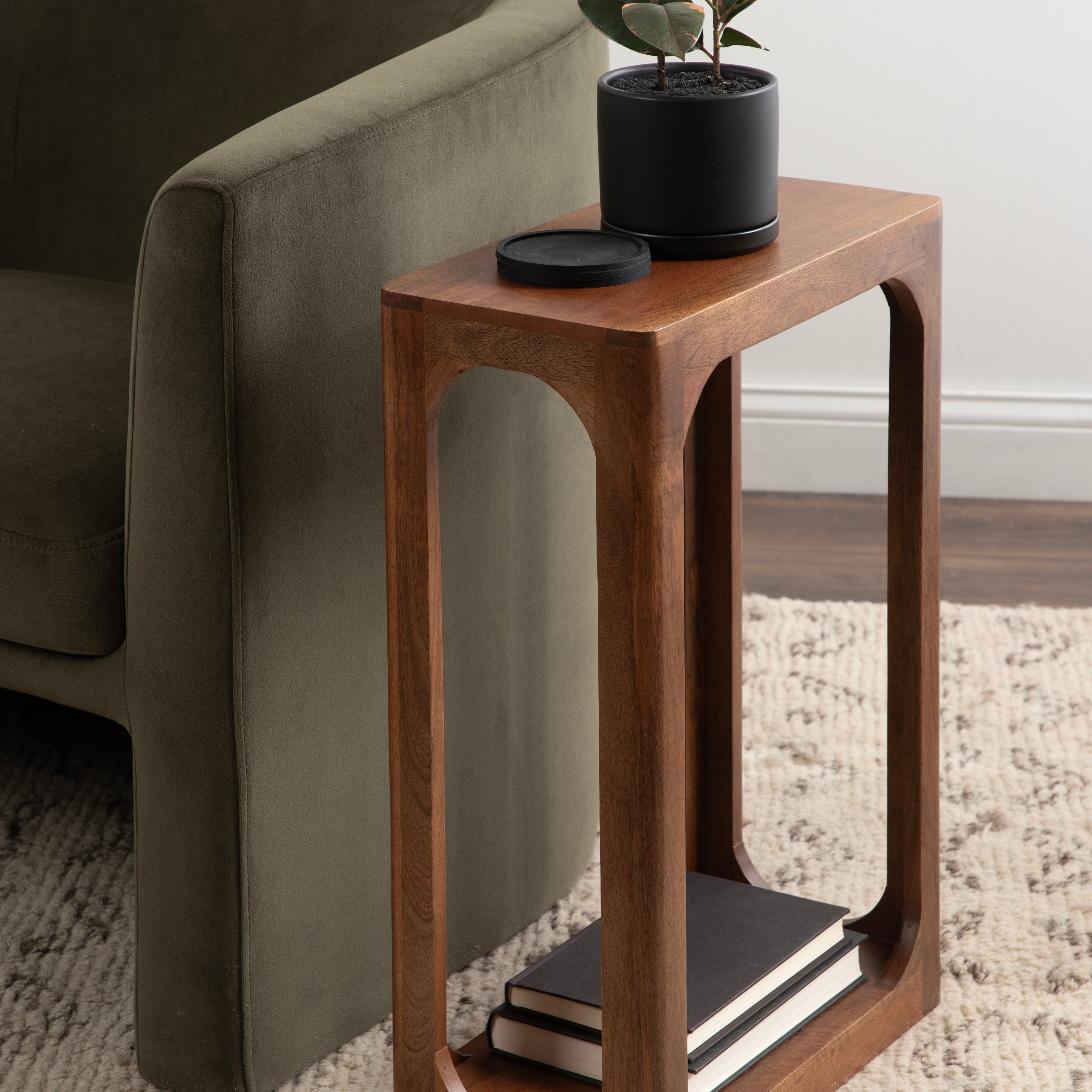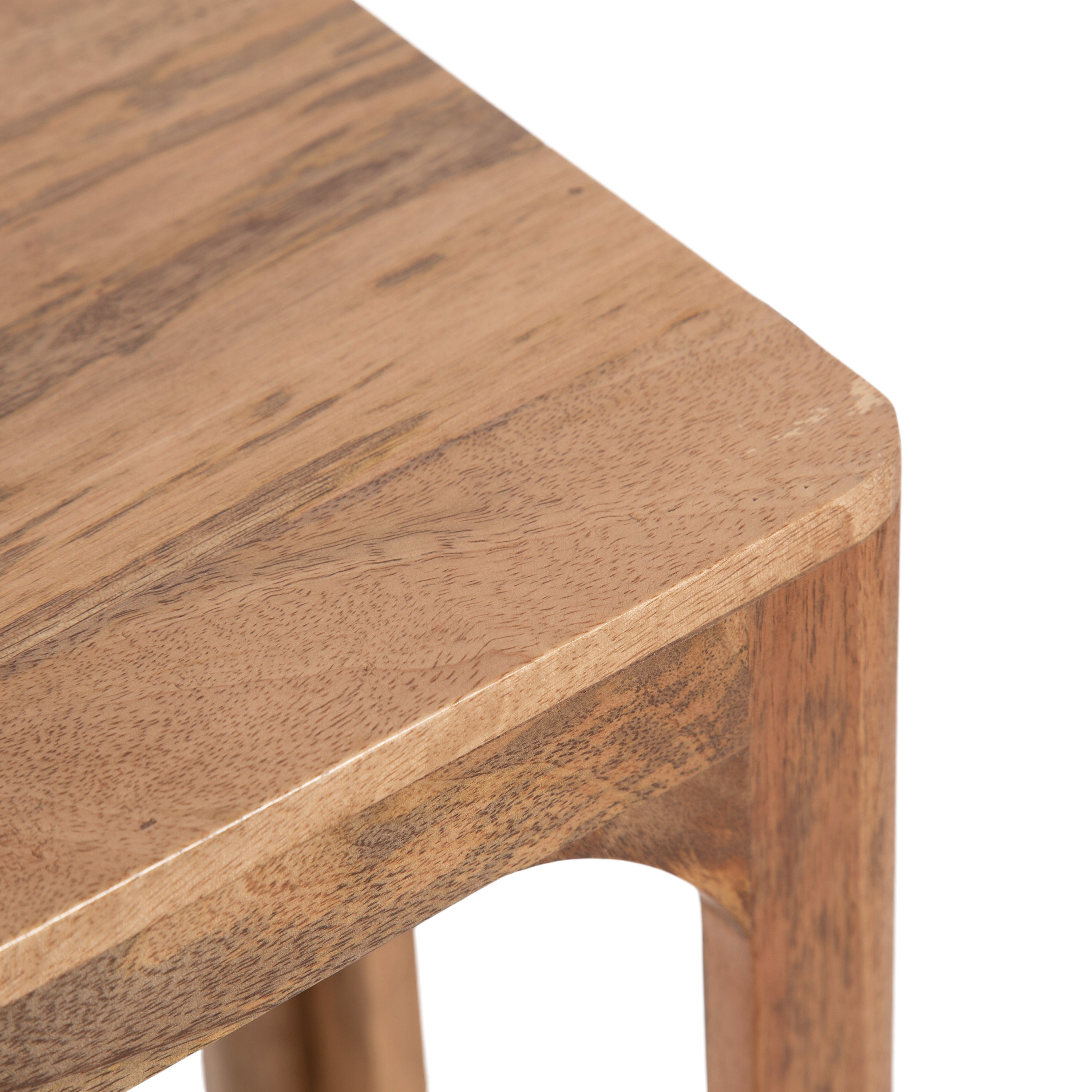 Add a charming accent to your home with this Dahl slatted slim side table. Between its modern wooden risers and rectangle tabletop, the table serves as the most delightful display accent. Crafted in India with premium materials, this table features high-quality mango wood that gives it delightful variations in the wood grain. Each table is constructed with these authentic materials, meaning that each piece of wood will feature unique, one-of-a-kind variations. Commonly used as a living room end table, this table also serves as a lovely boho plant stand. With its unique design, this wooden accent table comes fully assembled, so you can start enjoying and decorating it at once. The table's unique negative space gives you rectangular openings between each of the four risers.