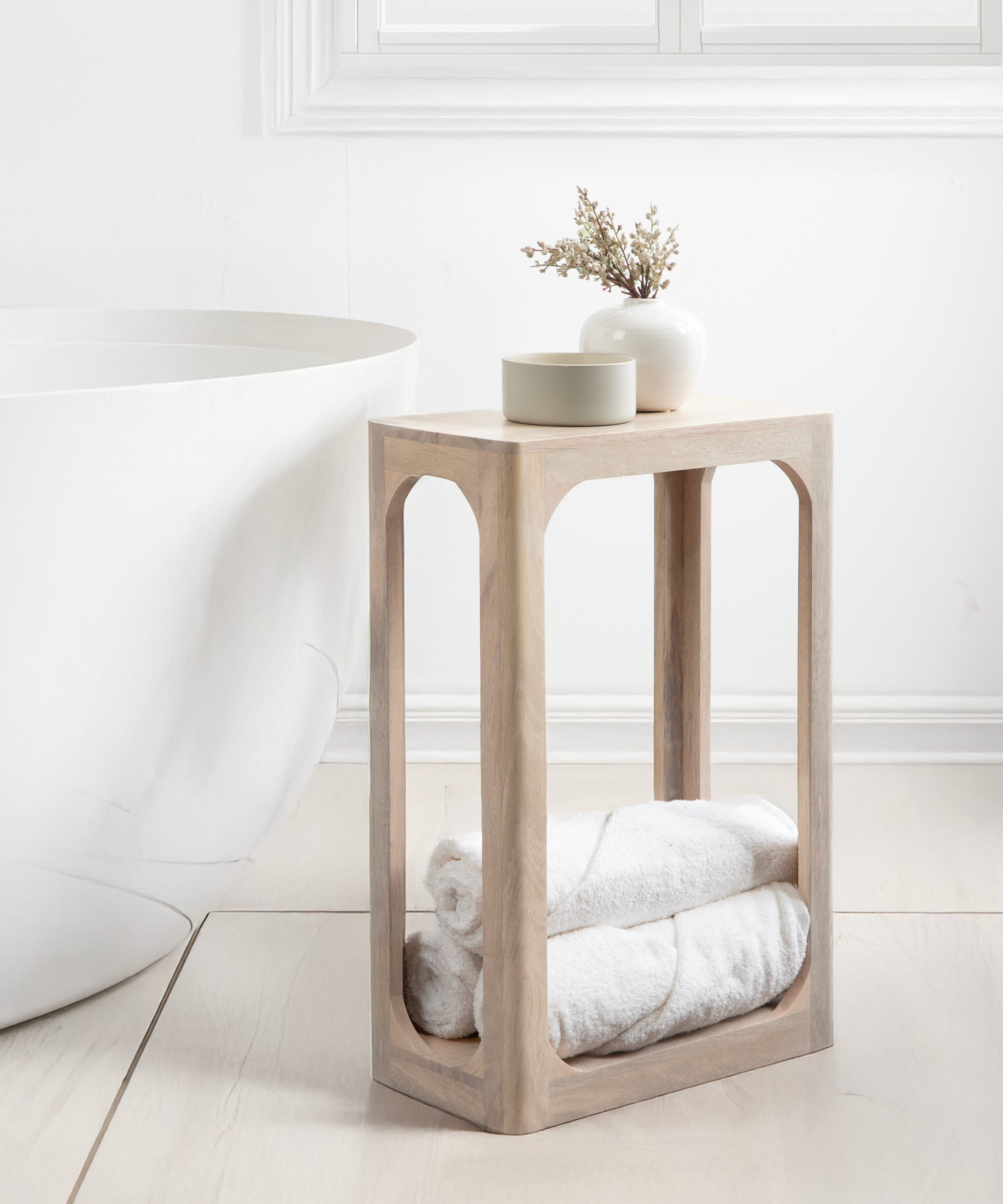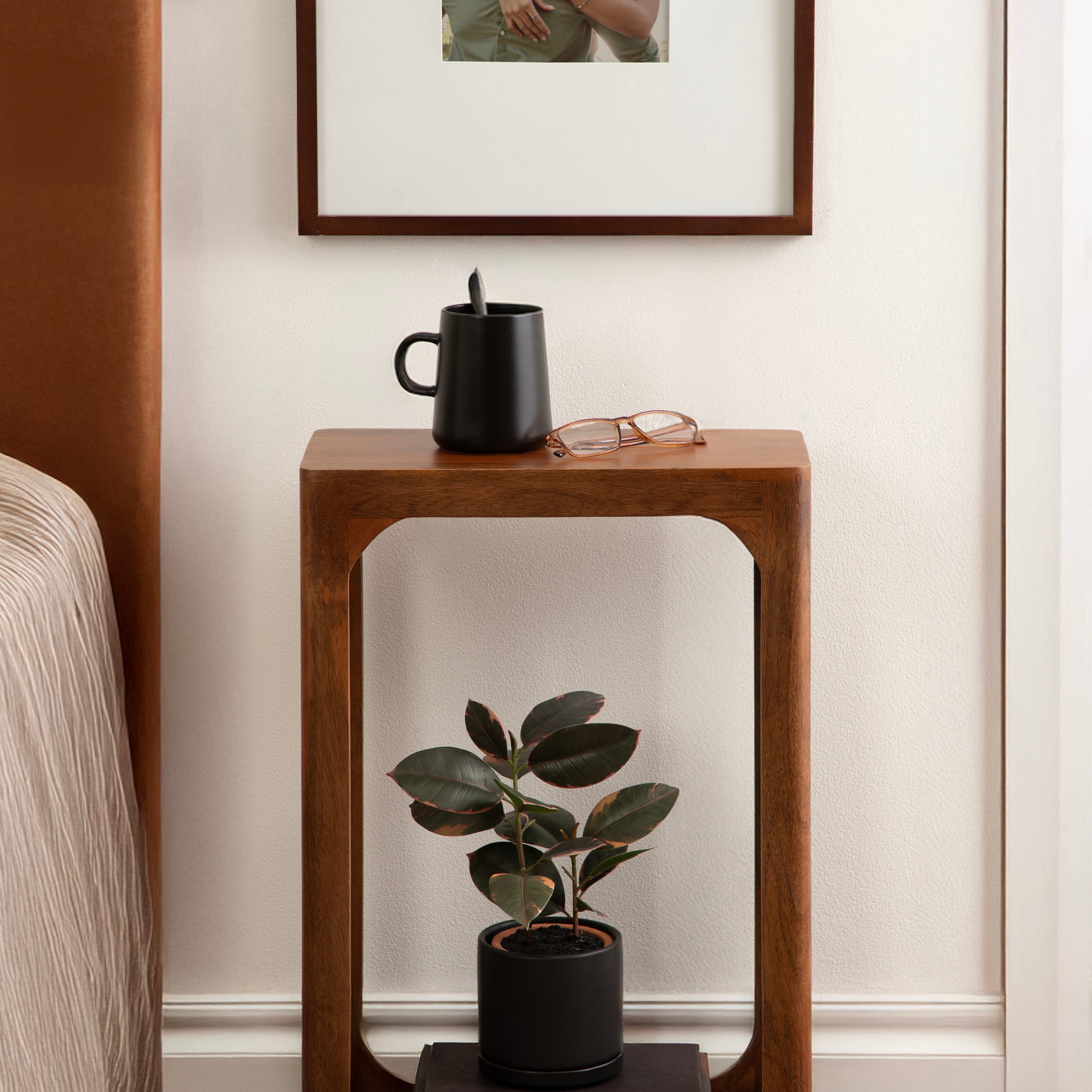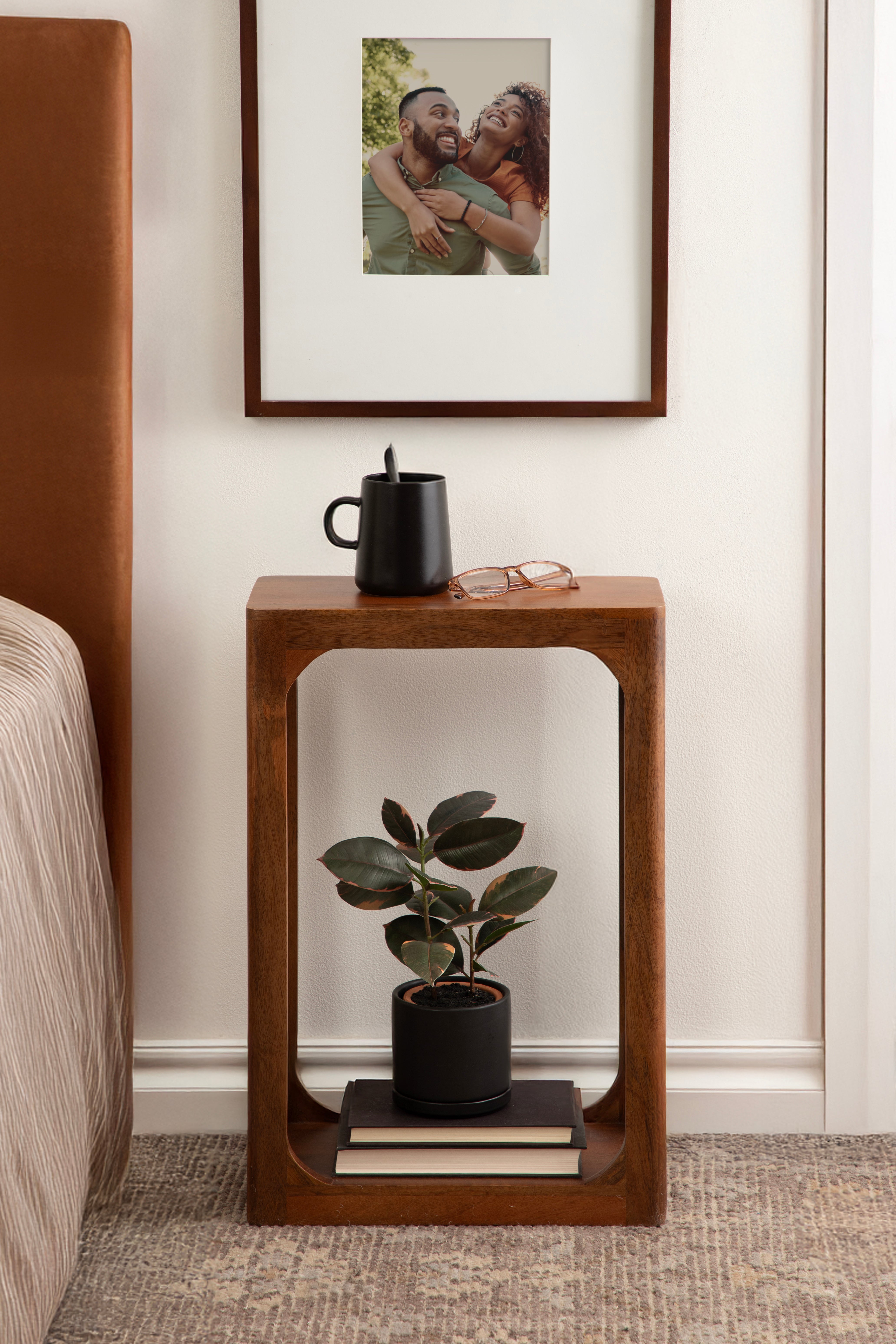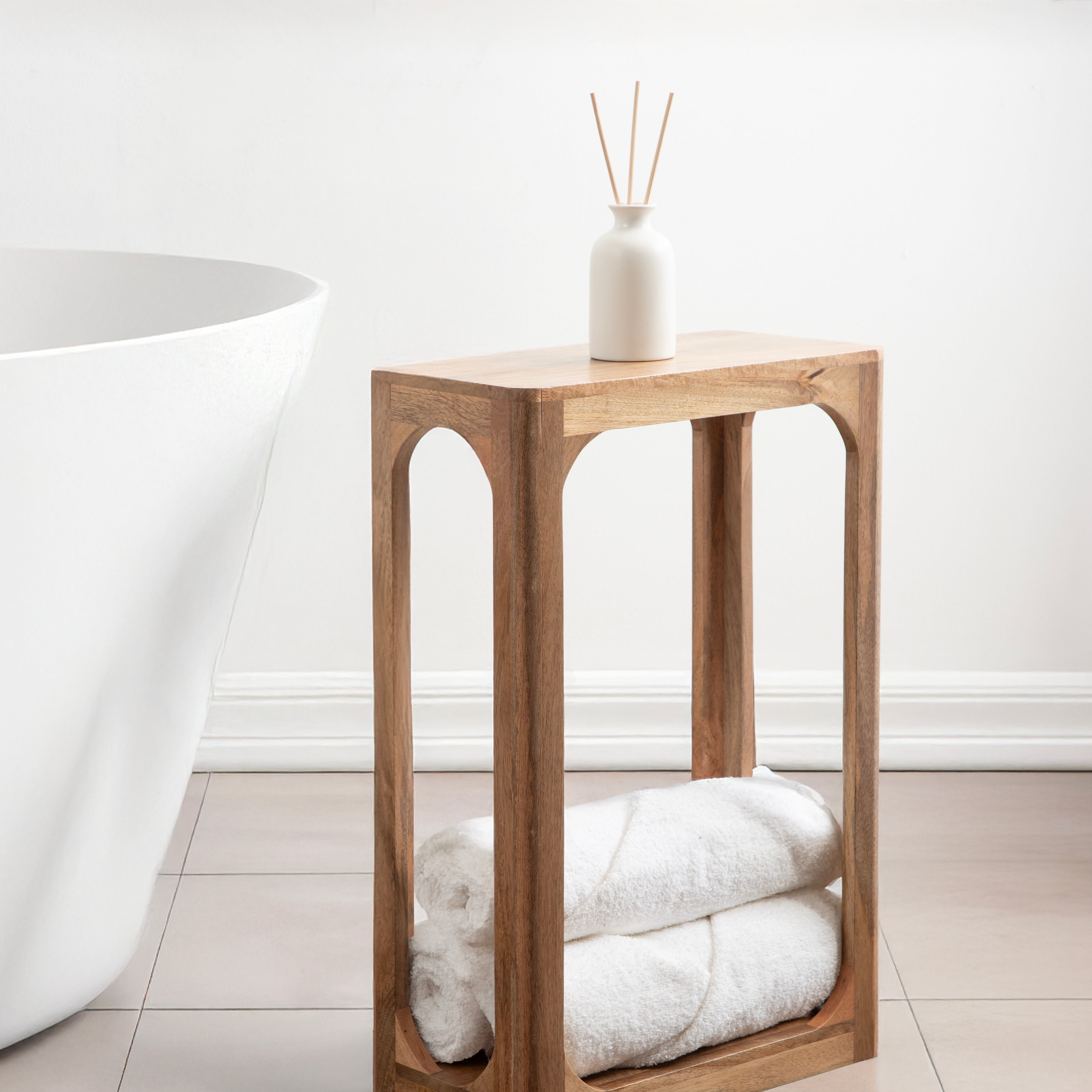 Add a charming accent to your home with this Dahl slatted slim side table. Between its modern wooden risers and rectangle tabletop, the table serves as the most delightful display accent. Crafted in India with premium materials, this table features high-quality mango wood that gives it delightful variations in the wood grain. Each table is constructed with these authentic materials, meaning that each piece of wood will feature unique, one-of-a-kind variations. Commonly used as a living room end table, this table also serves as a lovely boho plant stand. With its unique design, this wooden accent table comes fully assembled, so you can start enjoying and decorating it at once. The table's unique negative space gives you rectangular openings between each of the four risers.